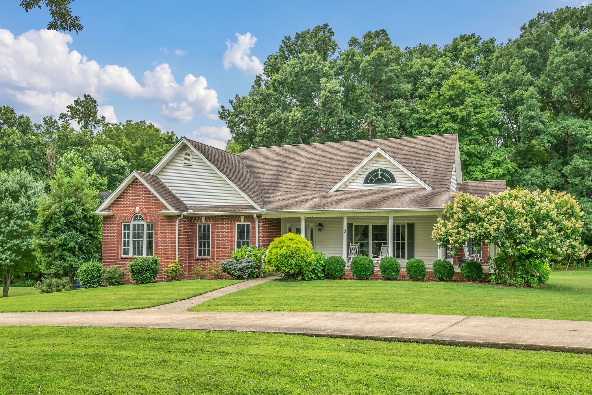 CUSTOM BUILT BEAUTY ON 2.4 PARK LIKE ACRES! This incredible all brick home features a circular drive with huge side entry garage and a spacious rocking chair front porch. Inside, you'll find an open floor plan with soaring ceilings, elegant archways and large kitchen with ample cabinet space, backsplash, granite counters and stainless steel appliances. Owners Suite includes tray ceilings, bay window and bath with double vanity, soaking tub, tile shower and walk in closet with solid surface shelving. Fully Finished Basement is perfect for an in-law suite / apartment space with kitchenette, living room, full bath and 14x14 flex room/possible 4th bedroom. Enjoy the peace and quiet and sights and sounds of nature from the sunroom or back deck overlooking the stunning treelined yard. All kitchen appliances, shed and greenhouse to remain. This home is a must see!