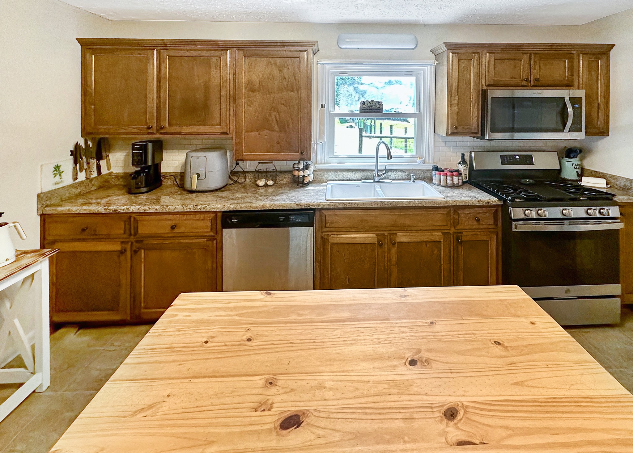 - AppliancesBuilt-In Gas Oven, Built-In Gas Range, Dishwasher, Microwave, Refrigerator, Stainless Steel Appliance(s)