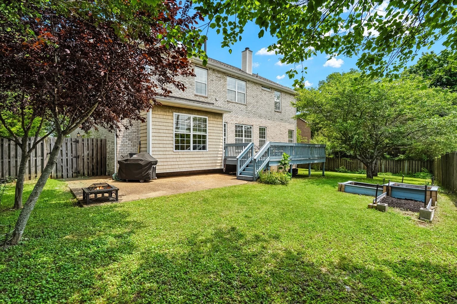 Outside you'll find an impressive 22' wide Front Porch overlooking the Culdesac, a 20' wide back deck overlooking a fenced yard, and a large patio. The sellers have planted gorgeous perennial landscaping in the front yard, raised garden beds in the back and plenty of mature trees for lots of shade!