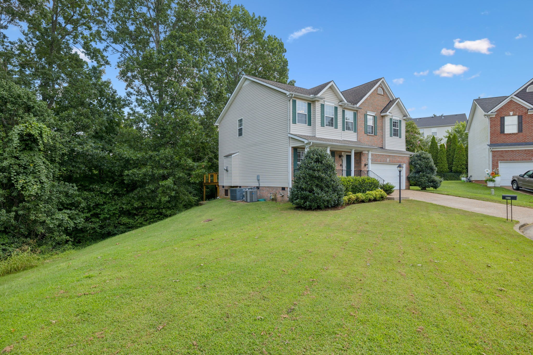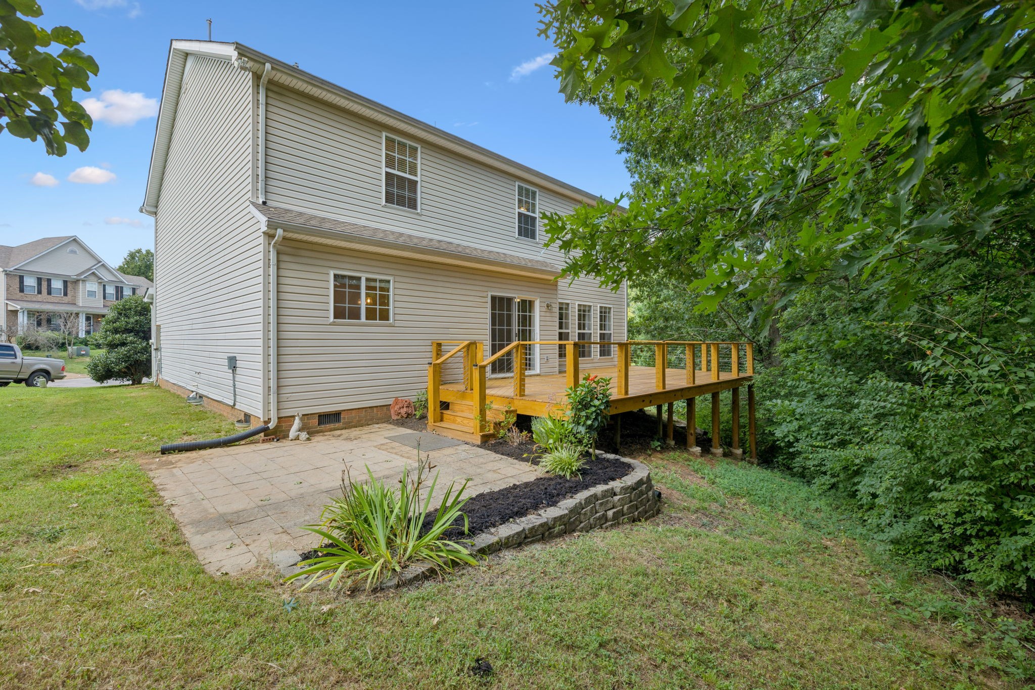 Enjoy the newly added sidewalks that make walking to Harpeth Valley Elementary a breeze. Tucked away on a cul-de-sac with only one side neighbor, this home boasts a peaceful, private setting. Step outside to a spacious new deck (2024) and patio that open to a serene, wooded backyard—ideal for relaxing or entertaining.