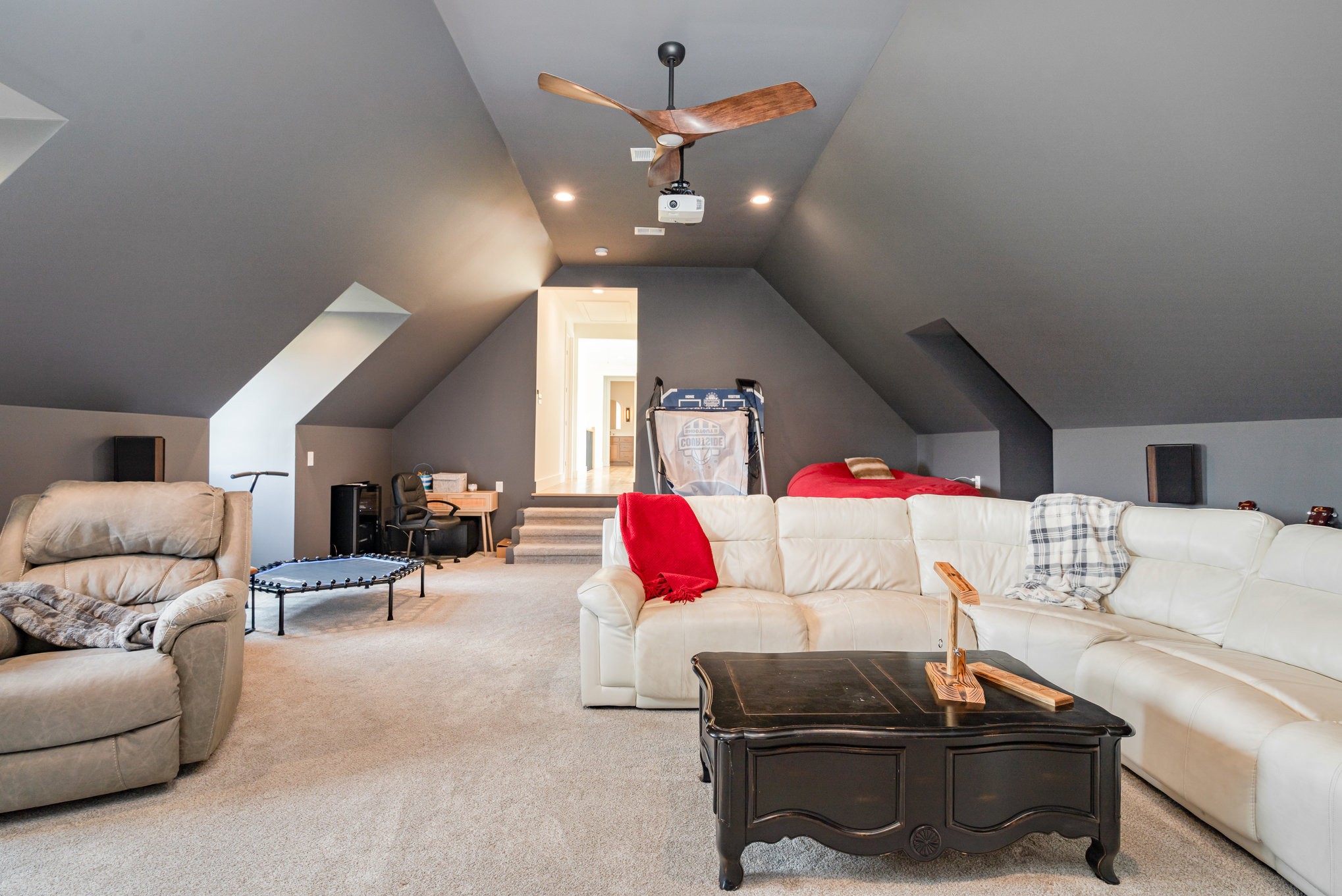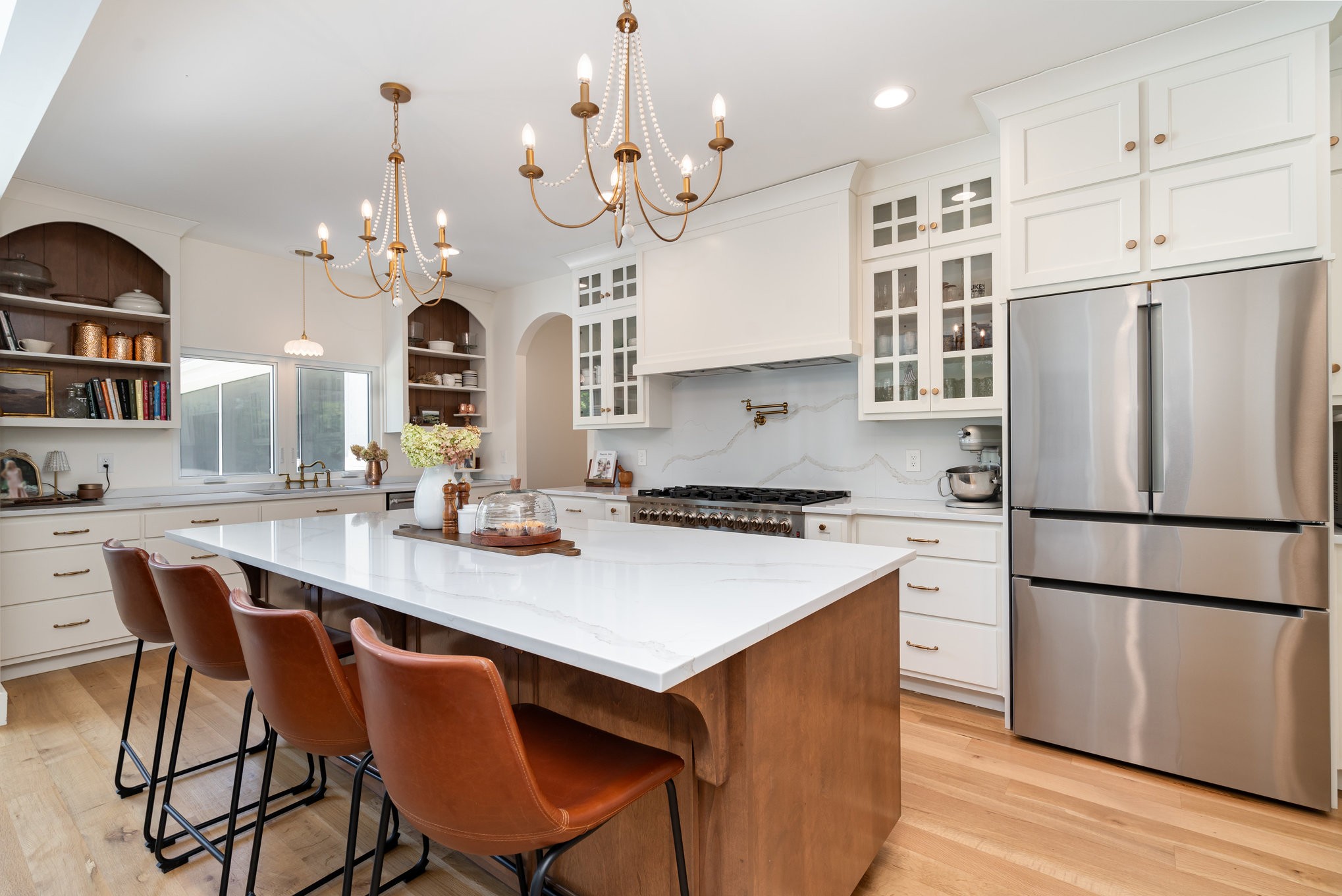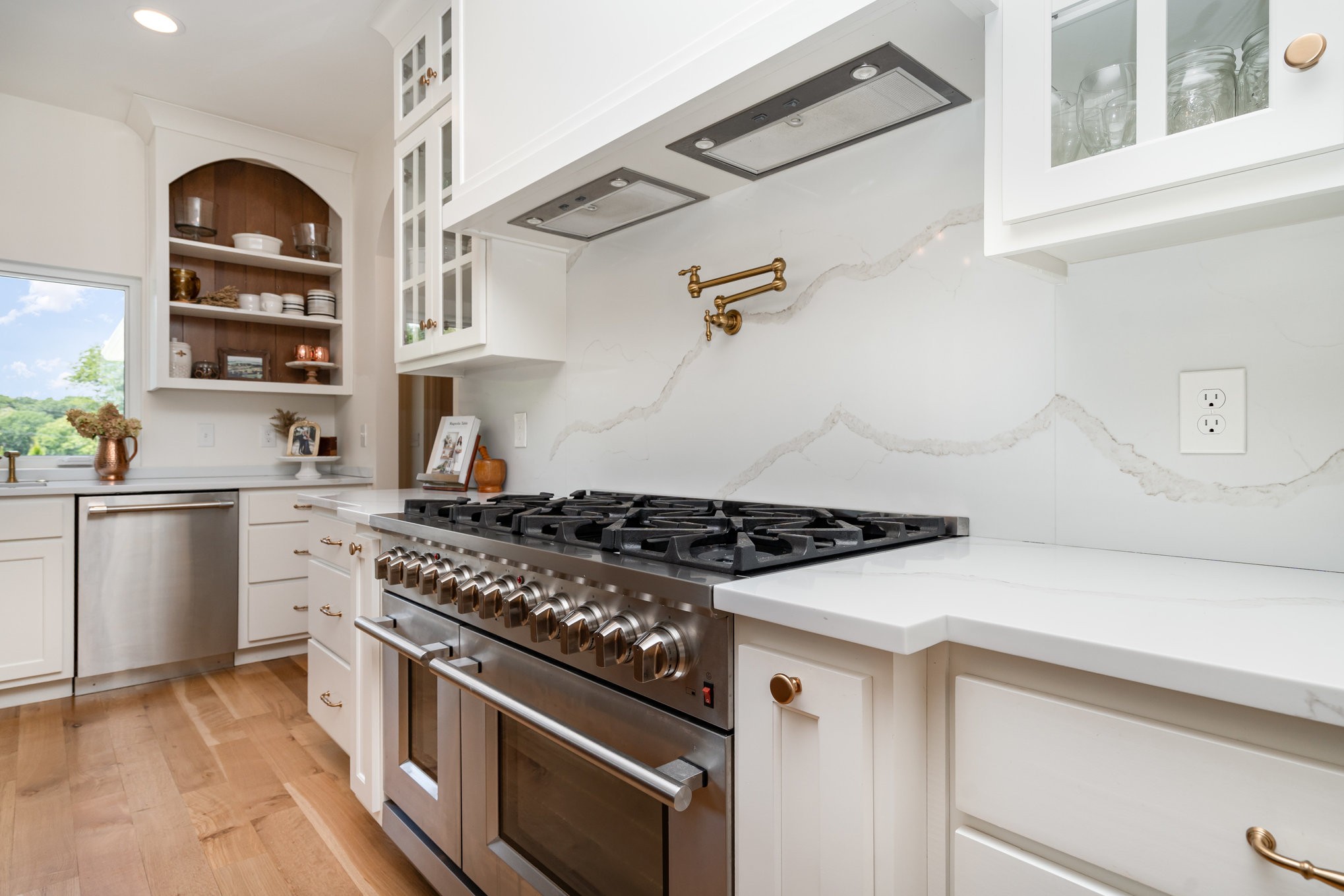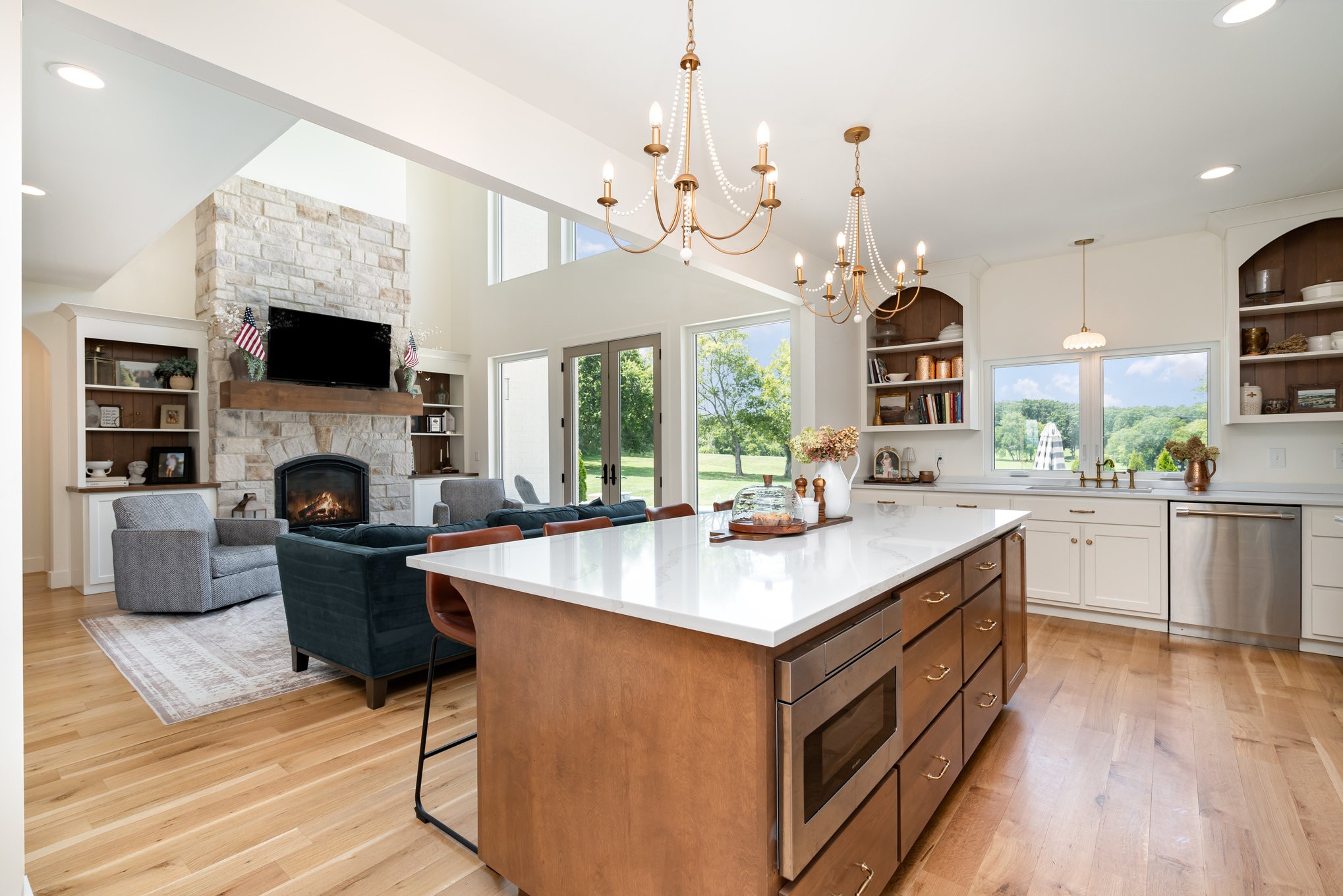 The open-concept living area centers around a cozy natural gas fireplace, creating a warm and inviting atmosphere. Flowing seamlessly from the living room, the kitchen boasts a 48" 8-burner gas range, soft-close cabinets, and a spacious walk-in pantry, perfect for both cooking and entertaining. Upstairs, a spacious bonus room provides a versatile space ideal for a media room, home office, or play area. Featuring premium elements such as spray foam insulation, Clad windows and doors, a tankless water heater, a whole-home water softener and filtration system, and a semi-conditioned crawl space, this home combines superior comfort and efficiency.