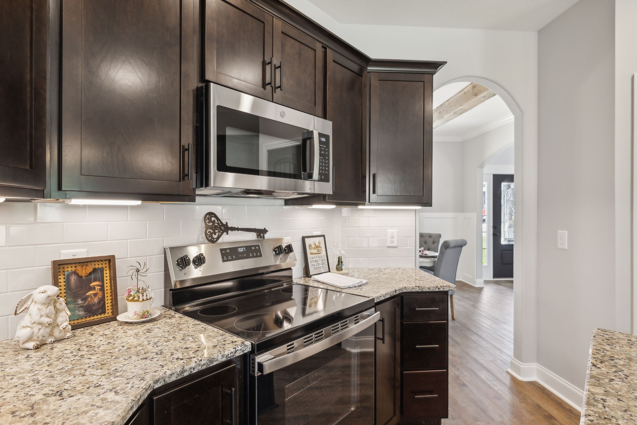 Enjoy premium features throughout—rocker light switches, stairway and under-cabinet lighting, granite countertops, and soft-close cabinetry. The open-concept kitchen and living area are ideal for both everyday living and entertaining, and a formal dining room adds a classic touch. With three full bathrooms, a centrally located upstairs laundry, and quality finishes throughout, this home is a must-see.