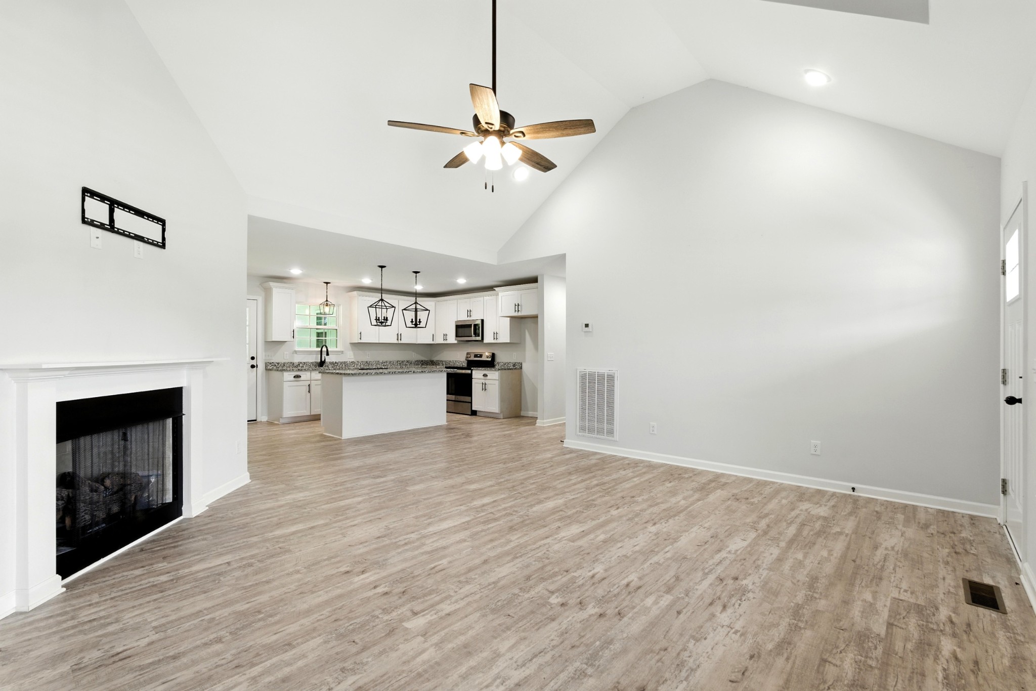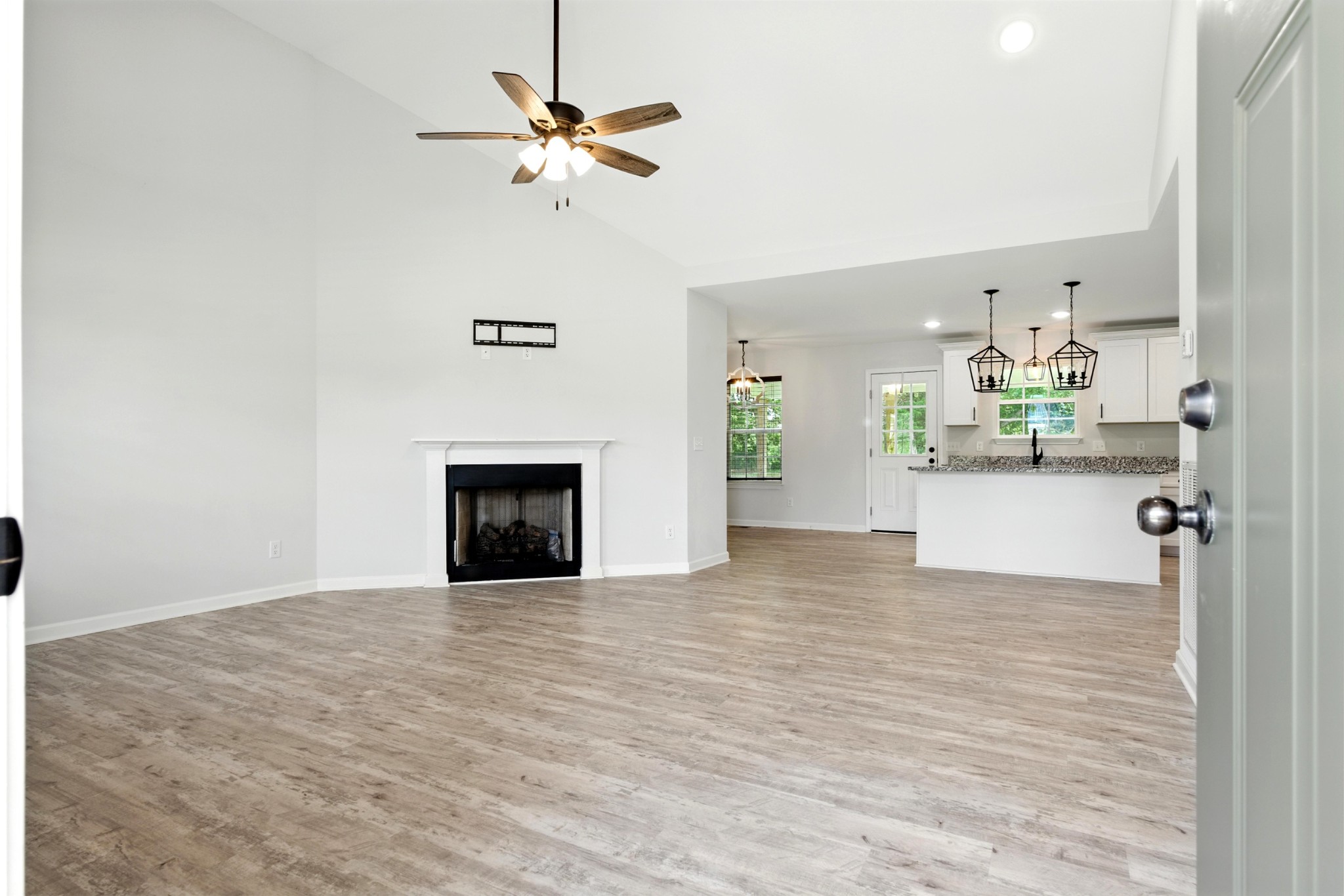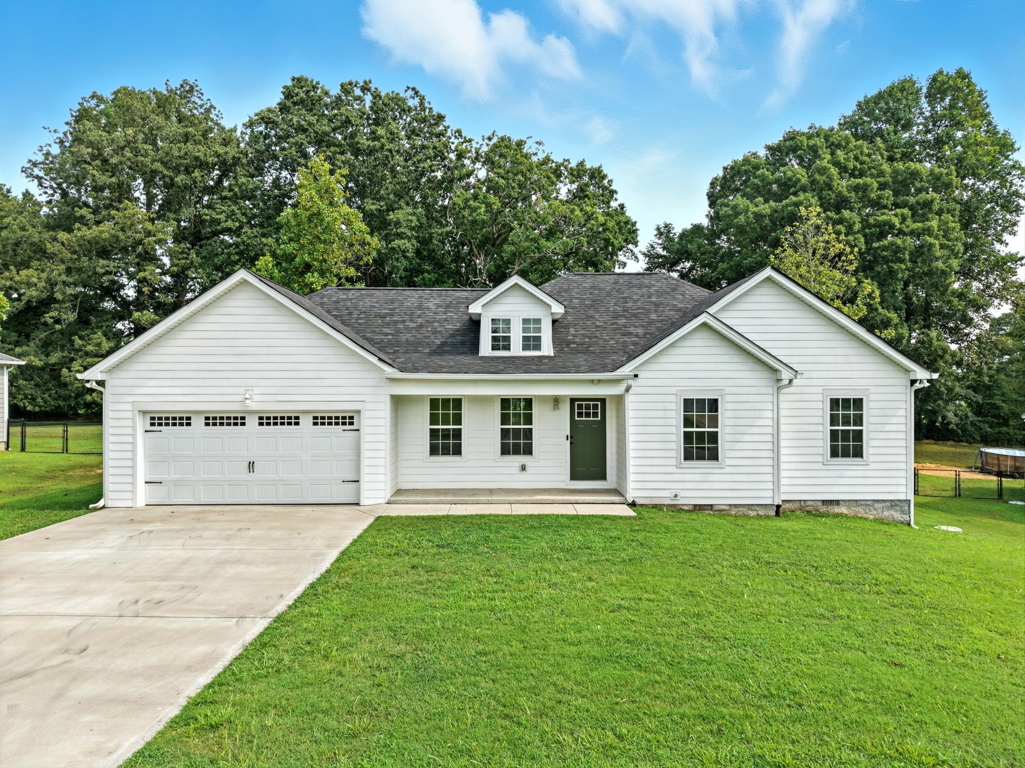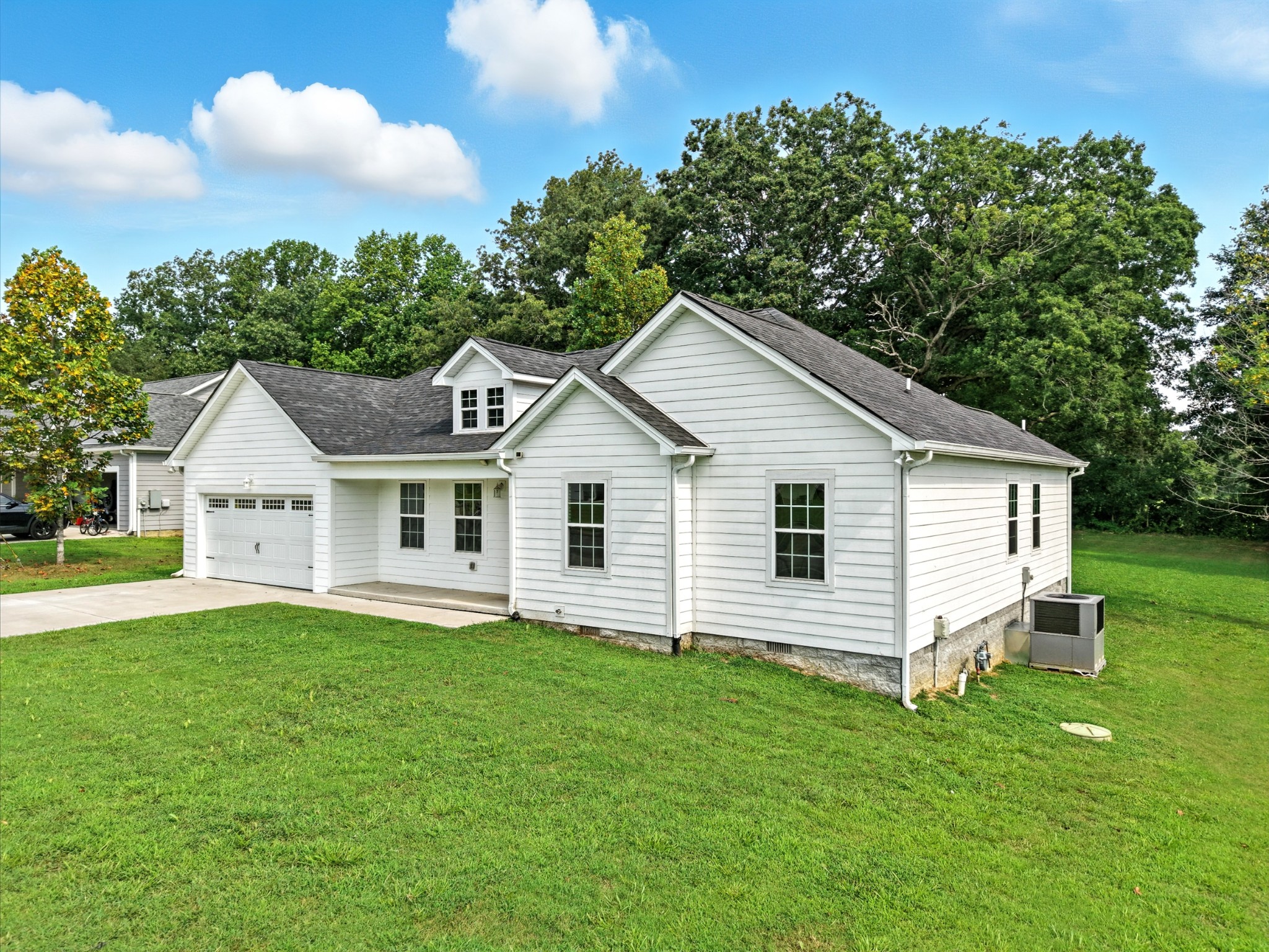Located 30 minutes from Nashville this charming home is nestled in the heart of White Bluff's premier neighborhood, Bell Forge. All one level, crisp and clean and move in ready~with multiple state parks close by, it's accessibility to nature is a perfect balance of city ammenities and countryside fun for kayaking, cycling, hiking and outdoor enjoyment. Large living spaces with vaulted ceilings, upgraded luxury vinyl plank and tile floors, granite counter tops, gas fireplace, polished and stained garage floor, large master with large master bath, double vanities, tile tub surround, 2 walk in closets and laundry make this home a STANDOUT! This home offers outdoor spaces under cover of roof and overlooking a private, peaceful and level backyard that backs up to a farm. Owner/Agents