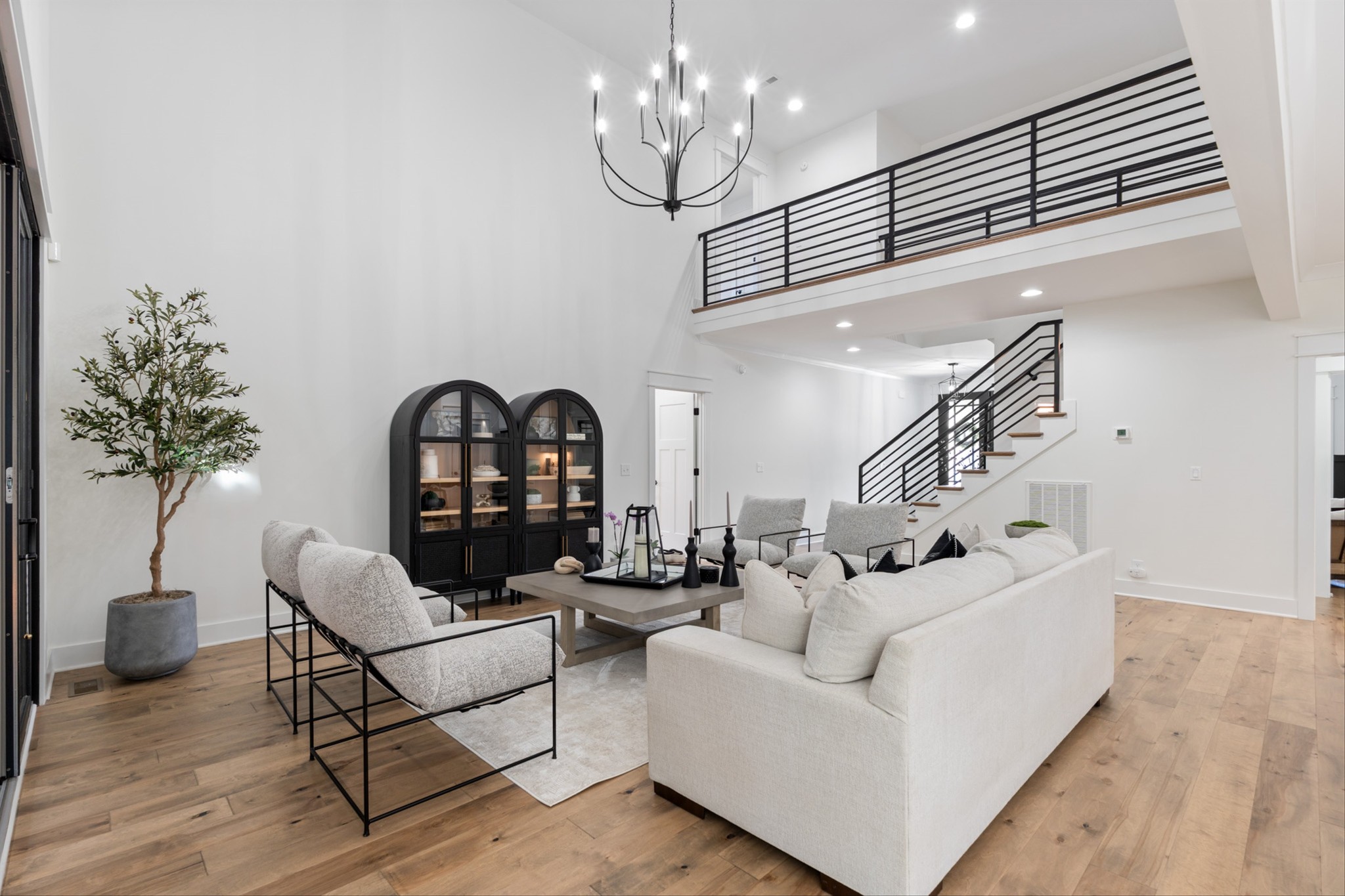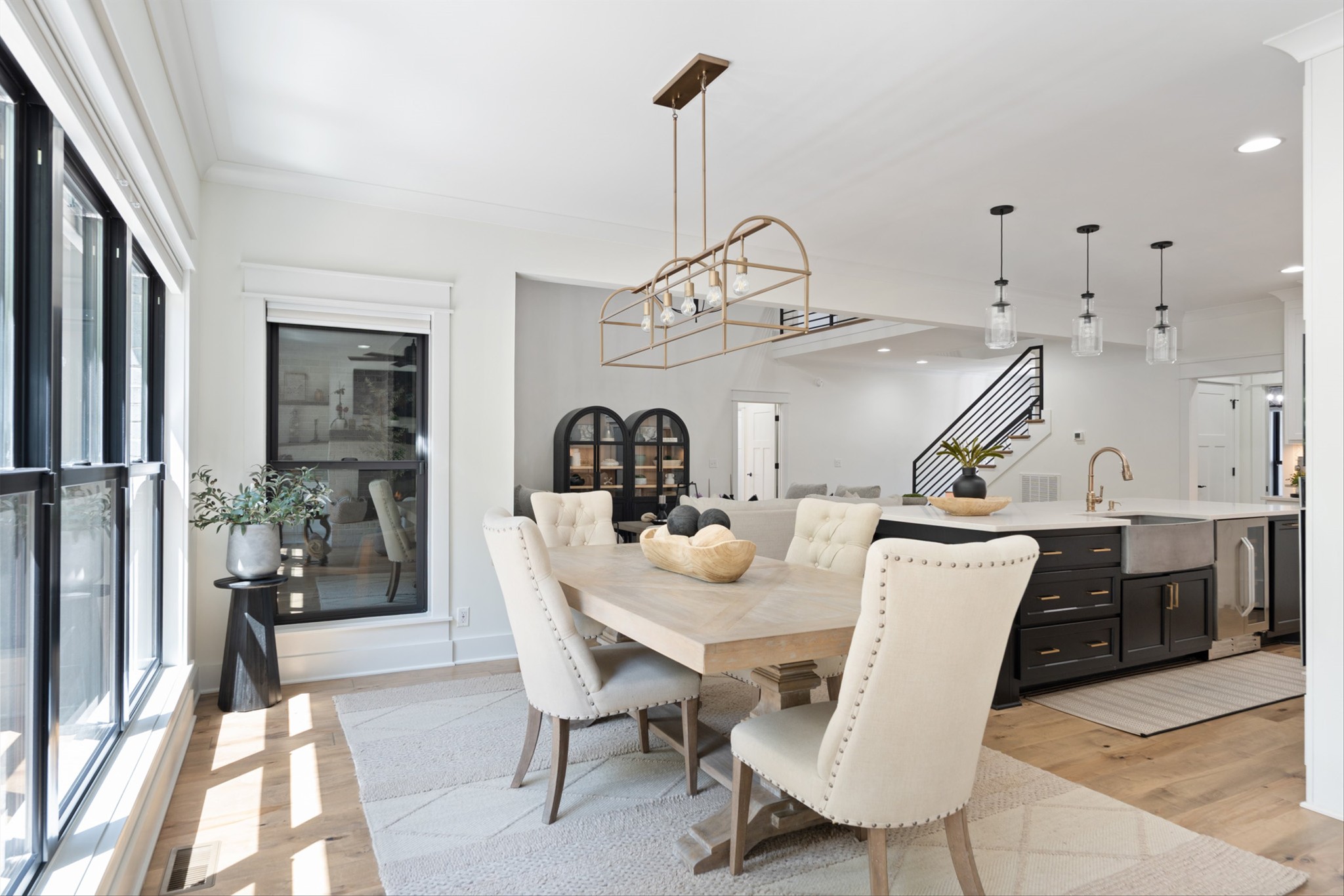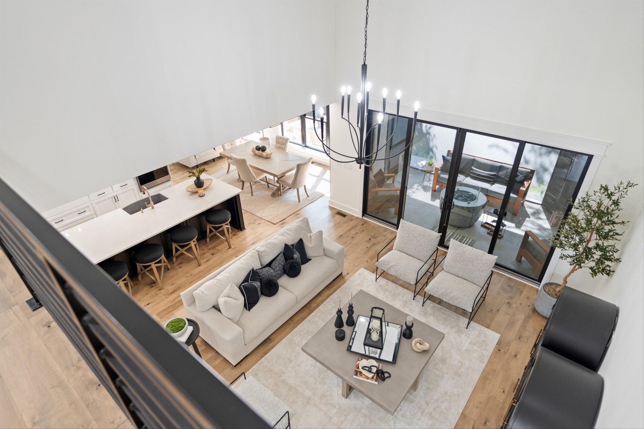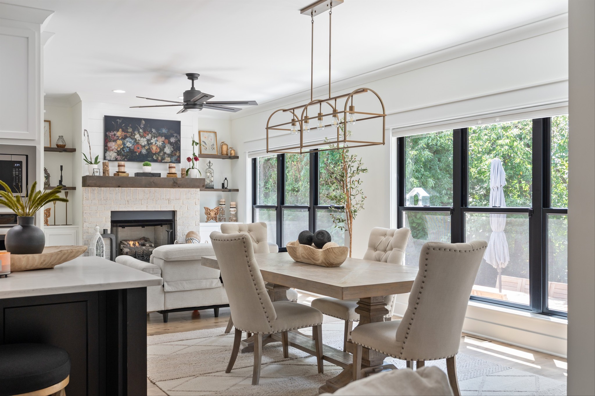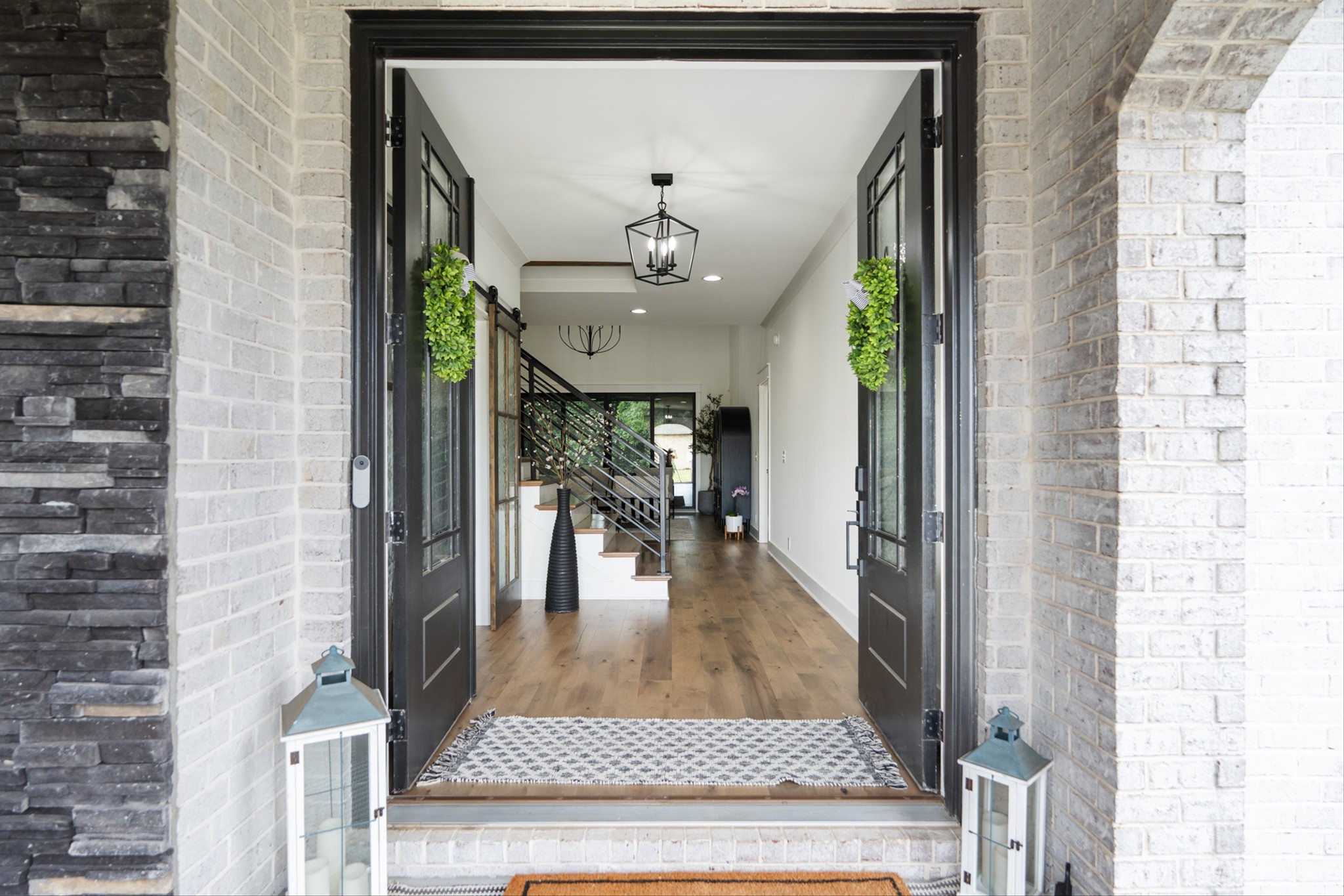 Luxury living custom-built awaits you! 5 BR & 4 full BTH, it's a dream come true! Upon entering, you'll immediately notice the exquisite upgrades throughout the home. The spacious entryway leads to a formal dining room, complete with glass sliding doors & a hidden pocket door. This room can easily be transformed into an office or, as the current owner has done, a charming wine room. The living room, featuring a soaring 20' ceiling that flows seamlessly into the gourmet kitchen. This kitchen is truly the heart of the home. It's equipped with custom cabinetry, a walk-in pantry, a gas cooktop w/ a vented hood, a pot filler, a modern backsplash, a concrete farmhouse sink, a wine fridge, & a 10' island w/ ample storage. Adjacent to the kitchen is a cozy breakfast nook & a hearth room, highlighted by a gas fireplace that serves as a stunning focal point. This space is ideal for family gatherings during meal prep & casual dining. To the left of the hearth room, you'll find a full bathroom & a guest bedroom, tucked away for your guests' privacy. Conveniently located downstairs is the laundry room, complete with a sink for added ease. The primary suite is also on the main level, featuring a coffered ceilings & a sitting area that creates a luxurious & functional retreat for relaxation or reading, separate from the main sleeping area. The primary bathroom boasts a spa-like atmosphere with dual shower heads & a rainfall shower head. You'll also find a walk-in master closet with built-in shelves. As you head upstairs note the custom iron handrail & the beautiful hardwood floors throughout. A catwalk overlooks the living area & front entryway. Upstairs, there are 3 BR, 2 full BTH, & a bonus room equipped w/ surround sound, a sink & a wine fridge making it the perfect media room. The sliding glass doors downstairs will lead to the screened-in covered back patio complete w/ a gas fireplace & TV hookup. Extended concrete patio is ideal for additional seating or a grilling space.
