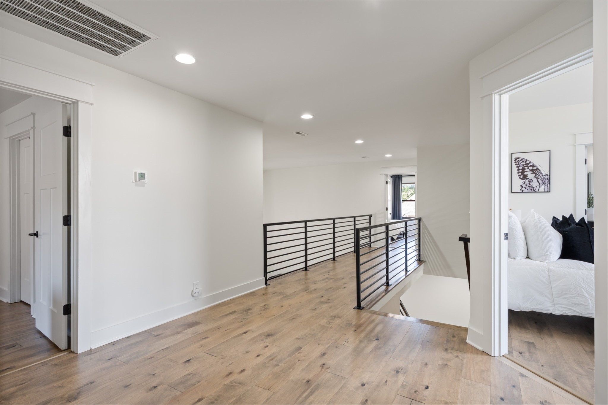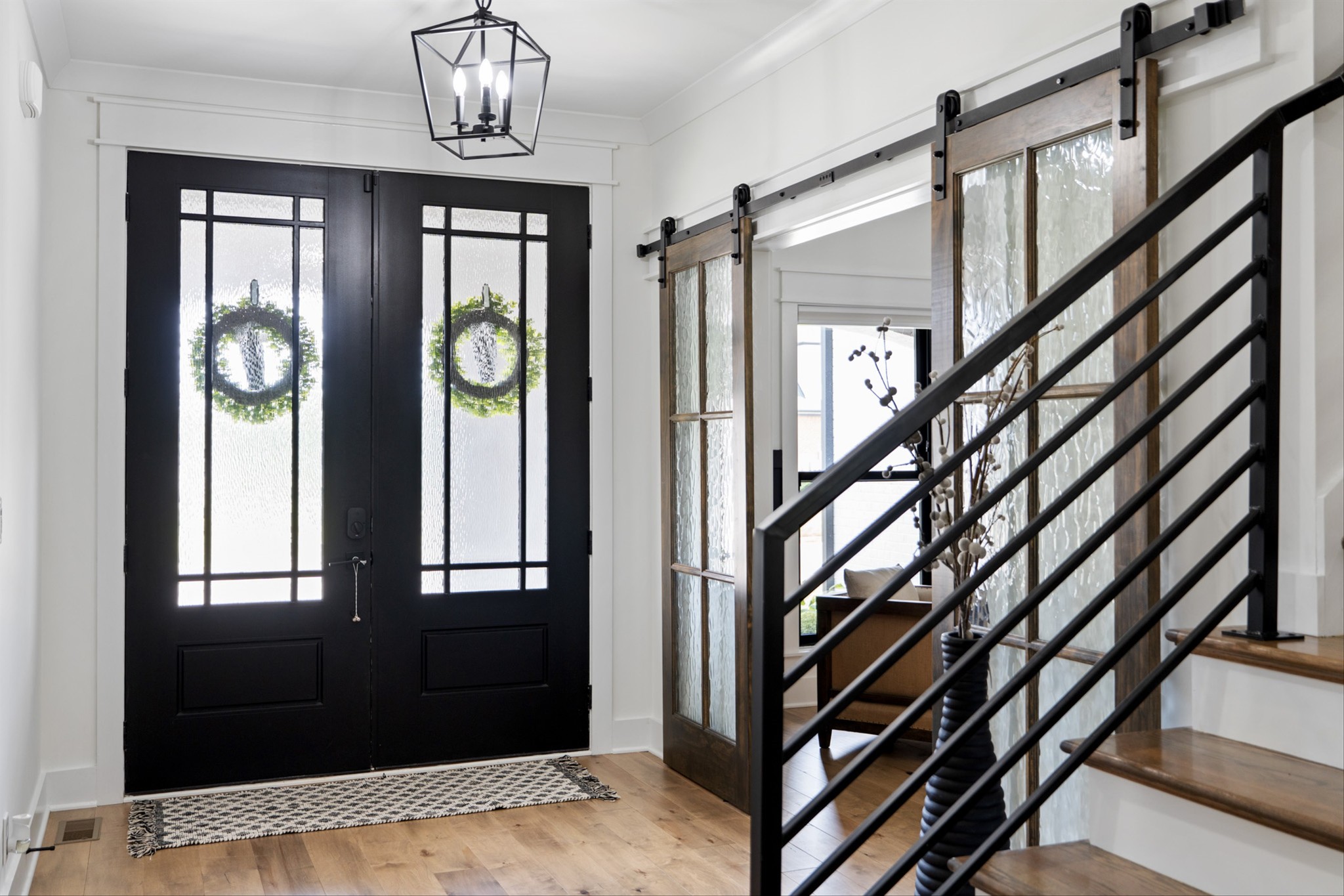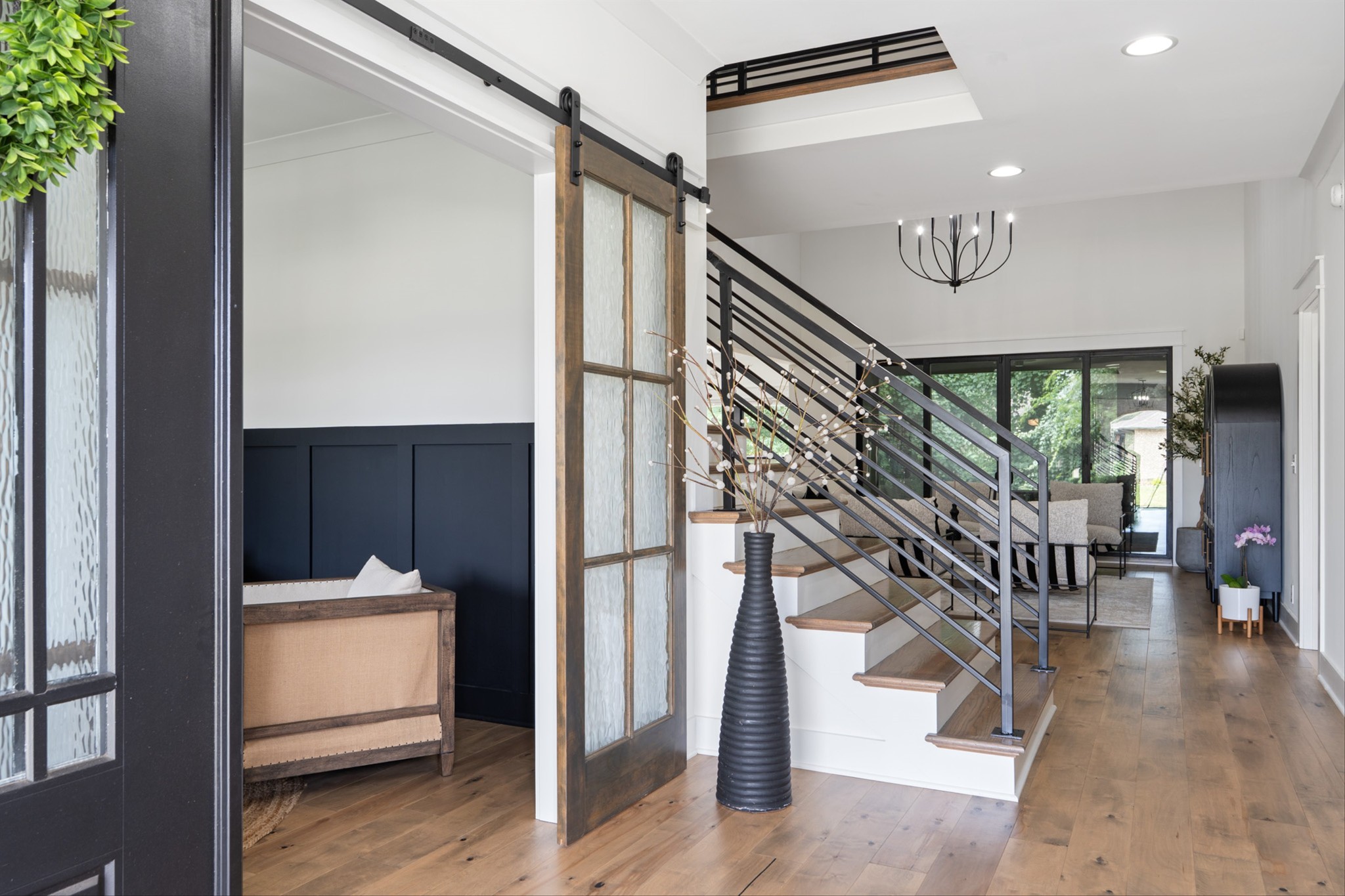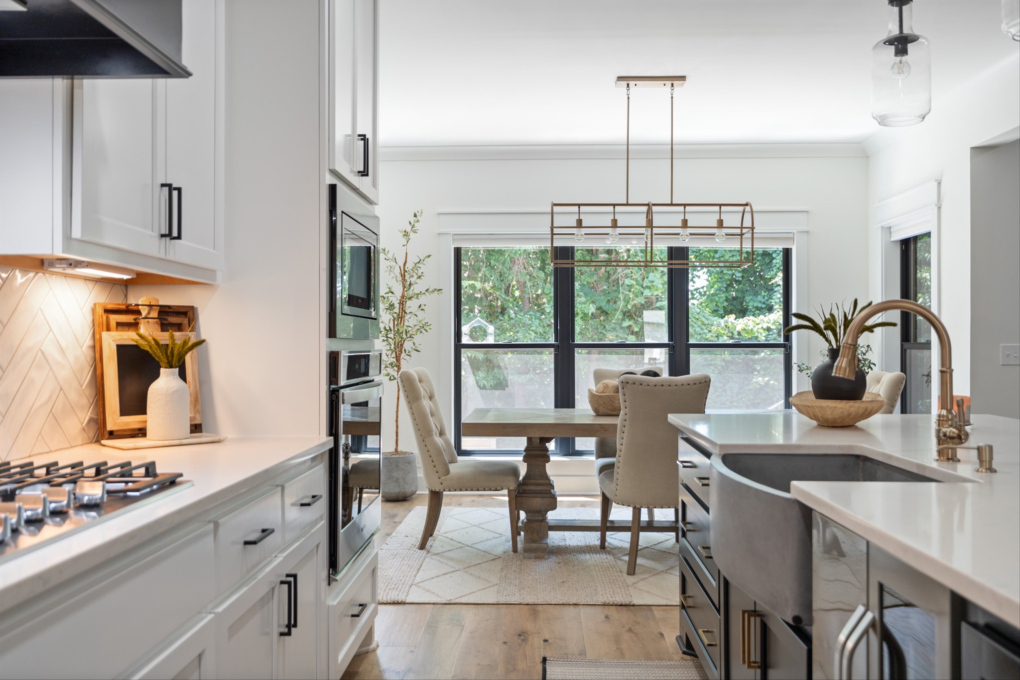 Luxury living custom-built awaits you! 5 BR & 4 full BTH, it's a dream come true! Upon entering, you'll immediately notice the exquisite upgrades throughout the home. The spacious entryway leads to a formal dining room, complete with glass sliding doors & a hidden pocket door. This room can easily be transformed into an office or, as the current owner has done, a charming wine room. The living room, featuring a soaring 20' ceiling that flows seamlessly into the gourmet kitchen. This kitchen is truly the heart of the home. It's equipped with custom cabinetry, a walk-in pantry, a gas cooktop w/ a vented hood, a pot filler, a modern backsplash, a concrete farmhouse sink, a wine fridge, & a 10' island w/ ample storage. Adjacent to the kitchen is a cozy breakfast nook & a hearth room, highlighted by a gas fireplace that serves as a stunning focal point. This space is ideal for family gatherings during meal prep & casual dining. To the left of the hearth room, you'll find a full bathroom & a guest bedroom, tucked away for your guests' privacy. Conveniently located downstairs is the laundry room, complete with a sink for added ease. The primary suite is also on the main level, featuring a coffered ceilings & a sitting area that creates a luxurious & functional retreat for relaxation or reading, separate from the main sleeping area. The primary bathroom boasts a spa-like atmosphere with dual shower heads & a rainfall shower head. You'll also find a walk-in master closet with built-in shelves. As you head upstairs note the custom iron handrail & the beautiful hardwood floors throughout. A catwalk overlooks the living area & front entryway. Upstairs, there are 3 BR, 2 full BTH, & a bonus room equipped w/ surround sound, a sink & a wine fridge making it the perfect media room. The sliding glass doors downstairs will lead to the screened-in covered back patio complete w/ a gas fireplace & TV hookup. Extended concrete patio is ideal for additional seating or a grilling space.