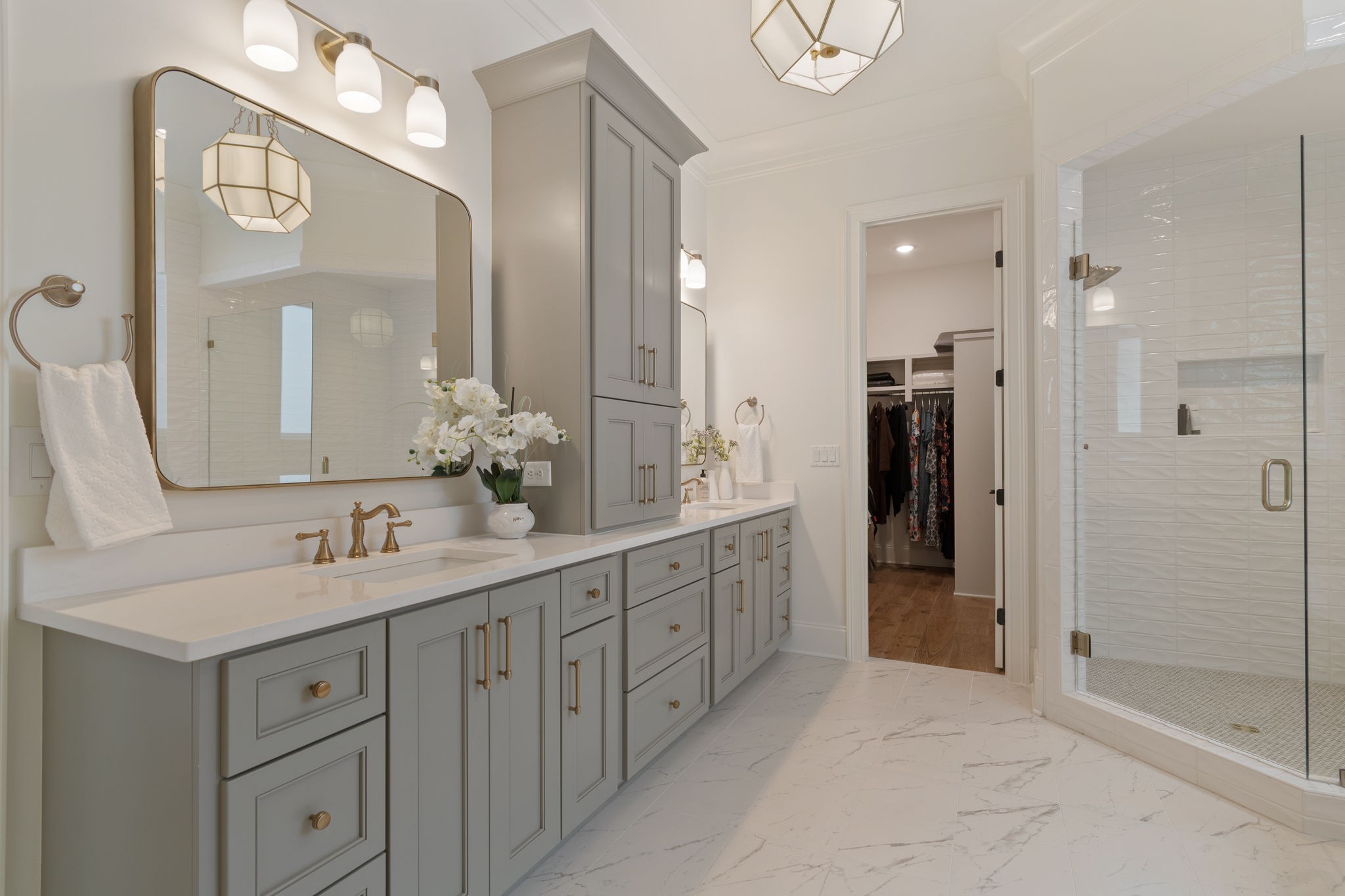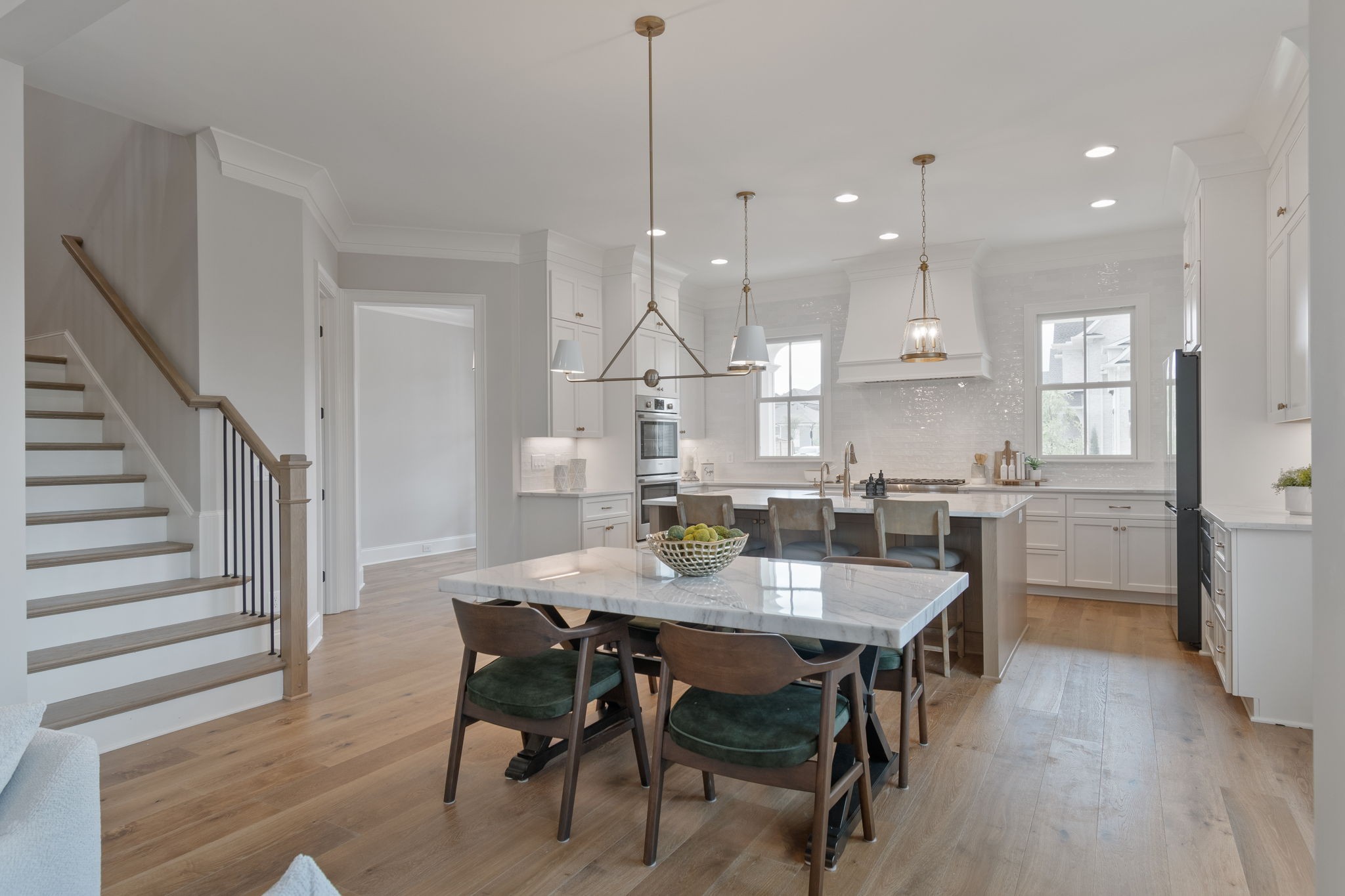 This stunning 4-bedroom, 4.5-bath home offers the perfect blend of elegance, comfort, and functionality—inside and out. Ideally situated on a desirable corner lot in the sought-after Southbrooke community, the charming exterior sets the tone for the thoughtfully designed interior filled with high-end finishes, custom details, and exceptional craftsmanship throughout. Step inside to discover a bright, open layout with amazing natural light, hardwood flooring on the main level, and crisp white finishes accented by warm natural wood tones, creating a clean yet inviting aesthetic. The chef’s kitchen is a true showstopper, featuring ceiling-height custom cabinetry, a full-height tile backsplash, upgraded appliances, a spacious center island, and a walk-in pantry with built-in shelving. The adjacent living room exudes character with a coffered ceiling, built-ins flanking a gas fireplace, and large windows that flood the space with light. The main-level primary suite is a serene retreat with a natural wood beam ceiling, a spa-like bath featuring a standalone soaking tub, an oversized walk-in shower with floor-to-ceiling tile, double vanities with ample storage, and a custom walk-in closet. A private office on the main floor provides the ideal work-from-home setup, while the upper level offers three generously sized bedrooms, three full bathrooms, plus a spacious bonus/rec room perfect for relaxing or entertaining. Enjoy outdoor living year-round on the covered back porch with a wood-burning fireplace, overlooking the fully fenced backyard. Enjoy extra storage with two walk in attics and bonus additional flex room (a gym, craft room, or play room!) Take advantage of the gorgeous community amenities including pool, tennis, pickleball and basketball courts! This meticulously maintained, move-in-ready home truly has it all—luxury, livability, and location.