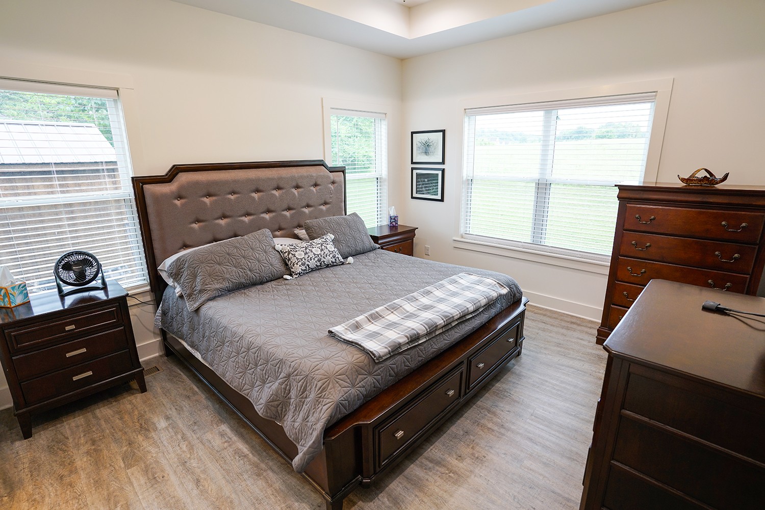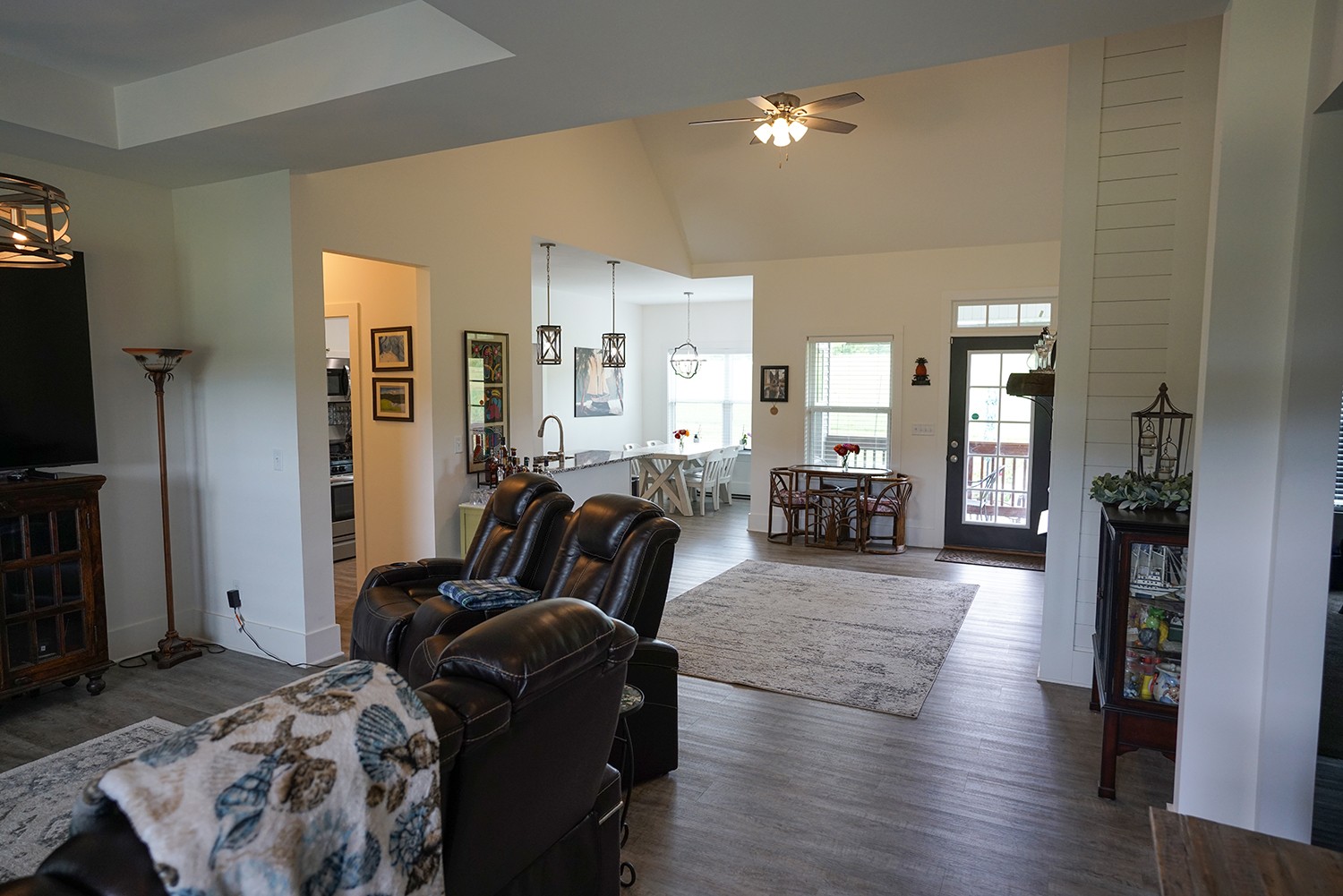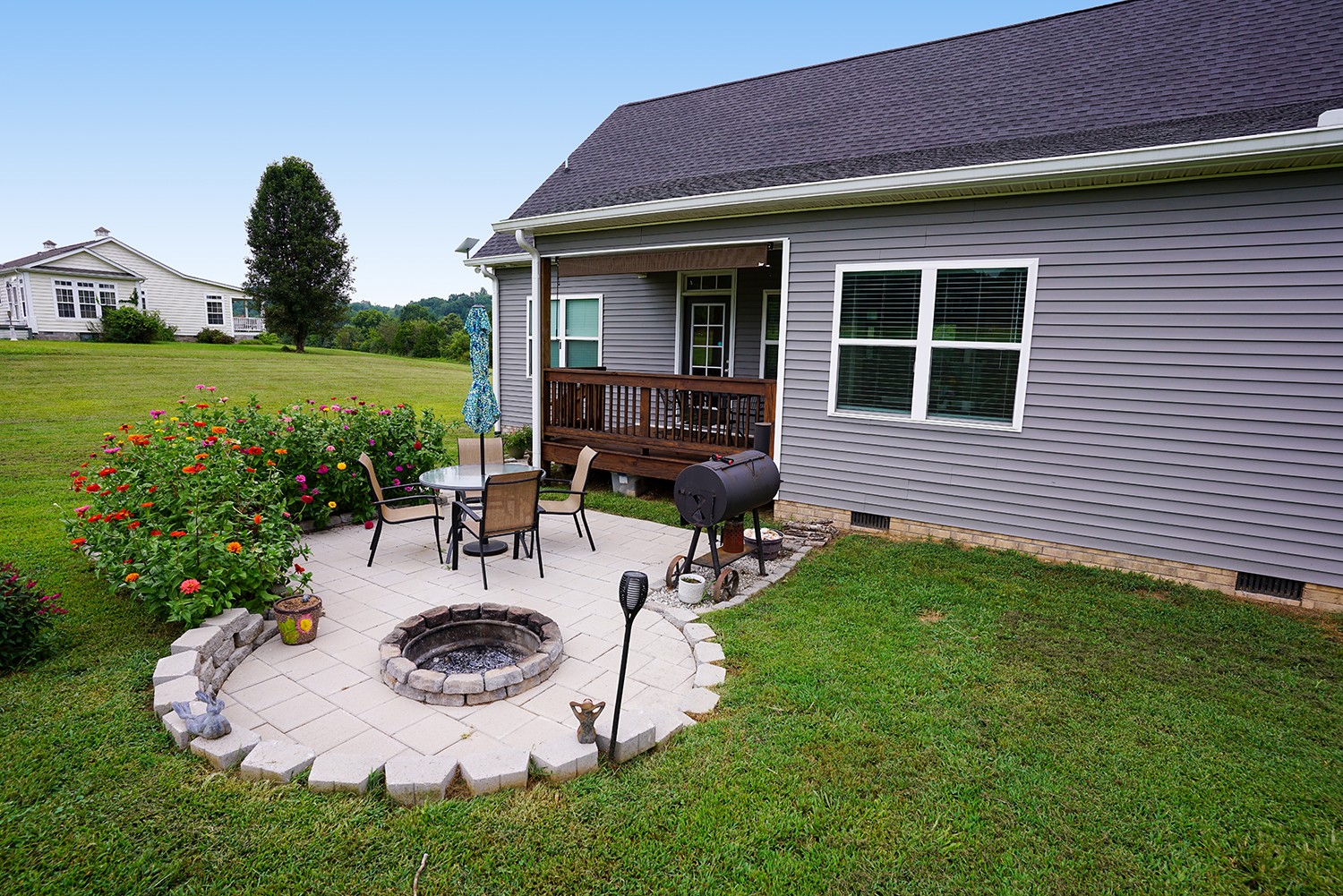 Shows like new 3 Bed Rm 2 Ba Home W/Bonus Room Over Garage, Partial Brick/vinyl siding, White shaker Cabinets with Granite Counter Tops, Stainless Appliances, Tiled bathrooms and laundry rm, Primary Bath has Free standing soaking tub, Tiled shower, Double Vanity, Gas fireplace, Gas HVAC, Gas Tankless Water heater, Vaulted Ceilings, 9 ft Ceilings, Underground Electric, Nice level Lot, 2 car garage, covered front and back porch. Patio with fire pit.