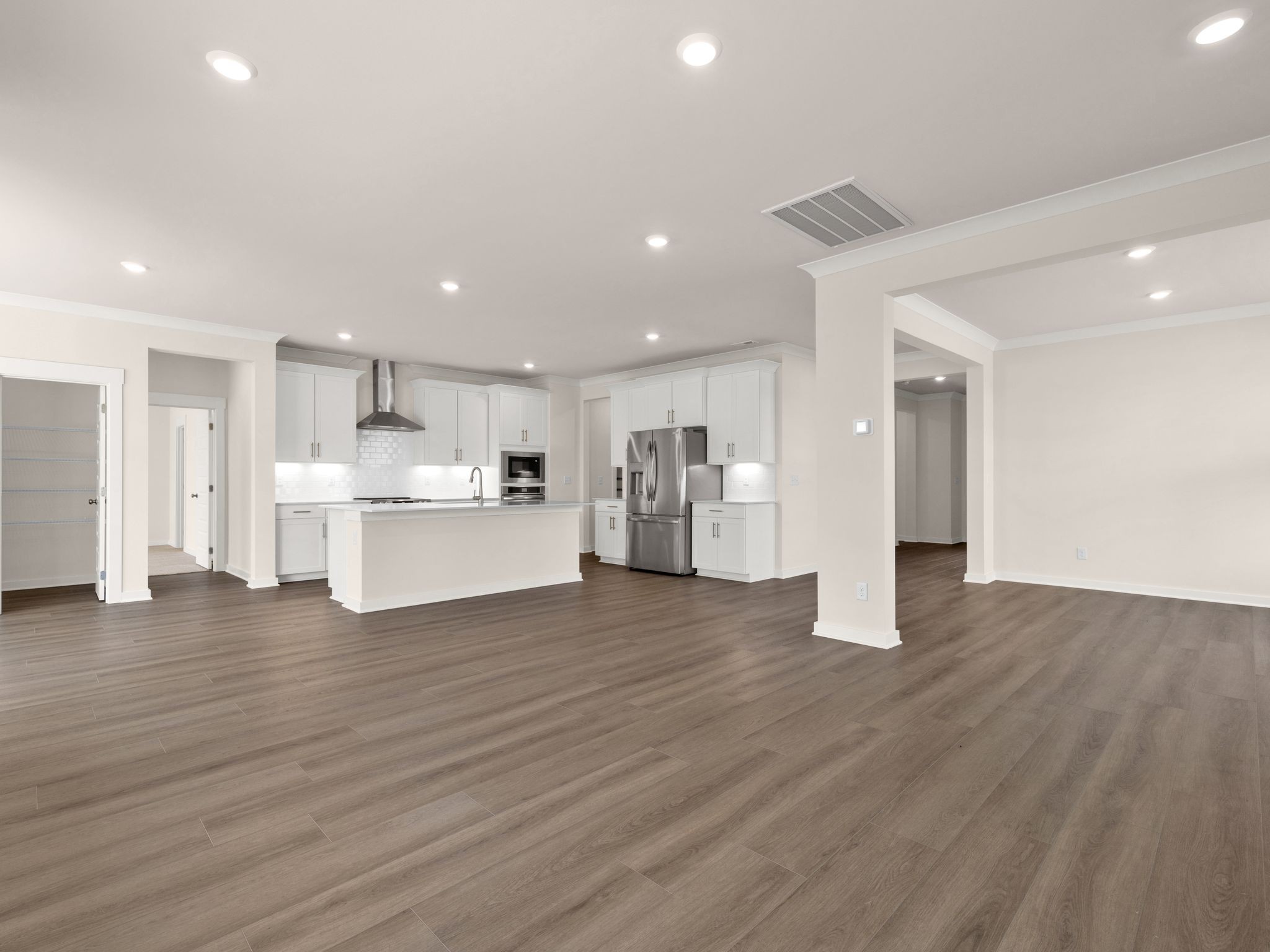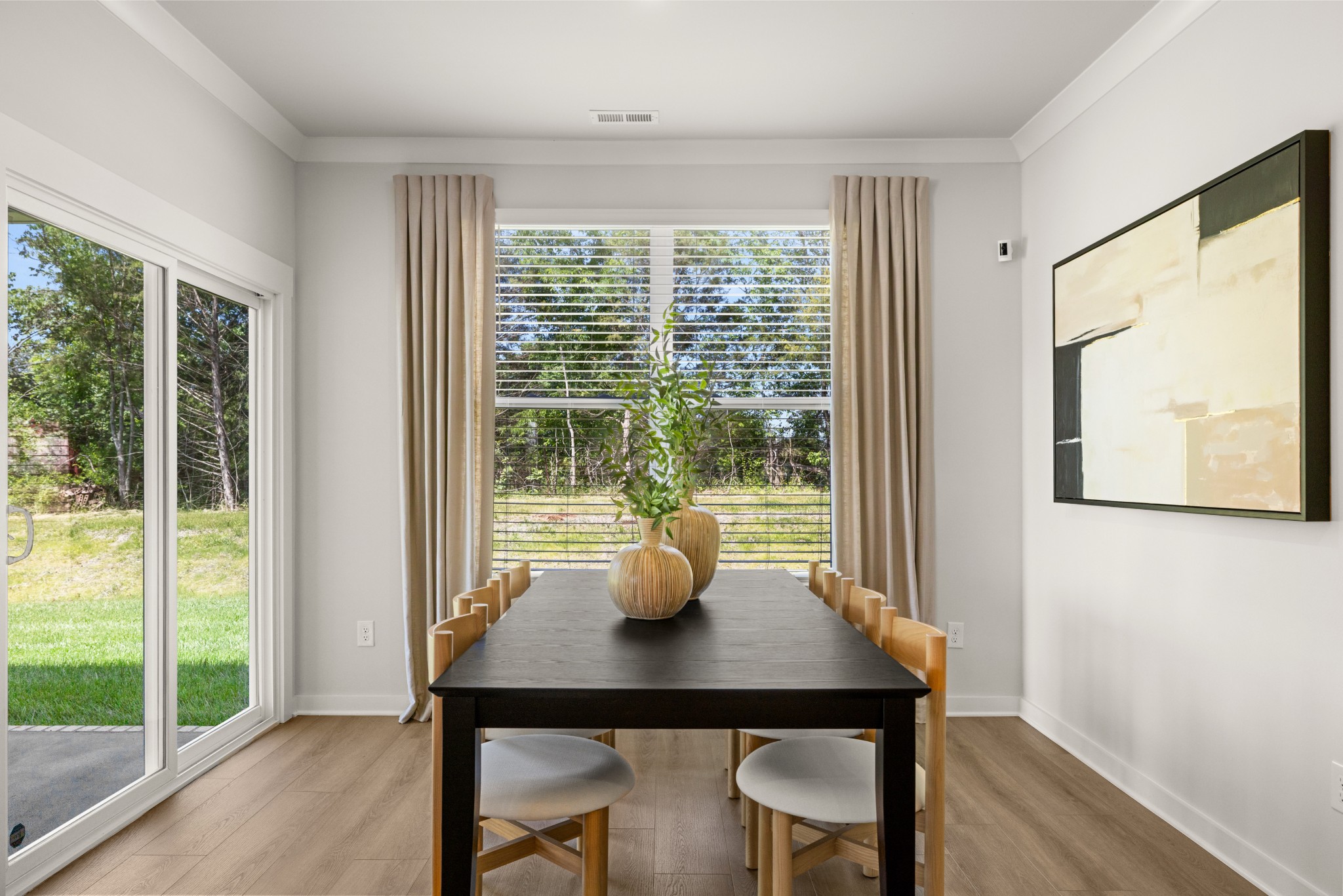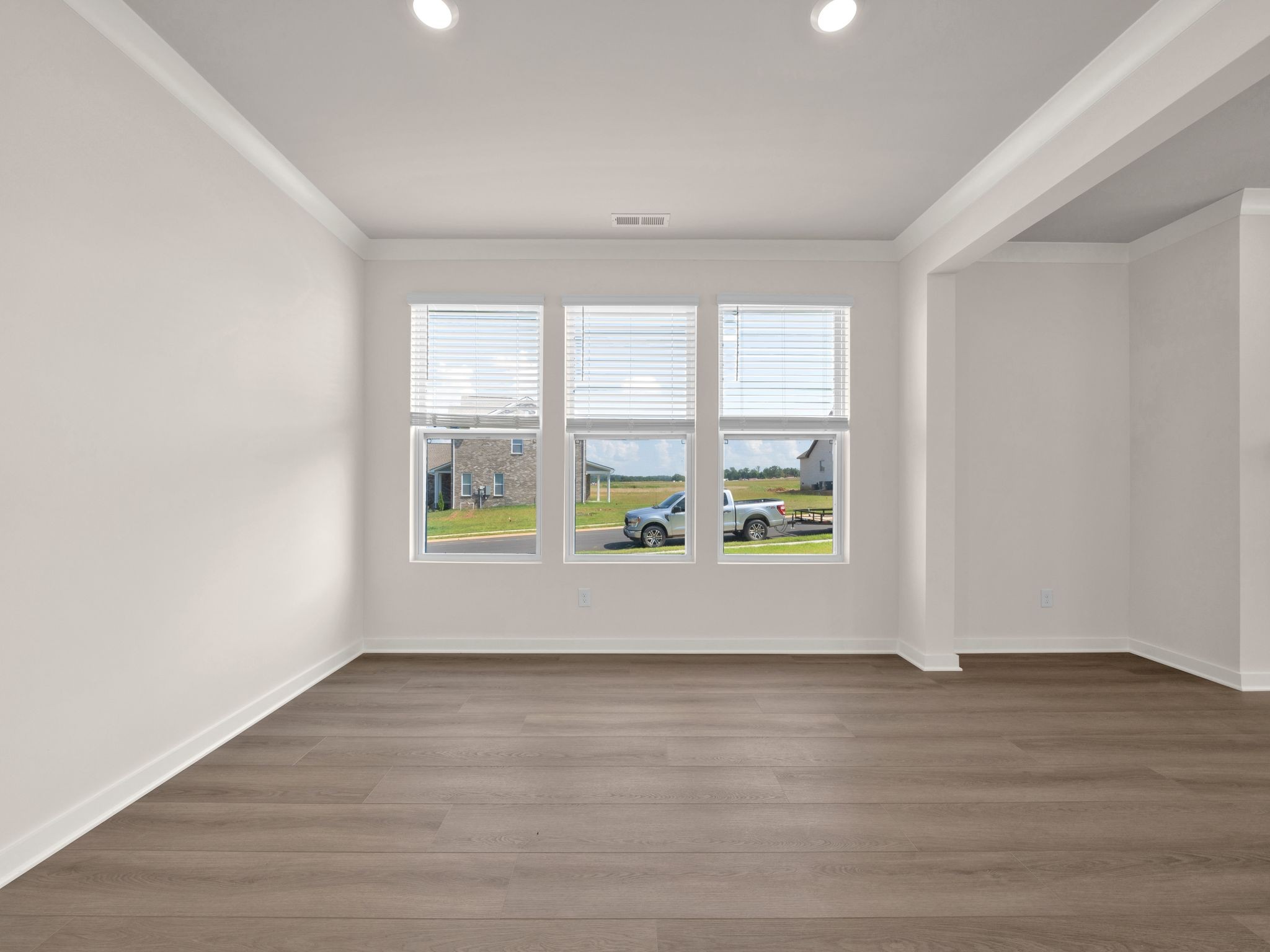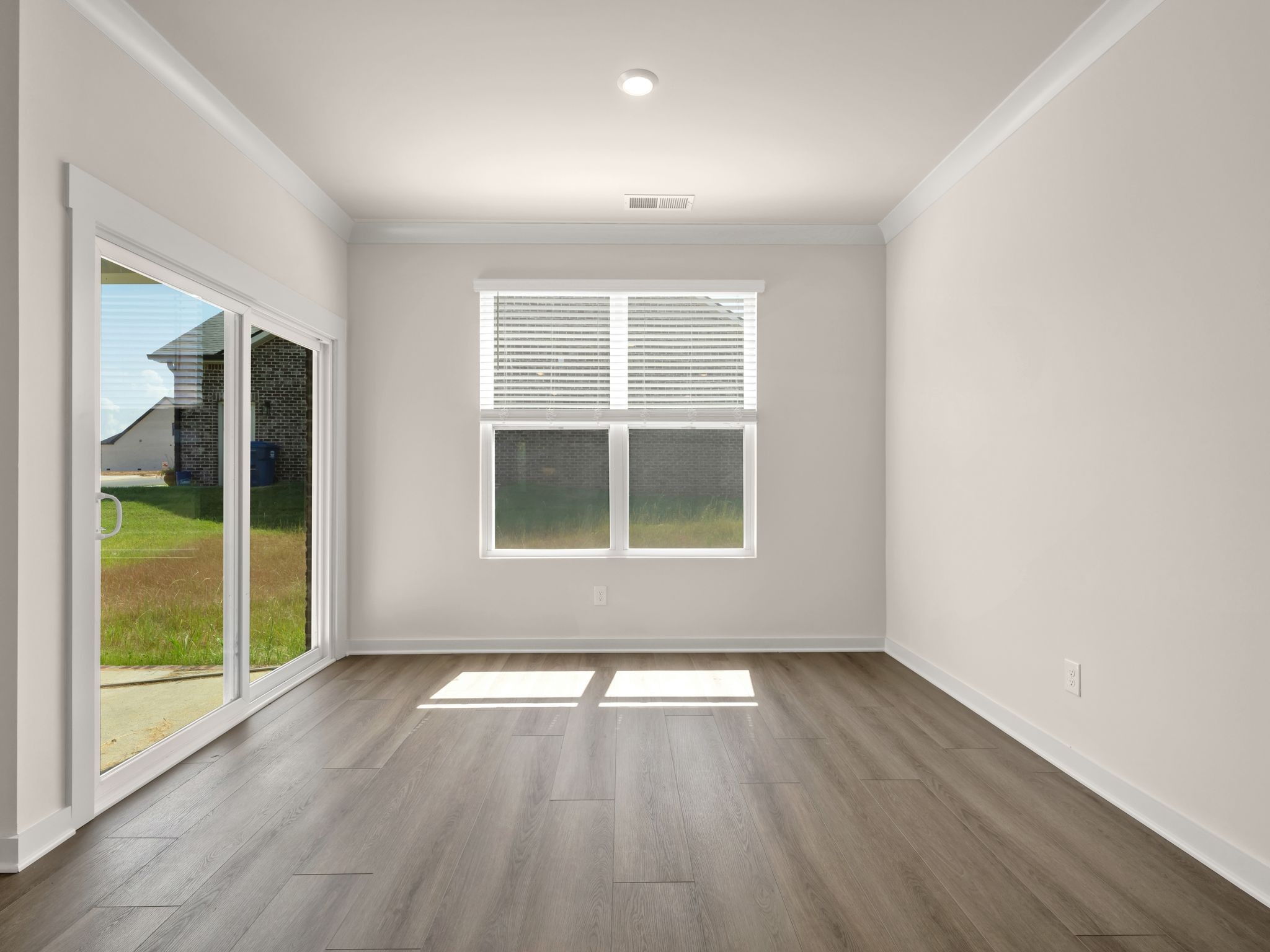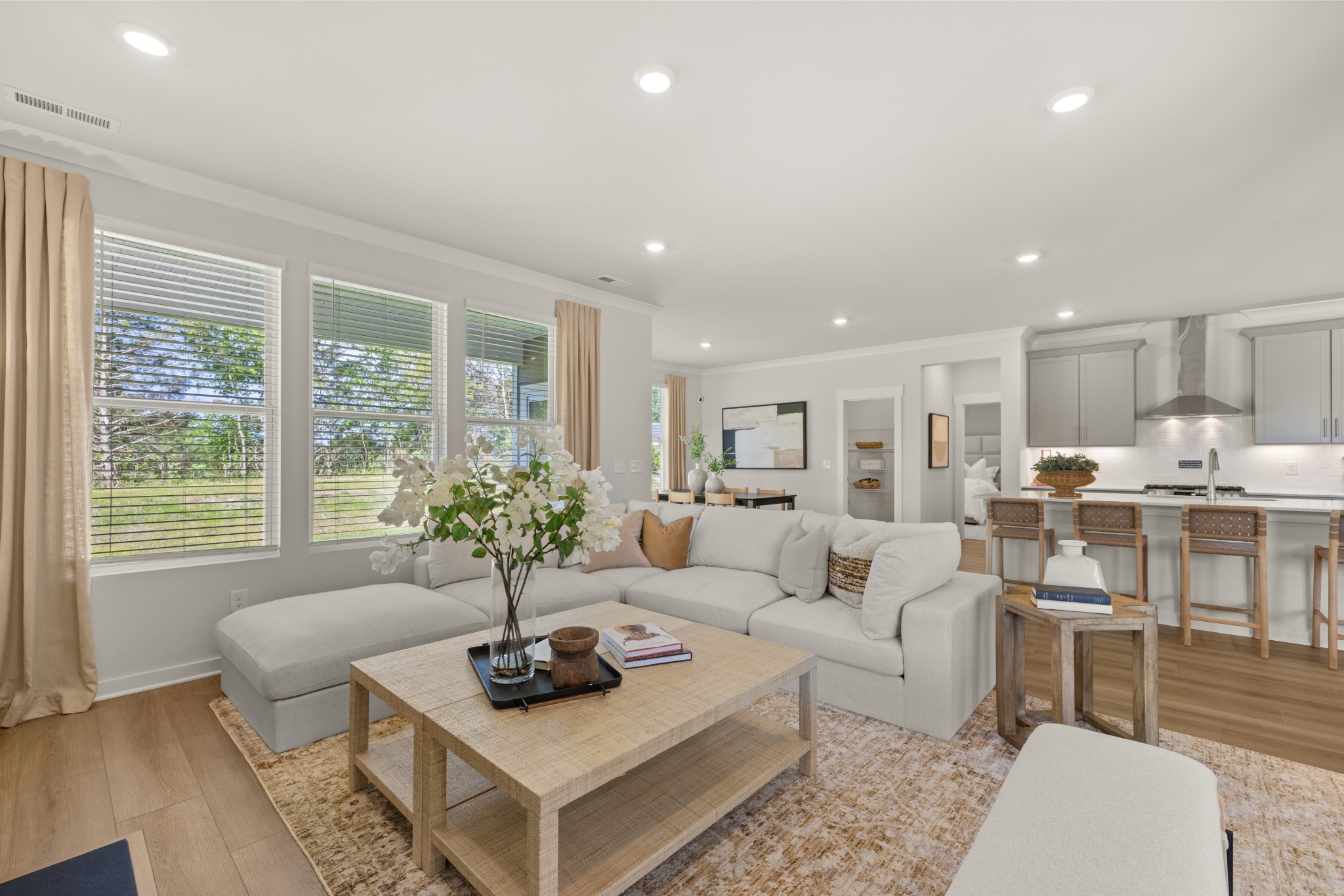 LOT #73 - Choral floorplan. This single-story home shares an open layout between the kitchen, nook and family room for easy entertaining and access to the covered patio for outdoor relaxation. A separate formal dining room is perfect for hosting dinner parties with loved ones. A luxe owner’s suite is in a rear corner of the home with an en-suite bathroom and walk-in closet, while three secondary bedrooms are at the front of the home, one with an en-suite bathroom, ideal for overnight guests.