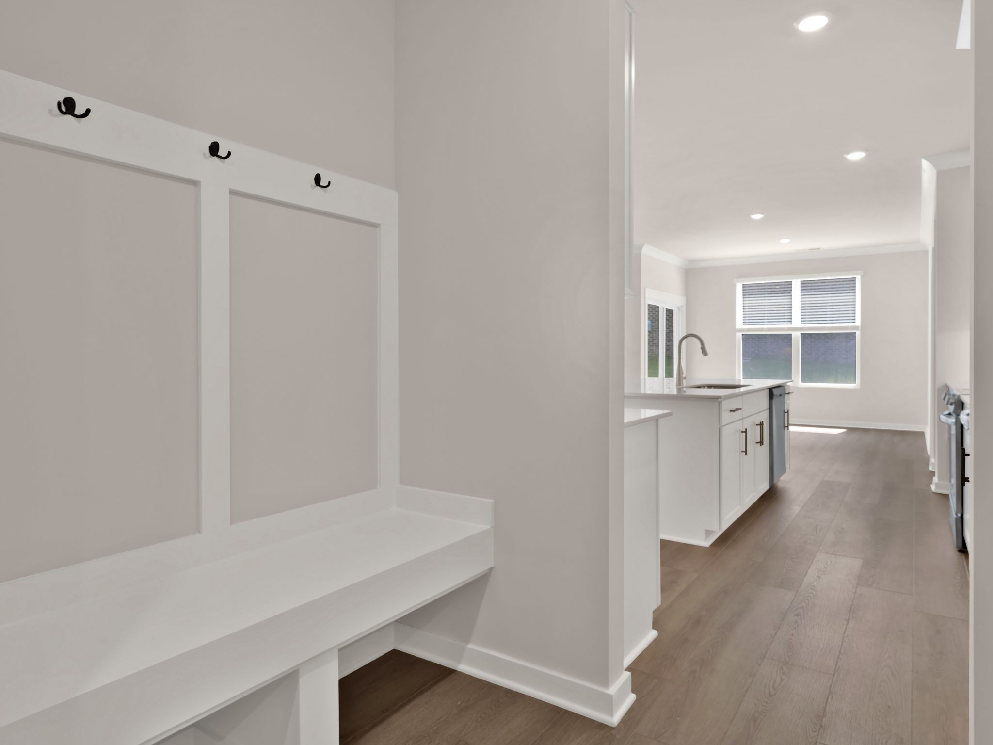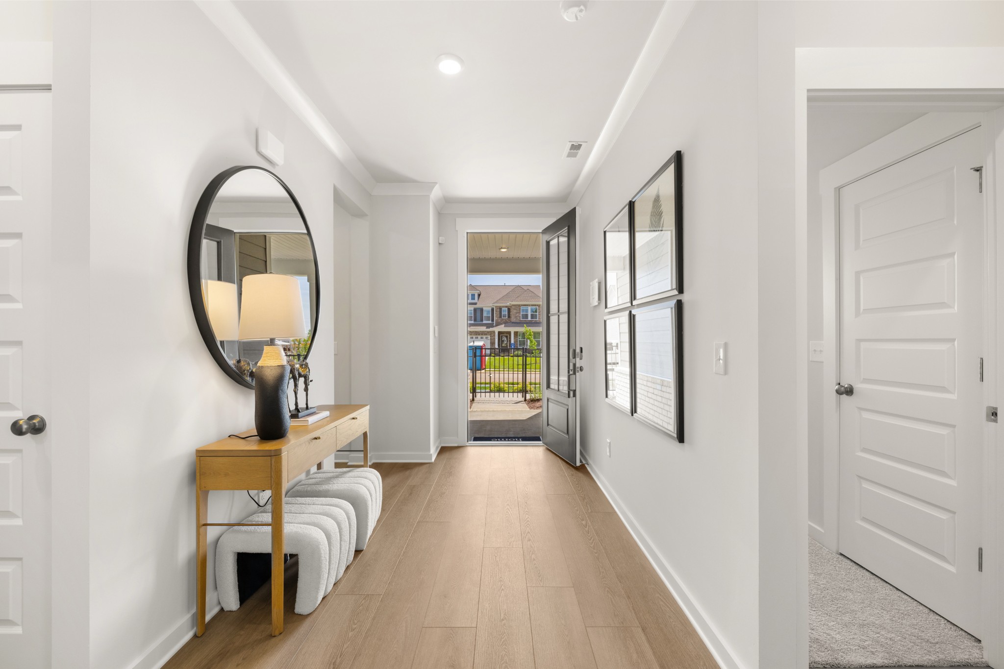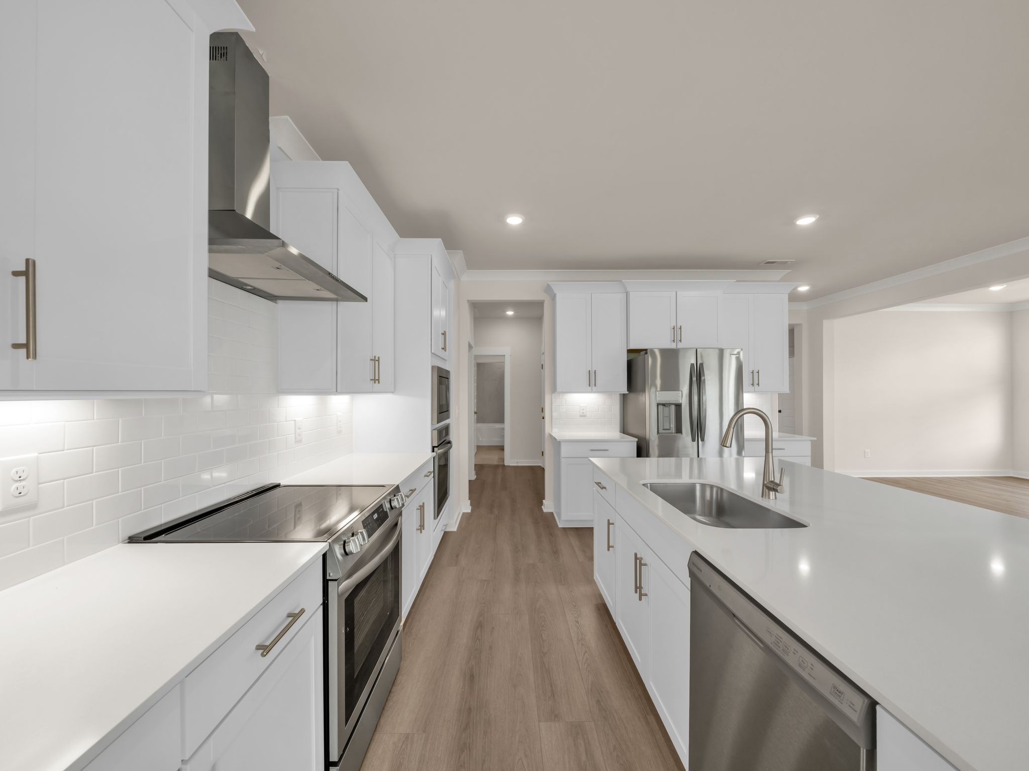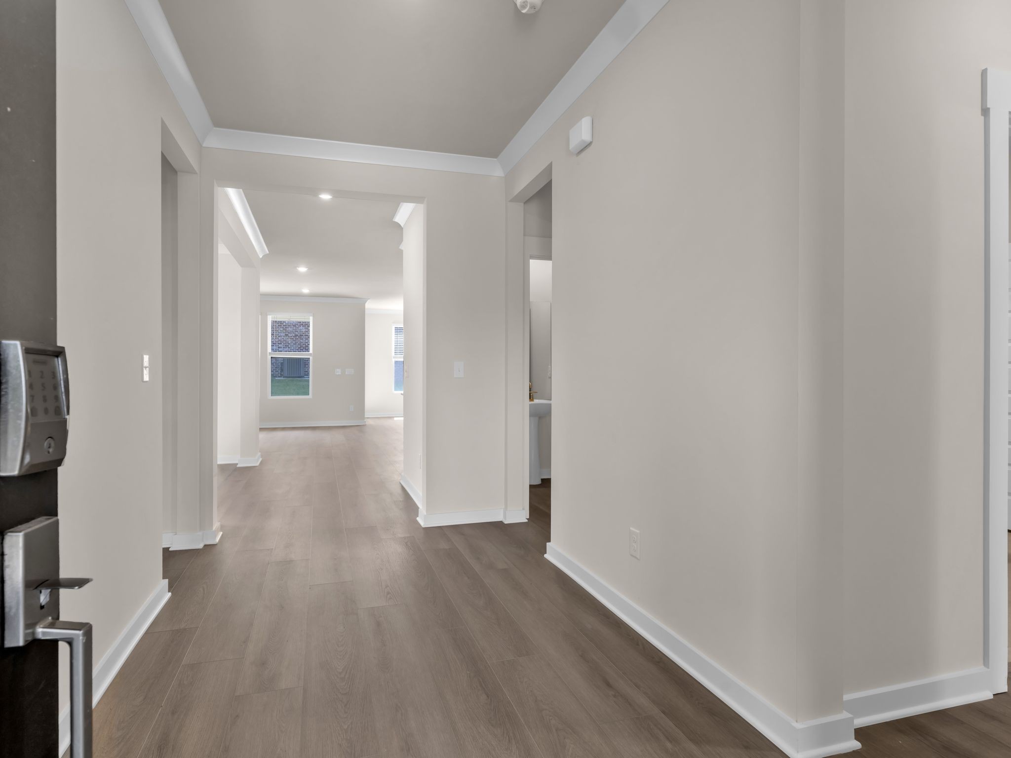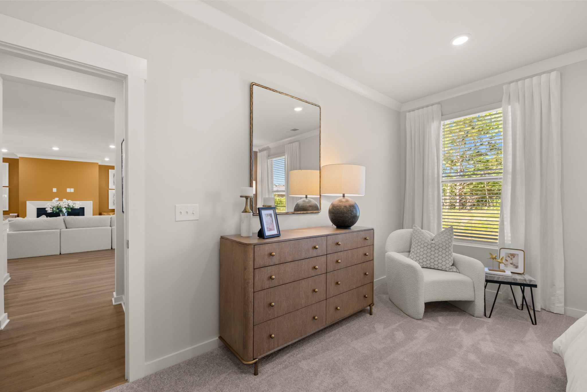 LOT #73 - Choral floorplan. This single-story home shares an open layout between the kitchen, nook and family room for easy entertaining and access to the covered patio for outdoor relaxation. A separate formal dining room is perfect for hosting dinner parties with loved ones. A luxe owner’s suite is in a rear corner of the home with an en-suite bathroom and walk-in closet, while three secondary bedrooms are at the front of the home, one with an en-suite bathroom, ideal for overnight guests.