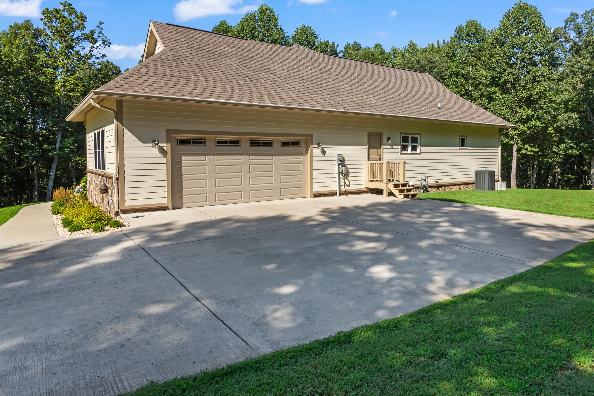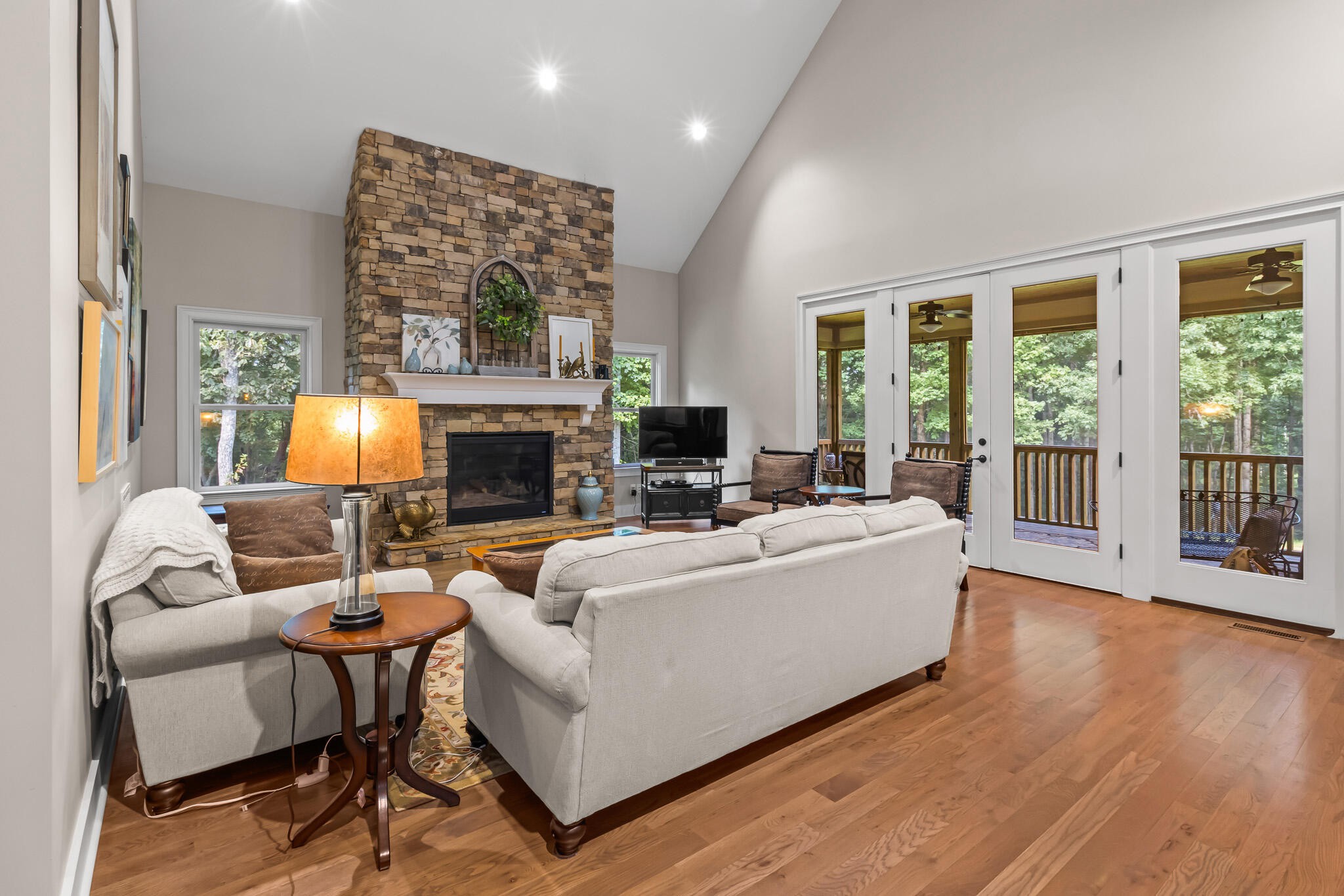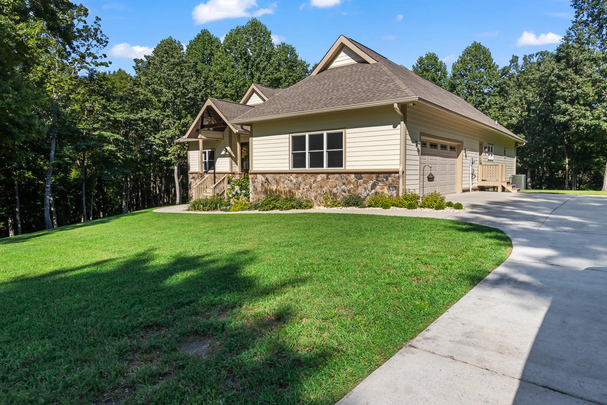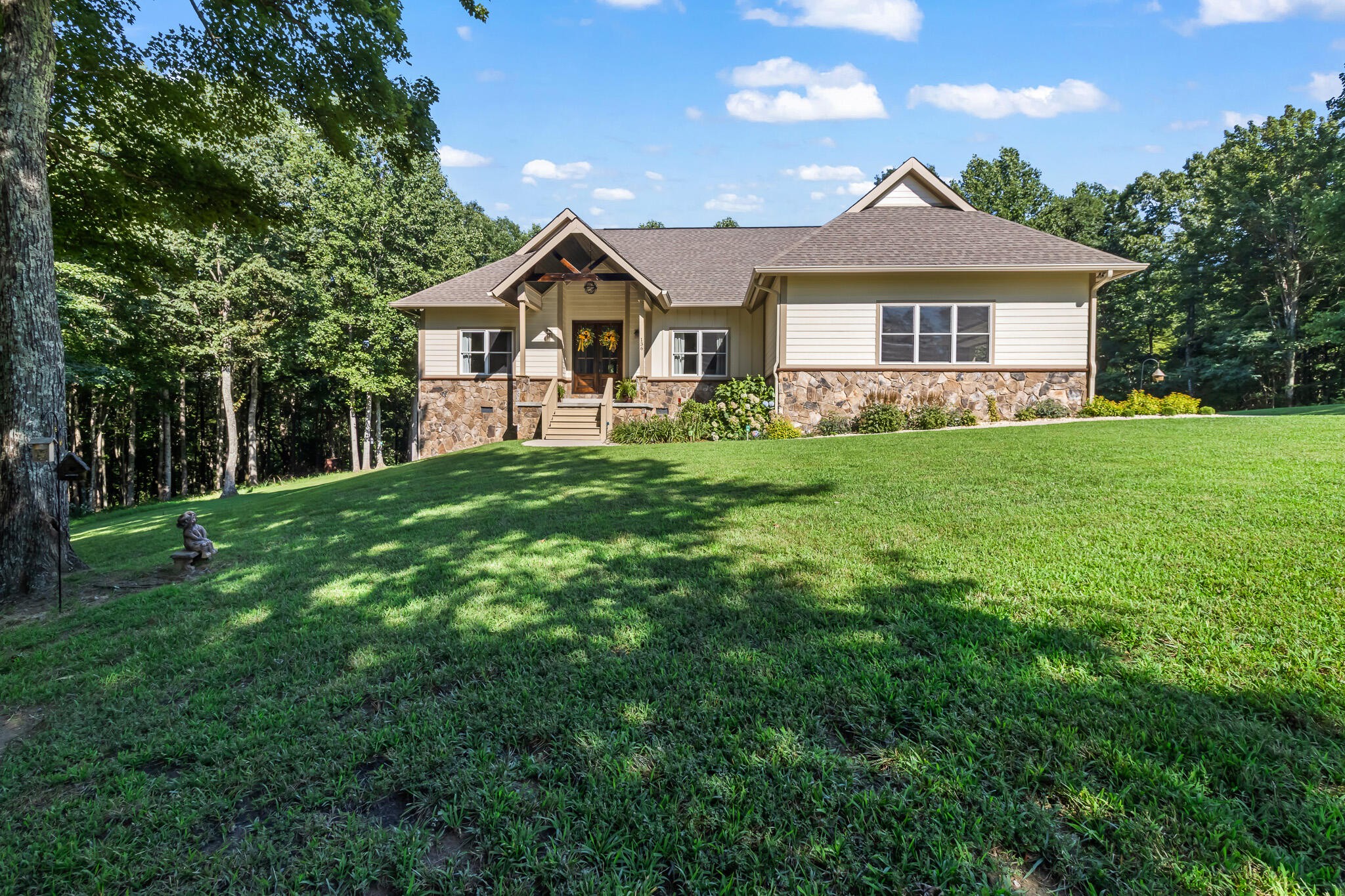 Welcome home! This beautiful 3 bedroom, 2 bath home with 2881 square foot of living space is neat as a pin and would make a great primary or secondary home. As you walk up to the home you will notice the neat appearance and well kept grounds. The front door is beautiful with a mixture of rich wood and windows for natural light inside. As you walk in you will notice the 2 large bedrooms each featuring white oak hardwood floors, crown molding & large window. The primary bedroom is large and includes White Oak hardwood flooring, high ceilings, crown mounding & large closet. The primary bathroom features a large soaking tub, dual vanities, tile shower and tile flooring. The inviting living room is open to kitchen and dining area. There is a huge stone, gas fireplace with remote & temp control for family gatherings and large windows that look out into the private, wooded 4.76 lot that is included with home. There are French doors that lead to a screened in porch with step down into yard. This private, wooded lot backs up to conservation land on one side. The kitchen is amazing with all stainless appliances, granite countertops, under cabinet lighting, gas cooktop, custom cabinets, double oven, large island and more. A Dining room area is just off the kitchen for family meals. The entire home has extra wide doorways and halls. Just off the beautiful kitchen is a big walk in pantry to store additional items. The mud room/ laundry room is big with a laundry sink, cabinets and plenty of room. The bonus room is right up the stairs and features laminate flooring, mini split & window for natural light. The oversized 2 car garage will give you plenty of room for the vehicles and storage. There is also additional storage area in the attic above garage. Crawlspace has dehumidifier for humidity control. Tankless waterheater is gas. Heating is dual elect heat pump. 1000 gal propane tank is burried and comes with home. Microwave can stay with home.