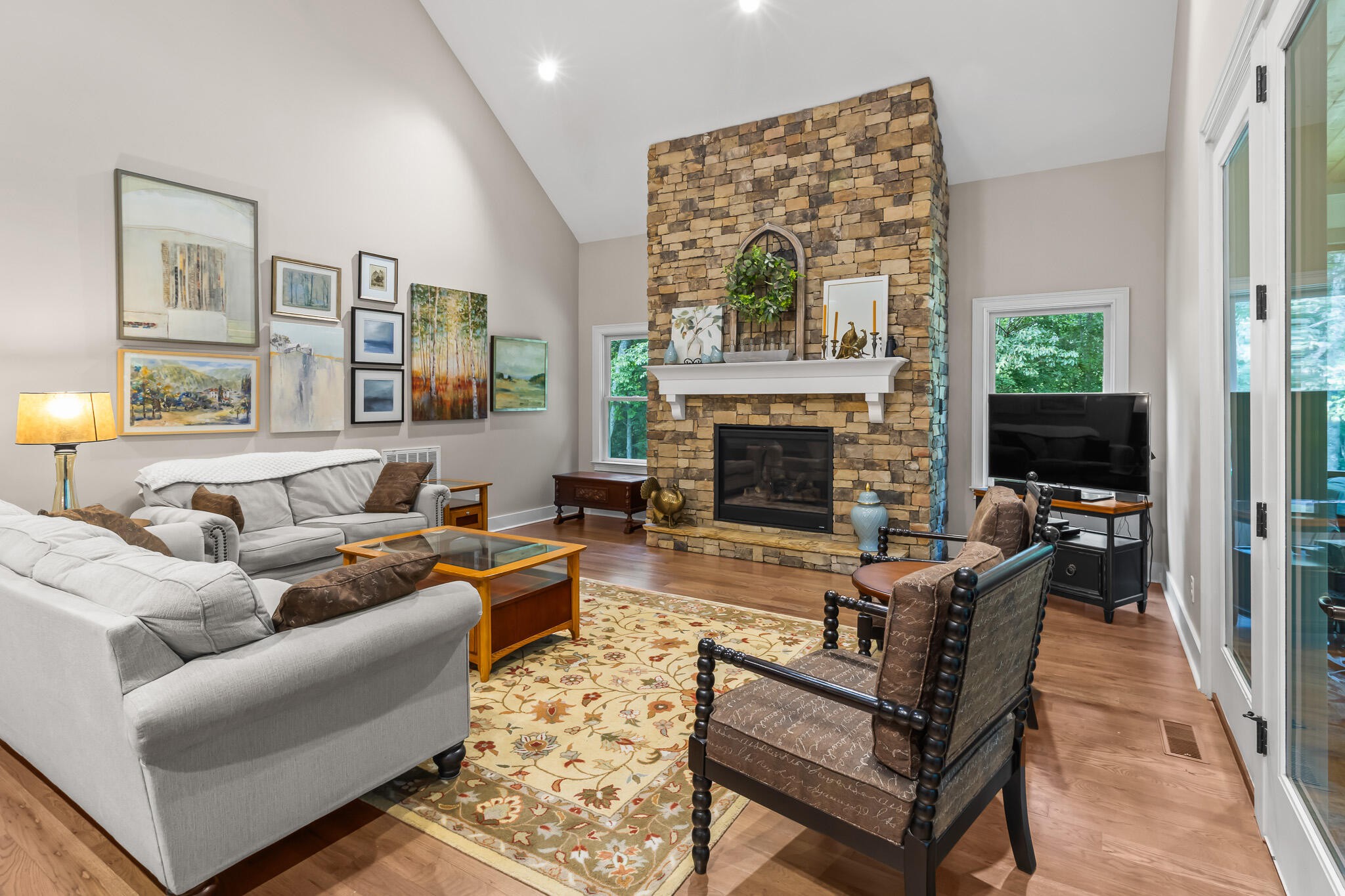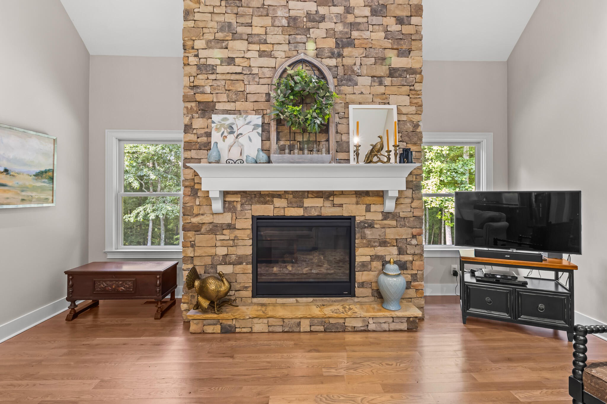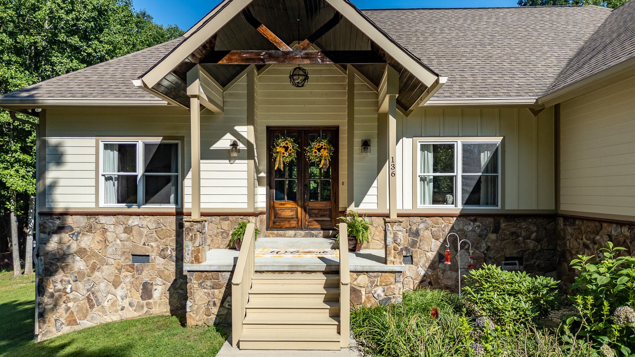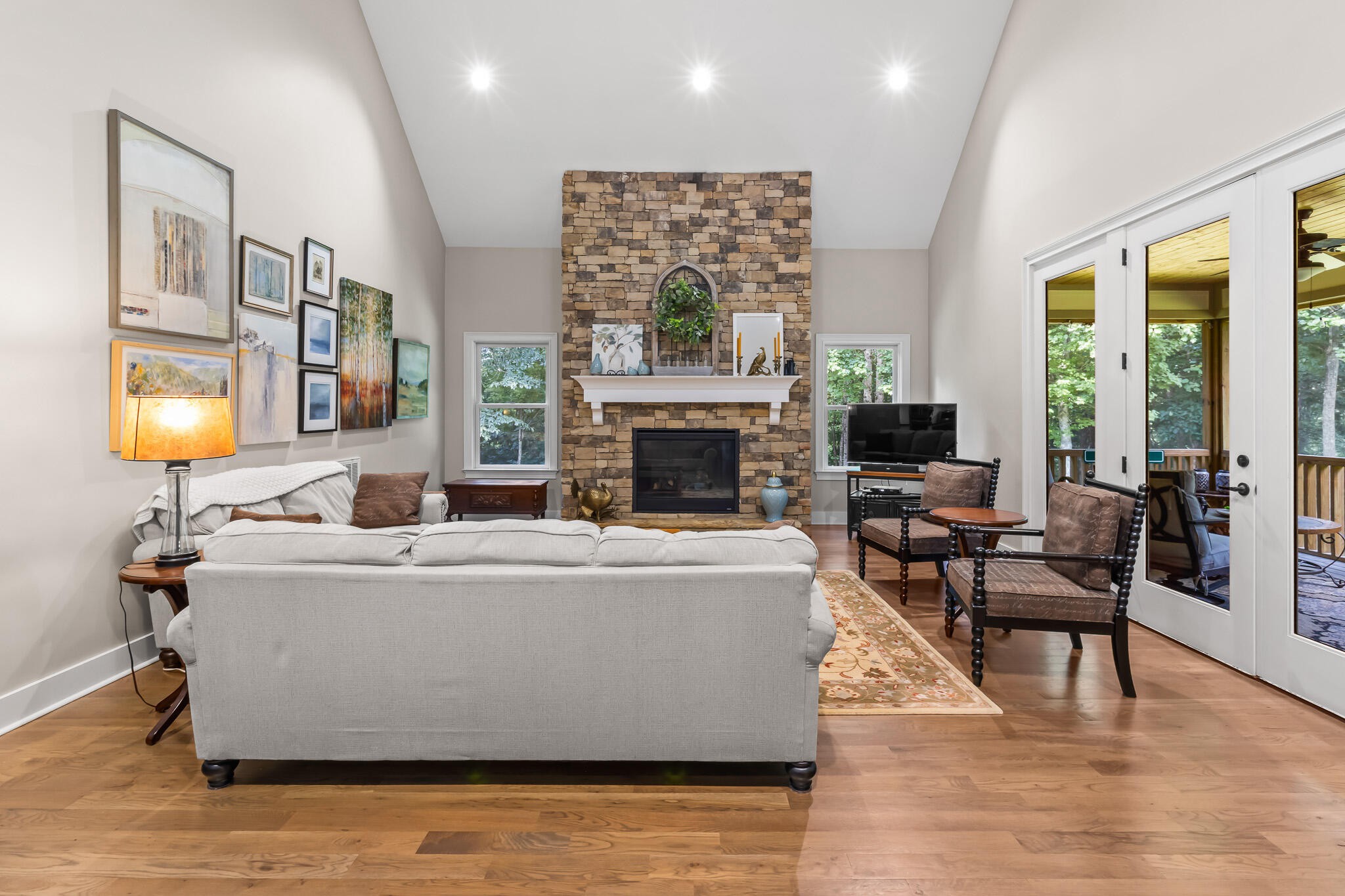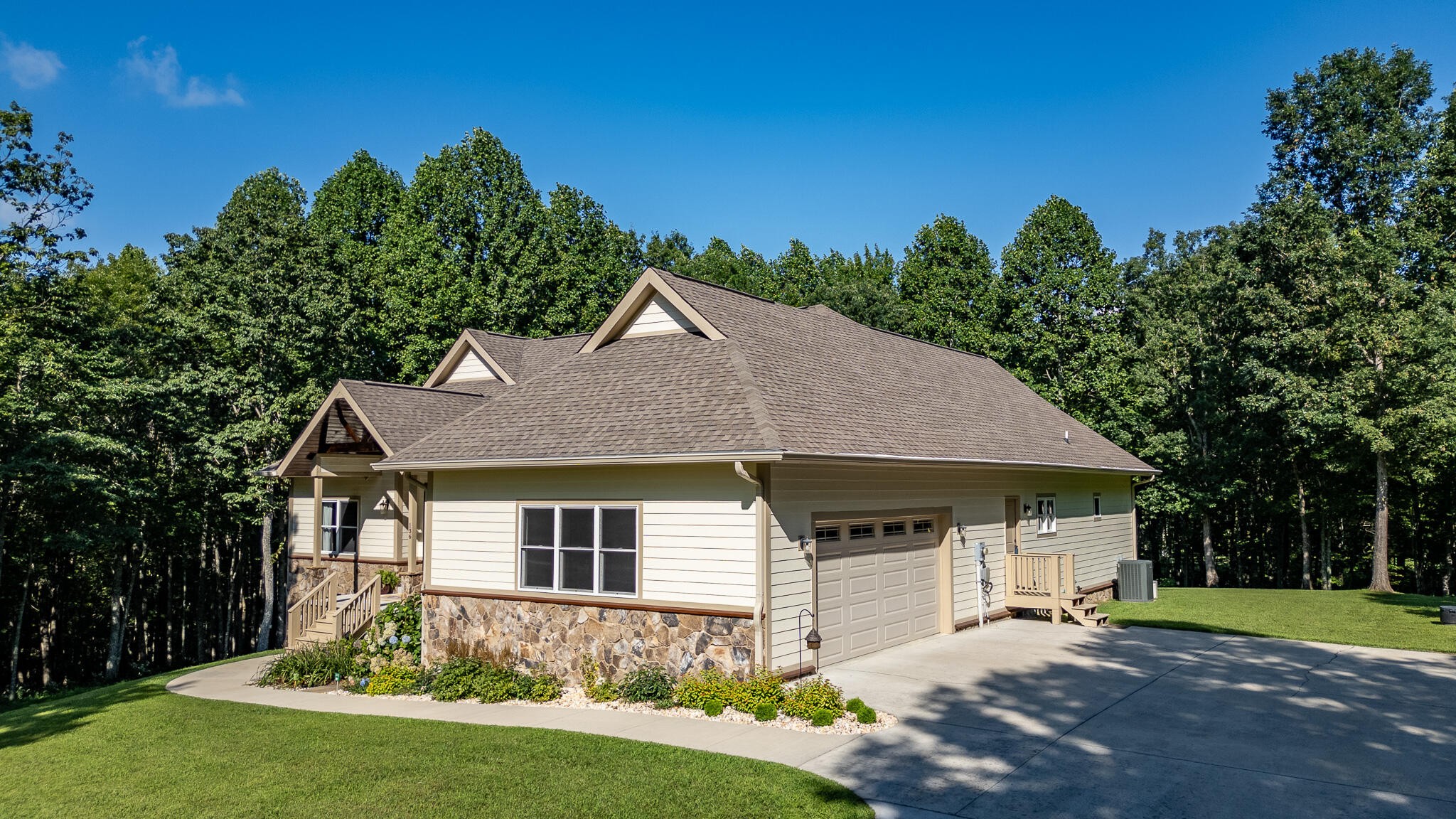 Welcome home! This beautiful 3 bedroom, 2 bath home with 2881 square foot of living space is neat as a pin and would make a great primary or secondary home. As you walk up to the home you will notice the neat appearance and well kept grounds. The front door is beautiful with a mixture of rich wood and windows for natural light inside. As you walk in you will notice the 2 large bedrooms each featuring white oak hardwood floors, crown molding & large window. The primary bedroom is large and includes White Oak hardwood flooring, high ceilings, crown mounding & large closet. The primary bathroom features a large soaking tub, dual vanities, tile shower and tile flooring. The inviting living room is open to kitchen and dining area. There is a huge stone, gas fireplace with remote & temp control for family gatherings and large windows that look out into the private, wooded 4.76 lot that is included with home. There are French doors that lead to a screened in porch with step down into yard. This private, wooded lot backs up to conservation land on one side. The kitchen is amazing with all stainless appliances, granite countertops, under cabinet lighting, gas cooktop, custom cabinets, double oven, large island and more. A Dining room area is just off the kitchen for family meals. The entire home has extra wide doorways and halls. Just off the beautiful kitchen is a big walk in pantry to store additional items. The mud room/ laundry room is big with a laundry sink, cabinets and plenty of room. The bonus room is right up the stairs and features laminate flooring, mini split & window for natural light. The oversized 2 car garage will give you plenty of room for the vehicles and storage. There is also additional storage area in the attic above garage. Crawlspace has dehumidifier for humidity control. Tankless waterheater is gas. Heating is dual elect heat pump. 1000 gal propane tank is burried and comes with home. Microwave can stay with home.