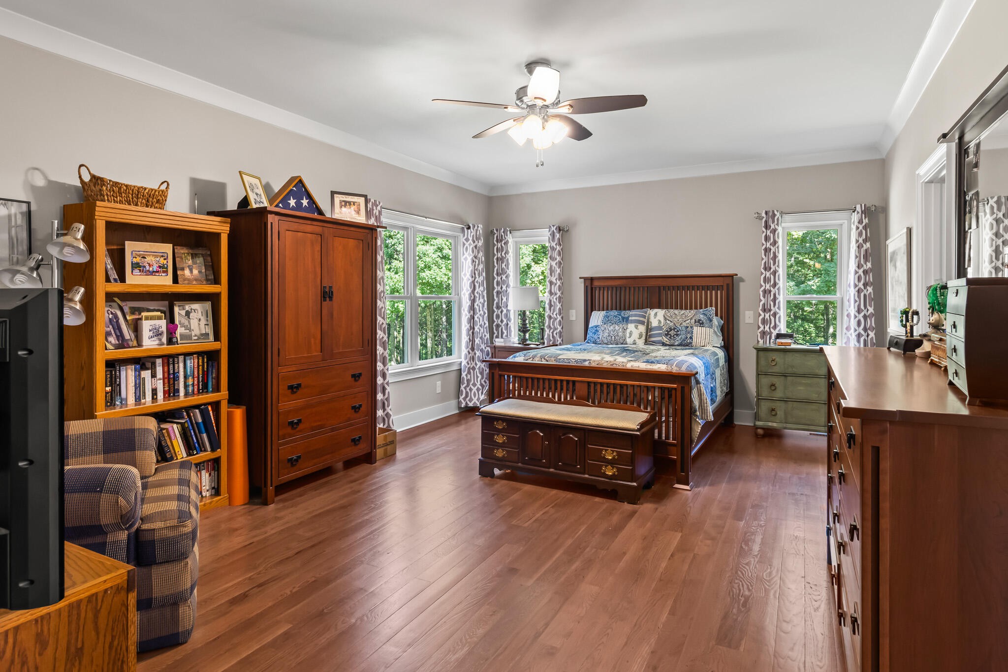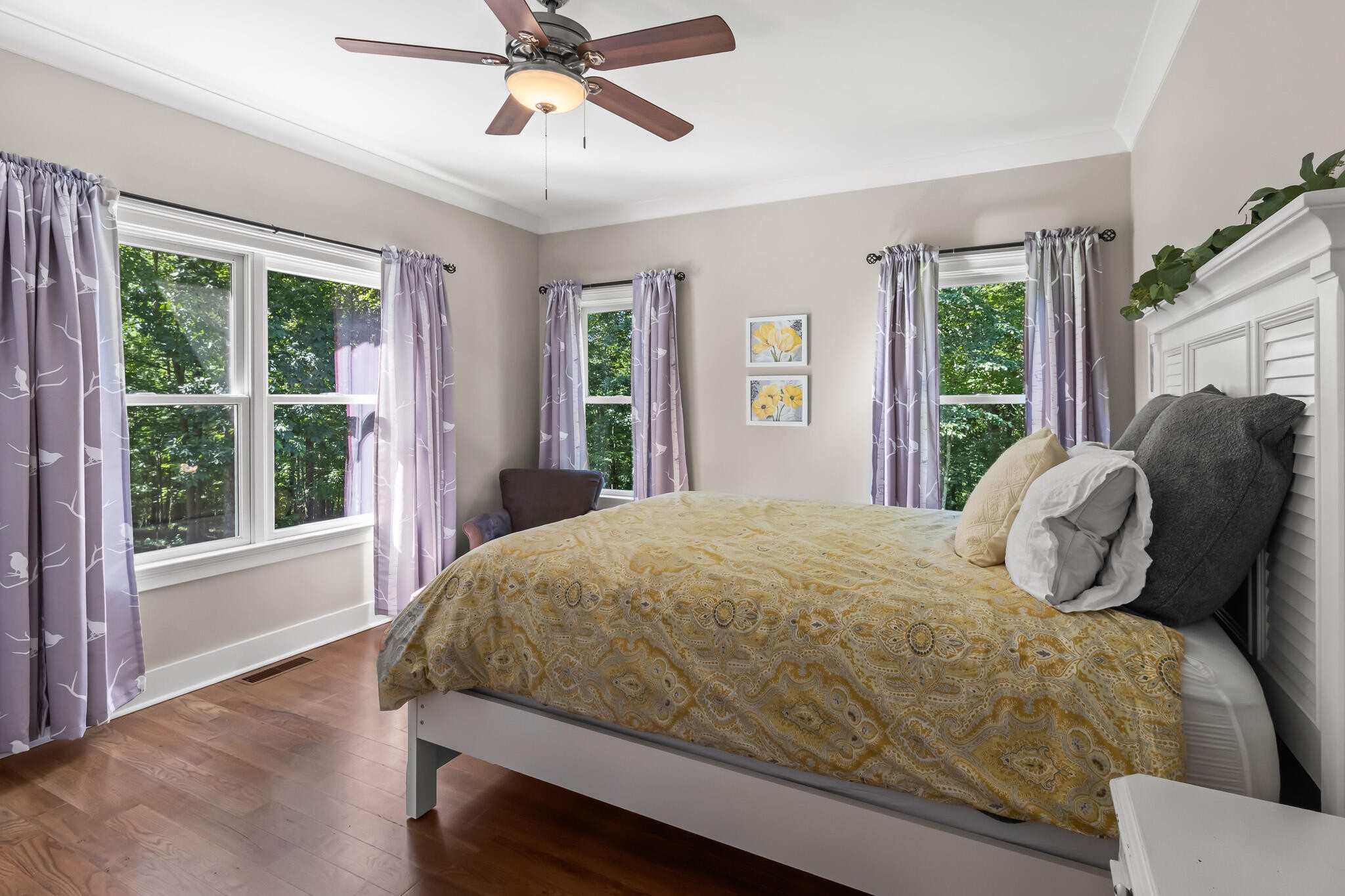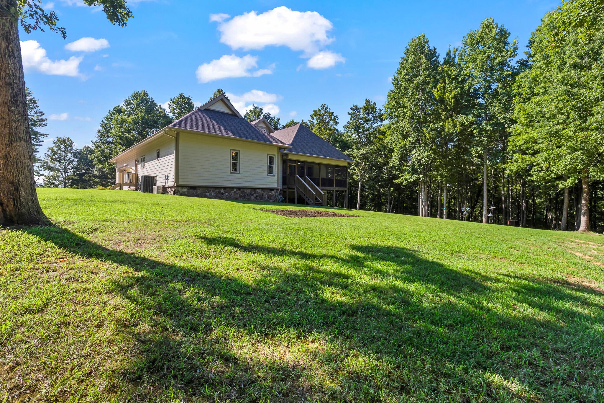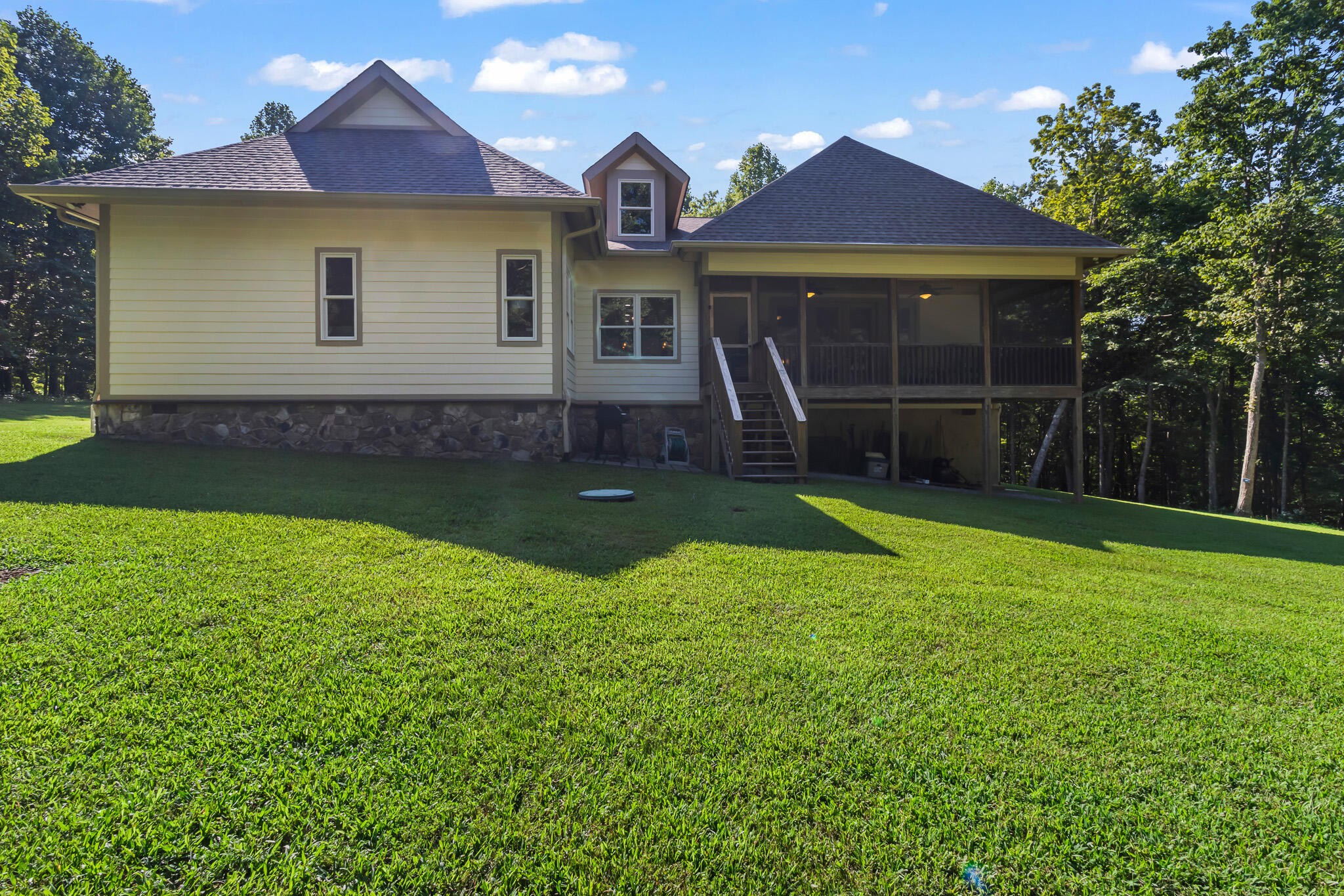 Welcome home! This beautiful 3 bedroom, 2 bath home with 2881 square foot of living space is neat as a pin and would make a great primary or secondary home. As you walk up to the home you will notice the neat appearance and well kept grounds. The front door is beautiful with a mixture of rich wood and windows for natural light inside. As you walk in you will notice the 2 large bedrooms each featuring white oak hardwood floors, crown molding & large window. The primary bedroom is large and includes White Oak hardwood flooring, high ceilings, crown mounding & large closet. The primary bathroom features a large soaking tub, dual vanities, tile shower and tile flooring. The inviting living room is open to kitchen and dining area. There is a huge stone, gas fireplace with remote & temp control for family gatherings and large windows that look out into the private, wooded 4.76 lot that is included with home. There are French doors that lead to a screened in porch with step down into yard. This private, wooded lot backs up to conservation land on one side. The kitchen is amazing with all stainless appliances, granite countertops, under cabinet lighting, gas cooktop, custom cabinets, double oven, large island and more. A Dining room area is just off the kitchen for family meals. The entire home has extra wide doorways and halls. Just off the beautiful kitchen is a big walk in pantry to store additional items. The mud room/ laundry room is big with a laundry sink, cabinets and plenty of room. The bonus room is right up the stairs and features laminate flooring, mini split & window for natural light. The oversized 2 car garage will give you plenty of room for the vehicles and storage. There is also additional storage area in the attic above garage. Crawlspace has dehumidifier for humidity control. Tankless waterheater is gas. Heating is dual elect heat pump. 1000 gal propane tank is burried and comes with home. Microwave can stay with home.