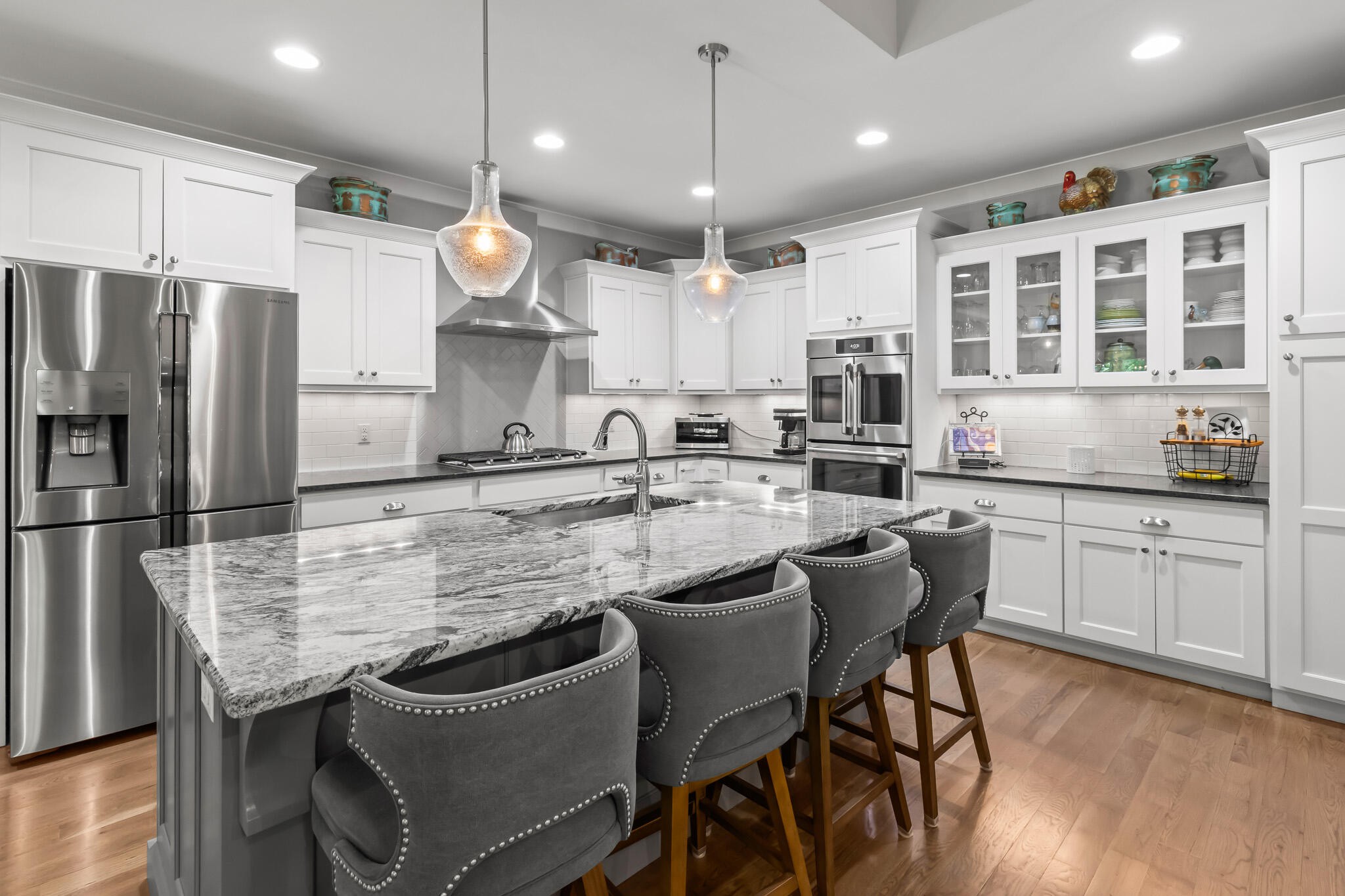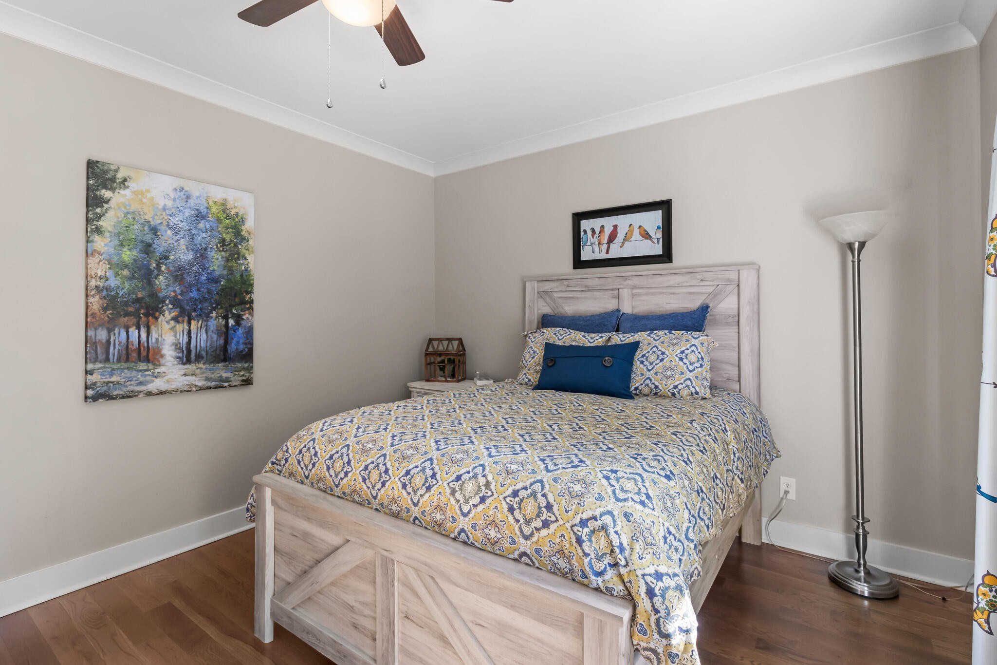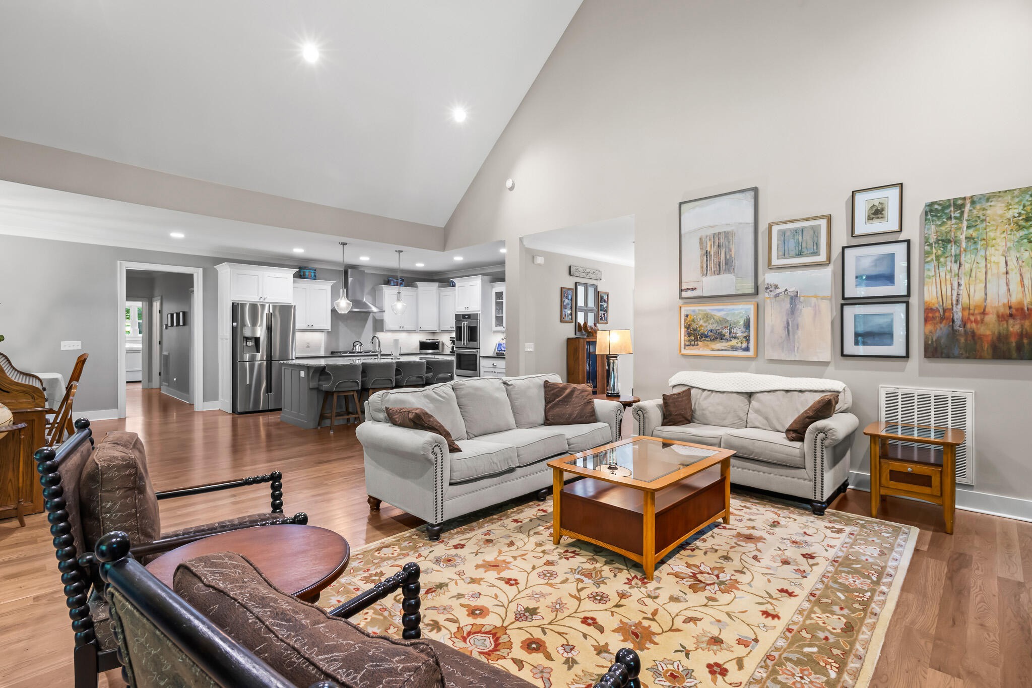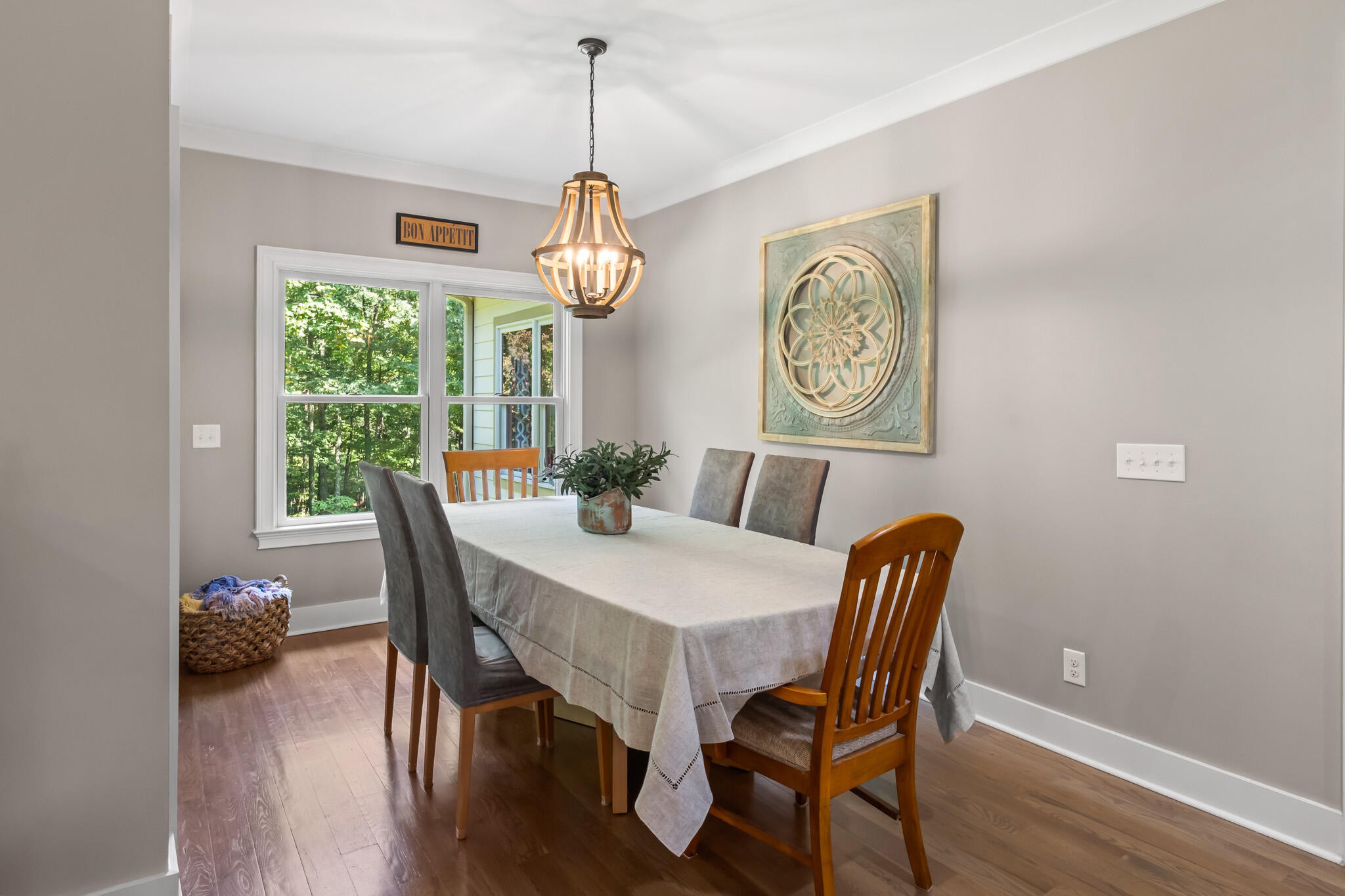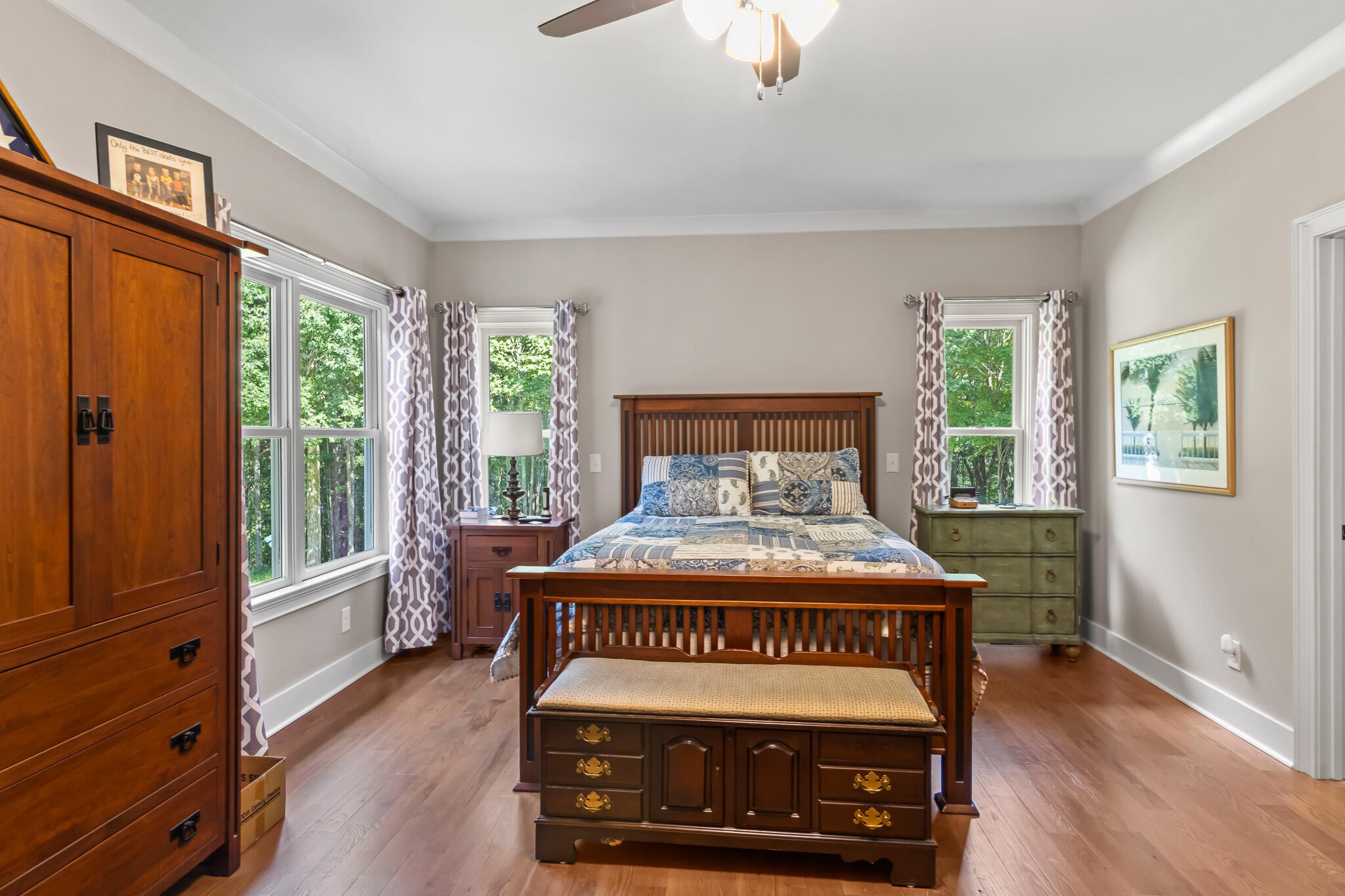 Welcome home! This beautiful 3 bedroom, 2 bath home with 2881 square foot of living space is neat as a pin and would make a great primary or secondary home. As you walk up to the home you will notice the neat appearance and well kept grounds. The front door is beautiful with a mixture of rich wood and windows for natural light inside. As you walk in you will notice the 2 large bedrooms each featuring white oak hardwood floors, crown molding & large window. The primary bedroom is large and includes White Oak hardwood flooring, high ceilings, crown mounding & large closet. The primary bathroom features a large soaking tub, dual vanities, tile shower and tile flooring. The inviting living room is open to kitchen and dining area. There is a huge stone, gas fireplace with remote & temp control for family gatherings and large windows that look out into the private, wooded 4.76 lot that is included with home. There are French doors that lead to a screened in porch with step down into yard. This private, wooded lot backs up to conservation land on one side. The kitchen is amazing with all stainless appliances, granite countertops, under cabinet lighting, gas cooktop, custom cabinets, double oven, large island and more. A Dining room area is just off the kitchen for family meals. The entire home has extra wide doorways and halls. Just off the beautiful kitchen is a big walk in pantry to store additional items. The mud room/ laundry room is big with a laundry sink, cabinets and plenty of room. The bonus room is right up the stairs and features laminate flooring, mini split & window for natural light. The oversized 2 car garage will give you plenty of room for the vehicles and storage. There is also additional storage area in the attic above garage. Crawlspace has dehumidifier for humidity control. Tankless waterheater is gas. Heating is dual elect heat pump. 1000 gal propane tank is burried and comes with home. Microwave can stay with home.