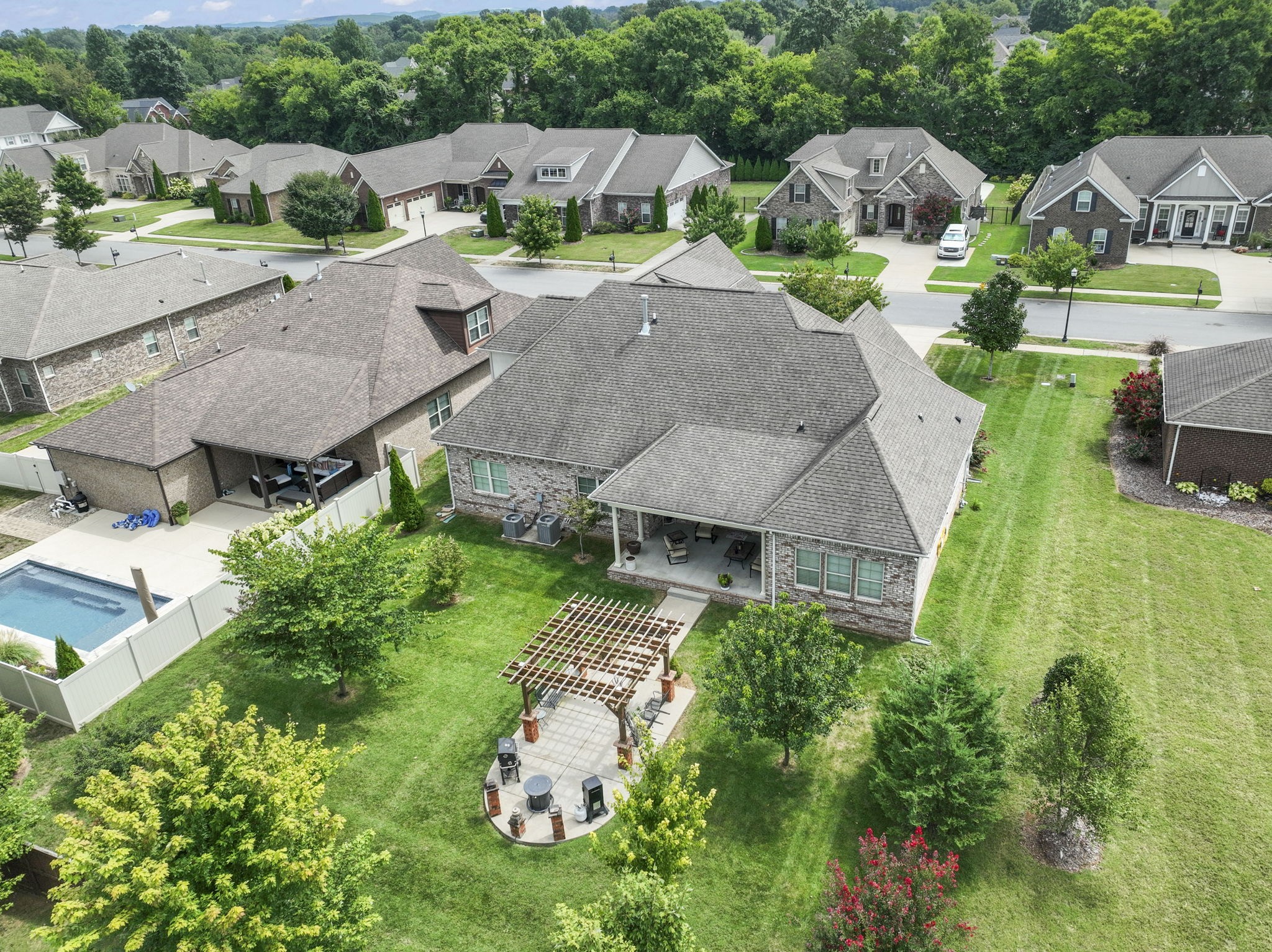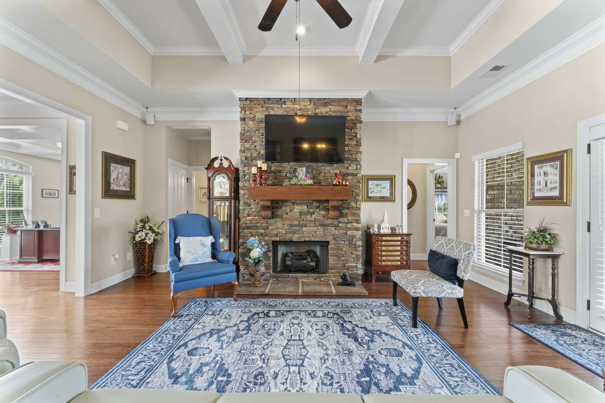 This stunning all-brick home offers space, style, and smart features throughout. Inside, you’ll find hardwood flooring throughout, coffered ceilings in the office and living room, while the formal dining room has a trey ceiling, plus beadboard accents in both the dining and eat-in kitchen areas for added character. The flexible Rutledge floor plan includes a dedicated office/flex room, formal dining room, and a large bonus room that could serve as a 5th bedroom.