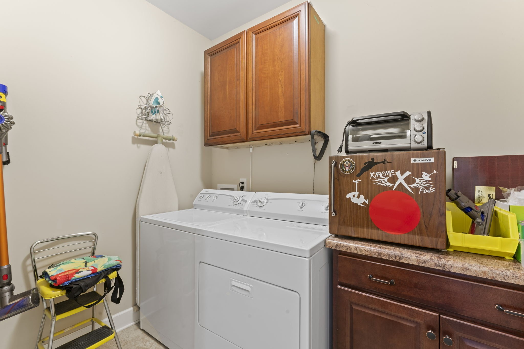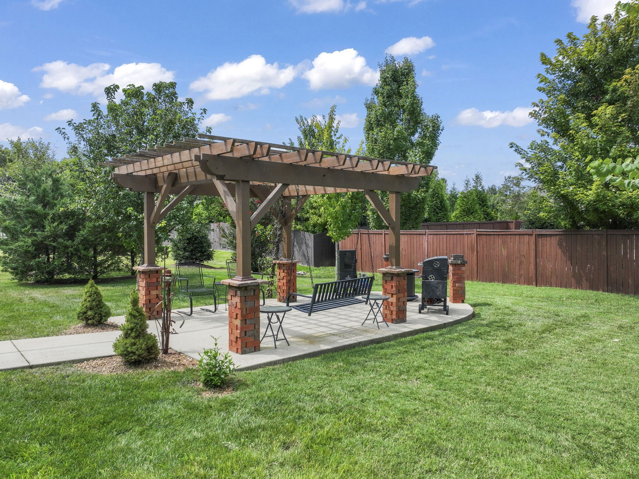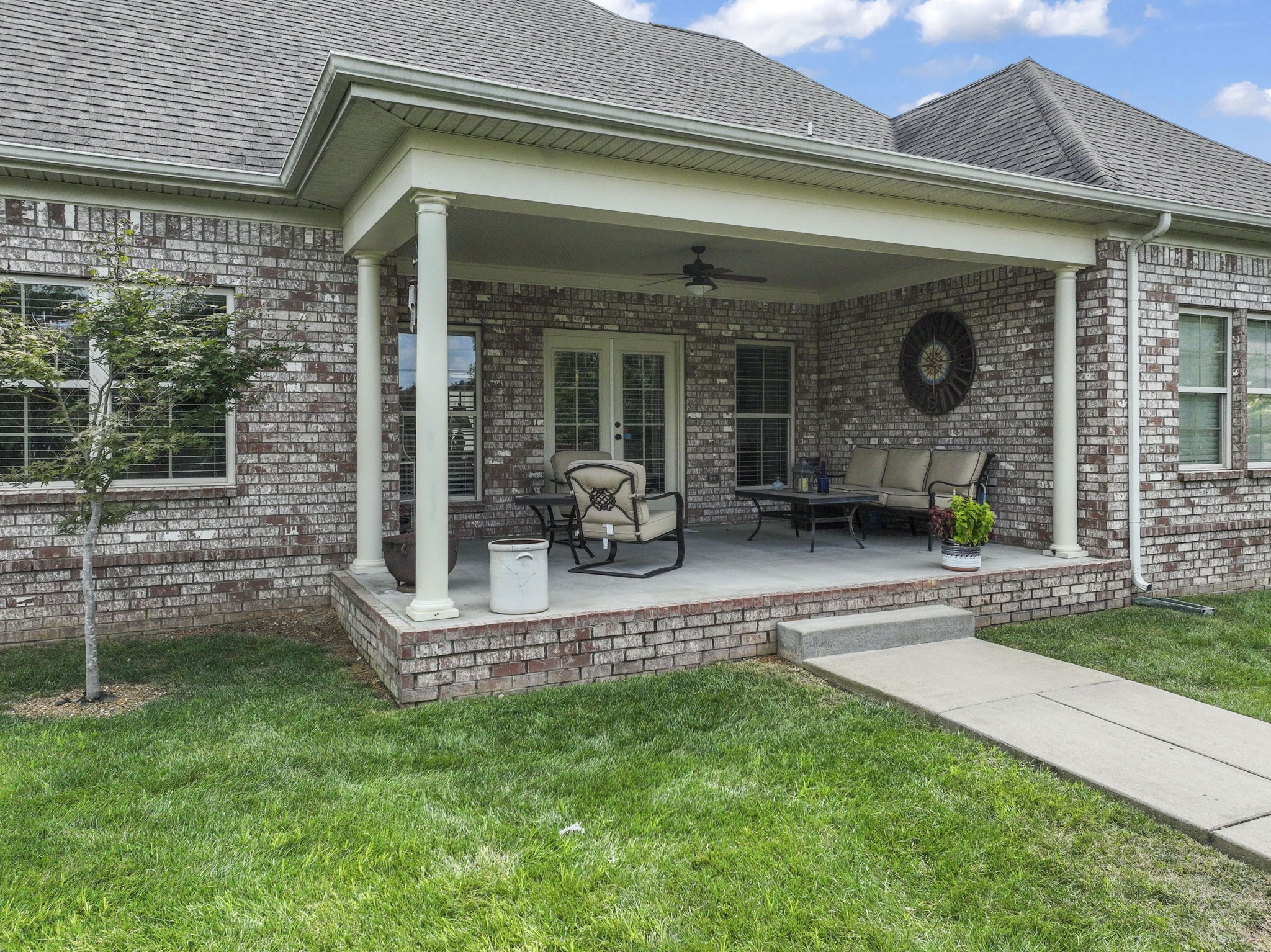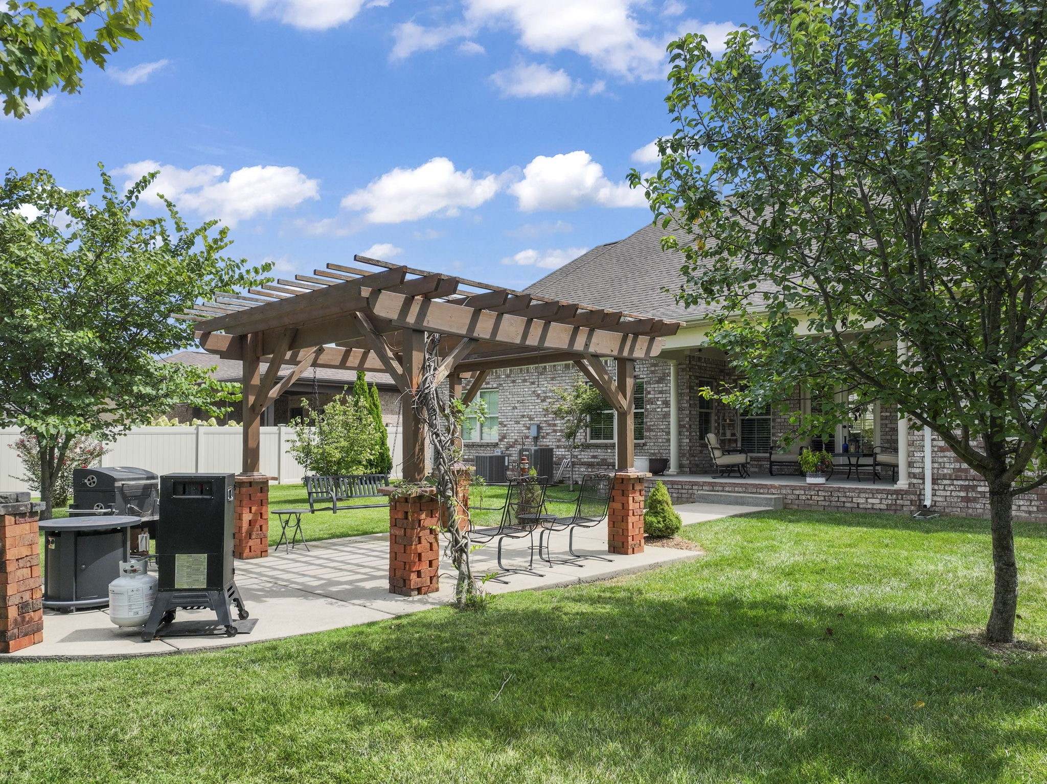 You’ll also love the oversized laundry room with built-in cabinets, additional storage throughout the home, and convenient cabinetry in the garage. With only two steps into the home, easy access is a plus, along with three attic access points totally over 200 sq ft in extra storage and a covered back porch perfect for relaxing. Extras include a gas water heater, and front and back irrigation.
