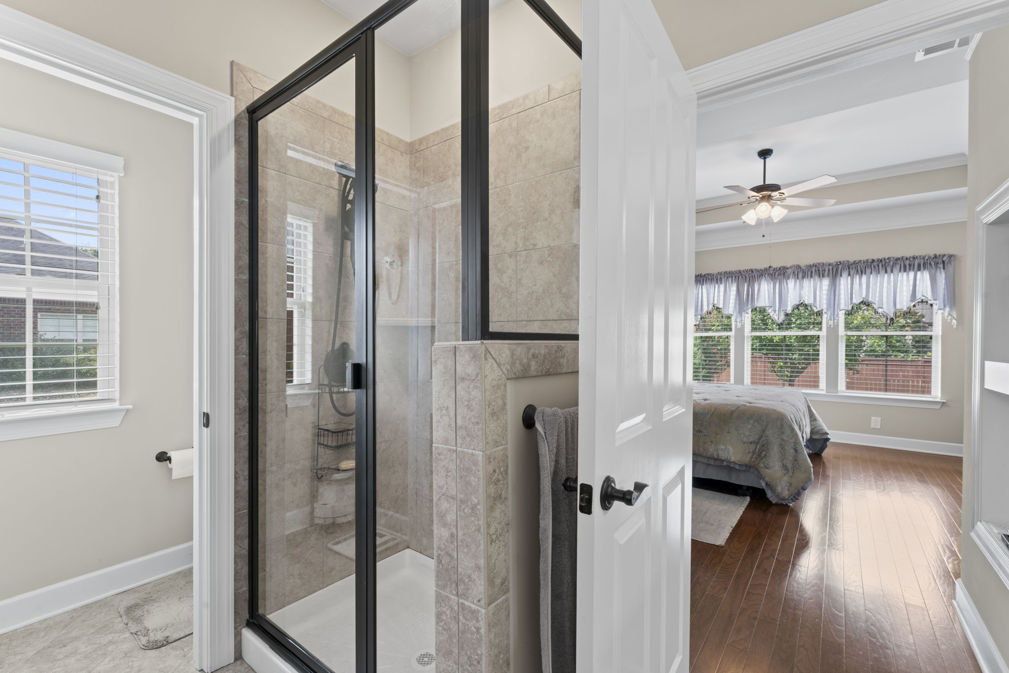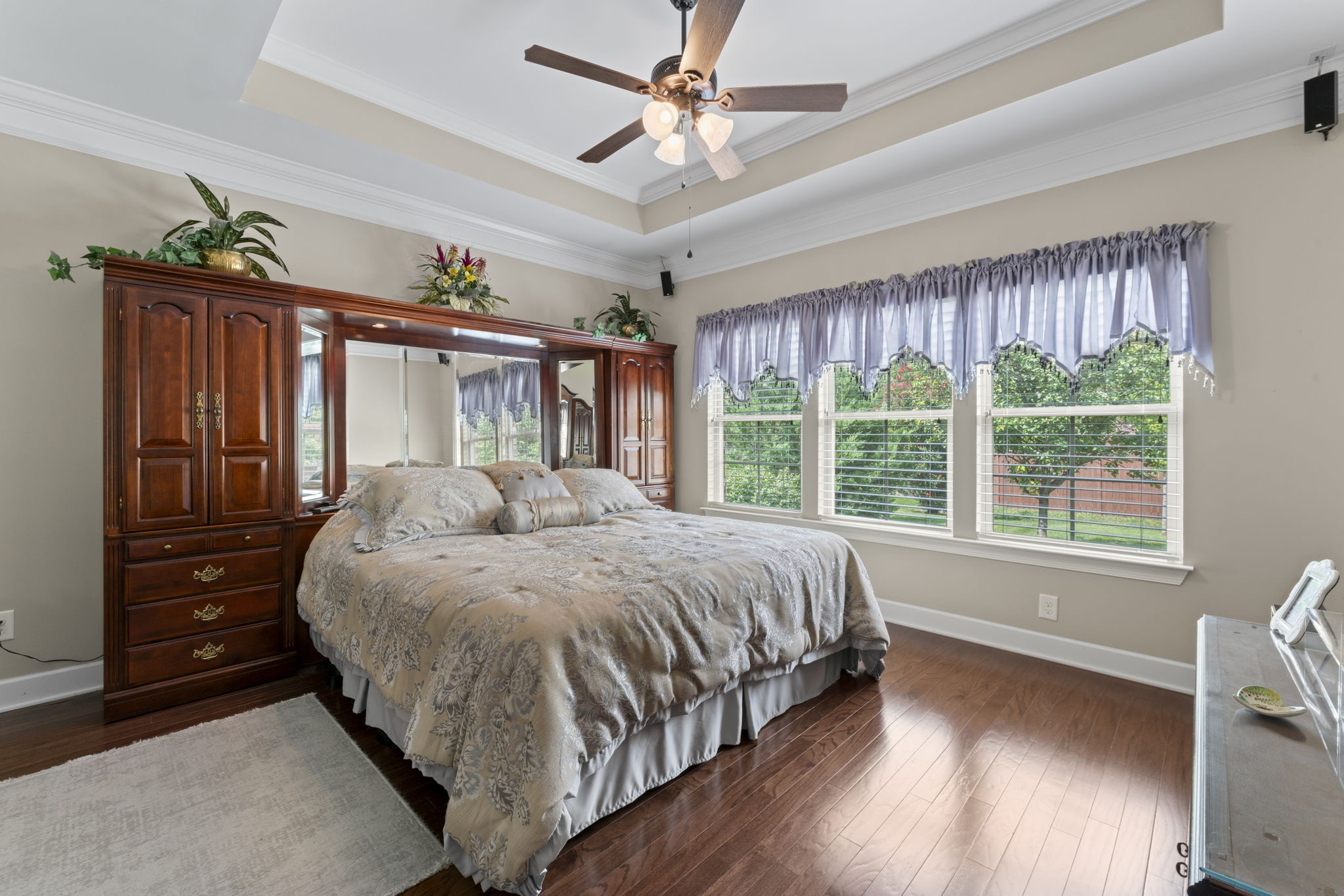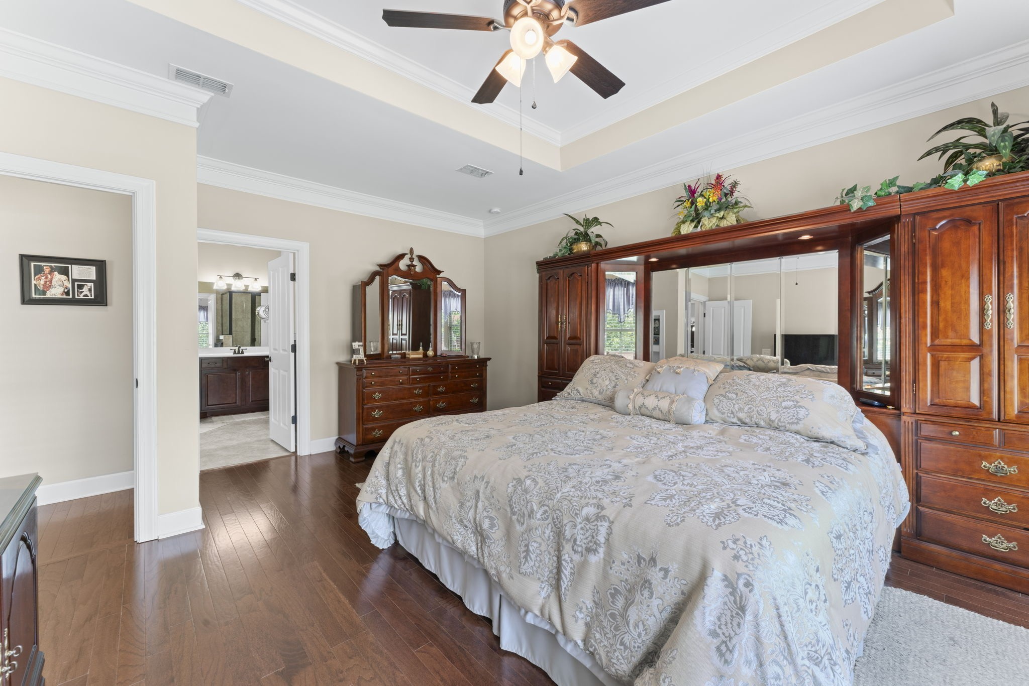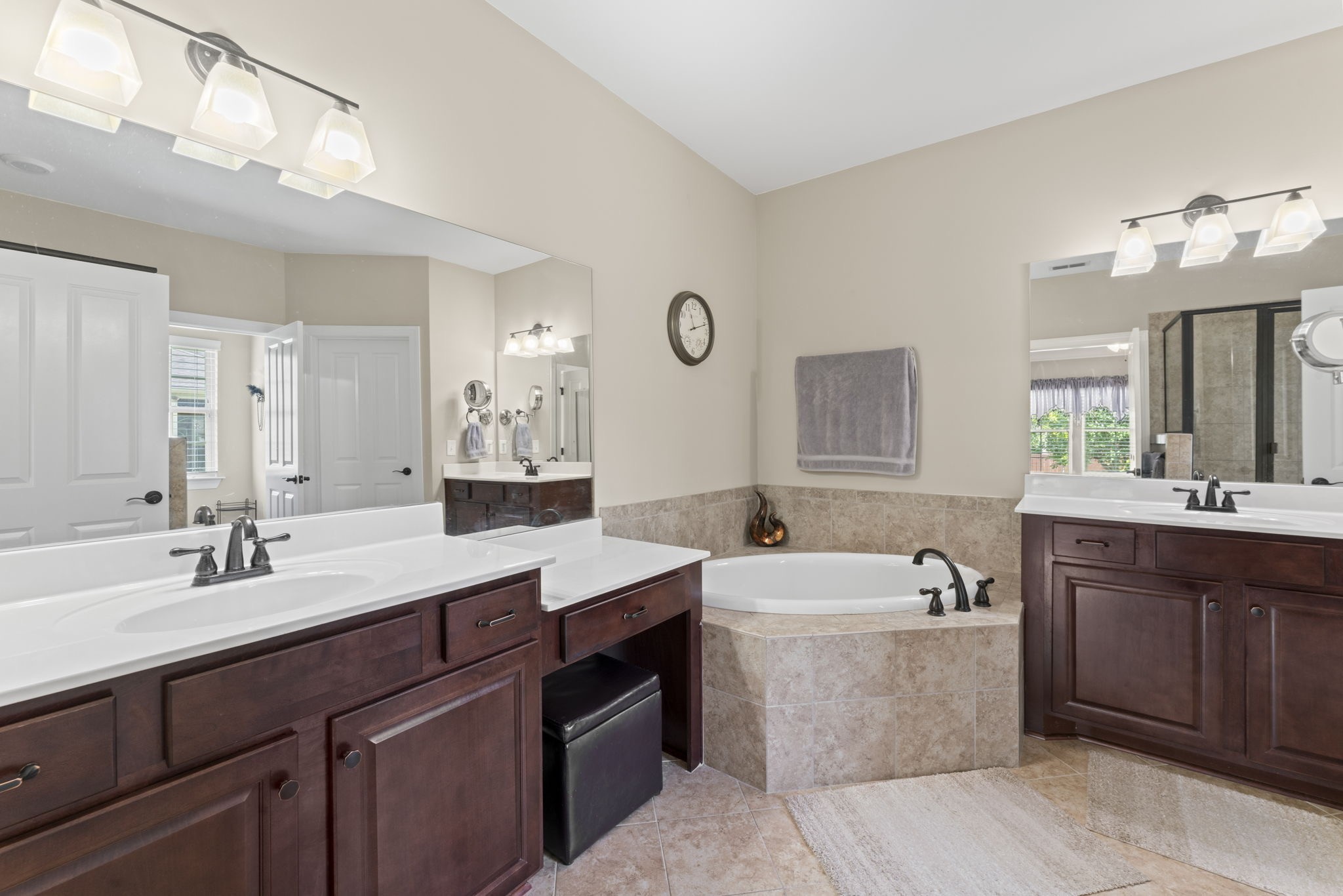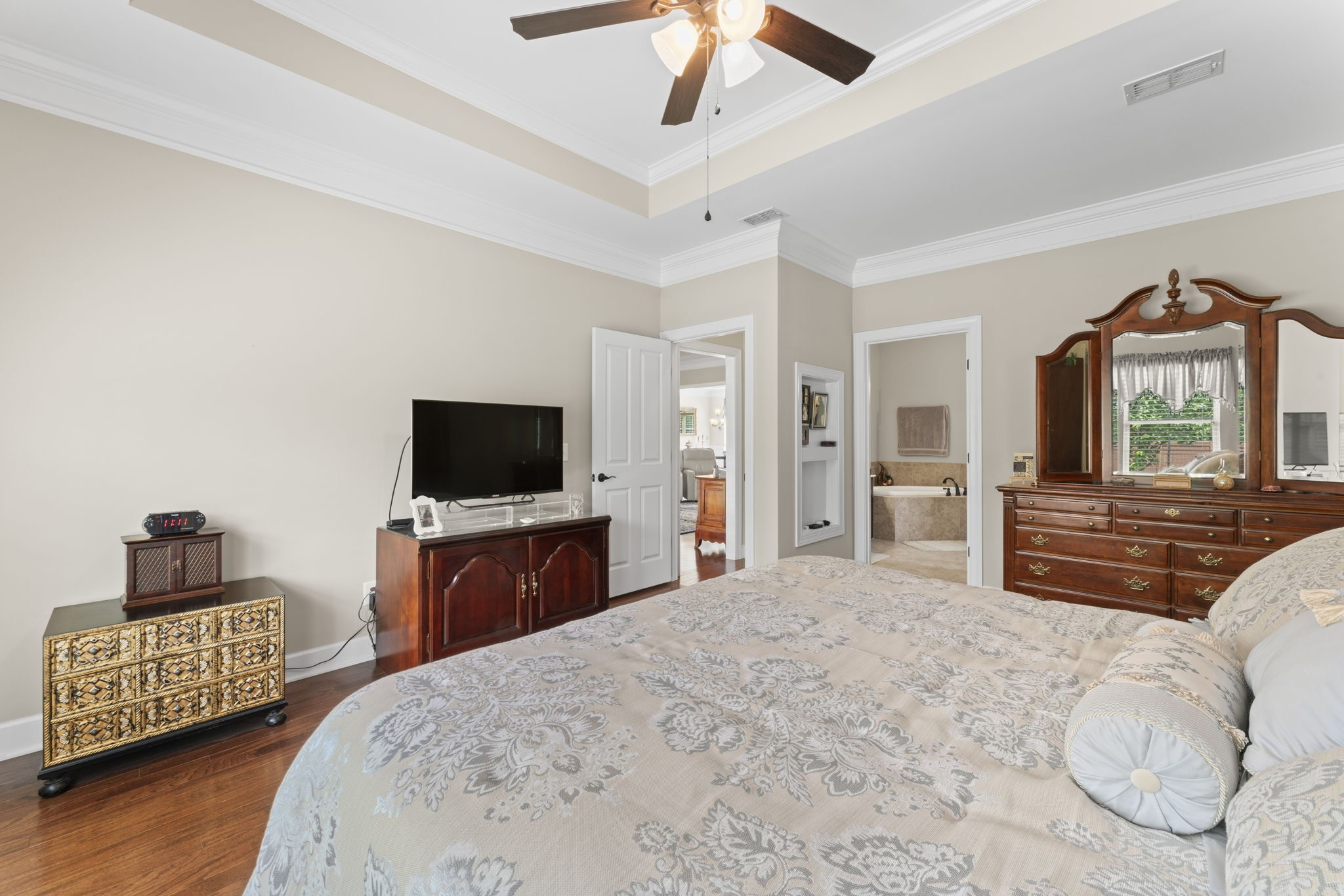 The primary suite boasts a luxurious en-suite bath with a huge soaking tub, an oversized walk-in closet, and plenty of natural light. Secondary bedrooms feature walk-in closets and an extra-large closet for added storage.