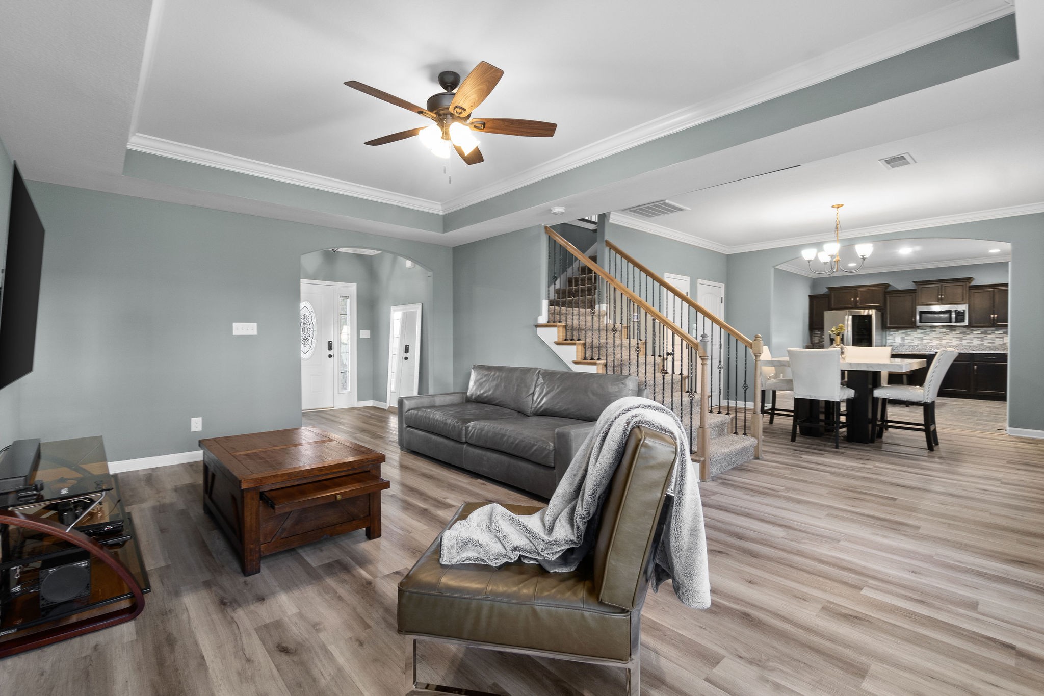 Welcome to your dream home—a newer build packed with modern features, smart technology, and space for everyone! 4 Spacious Bedrooms – All located upstairs, each with walk-in closets and ceiling fans for year-round comfort. Modern Kitchen w/Granite countertops, center island, large pantry, double ovens, and full suite of stainless steel appliances (including a newer fridge!). Stylish Living Room Featuring luxury vinyl plank flooring and a cozy electric fireplace. Smart Home Ready Wi-Fi-enabled smart garage doors and appliances for ultimate convenience. Massive 3-Car Garage Includes 240V outlet for faster EV charging, plus extra room for storage or hobbies. Covered front porch and back patio, perfect for morning coffee or evening get-togethers.