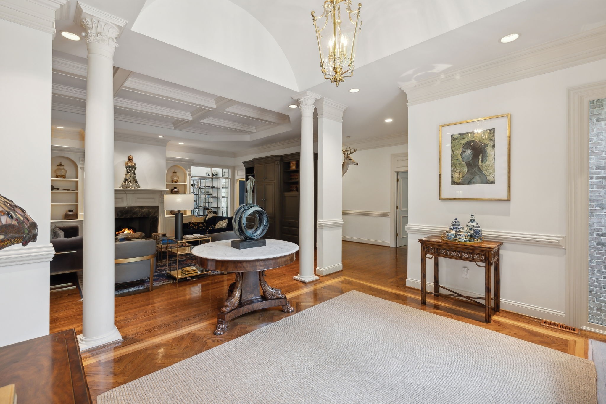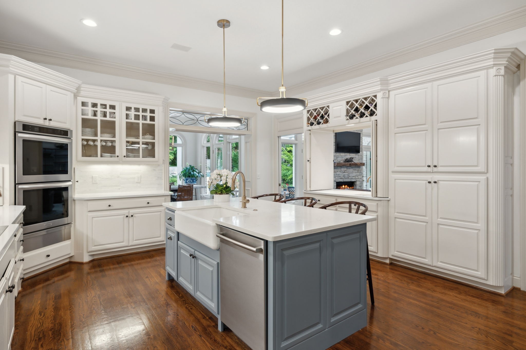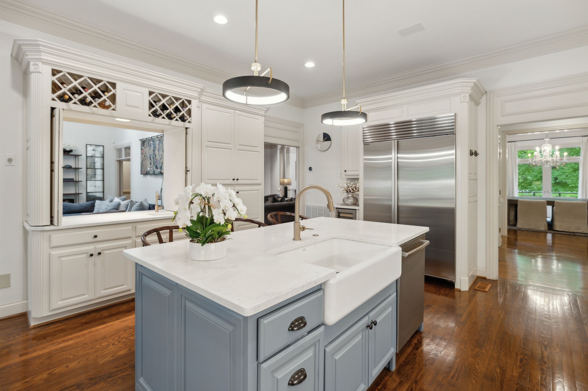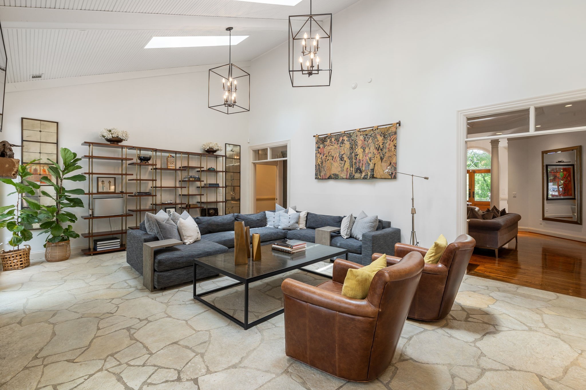 Showstopper in Brentwood w/substantial price improvement! This gracious Heathrow Hills home offers a rare blend of contemporary luxury and traditional design. The property boasts an exquisite backyard sanctuary equipped with a saltwater pool and spa, professionally curated gardens, and an expansive flagstone patio. The impressive entryway sets the stage for three levels of luxury living and a wonderfully versatile floor plan. Two main level suites along with three separate first floor living areas offer flexibility and functionality. The circular floor plan allows for both ease of entertaining and comfortable family living, incorporating timeless finishes and stunning updates throughout. The updated chef's kitchen opens seamlessly to a sunny breakfast nook overlooking the resort style pool and backyard. Elevated kitchen features include gleaming quartzite counters, newer appliances, stunning designer tile and all new lighting. The separate butlers area flows to the spacious formal dining room beyond, overlooking the sprawling front lawn. The luxurious primary suite is a true retreat, with a spacious spa-like bath and a huge boutique style closet. Opening directly to the fully renovated laundry room, this expansive suite blends luxury and functionality in a truly sophisticated way. Upstairs living features two additional ensuite bedrooms and a loft area perfect for homework or crafts. An oversized lower level rec room offers options for an exercise area, media room and more, and boasts brand new luxury flooring. The 4 car garage with all new epoxy flooring is a car collectors dream and includes two storage areas and a separate workshop w/adjacent storm shelter (could be transformed to a perfect man cave). There is a second entrance and separate stairway to to the main level bonus room (currently being used as an in-law suite). Don't miss your opportunity to experience this wonderfully unique home, walking distance to award winning Brentwood Middle & Brentwood High!