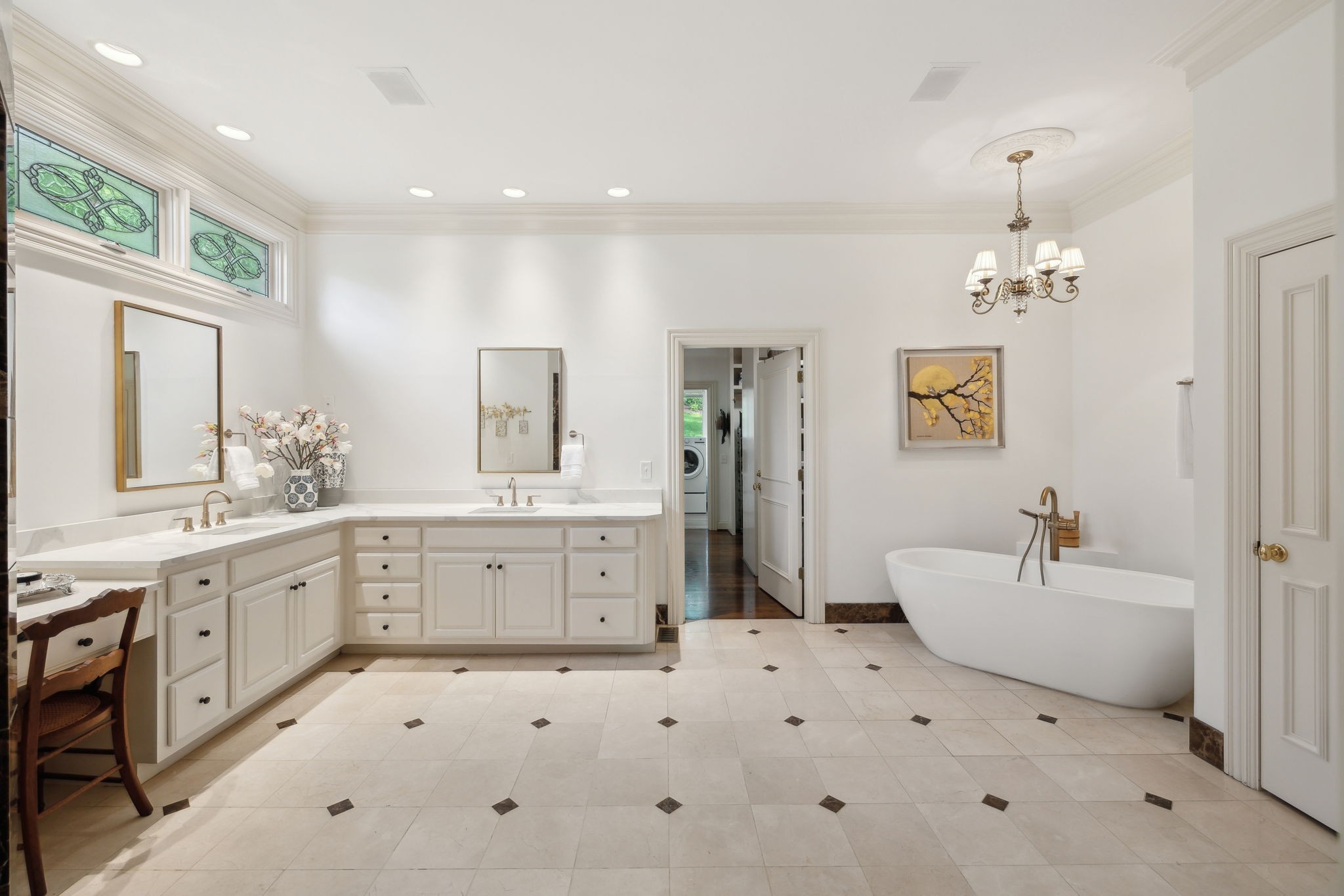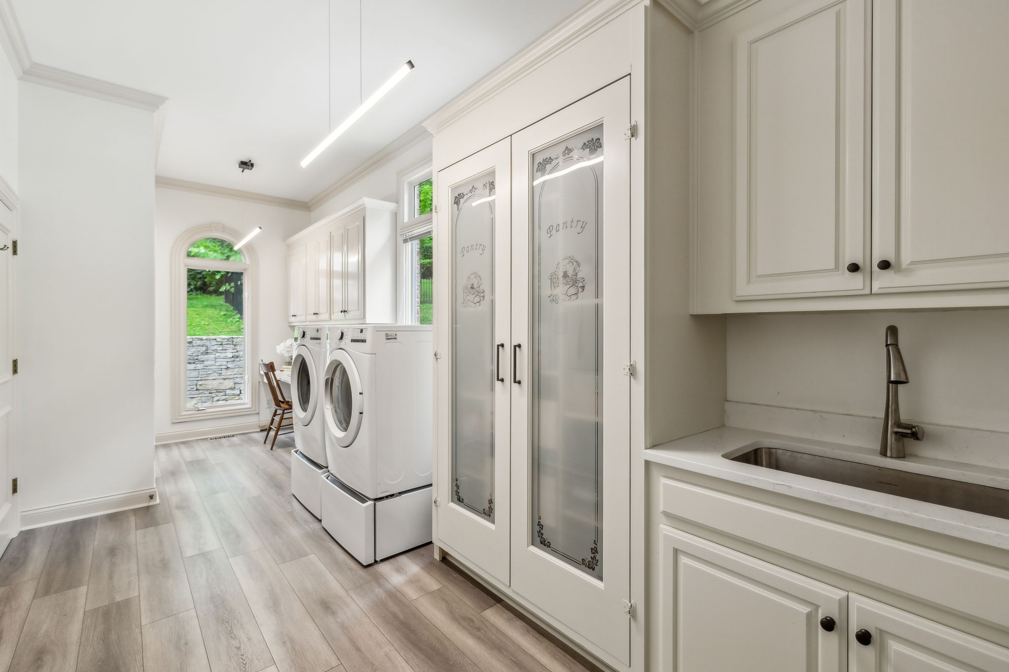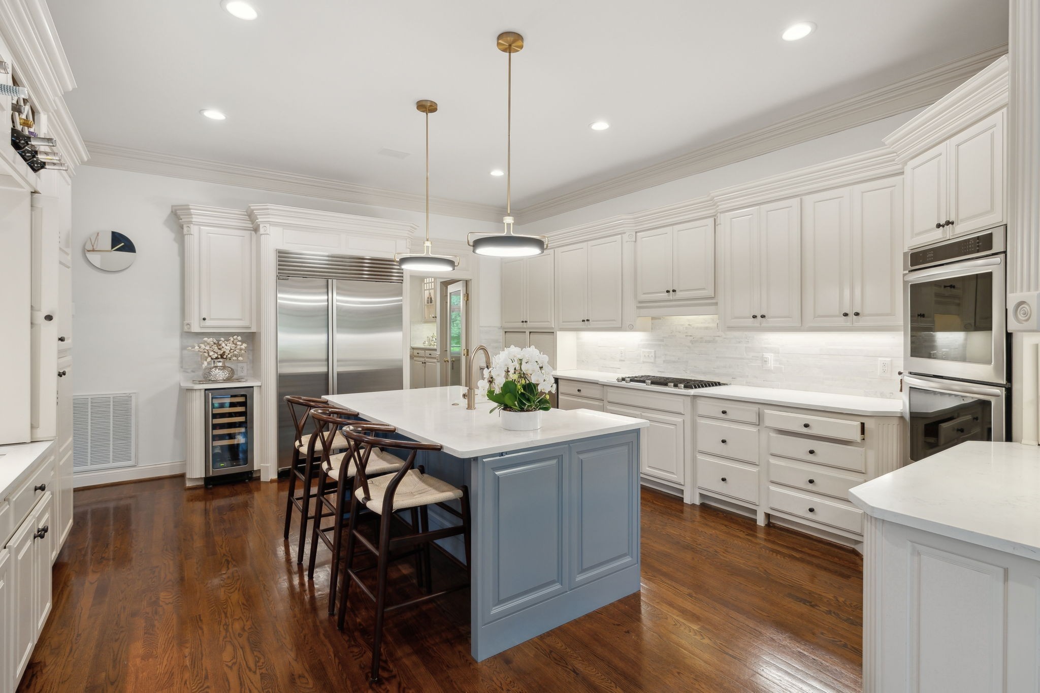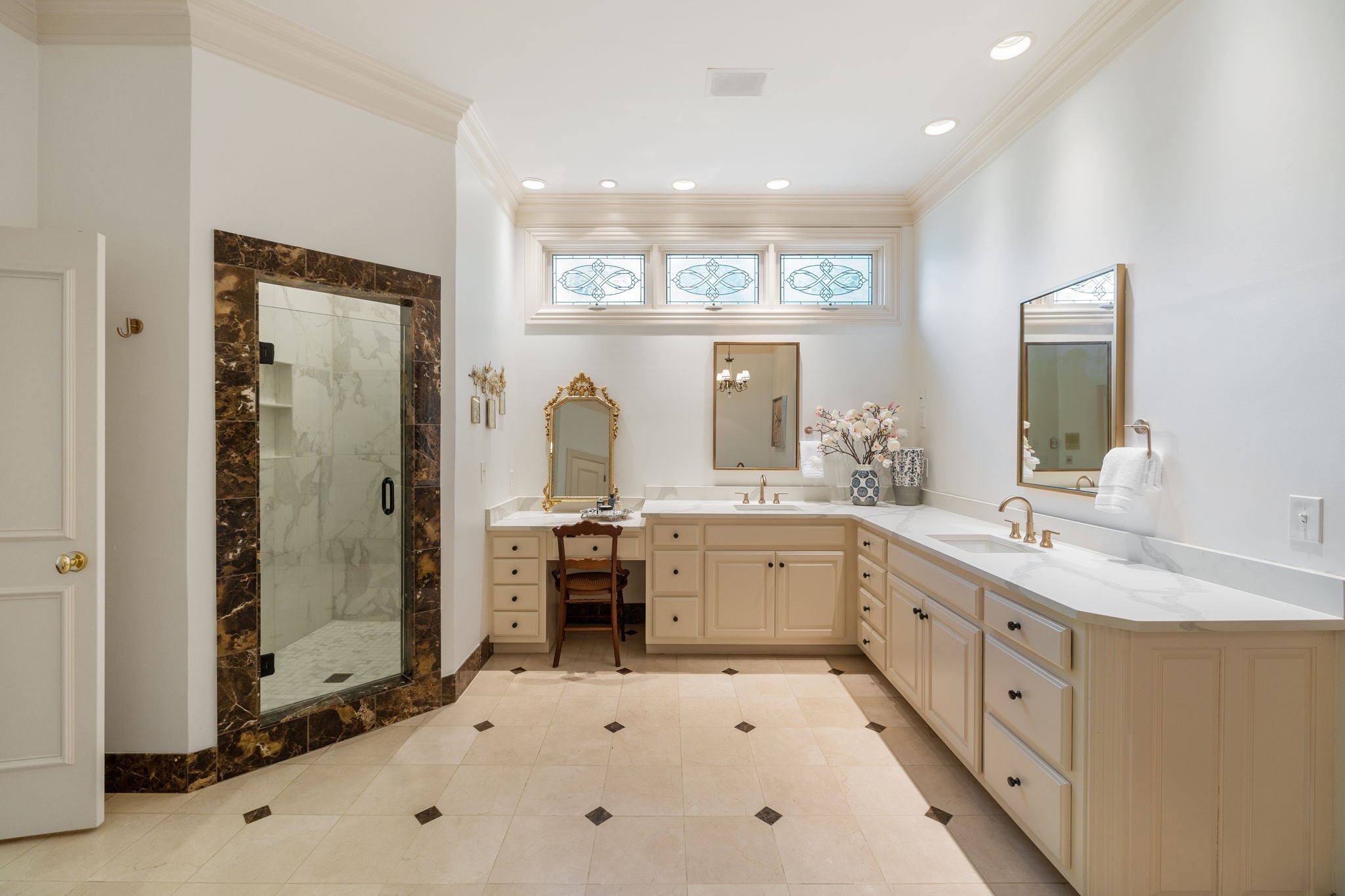 Showstopper in Brentwood w/substantial price improvement! This gracious Heathrow Hills home offers a rare blend of contemporary luxury and traditional design. The property boasts an exquisite backyard sanctuary equipped with a saltwater pool and spa, professionally curated gardens, and an expansive flagstone patio. The impressive entryway sets the stage for three levels of luxury living and a wonderfully versatile floor plan. Two main level suites along with three separate first floor living areas offer flexibility and functionality. The circular floor plan allows for both ease of entertaining and comfortable family living, incorporating timeless finishes and stunning updates throughout. The updated chef's kitchen opens seamlessly to a sunny breakfast nook overlooking the resort style pool and backyard. Elevated kitchen features include gleaming quartzite counters, newer appliances, stunning designer tile and all new lighting. The separate butlers area flows to the spacious formal dining room beyond, overlooking the sprawling front lawn. The luxurious primary suite is a true retreat, with a spacious spa-like bath and a huge boutique style closet. Opening directly to the fully renovated laundry room, this expansive suite blends luxury and functionality in a truly sophisticated way. Upstairs living features two additional ensuite bedrooms and a loft area perfect for homework or crafts. An oversized lower level rec room offers options for an exercise area, media room and more, and boasts brand new luxury flooring. The 4 car garage with all new epoxy flooring is a car collectors dream and includes two storage areas and a separate workshop w/adjacent storm shelter (could be transformed to a perfect man cave). There is a second entrance and separate stairway to to the main level bonus room (currently being used as an in-law suite). Don't miss your opportunity to experience this wonderfully unique home, walking distance to award winning Brentwood Middle & Brentwood High!