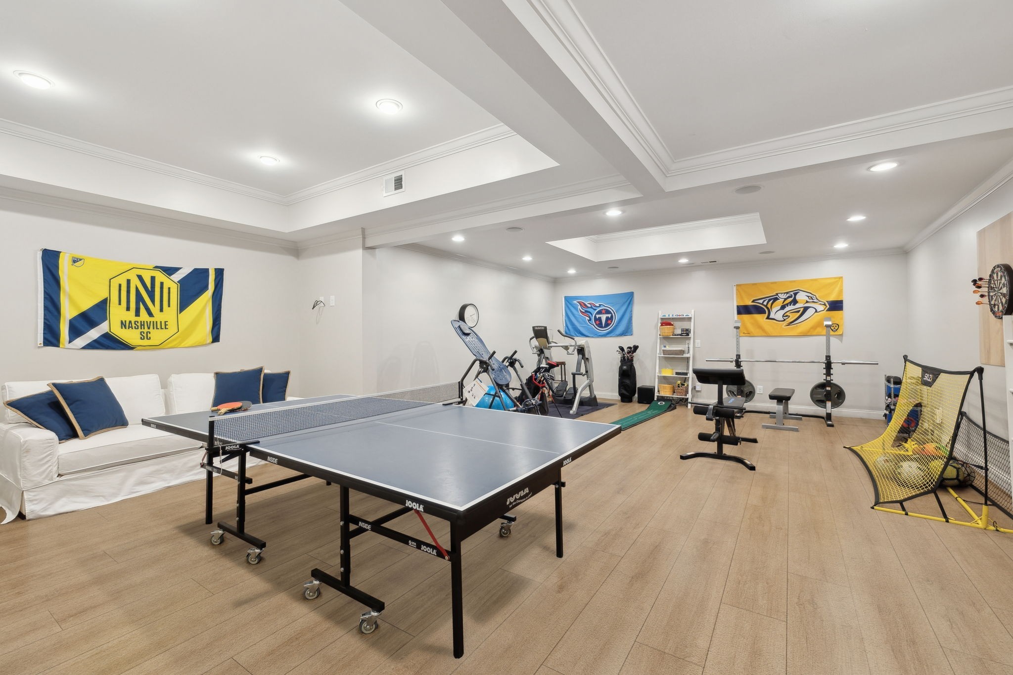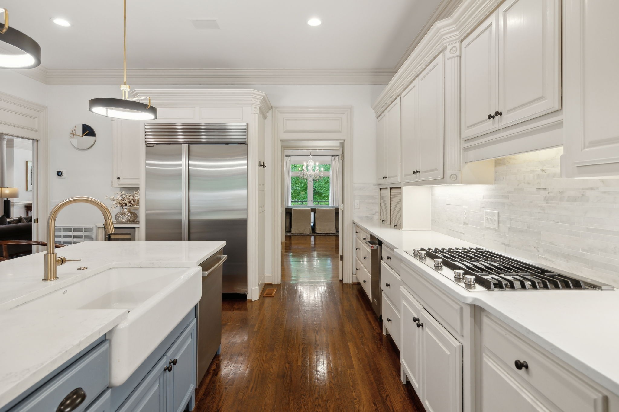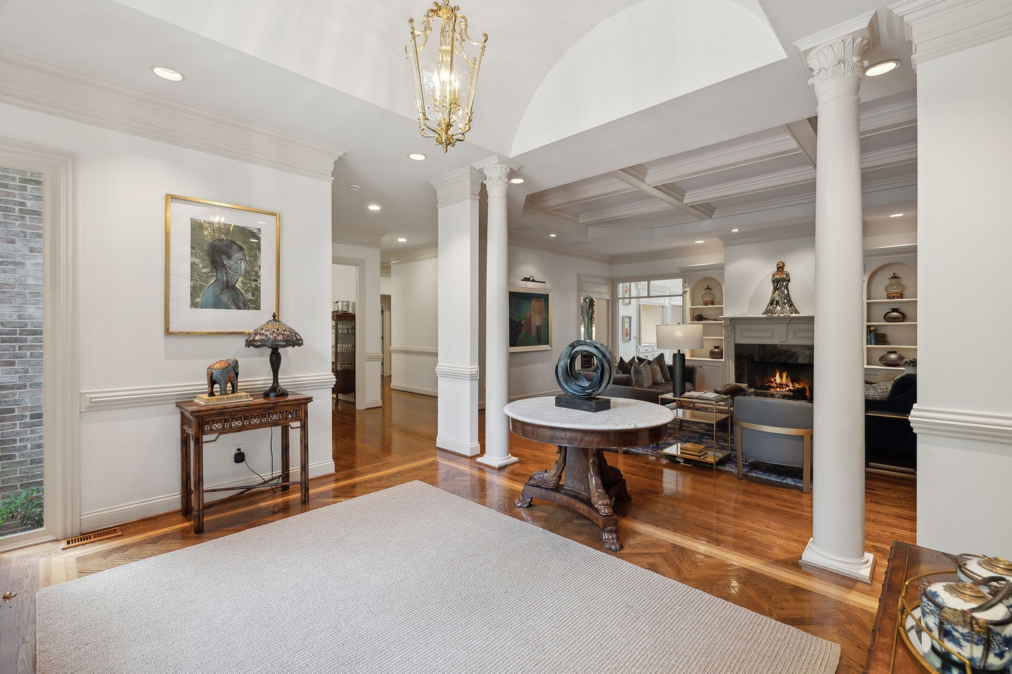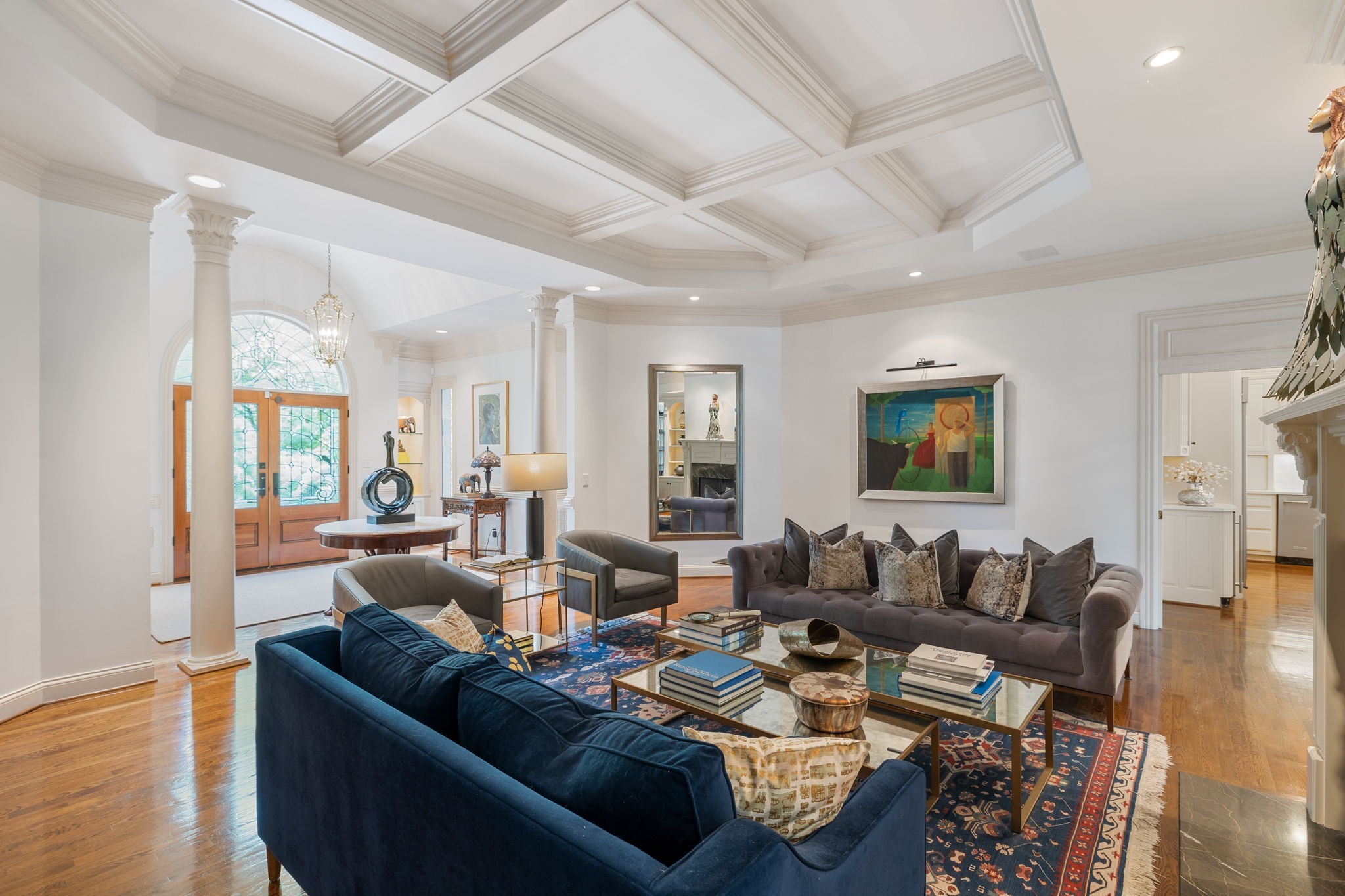 Showstopper in Brentwood w/substantial price improvement! This gracious Heathrow Hills home offers a rare blend of contemporary luxury and traditional design. The property boasts an exquisite backyard sanctuary equipped with a saltwater pool and spa, professionally curated gardens, and an expansive flagstone patio. The impressive entryway sets the stage for three levels of luxury living and a wonderfully versatile floor plan. Two main level suites along with three separate first floor living areas offer flexibility and functionality. The circular floor plan allows for both ease of entertaining and comfortable family living, incorporating timeless finishes and stunning updates throughout. The updated chef's kitchen opens seamlessly to a sunny breakfast nook overlooking the resort style pool and backyard. Elevated kitchen features include gleaming quartzite counters, newer appliances, stunning designer tile and all new lighting. The separate butlers area flows to the spacious formal dining room beyond, overlooking the sprawling front lawn. The luxurious primary suite is a true retreat, with a spacious spa-like bath and a huge boutique style closet. Opening directly to the fully renovated laundry room, this expansive suite blends luxury and functionality in a truly sophisticated way. Upstairs living features two additional ensuite bedrooms and a loft area perfect for homework or crafts. An oversized lower level rec room offers options for an exercise area, media room and more, and boasts brand new luxury flooring. The 4 car garage with all new epoxy flooring is a car collectors dream and includes two storage areas and a separate workshop w/adjacent storm shelter (could be transformed to a perfect man cave). There is a second entrance and separate stairway to to the main level bonus room (currently being used as an in-law suite). Don't miss your opportunity to experience this wonderfully unique home, walking distance to award winning Brentwood Middle & Brentwood High!