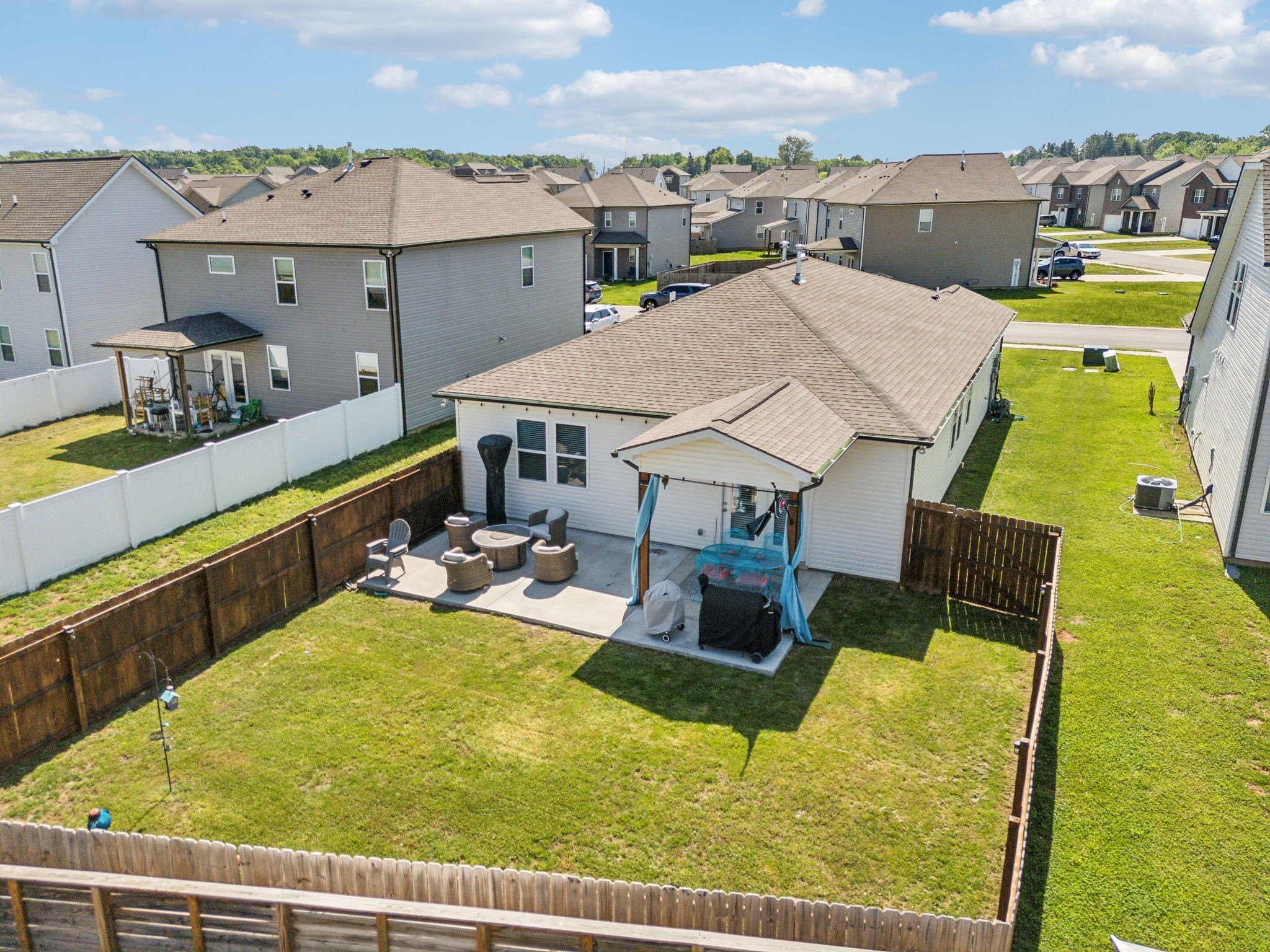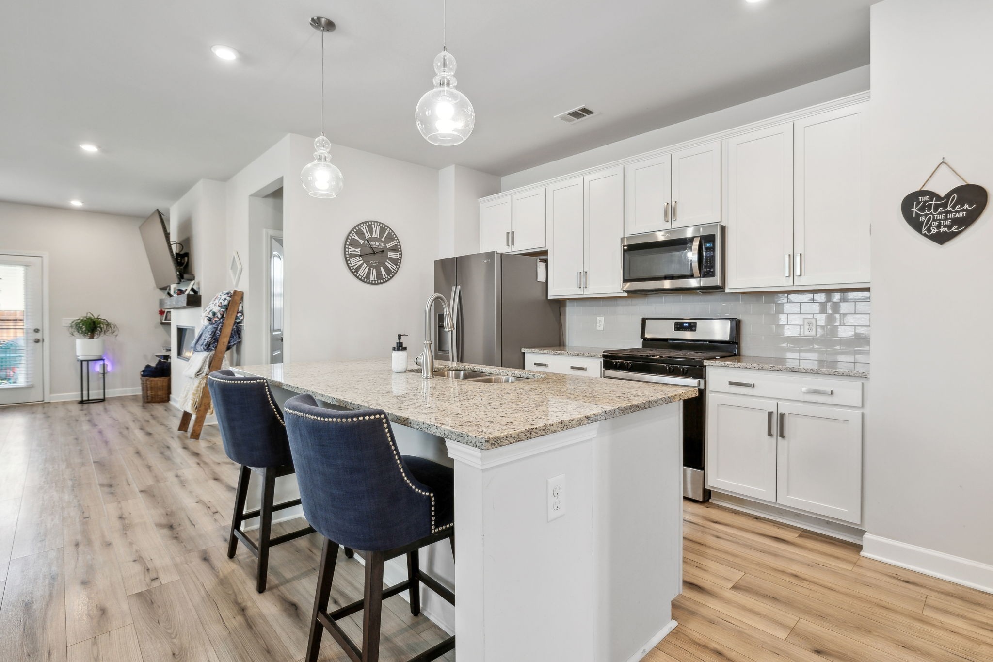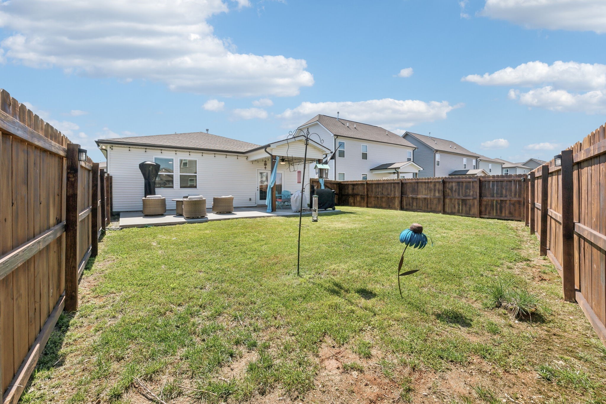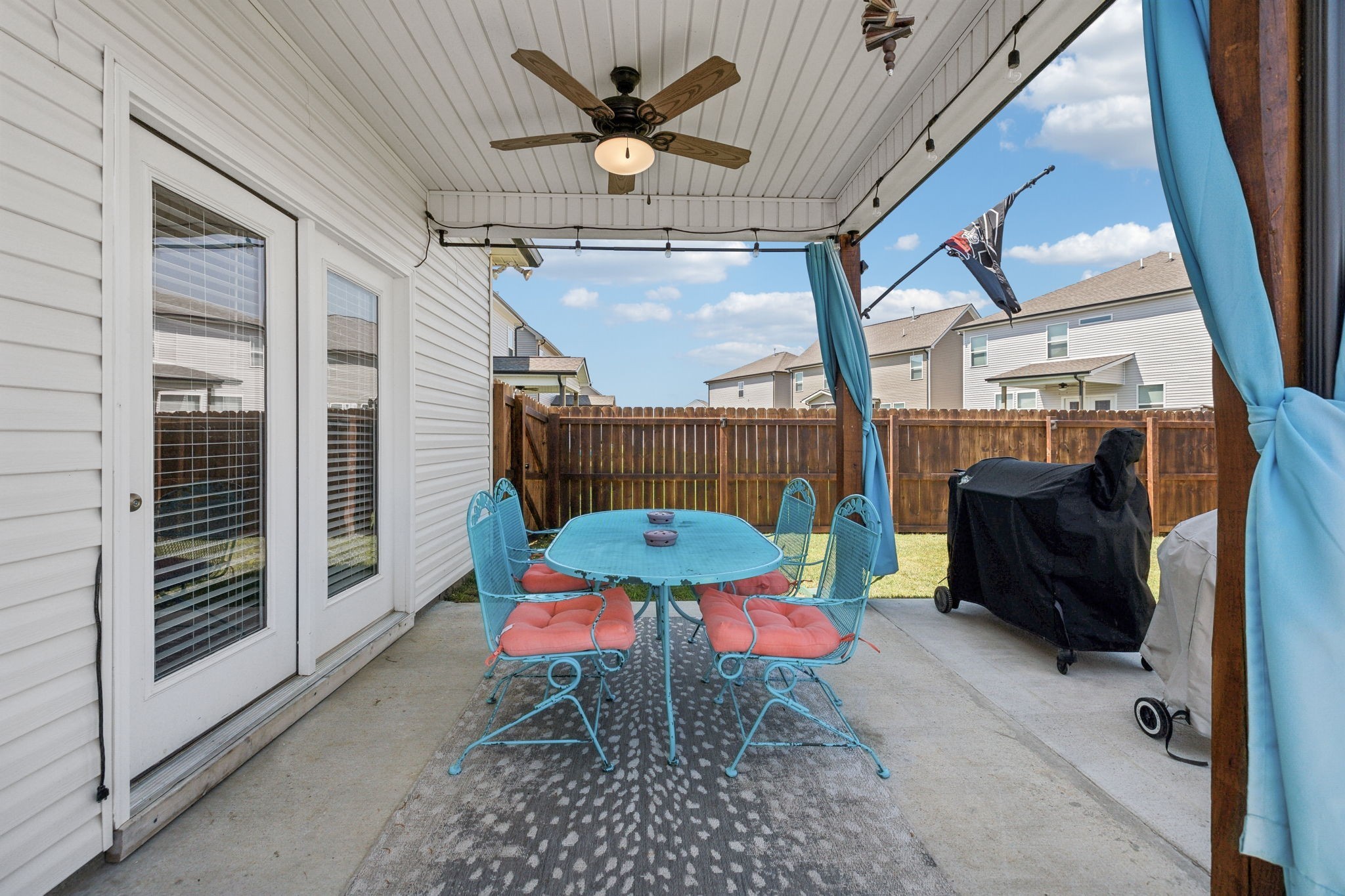 The kitchen is a true centerpiece—complete with a large island that flows effortlessly into the living area with custom built-ins and a cozy fireplace. Outside, enjoy a fully fenced backyard with an extended patio—ideal for morning coffee, evening dinners, or playtime with pets and kids.