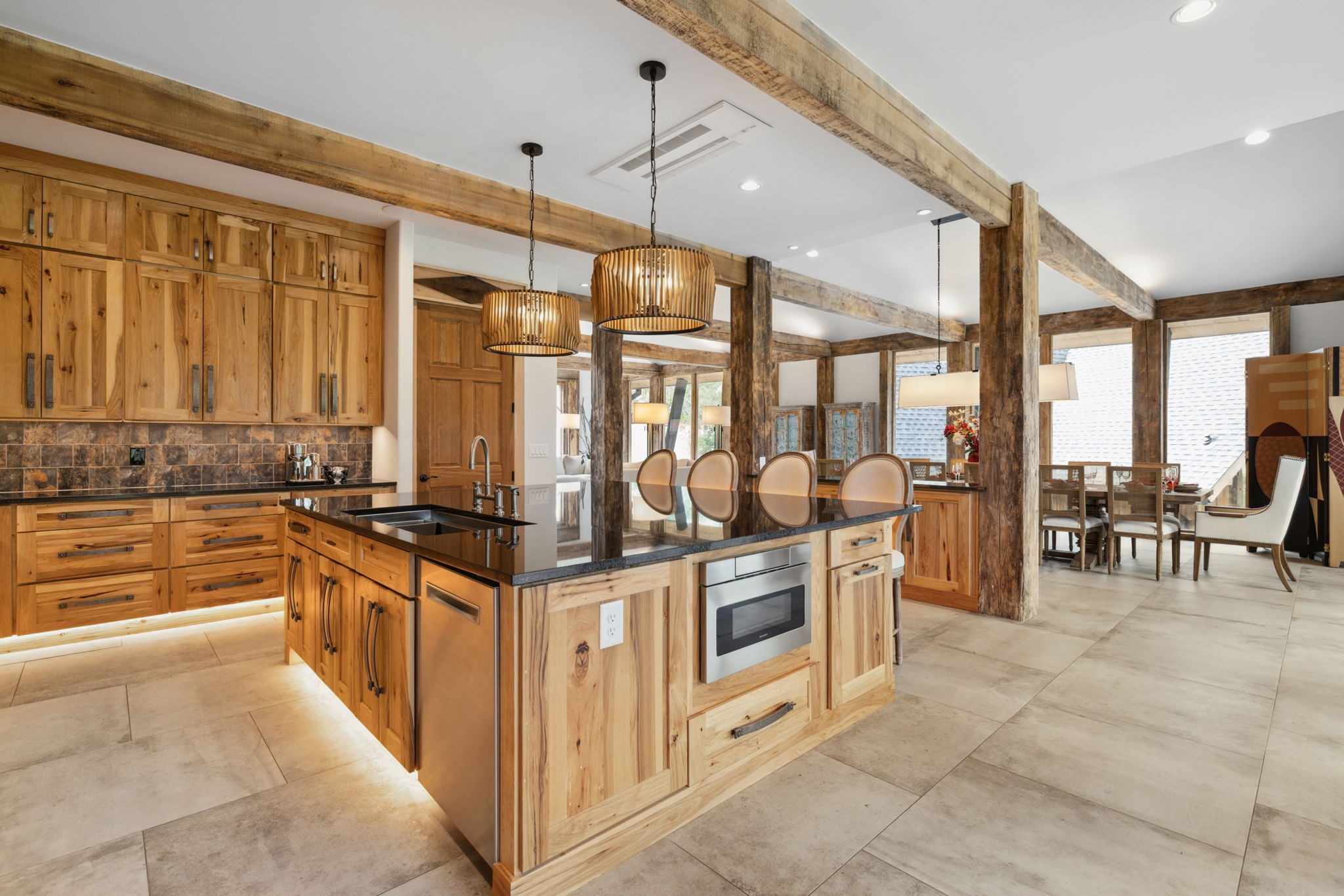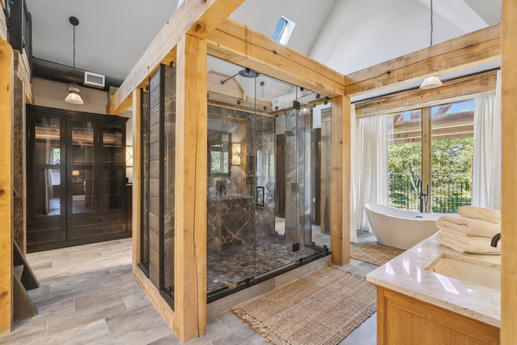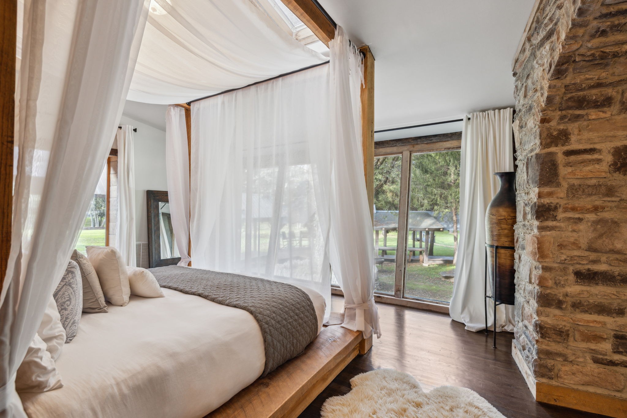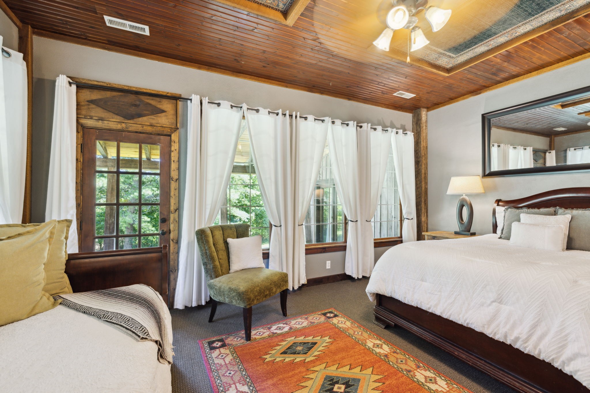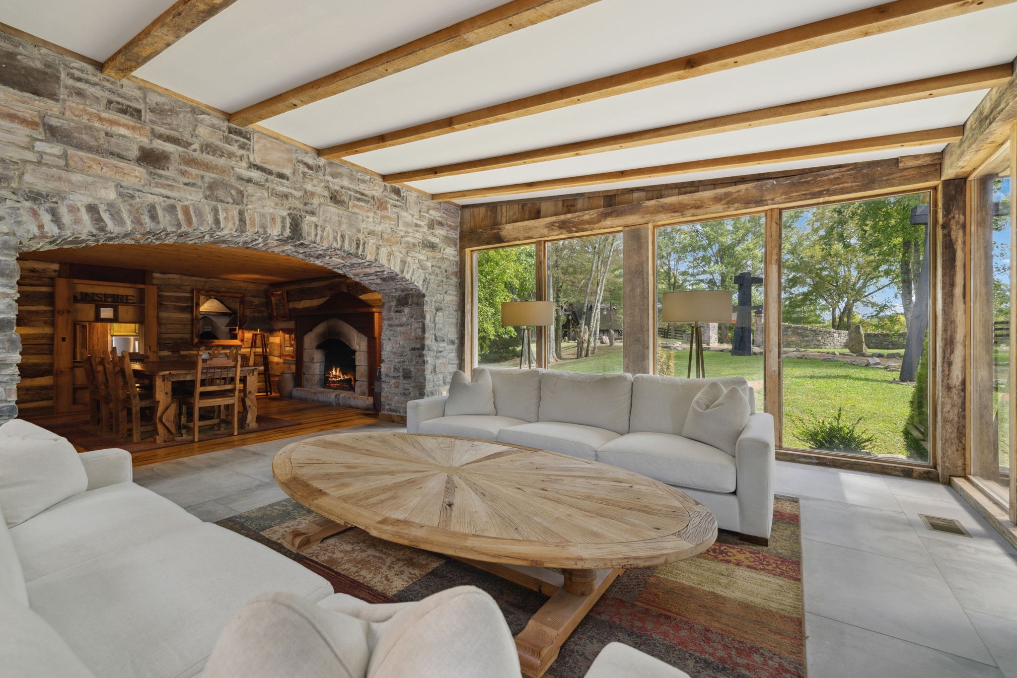 DARK HORSE STUDIO: Built in 1998, and is world-renowned as a destination for A-list recording artists from all around the world. Like The Manor Estate, this approximately 8900 square-foot building is a combination of heavy post and beam construction but with a more rustic feel, creating a unique and immersive environment for artists. For decades, this space has fostered creativity and focus, allowing artists to escape the hustle and bustle of everyday life and find inspiration in a serene, nature-filled setting. This unique building consists of public areas, studios, and two separate sleeping quarters, along with multiple porches and patios.