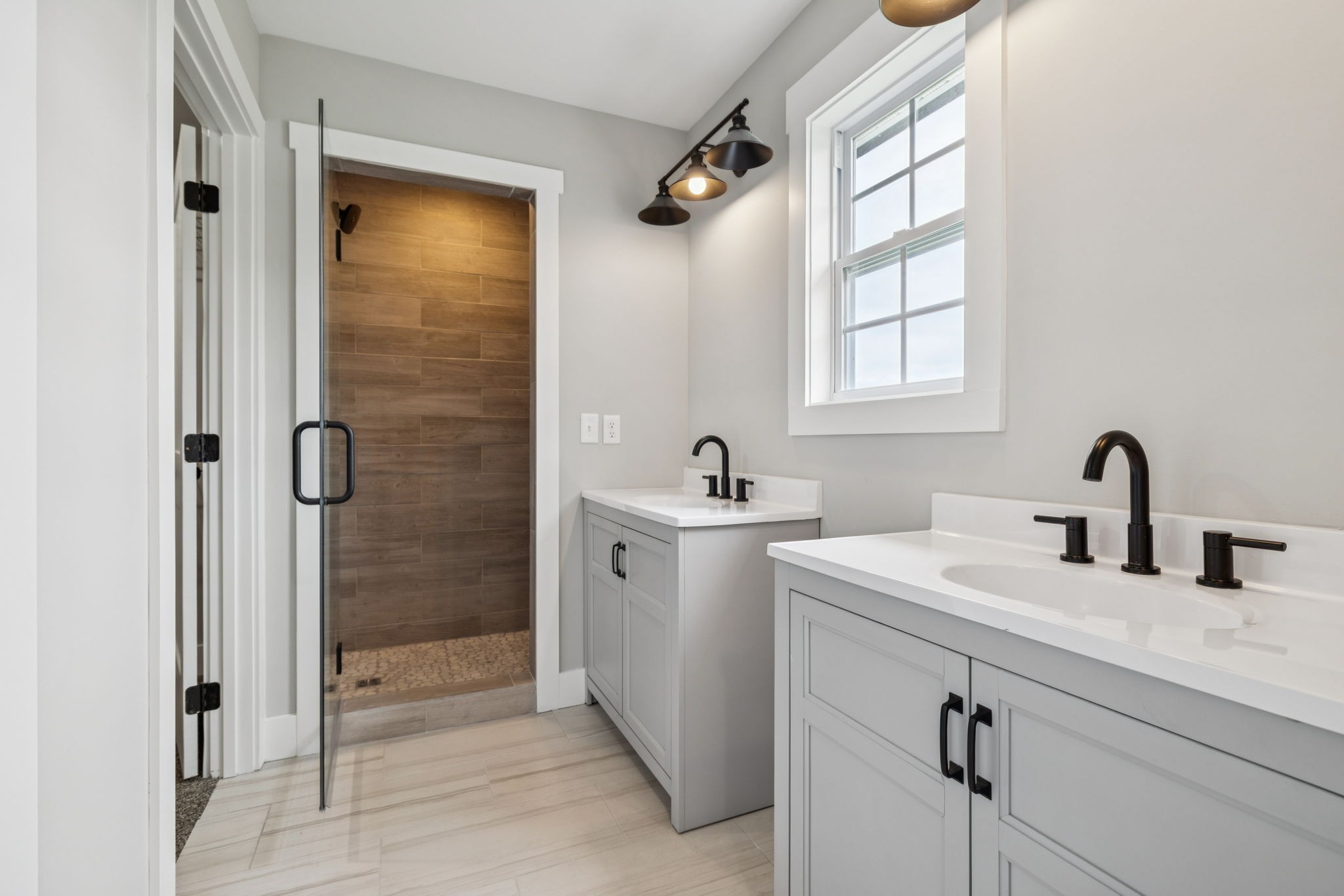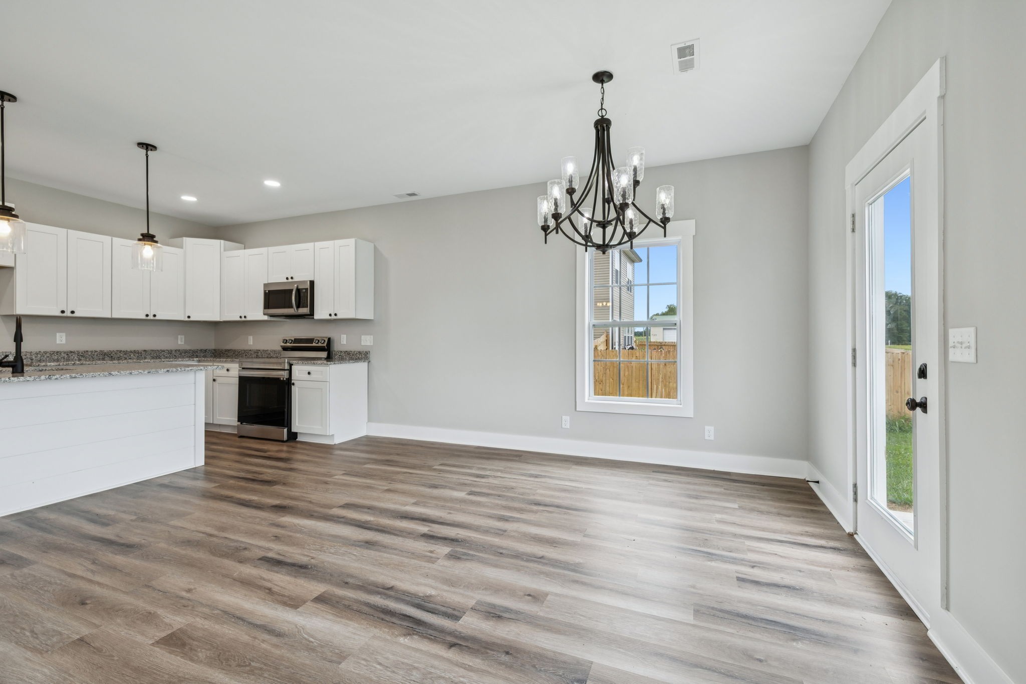 Step inside to a light-filled main level featuring an open layout, perfect for both everyday living and entertaining. The kitchen flows seamlessly into the dining and living spaces, with a half bath nearby for guests. Upstairs, you'll find three spacious bedrooms and two full baths, including a serene primary suite with its own private bathroom with a custom tile shower. Thoughtfully designed with modern finishes and quality craftsmanship-- you'll love calling this one home!