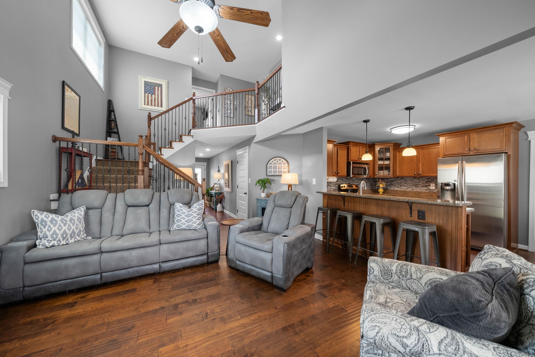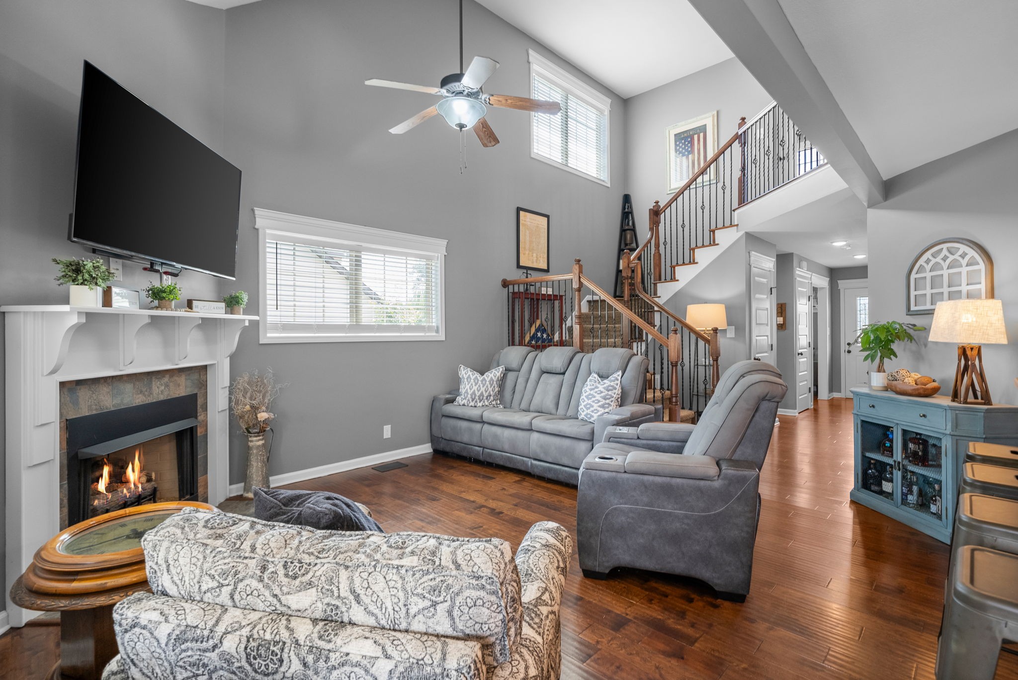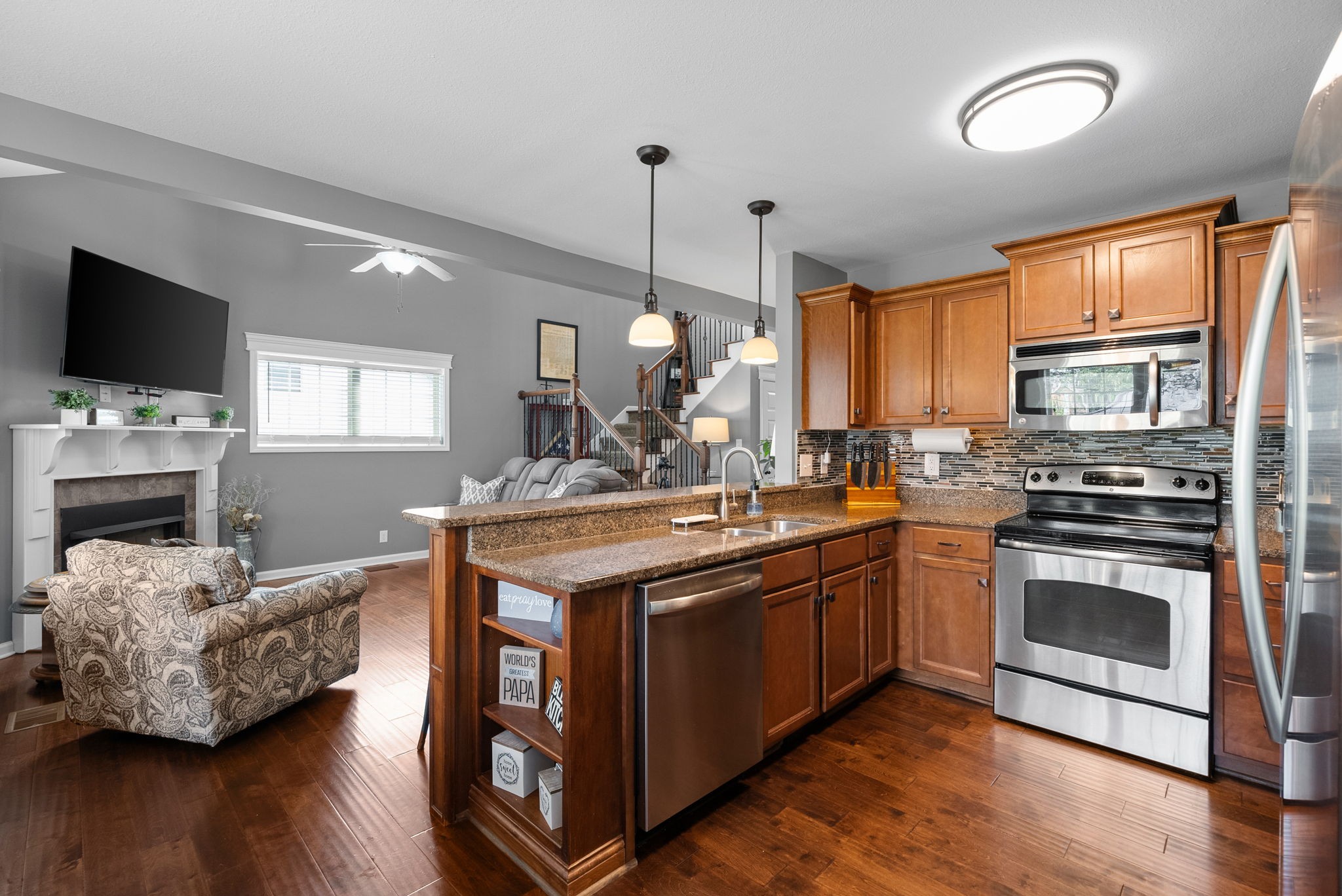 PRIME LOCATION! The backyard alone is going to sell this house! This is the affordable 4 bedroom Sango home you've been looking for in the beautiful Ivy Bend Subdivision! Gorgeous wood floors throughout the main floor of this immaculately maintained home. Office w/custom built in bookshelves. Eat in kitchen with granite counters open to cozy living room with gas fireplace and tall ceilings. Upstairs you will find the primary suite, 3 spare bedrooms and 2 full baths. Extra driveway parking, fenced backyard with fire pit and gorgeous landscaping! Come see this gem today and bring us an offer!