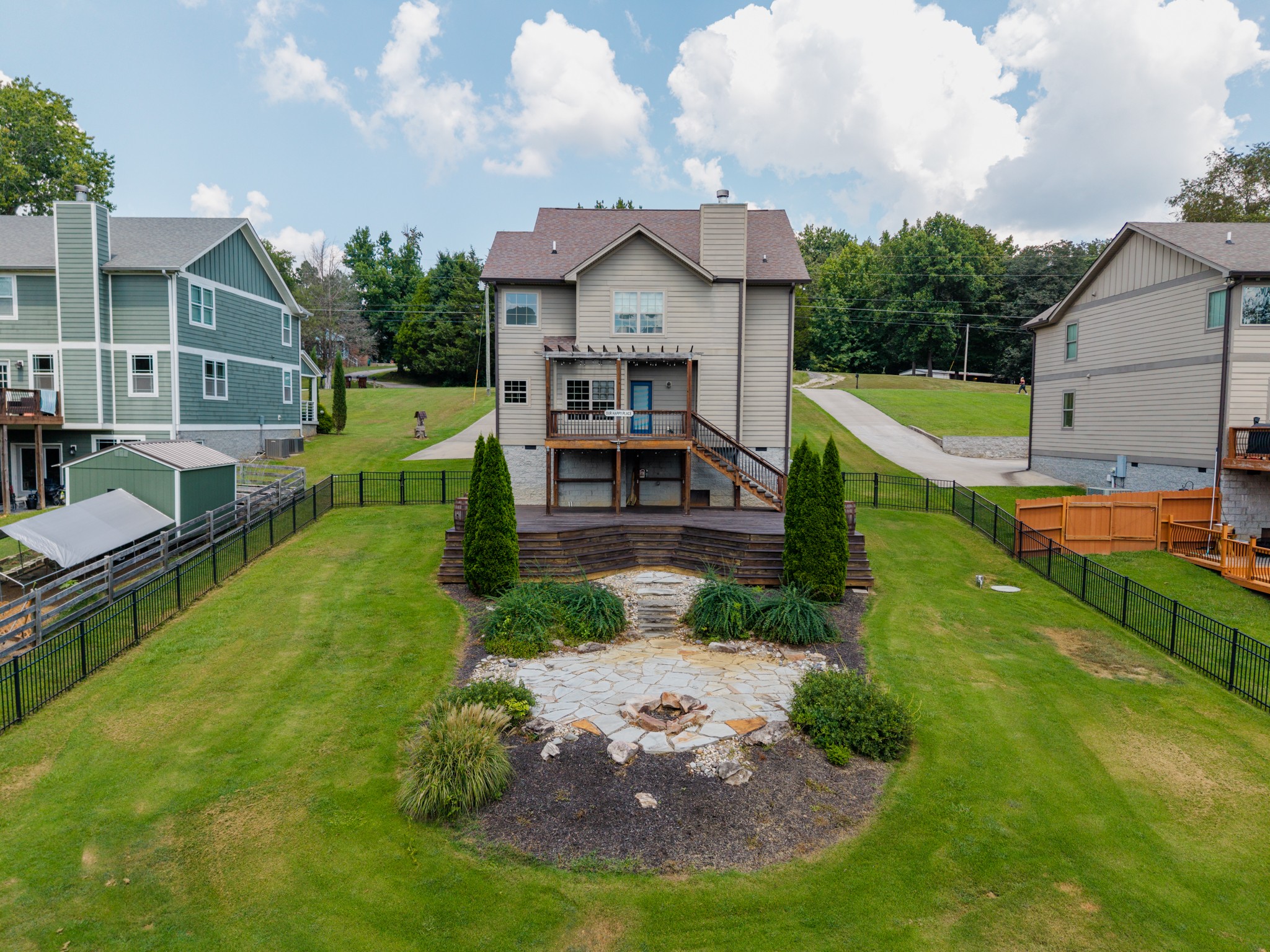 Inside, you'll find tall ceilings, hardwood floors, and thoughtful architectural details like crown molding and oversized windows that frame the view of the expansive back yard. The kitchen offers both a casual eat-in area and a formal dining room, perfect for hosting. A dedicated office sits near the front of the home, tucked away for privacy and productivity. Upstairs, all three bedrooms have plenty of space. The owner’s suite includes a sitting area, vaulted ceilings, and windows overlooking the treetops and lake beyond. Two additional bedrooms and a full bath complete the second level. Out back, a fully fenced yard leads to tiered outdoor living spaces: an upper deck for sunset views, a sprawling lower deck ideal for entertaining, and a flagstone patio with a fire pit. The shared dock, just a short walk away, includes water and electricity plus a private 17x32' slip with room for a jet ski pad. Enjoy the space, the setting, and the convenience of lake life without giving up access to the city. Buyer to verify all pertinent information.