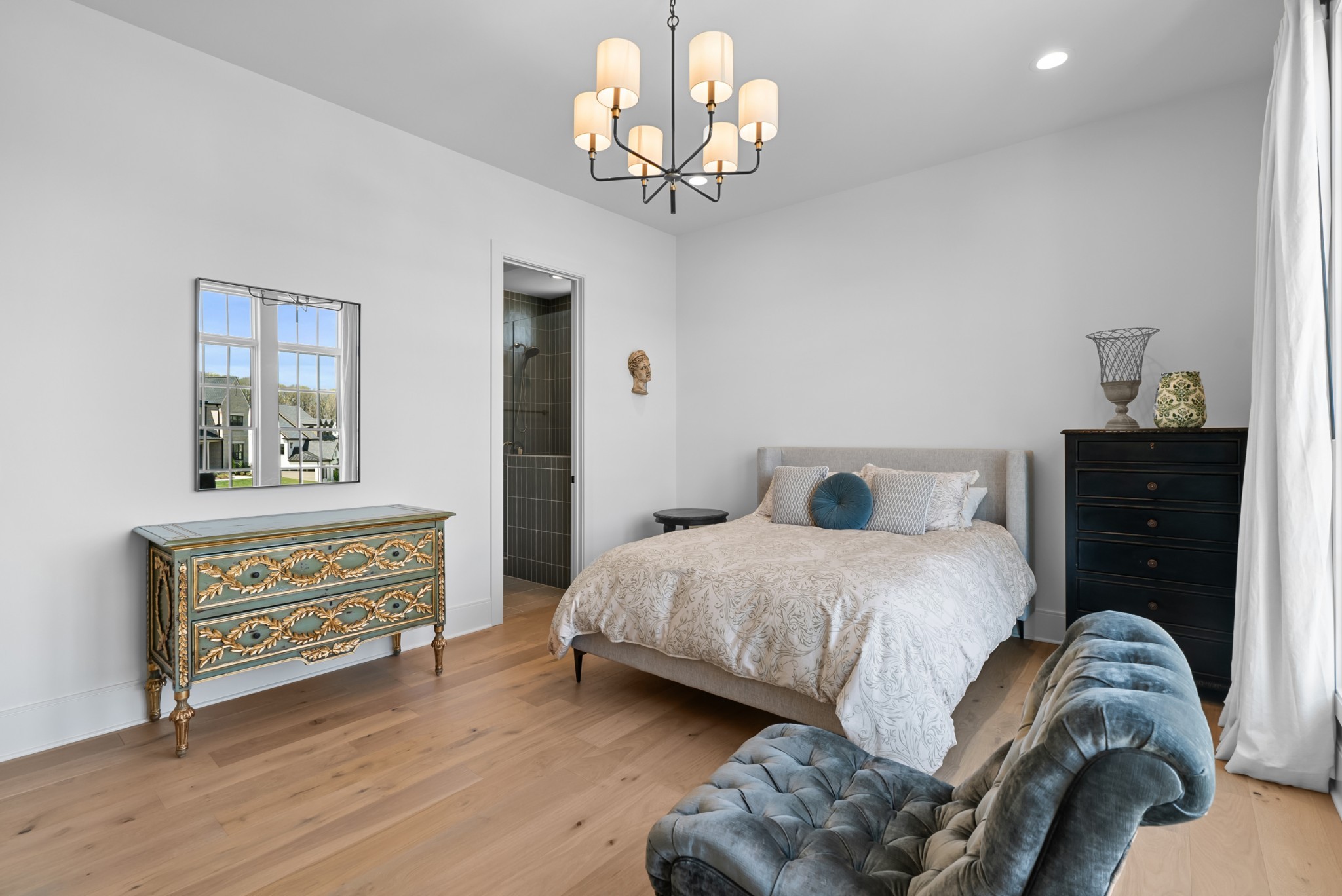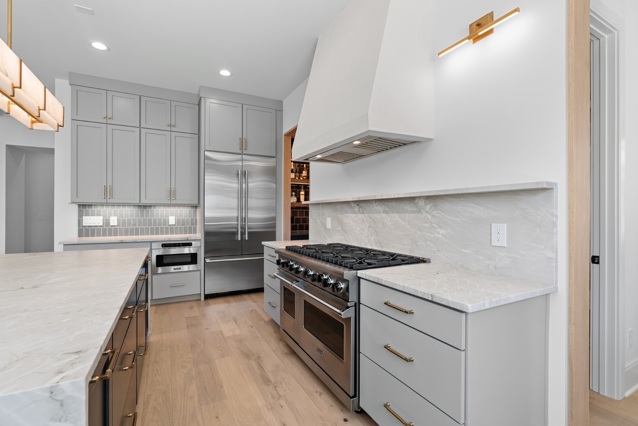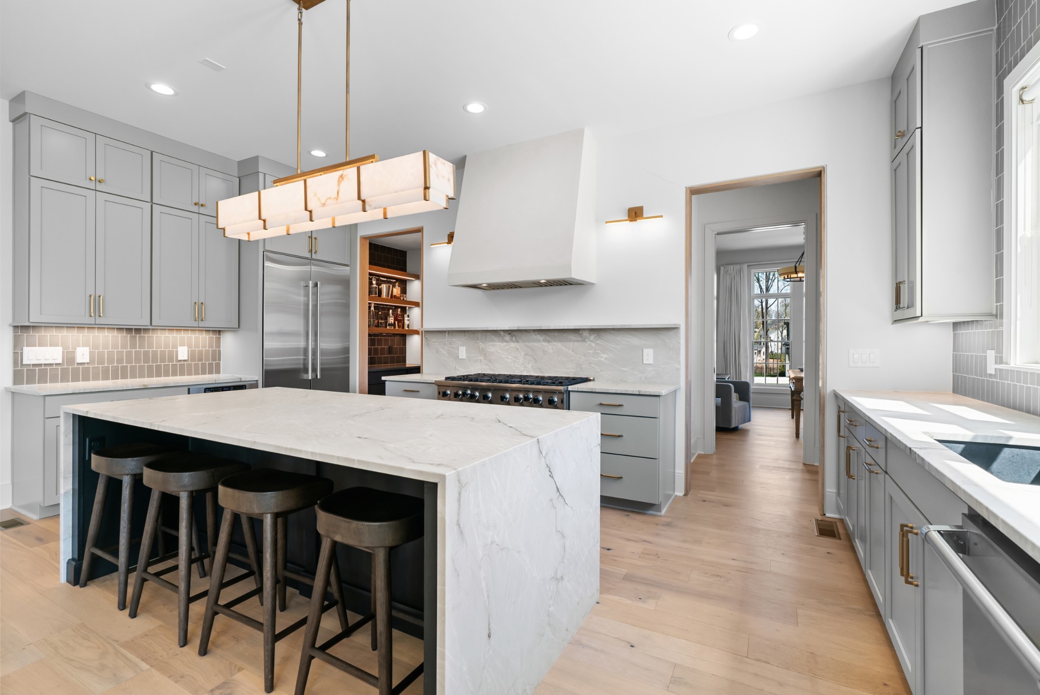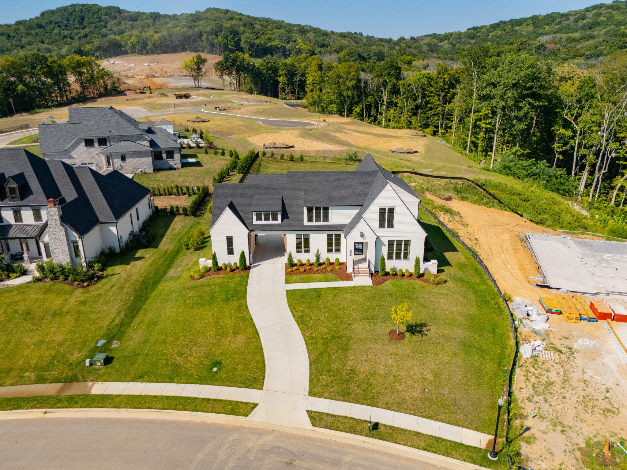 Immediate Occupancy! This exceptional custom-built residence by Ridgemont Homes sits on a generous 0.80-acre lot, offering ample space for a future pool. Thoughtfully designed with luxurious details, the home features wide-plank hardwood flooring throughout—including all bedrooms. The main level showcases both a primary and guest suite, a designer chef’s kitchen with a striking quartz waterfall island, and premium Thermador appliances, including an industrial-style gas range and refrigerator. Adjacent to the kitchen, a cozy morning room, family room and a convenient friend’s entry add everyday ease. A hallway off the 2-car garage leads past a custom cubby area to a spacious laundry room with upper and lower cabinetry. Outdoors, enjoy a covered porch with a fireplace, plus a patio equipped with a built-in grill and beverage refrigerator—perfect for entertaining. The elegant primary suite boasts a custom ceiling, spa-like bath, and walk-in closet. Upstairs, a large bonus/media room with a bar area connects to another bonus space above the porte-cochere, with direct access to walk-in storage. Additional highlights include an upstairs laundry room and a hallway bookcase with gallery lighting. Each bedroom enjoys access to its own bathroom. Located in the desirable Williamson County School District, this home is zoned for Crockett Elementary, Woodland Middle, and Ravenwood High. Community amenities include a new pool & cabana. Pickleball court is planned for 2025/2026.