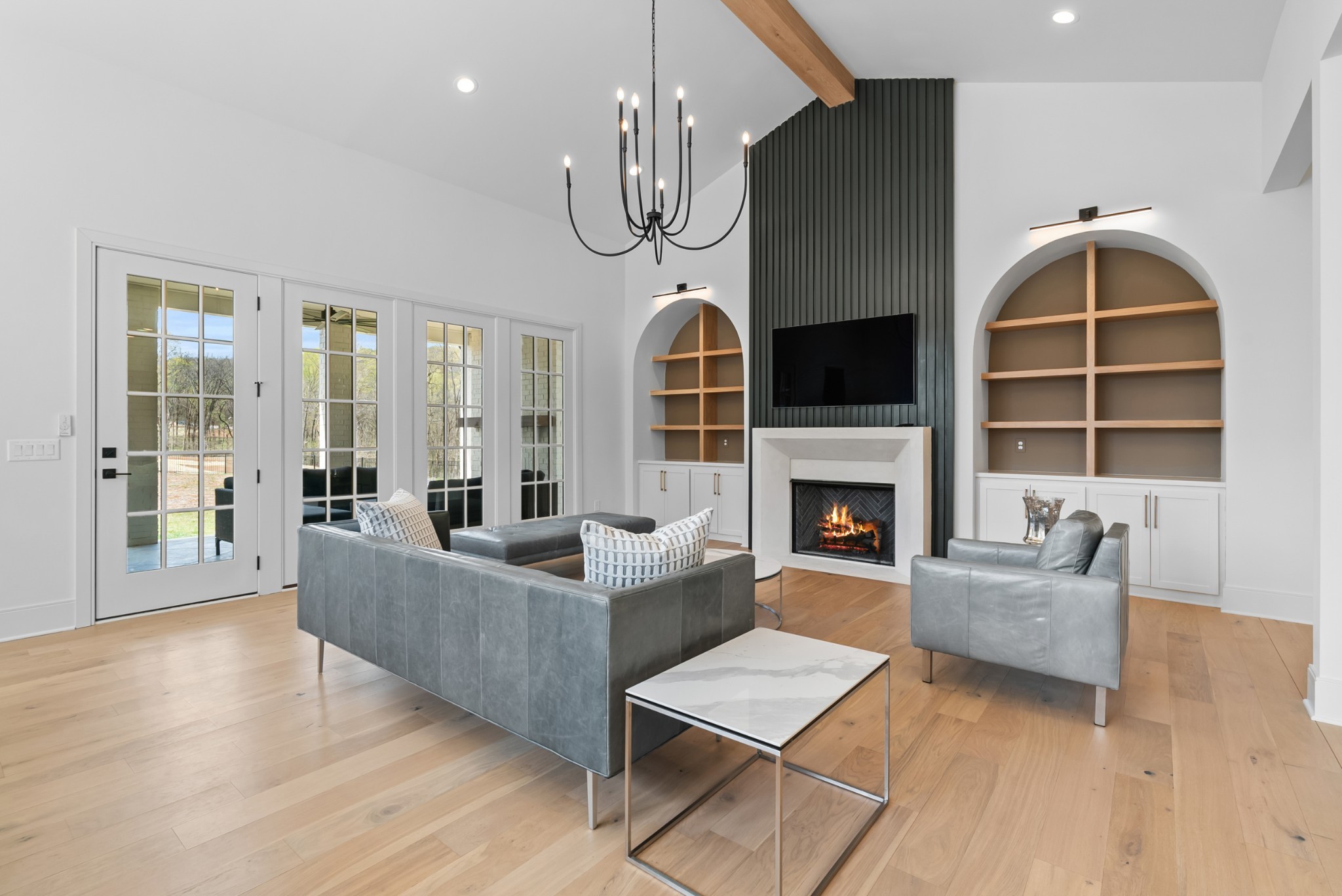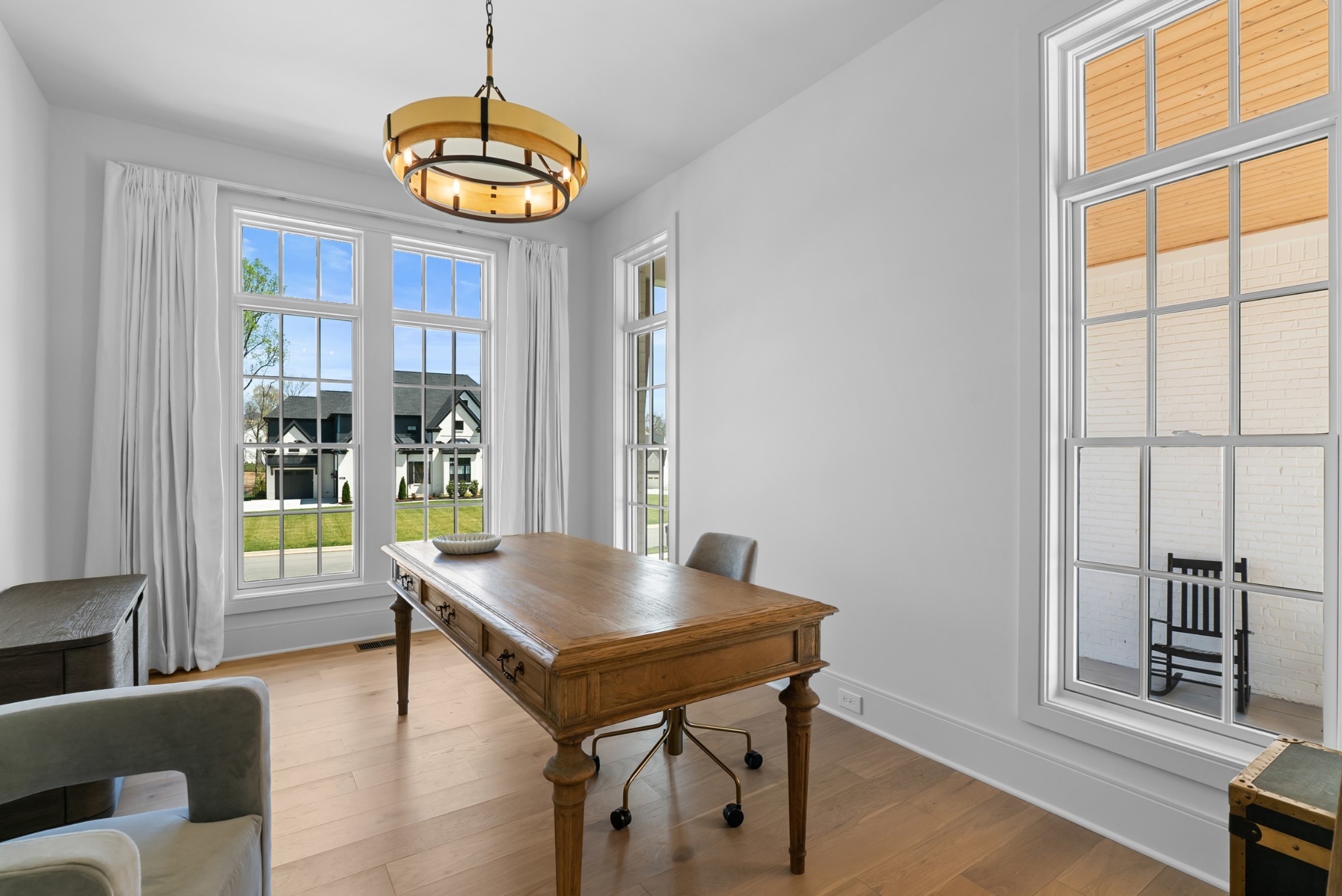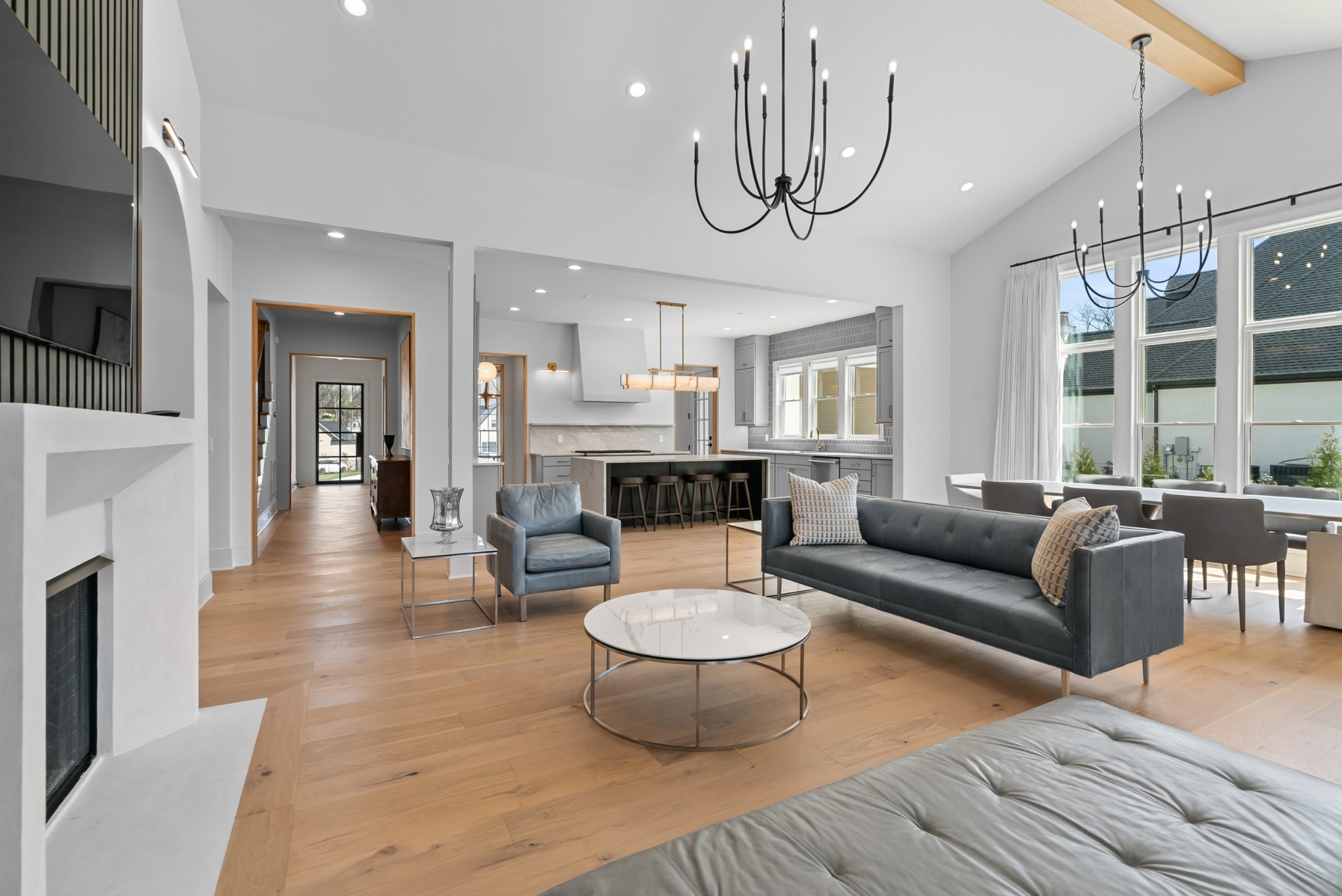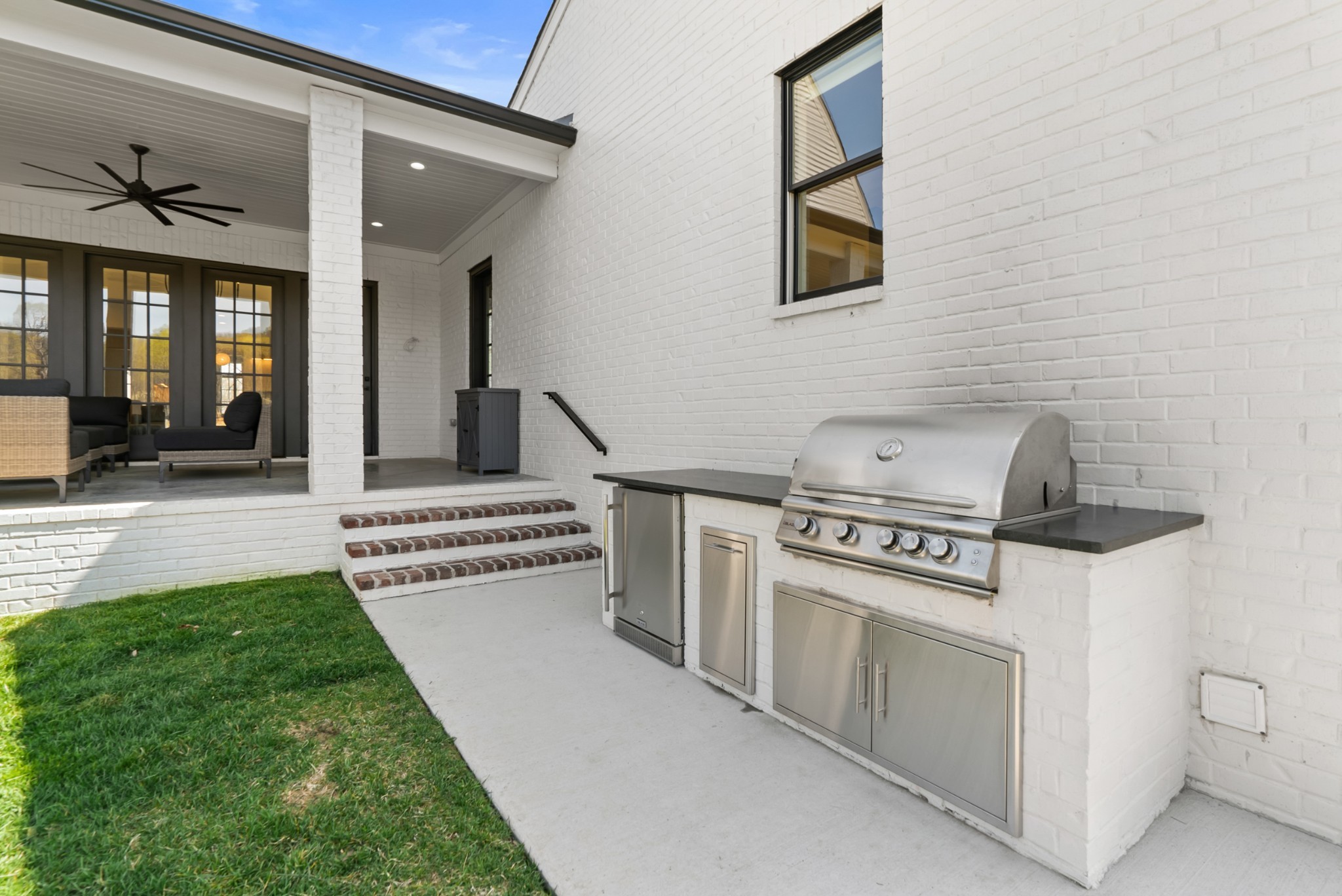 Immediate Occupancy! This exceptional custom-built residence by Ridgemont Homes sits on a generous 0.80-acre lot, offering ample space for a future pool. Thoughtfully designed with luxurious details, the home features wide-plank hardwood flooring throughout—including all bedrooms. The main level showcases both a primary and guest suite, a designer chef’s kitchen with a striking quartz waterfall island, and premium Thermador appliances, including an industrial-style gas range and refrigerator. Adjacent to the kitchen, a cozy morning room, family room and a convenient friend’s entry add everyday ease. A hallway off the 2-car garage leads past a custom cubby area to a spacious laundry room with upper and lower cabinetry. Outdoors, enjoy a covered porch with a fireplace, plus a patio equipped with a built-in grill and beverage refrigerator—perfect for entertaining. The elegant primary suite boasts a custom ceiling, spa-like bath, and walk-in closet. Upstairs, a large bonus/media room with a bar area connects to another bonus space above the porte-cochere, with direct access to walk-in storage. Additional highlights include an upstairs laundry room and a hallway bookcase with gallery lighting. Each bedroom enjoys access to its own bathroom. Located in the desirable Williamson County School District, this home is zoned for Crockett Elementary, Woodland Middle, and Ravenwood High. Community amenities include a new pool & cabana. Pickleball court is planned for 2025/2026.