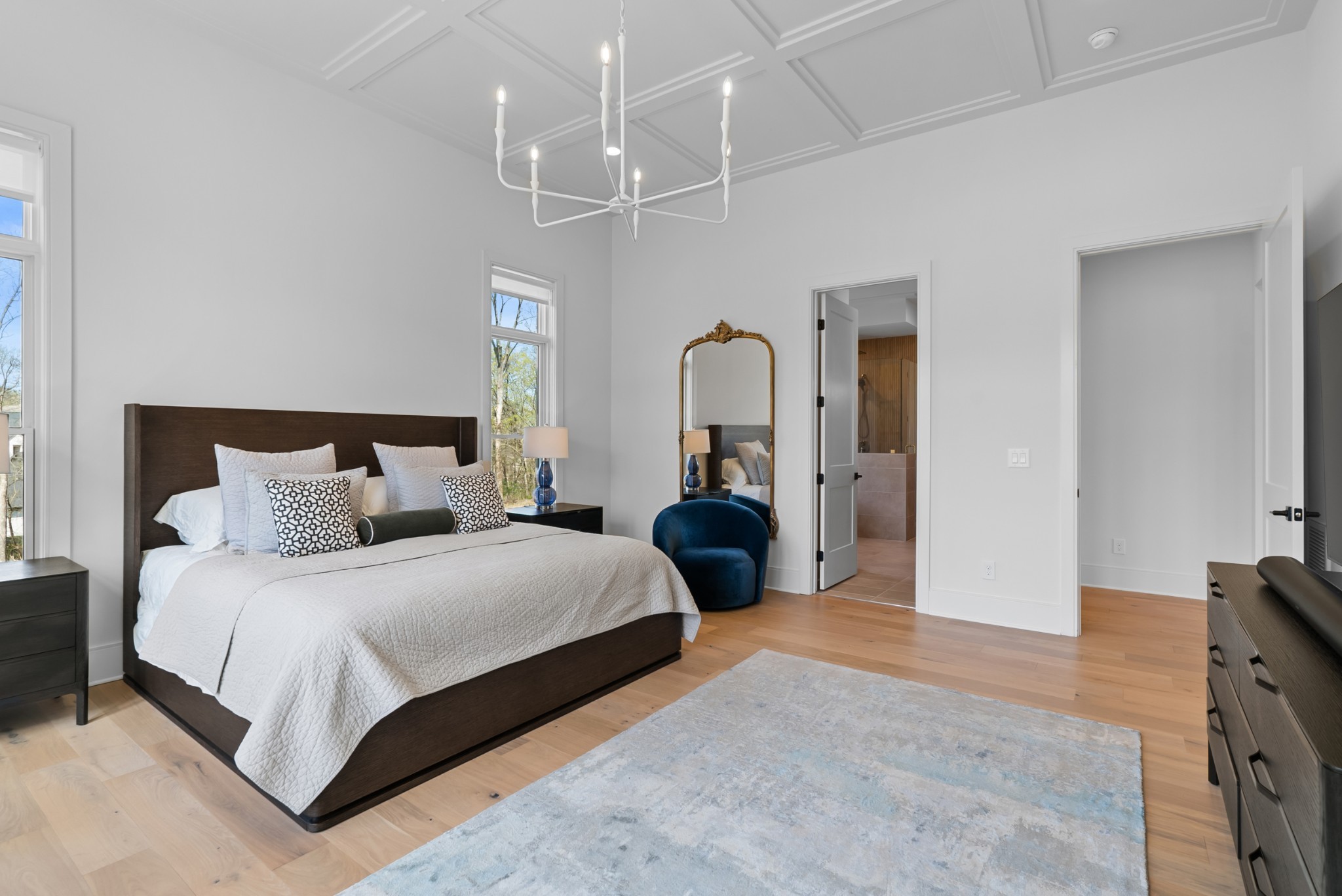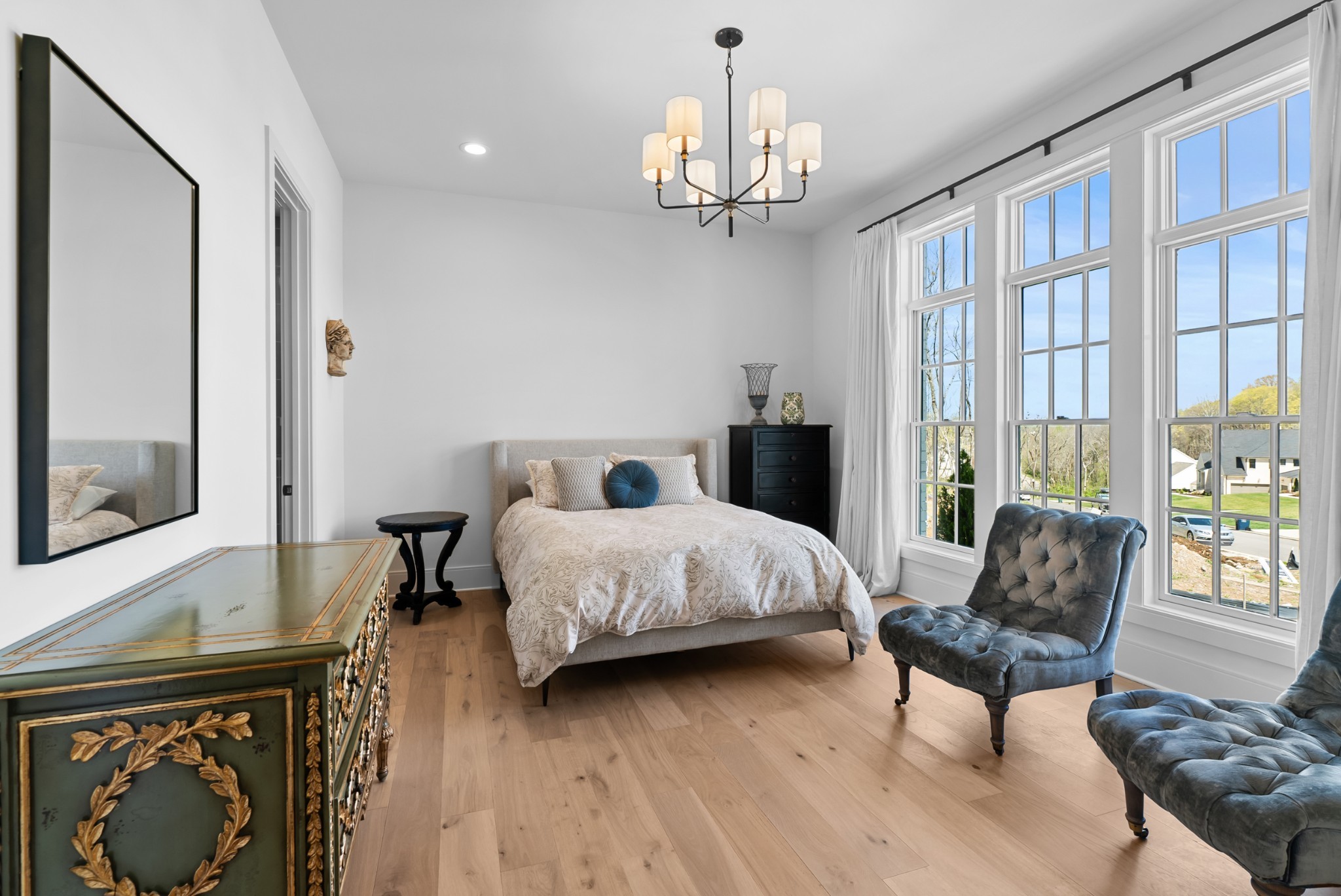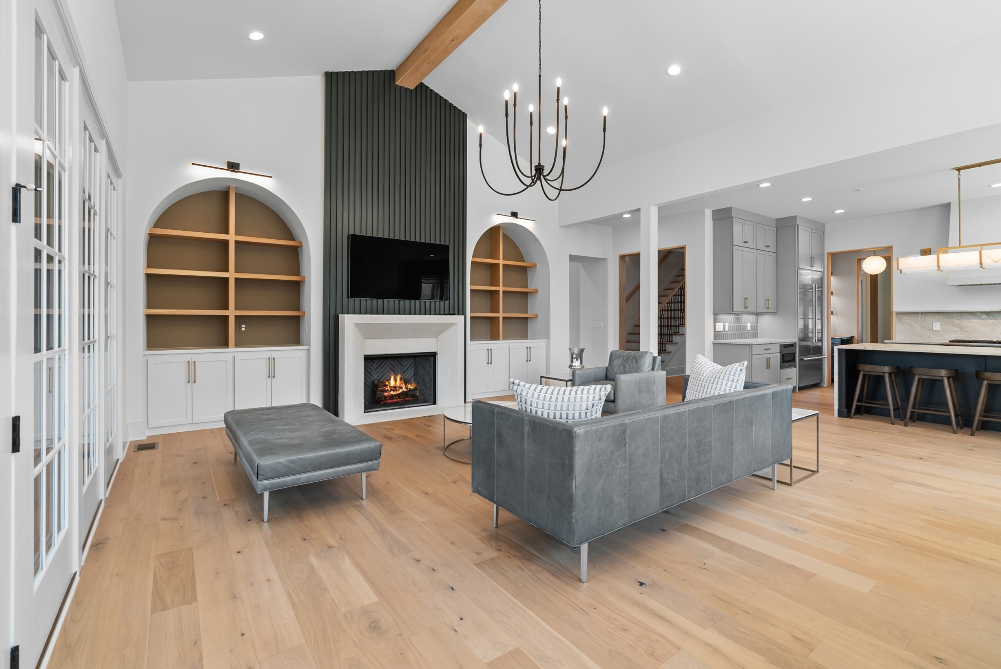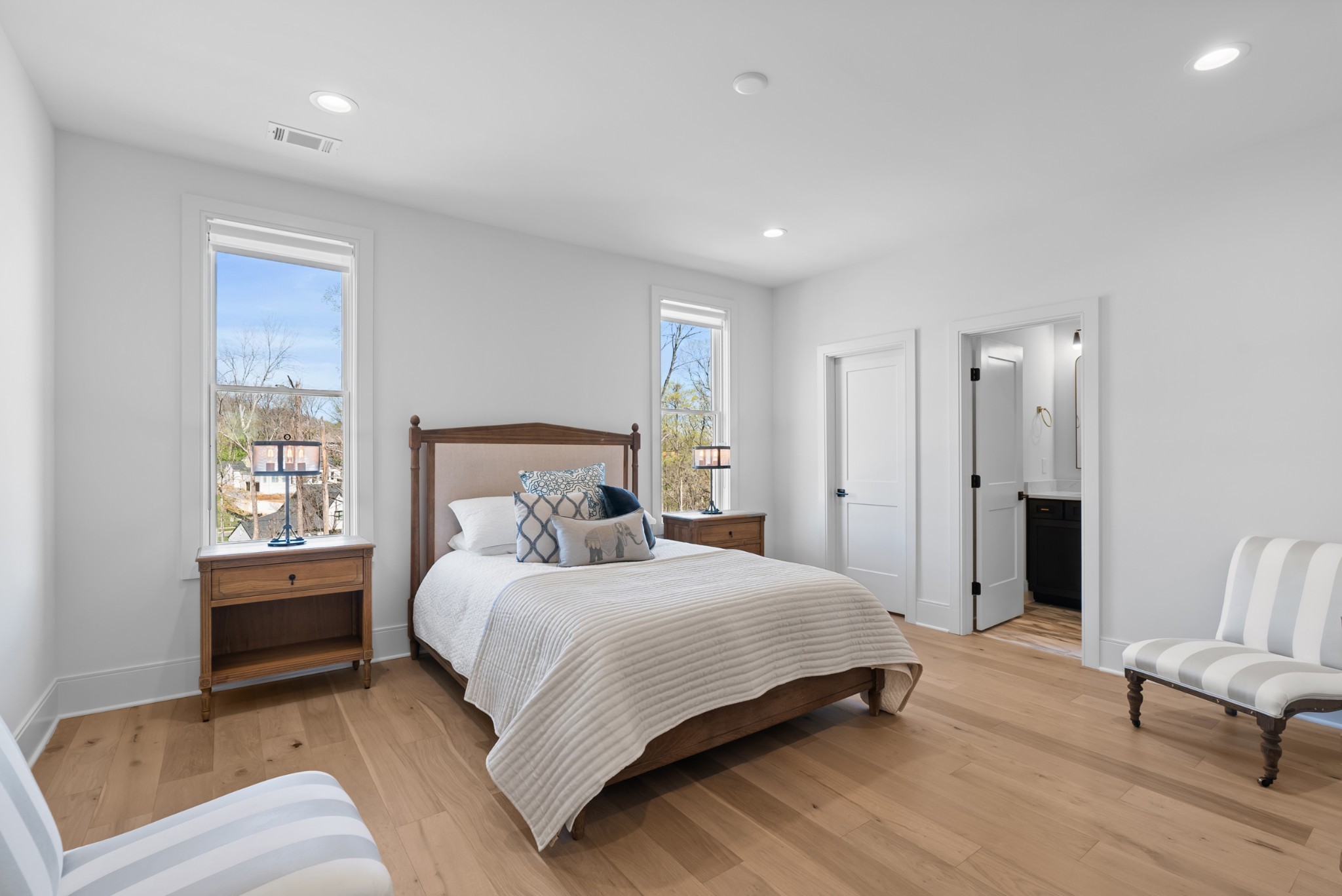 Immediate Occupancy! This exceptional custom-built residence by Ridgemont Homes sits on a generous 0.80-acre lot, offering ample space for a future pool. Thoughtfully designed with luxurious details, the home features wide-plank hardwood flooring throughout—including all bedrooms. The main level showcases both a primary and guest suite, a designer chef’s kitchen with a striking quartz waterfall island, and premium Thermador appliances, including an industrial-style gas range and refrigerator. Adjacent to the kitchen, a cozy morning room, family room and a convenient friend’s entry add everyday ease. A hallway off the 2-car garage leads past a custom cubby area to a spacious laundry room with upper and lower cabinetry. Outdoors, enjoy a covered porch with a fireplace, plus a patio equipped with a built-in grill and beverage refrigerator—perfect for entertaining. The elegant primary suite boasts a custom ceiling, spa-like bath, and walk-in closet. Upstairs, a large bonus/media room with a bar area connects to another bonus space above the porte-cochere, with direct access to walk-in storage. Additional highlights include an upstairs laundry room and a hallway bookcase with gallery lighting. Each bedroom enjoys access to its own bathroom. Located in the desirable Williamson County School District, this home is zoned for Crockett Elementary, Woodland Middle, and Ravenwood High. Community amenities include a new pool & cabana. Pickleball court is planned for 2025/2026.