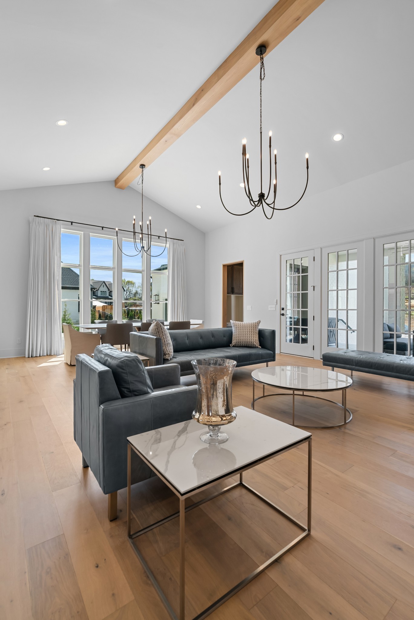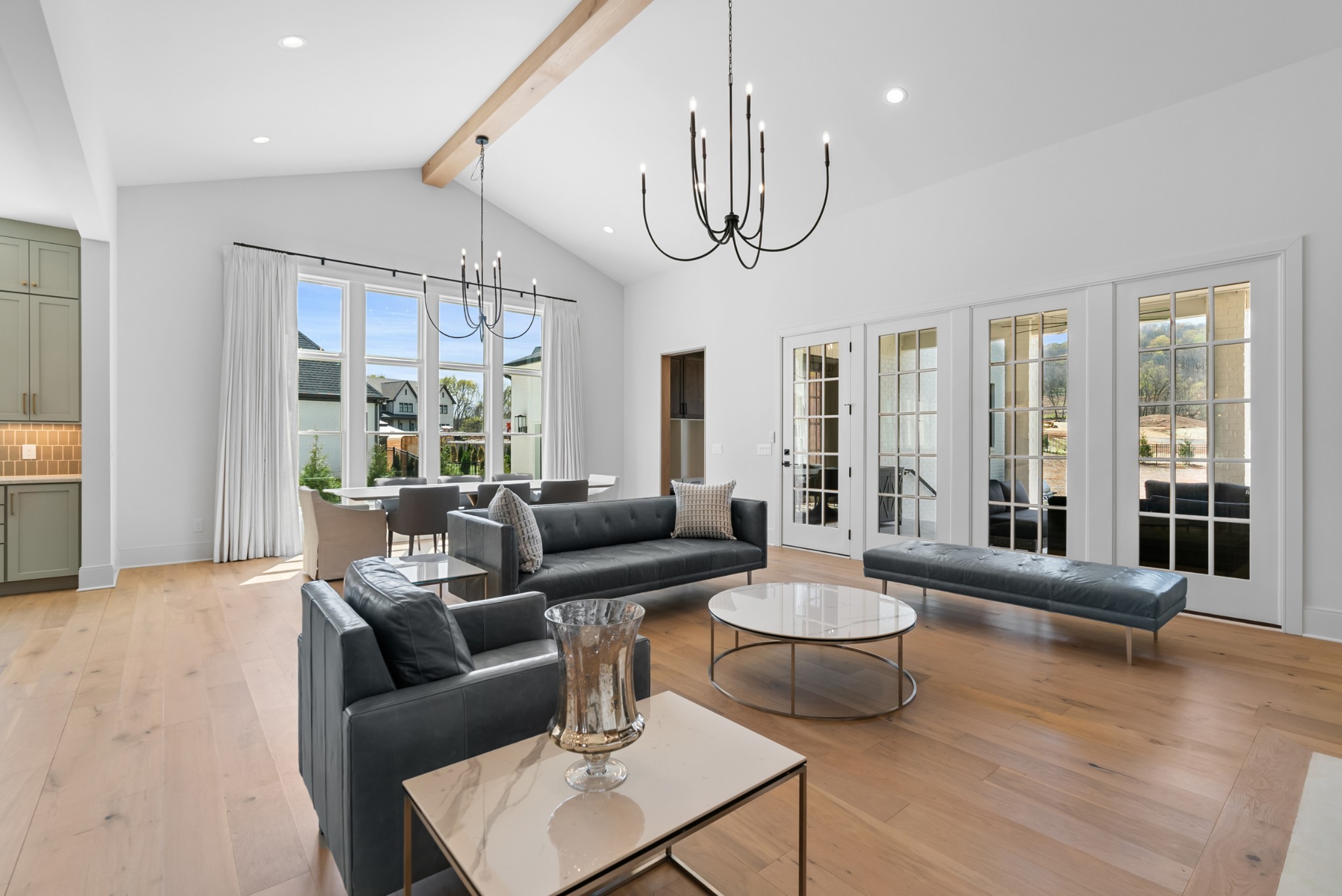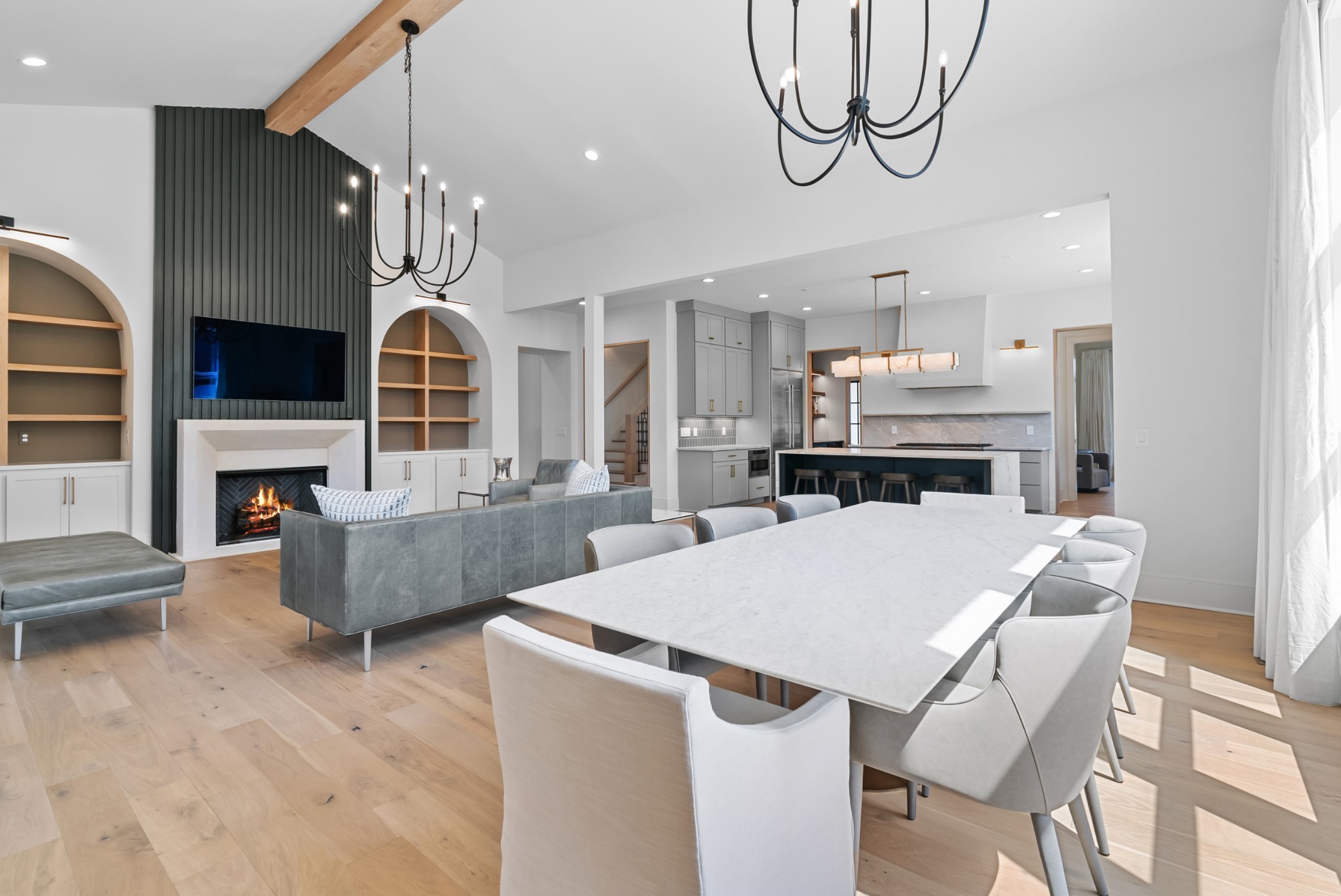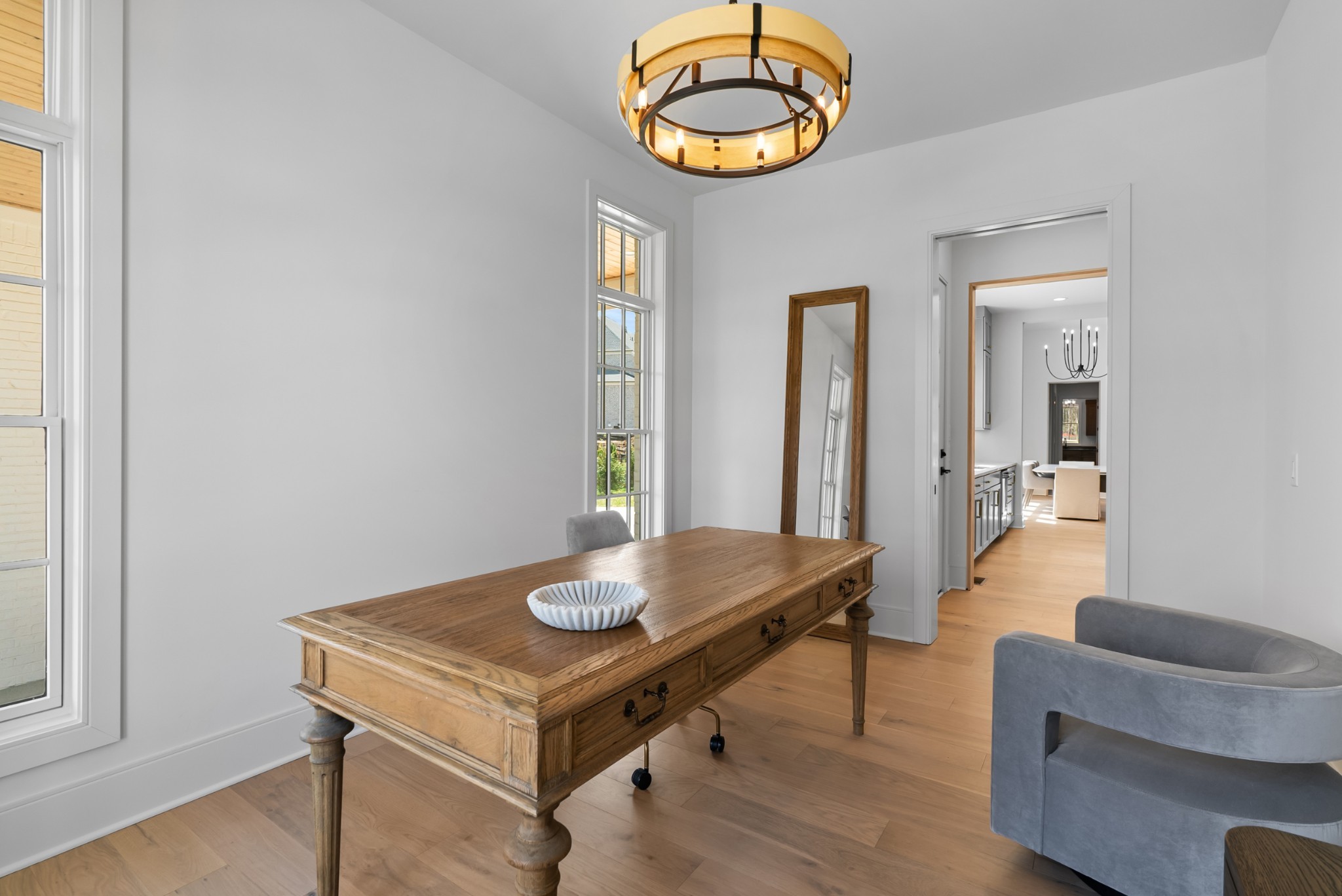 Immediate Occupancy! This exceptional custom-built residence by Ridgemont Homes sits on a generous 0.80-acre lot, offering ample space for a future pool. Thoughtfully designed with luxurious details, the home features wide-plank hardwood flooring throughout—including all bedrooms. The main level showcases both a primary and guest suite, a designer chef’s kitchen with a striking quartz waterfall island, and premium Thermador appliances, including an industrial-style gas range and refrigerator. Adjacent to the kitchen, a cozy morning room, family room and a convenient friend’s entry add everyday ease. A hallway off the 2-car garage leads past a custom cubby area to a spacious laundry room with upper and lower cabinetry. Outdoors, enjoy a covered porch with a fireplace, plus a patio equipped with a built-in grill and beverage refrigerator—perfect for entertaining. The elegant primary suite boasts a custom ceiling, spa-like bath, and walk-in closet. Upstairs, a large bonus/media room with a bar area connects to another bonus space above the porte-cochere, with direct access to walk-in storage. Additional highlights include an upstairs laundry room and a hallway bookcase with gallery lighting. Each bedroom enjoys access to its own bathroom. Located in the desirable Williamson County School District, this home is zoned for Crockett Elementary, Woodland Middle, and Ravenwood High. Community amenities include a new pool & cabana. Pickleball court is planned for 2025/2026.