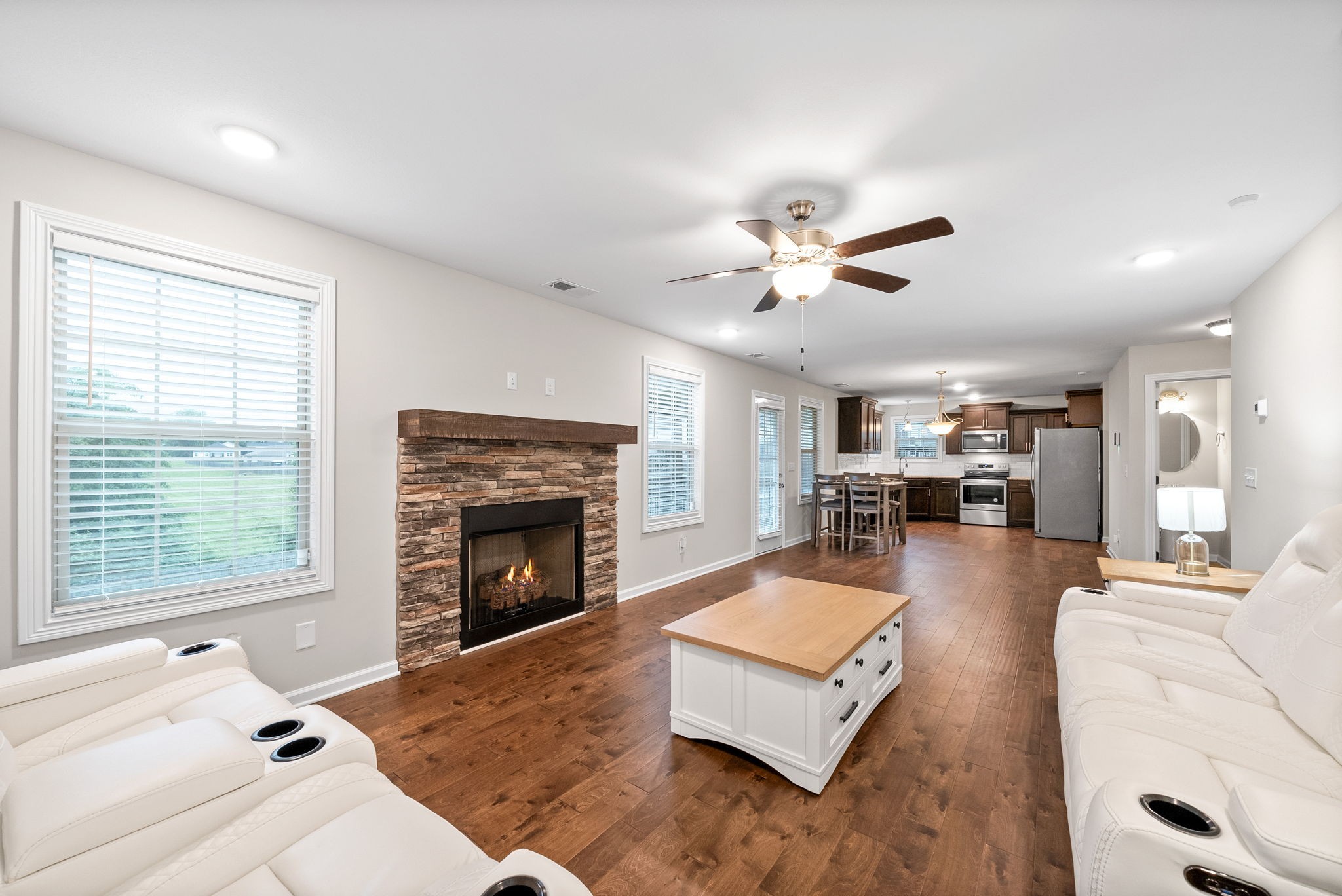 JUST LIKE NEW!!! Without the new price tag in Rossview School district! Barely lived in! Step into elegance with a stunning grand entry w/ soaring ceilings and formal dining room, perfect for hosting and entertaining! The spacious Great Room boasts engineered hardwood floors and a cozy fireplace, creating a warm, inviting atmosphere. The open-concept kitchen is a chef’s dream, featuring custom cabinetry, granite countertops, stainless steel appliances to include the FRIDGE, and a stylish tile backsplash! Retreat to the MEGA-SIZED primary suite, complete with a private sitting area—ideal for relaxing or unwinding after a long day! The en-suite bathroom offers luxury at every turn with a jetted soaking tub, beautifully tiled walk-in shower, dual vanities, and an expansive walk-in closet. Don't miss the opportunity to own this beautifully designed home that blends comfort, space, and style! All of this PLUS a covered back deck w/ ceiling fan & PRIVACY FENCED YARD w/ NO rear neighbors!! MUST SEE in the highly coveted ROSSVIEW School District! YES PLEASE!!!