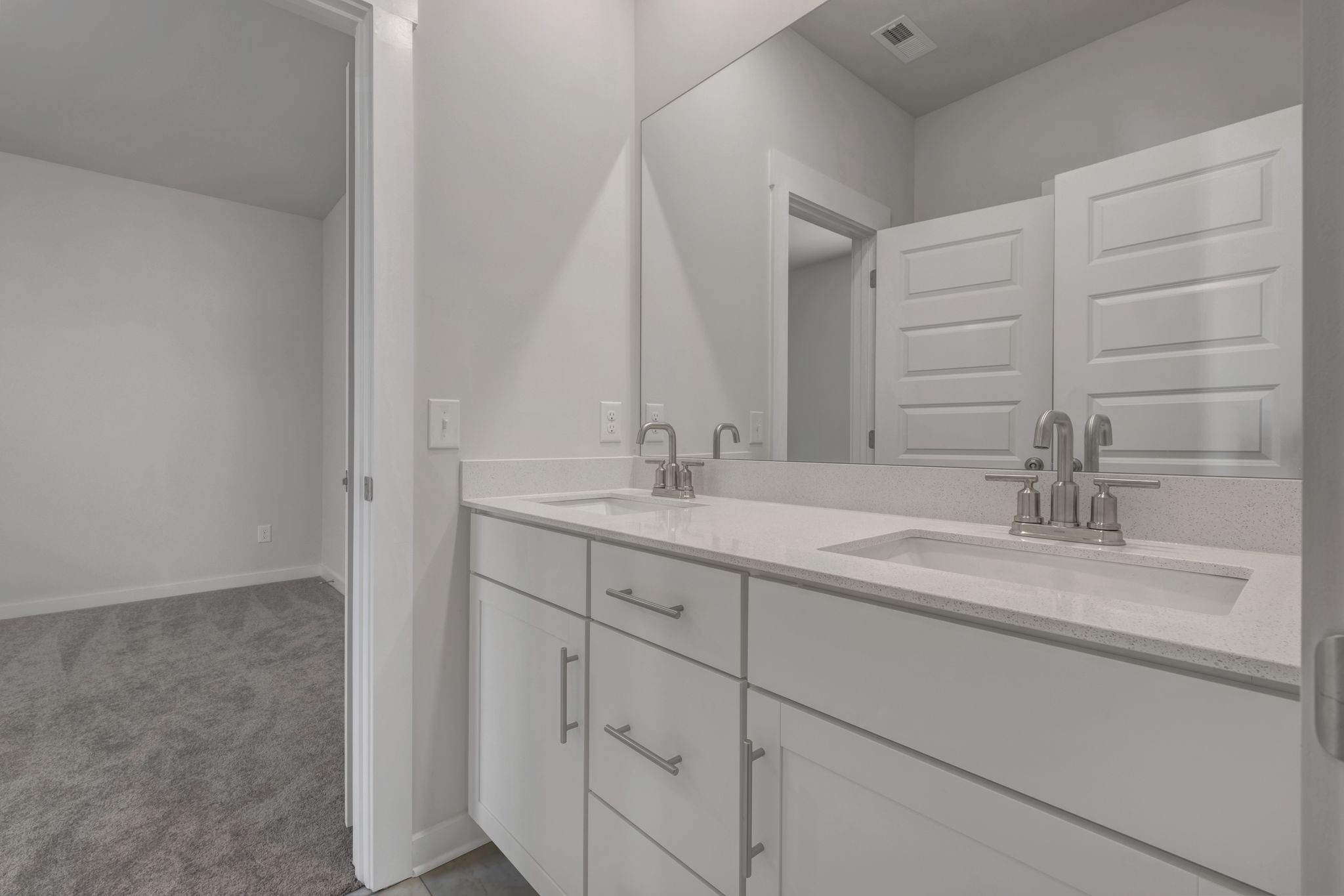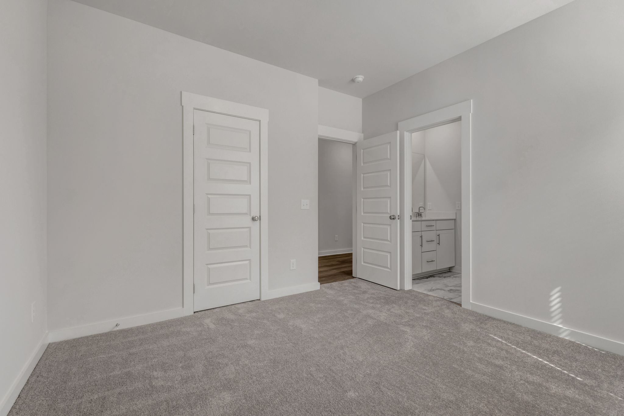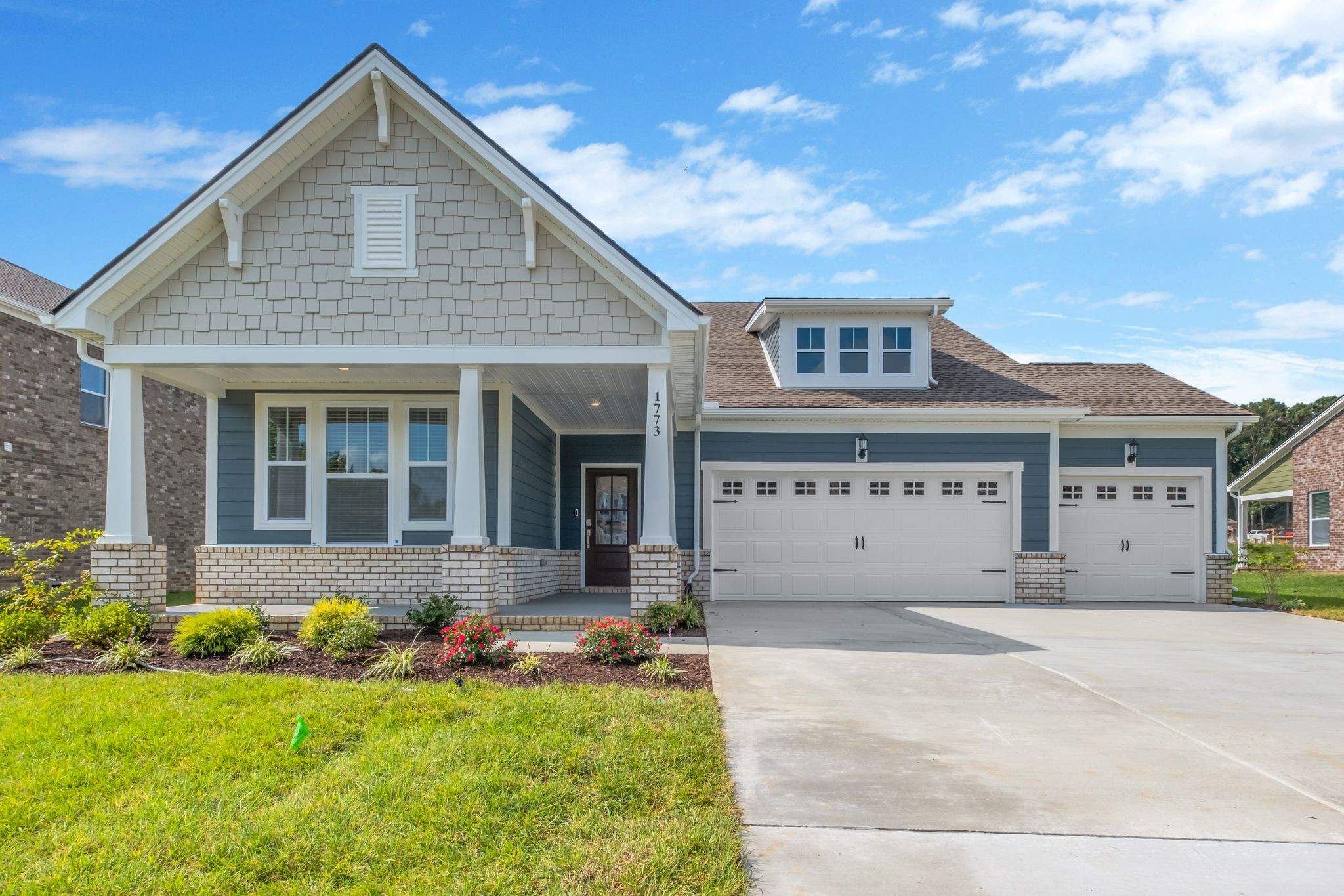 LOT #76 - Chestnut floorplan. With fantastic features including a mudroom near the garage entry, this single-level home boasts a low-maintenance layout designed for modern lifestyles. Two bedrooms are located off the foyer, leading to an open-concept floorplan with convenient access to a covered patio, ready for seamless entertaining and multitasking. The luxe owner’s suite is tucked away at the back of the home, complete with a spa-inspired bathroom and generous walk-in closet. *Images shown are from a nearby Chestnut in the community. Actual configuration and features may vary.