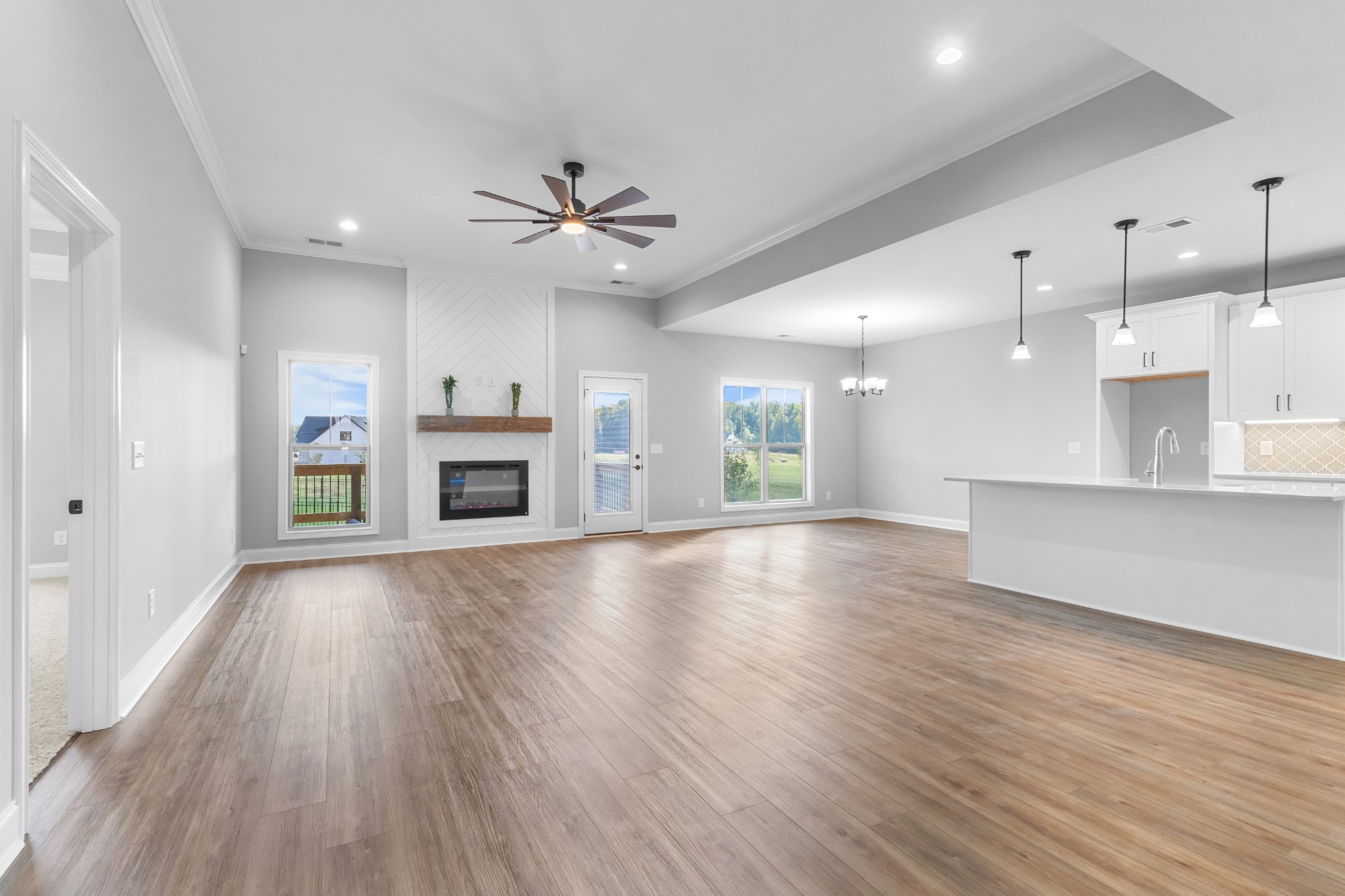 Beautiful Longview Ridge Subdivision is located near Interstate 24, exit 11. It is a great area for commuting to Nashville or Fort Campbell! No steps into this home from the front! Both the front porch and the deck is covered for a year round enjoyment! This home is all brick with wonderful accents. The interior features luxury vinyl plank, tile in the wet areas, lots of cabinets, wood shelving in the closets and pantry, high ceilings, crown molding, stainless appliances, great lighting package to include lots of LEDs everywhere, and much more!