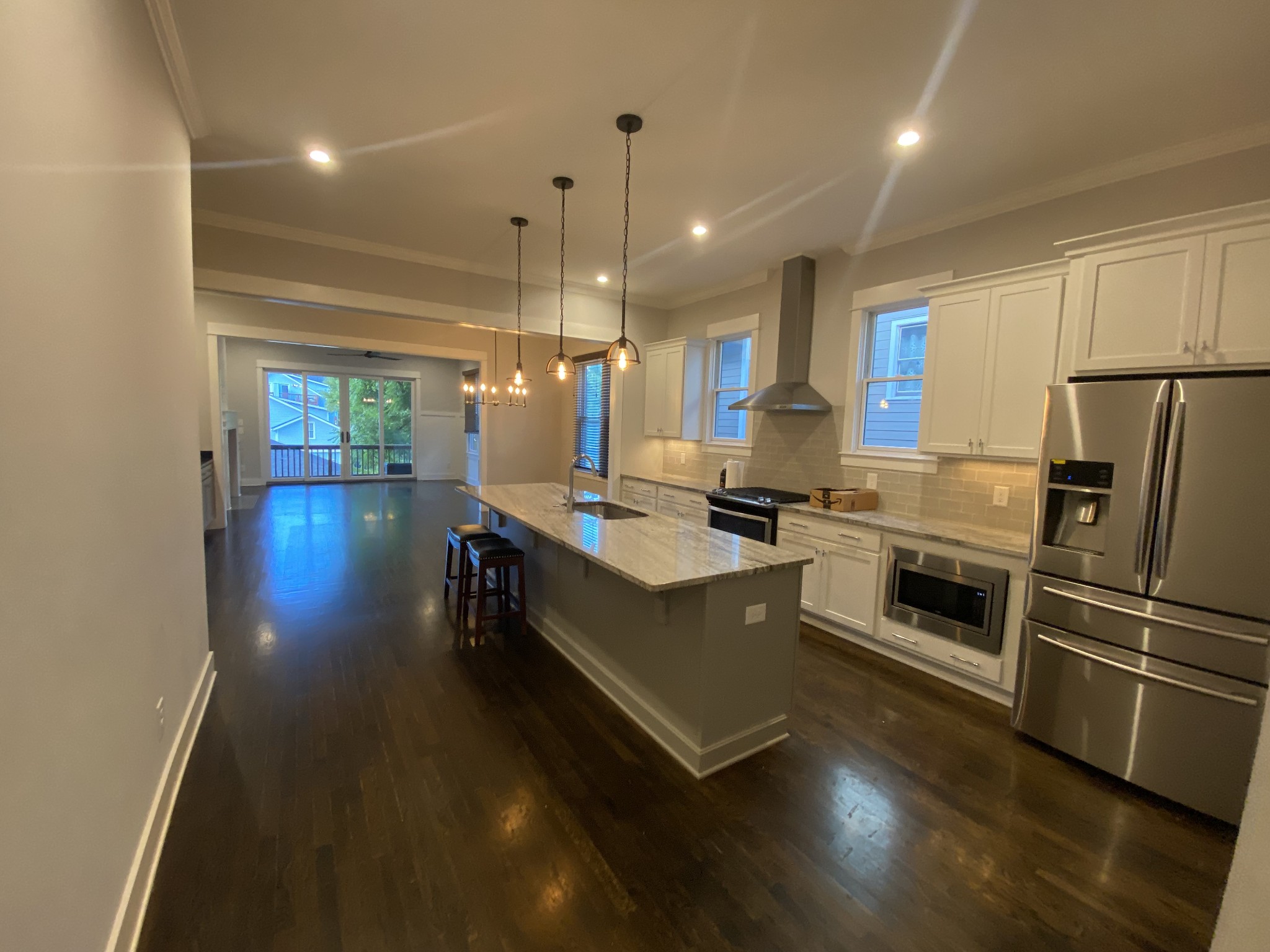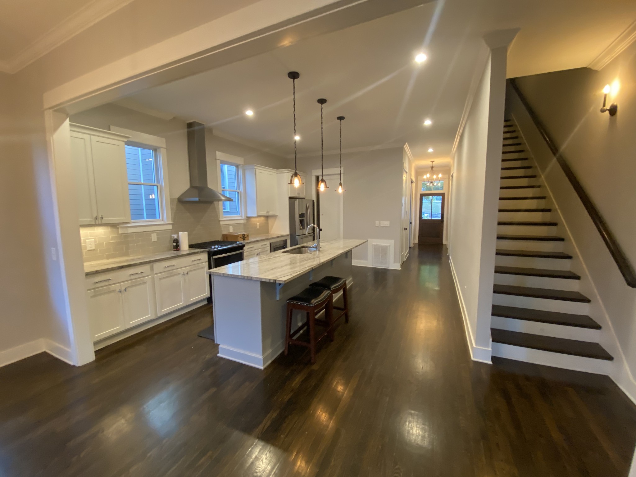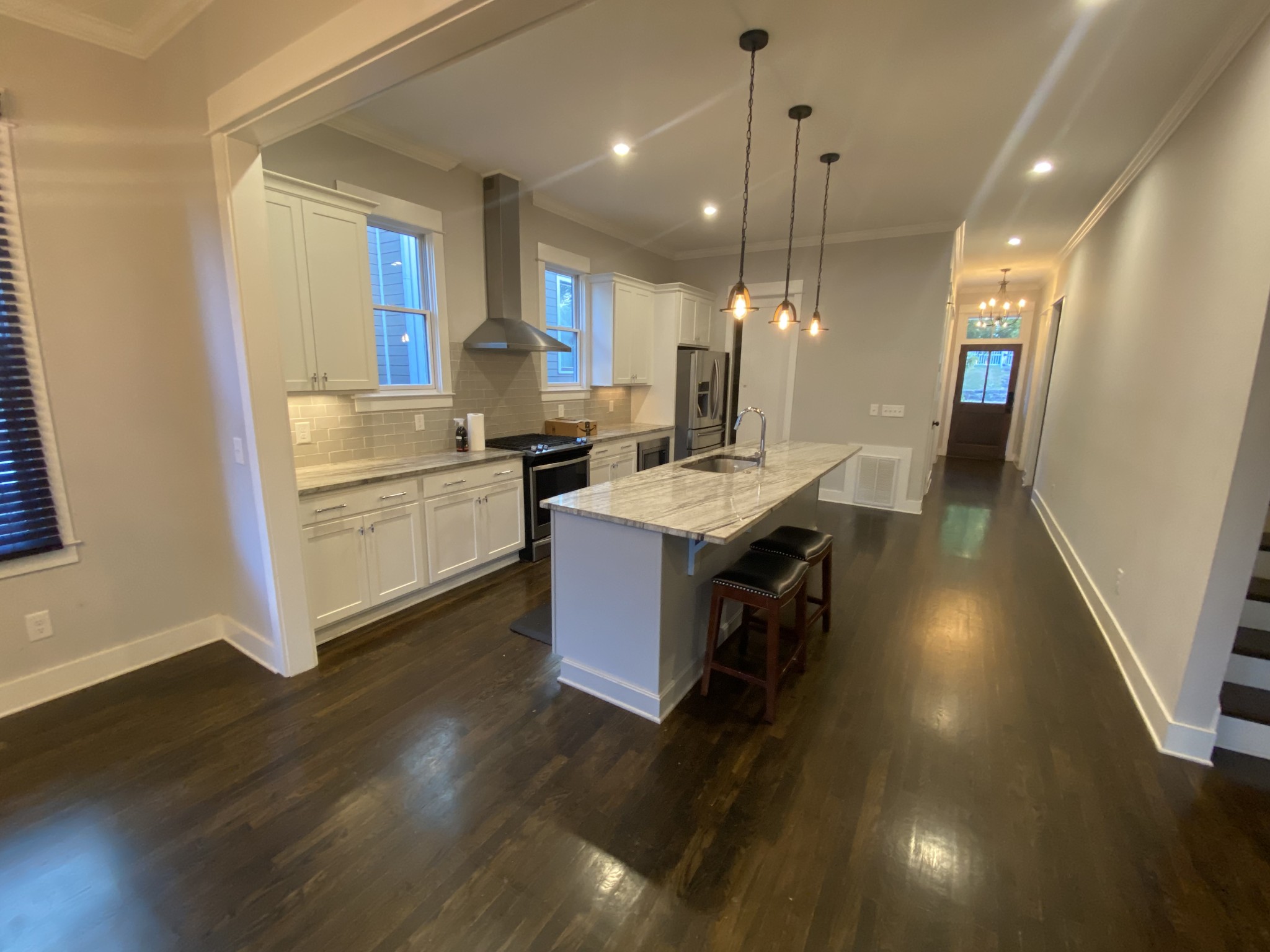 Prime location in East End walkable to Five Points, Nissan Stadium and short drive to downtown Nashville in the East End neighborhood of East Nashville! Amazing 2892 square foot 4 bedroom plus separate office, 3.5 bath home with detached 1 car garage custom built by Paragon in 2017 with high end finishes throughout. All hardwood, granite countertop in kitchen with stainless appliances including a gas range and hood. Gas fireplace with marble surround and tons of built-ins. All LED lighting throughout with modern fixtures. Kitchen cabinets feature soft-close drawers and under cabinet lights. Wired with ethernet connections. Google fiber available in neighborhood! Main level has 10 foot ceilings and taller doors, wood trim and molding throughout. Deck off living area with large double sliding doors opens up and looks out over back yard. Main level open floor plan with separate office space and the kitchen/dining/living with 1/2 bath. Upstairs includes 3 beds/2 baths including large master suite with vaulted ceiling and exposed stained beam, free-standing tub, double vanities, separate toilet room and large glass/tiled showered with dual shower heads. Dual master closets with lots of built-ins. The other two bedrooms have high/vaulted ceilings as well. Washer/dryer laundry room located conveniently next to master suite.