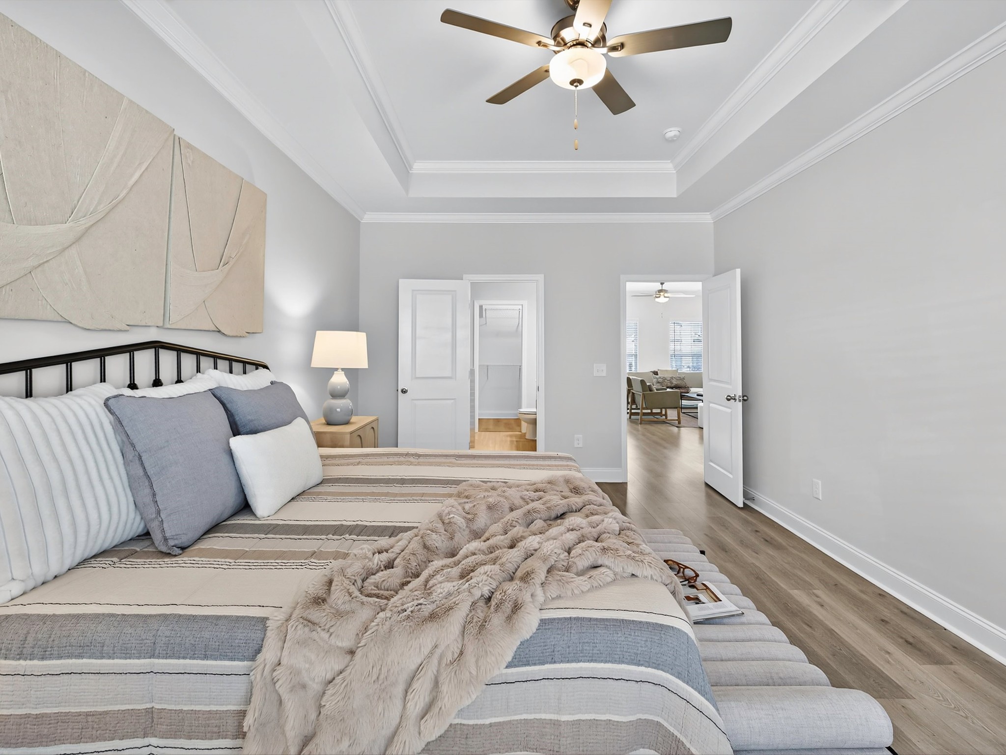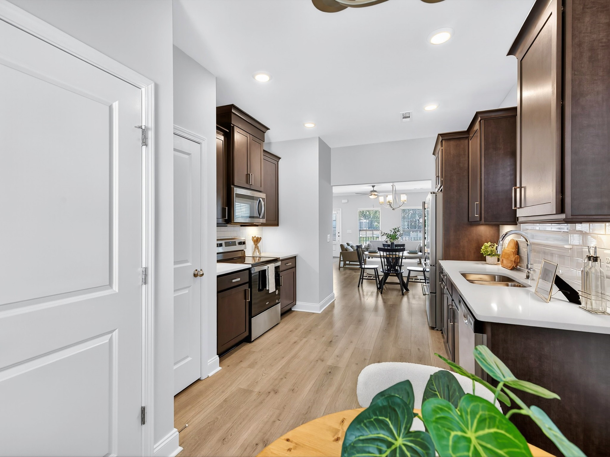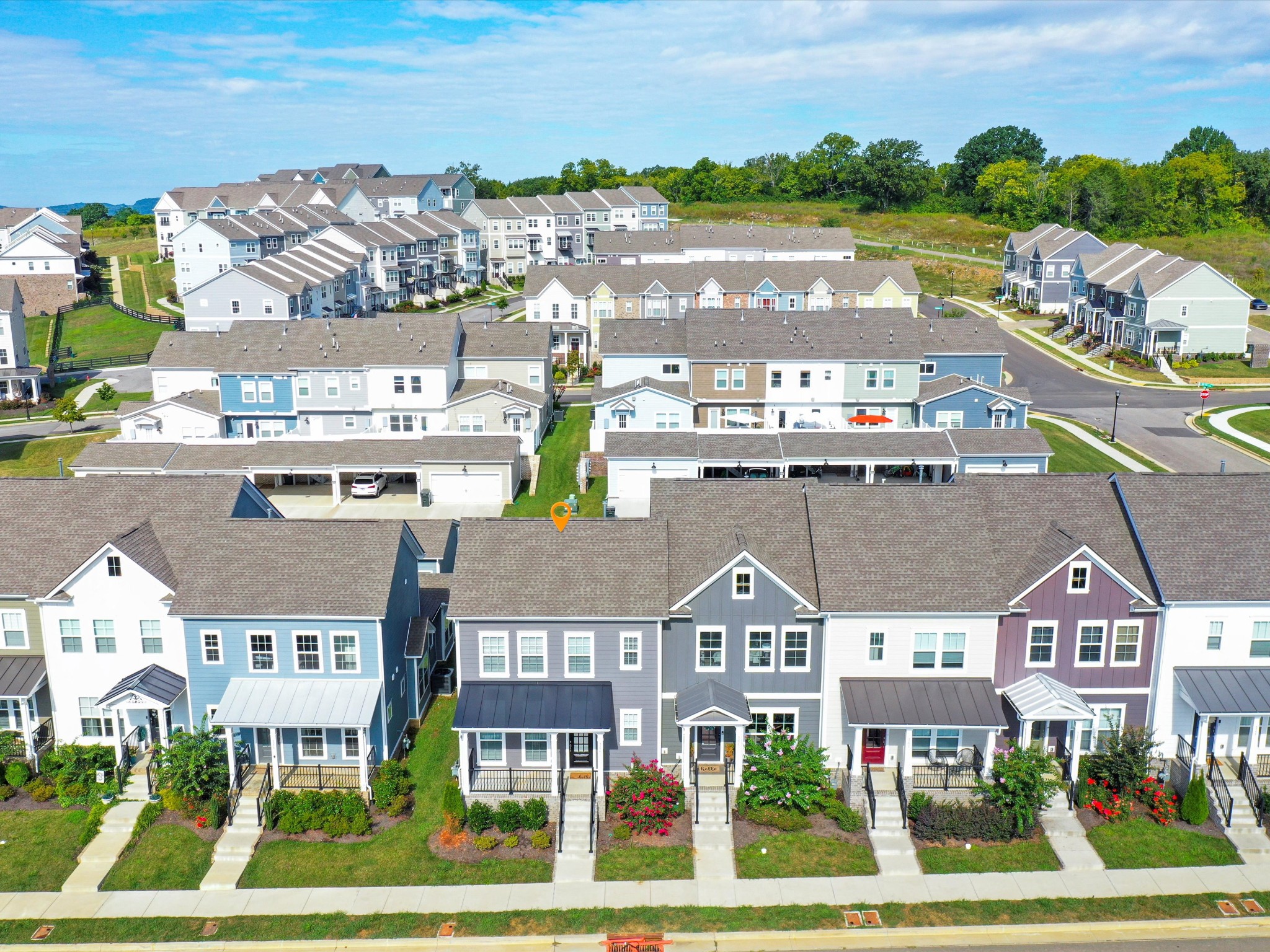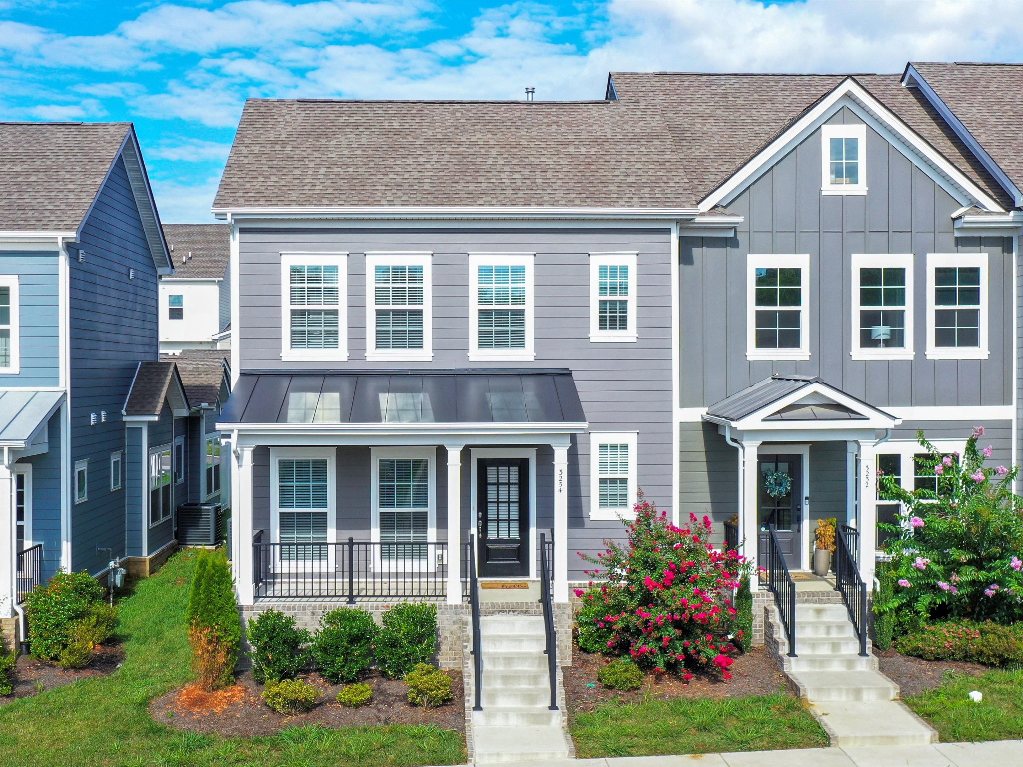 Welcome to 3254 Tasker Drive, a beautifully designed 2023-built end-unit townhouse in the sought-after Burkitt Ridge community—perfectly situated on the Brentwood–Nolensville line. Offering 1,512 sq ft, 3 bedrooms, and 2.5 bathrooms, this home combines modern style with low-maintenance living, just steps from shops, dining, and a dog park. The main-level primary suite is a retreat with tray ceilings, a spacious walk-in closet, and a spa-inspired bath featuring quartz double vanities and a walk-in shower. The open-concept kitchen is both functional and inviting, showcasing quartz counters, subway tile backsplash, stainless steel appliances, and soft-close cabinetry. Refrigerator, washer, and dryer remain, making your move-in seamless. Upstairs, two private bedrooms each feature an en-suite bath with dual vanities, while a versatile loft offers the perfect spot for a home office or cozy lounge. Relax on the covered porch, enjoy evenings on the enclosed patio, and appreciate the convenience of a detached two-car garage, tankless water heater, and HOA-covered landscaping and exterior. With quick access to I-65 and I-24, and minutes from Nolensville, Brentwood, Franklin, and downtown Nashville, this home offers comfort, convenience, and a location you’ll love coming home to.