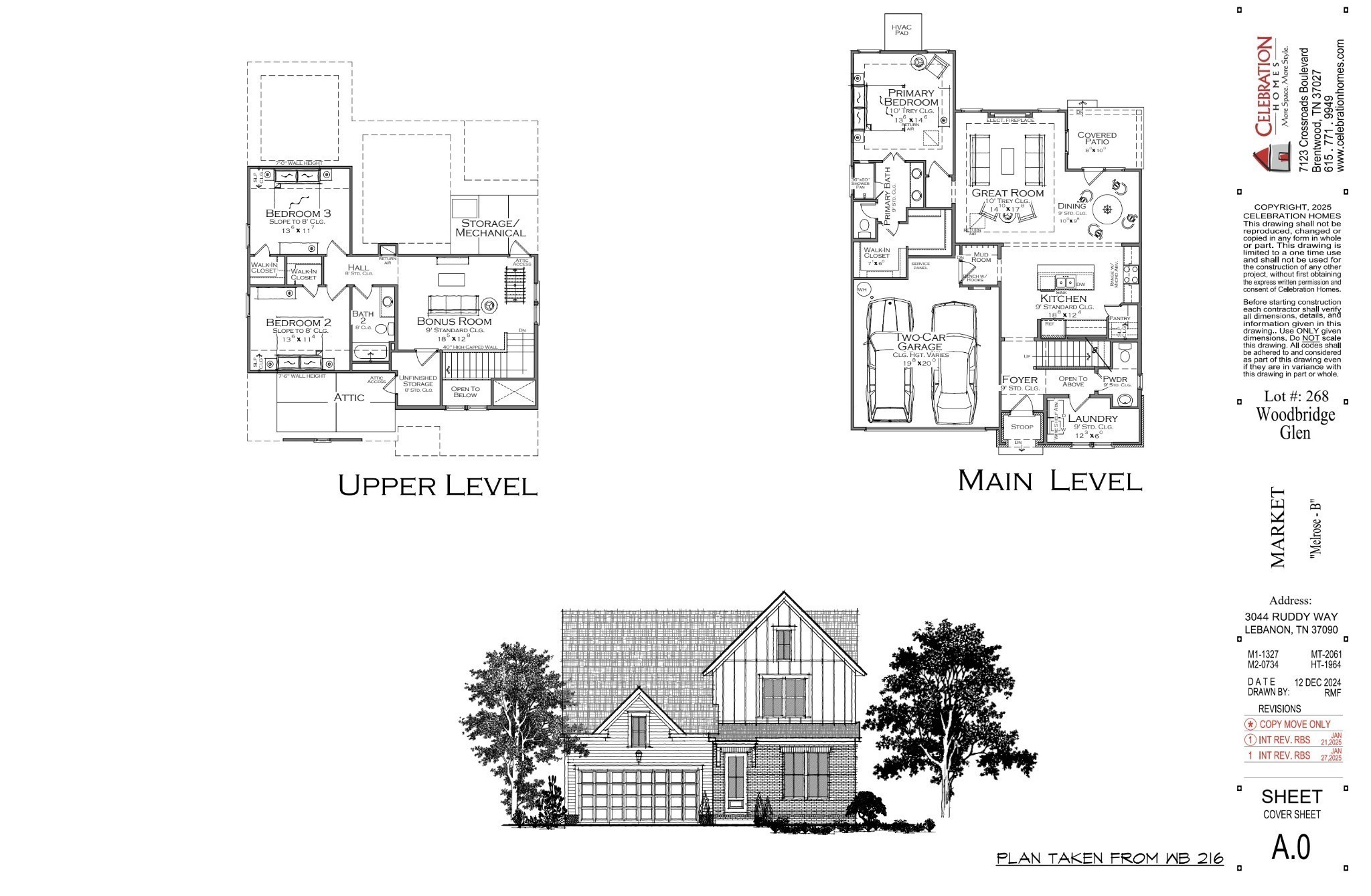 PRE-SALE - Brick Melrose Elevation by Celebration Homes locally owned Builder! Covered porch included. Three bedrooms, bonus, and plenty of storage upstairs. All bedrooms prewired for ceiling fans. Enjoy the community pool and playground, Call for more details.* Virtual Tour shown is of a different floor plan*