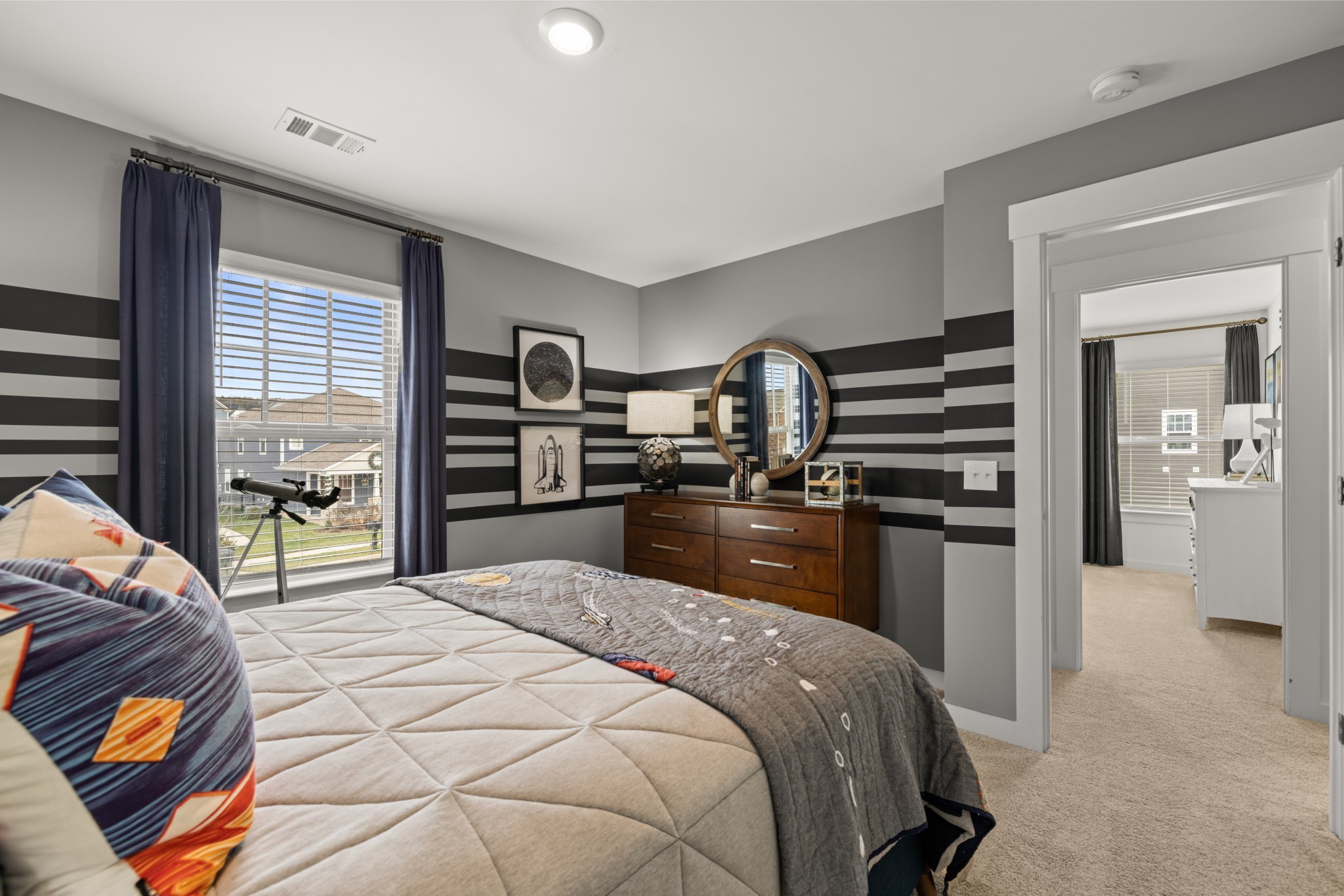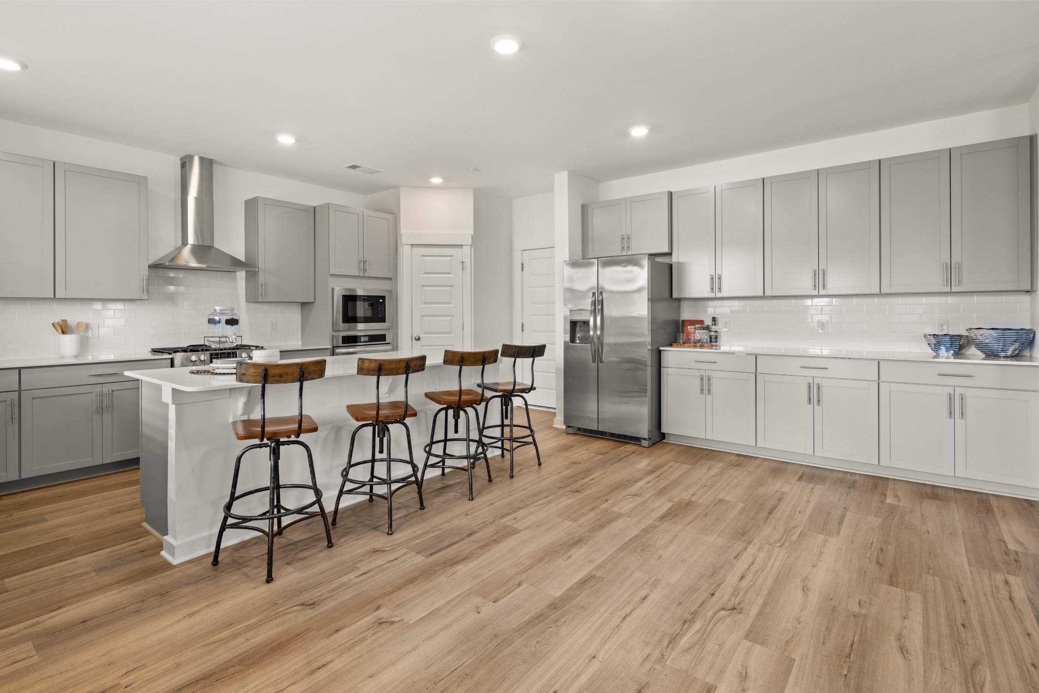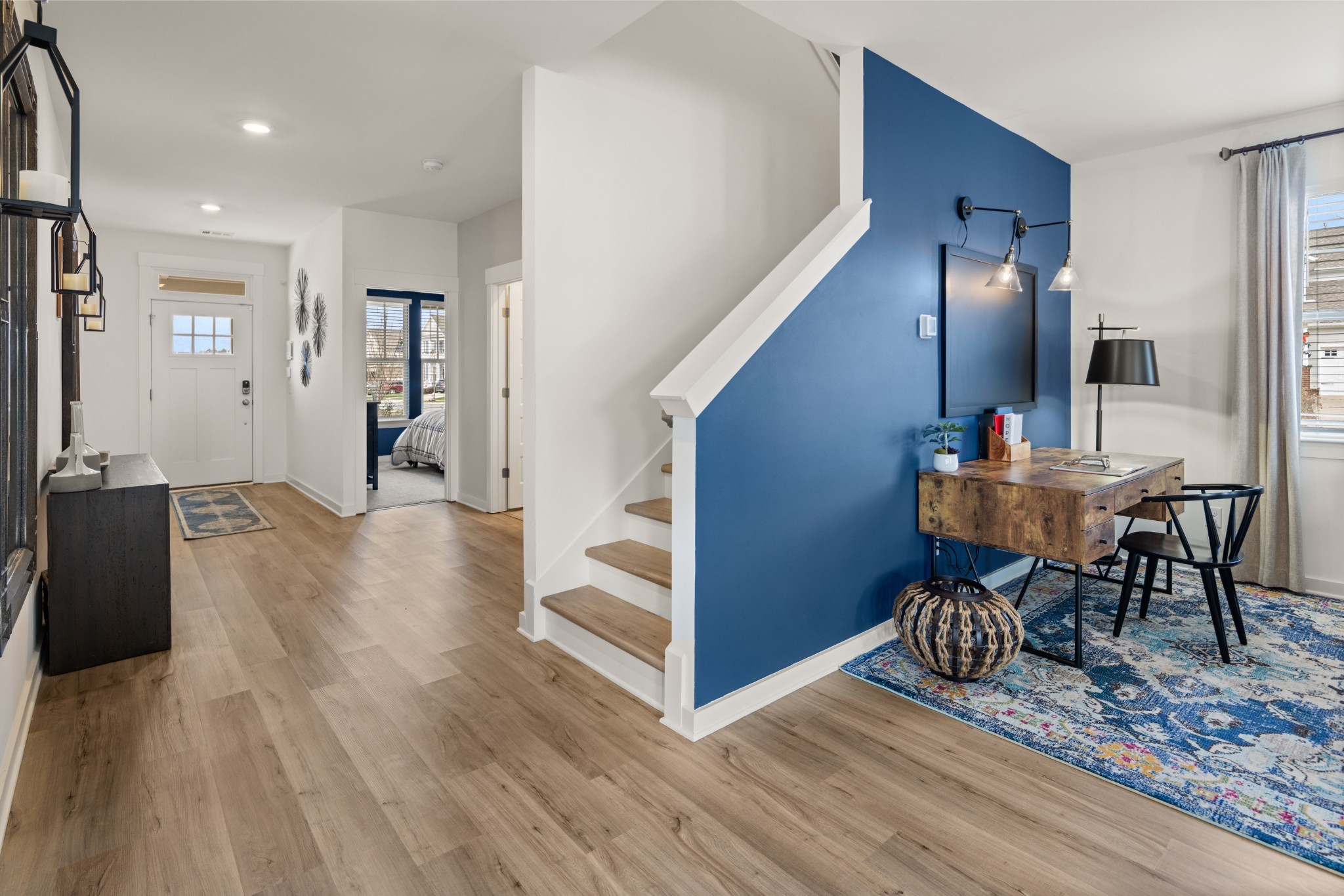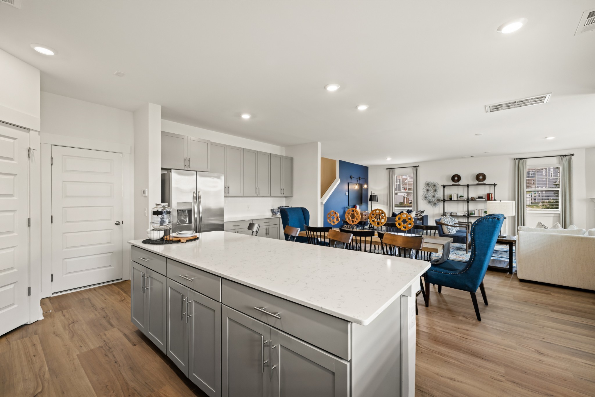 Homesite #1259 Percy. This two-story home is the largest in this collection and offers plenty of space for living, entertaining and working. A first-level bedroom could operate as a space for overnight guests or as a home office, while the family room, kitchen and dining nook are arranged in an open floorplan. The owner's suite, two more bedrooms, and a loft can be found on the second floor. *Images from a furnished model of this home. Actual configuration and features may vary.