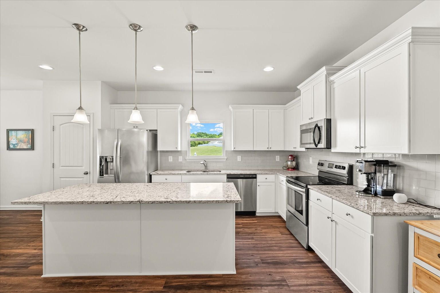 - AppliancesBuilt-In Electric Range, Dishwasher, Disposal, Microwave, Refrigerator, Stainless Steel Appliance(s)