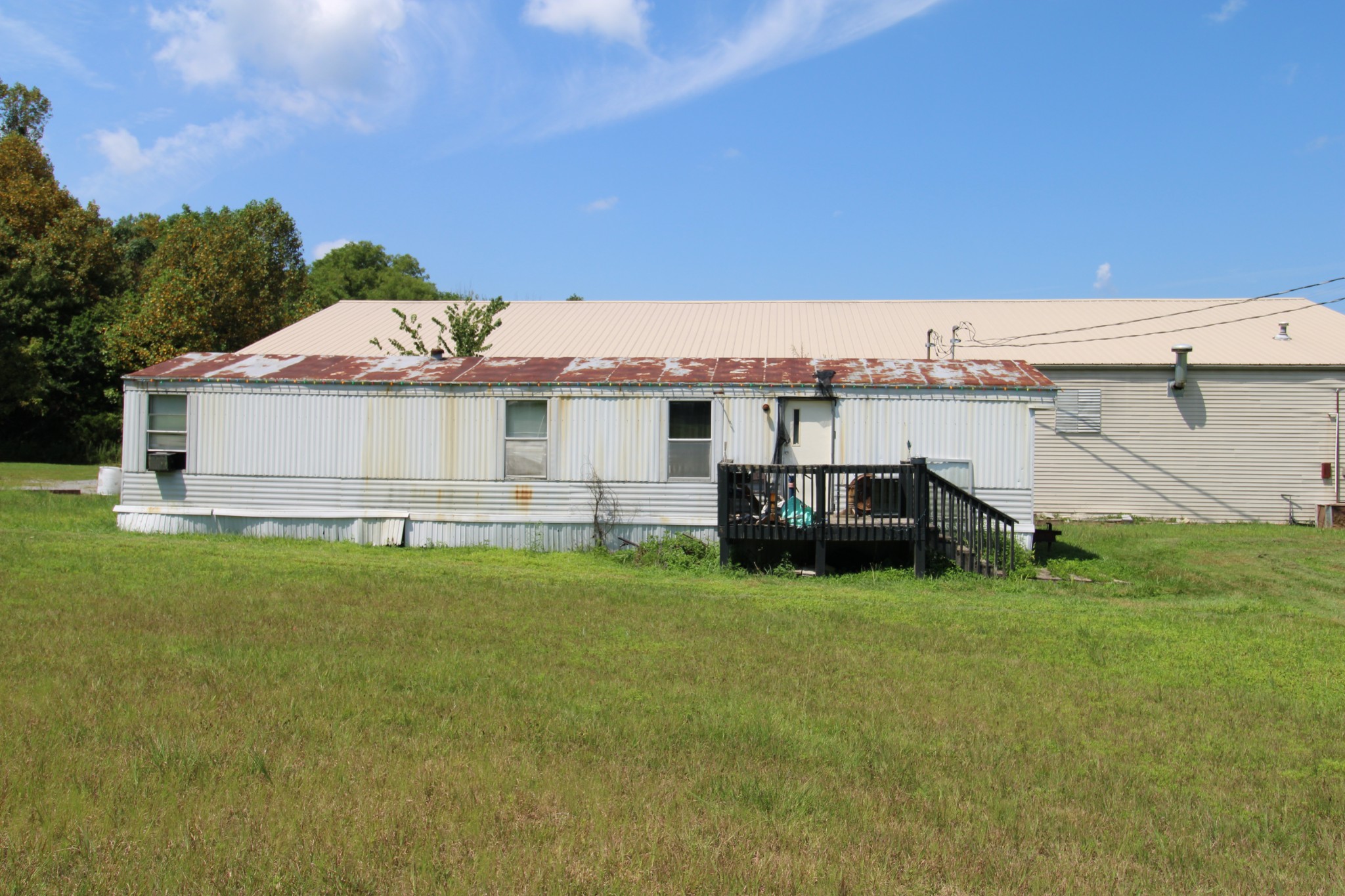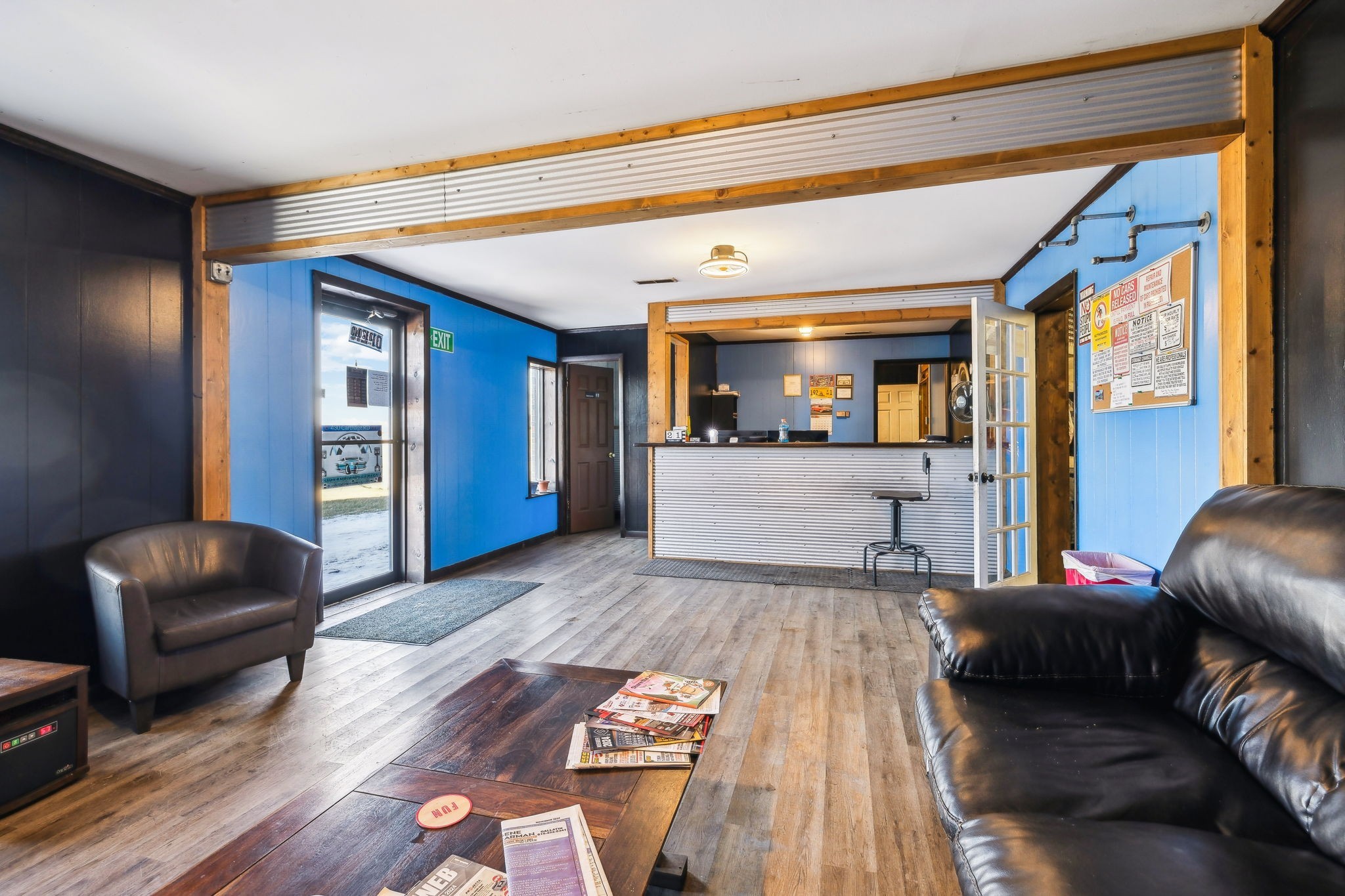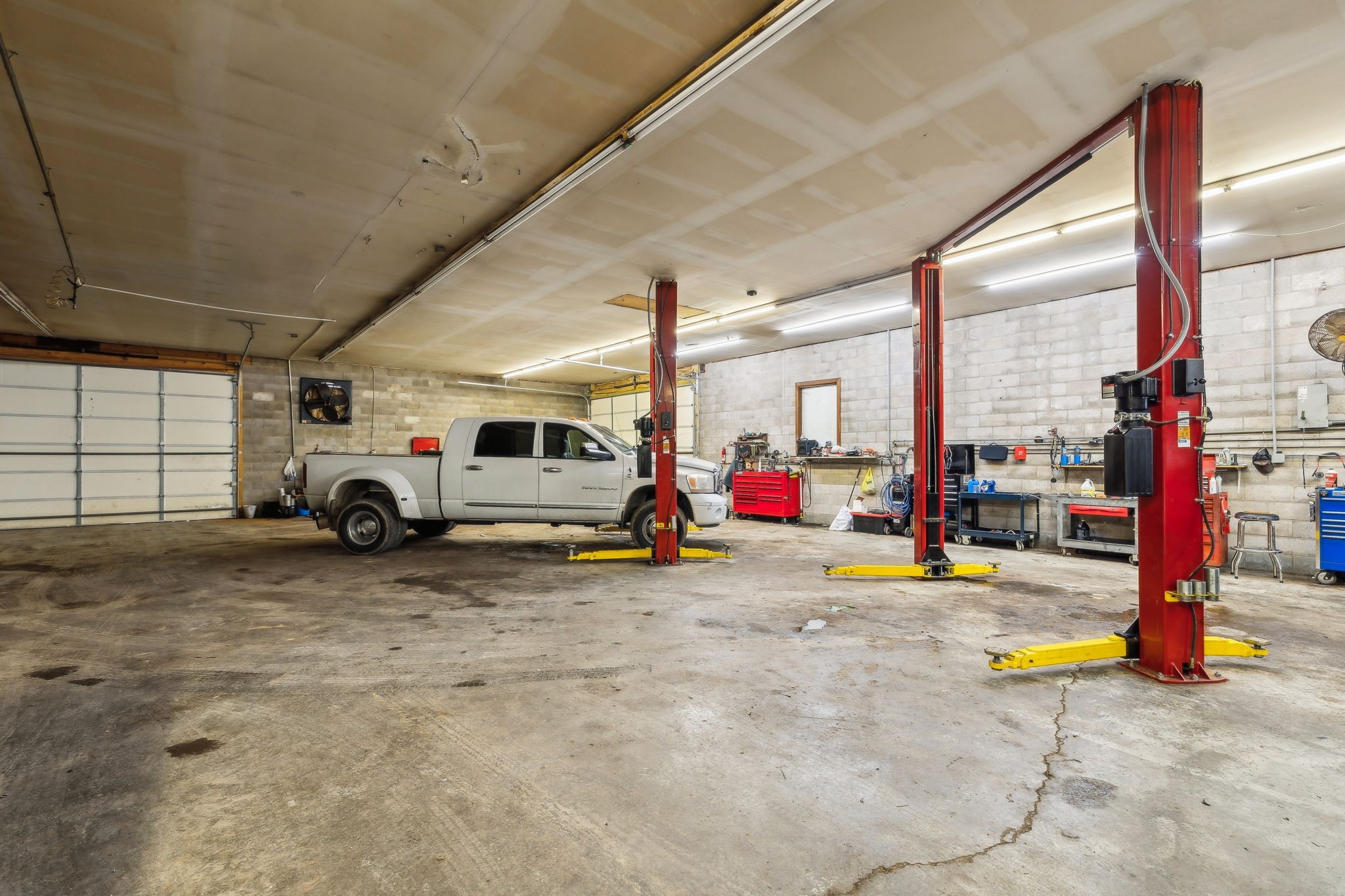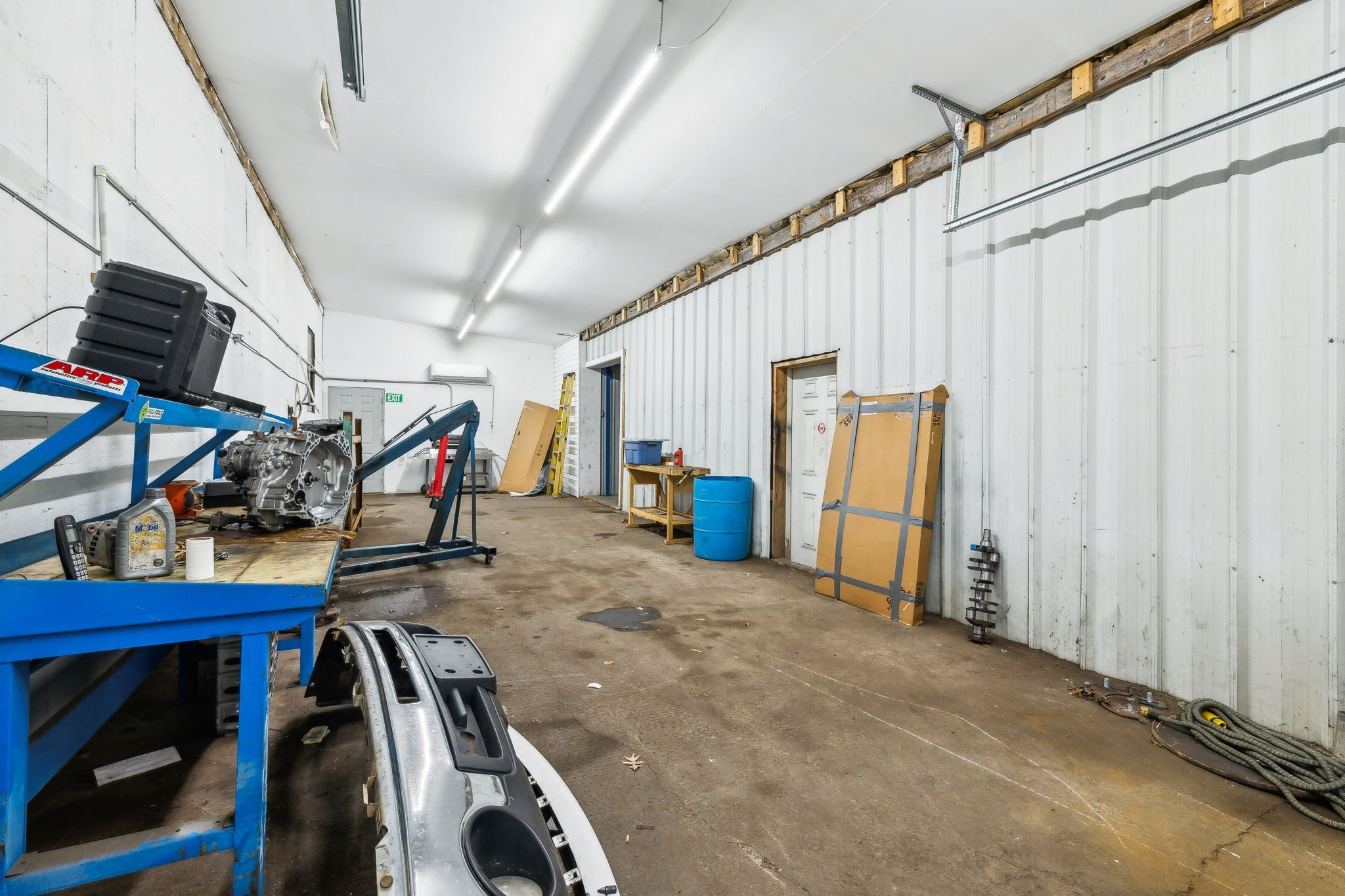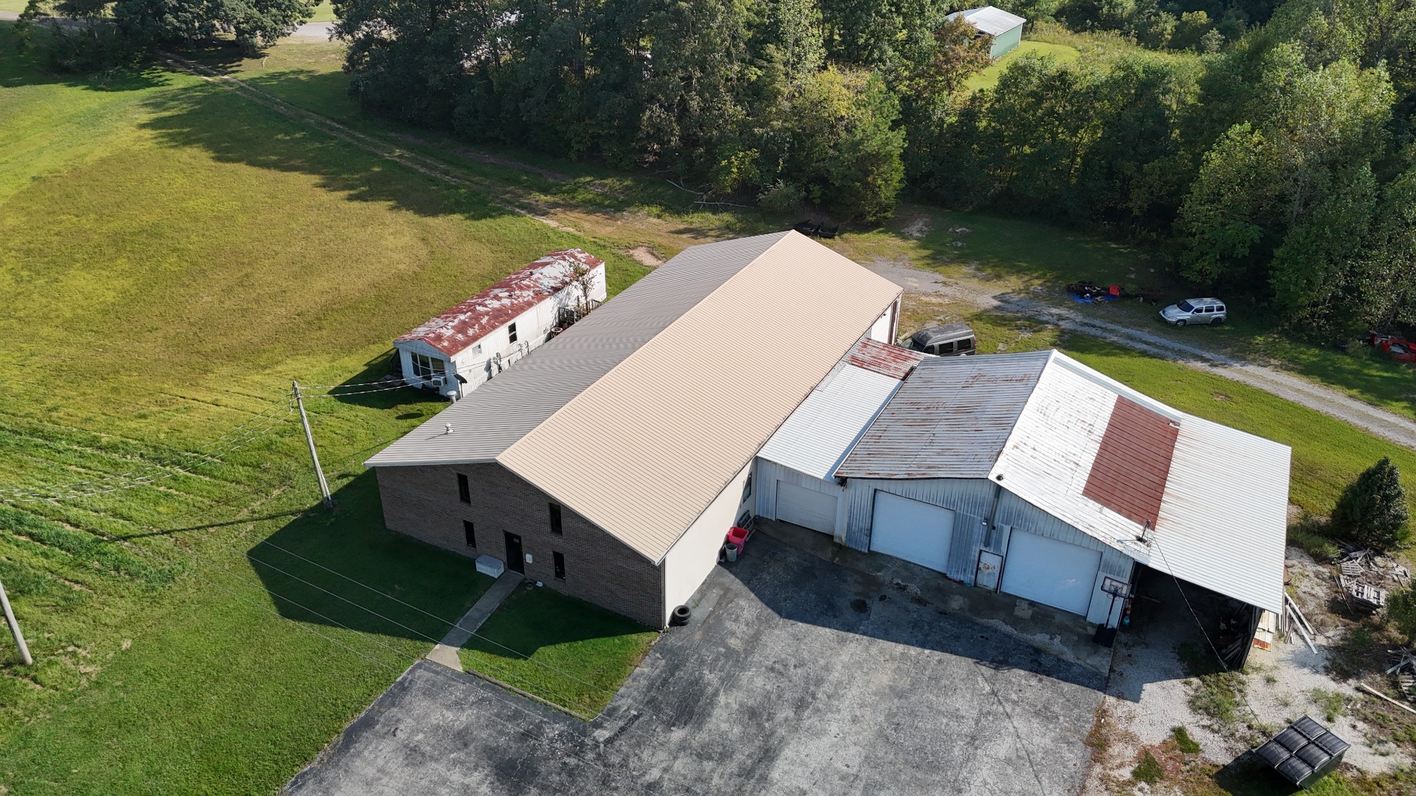 Amazing commercial building with 7,800 SF on a spacious 11 acres, offering incredible potential for a variety of uses. Currently operating as an auto mechanic/body shop, this insulated block building measures 110’ x 42’ with an additional 45’ x 72’ usable space. Two large 14-ft shop doors, one equipped with an exhaust fan, are perfect for semi-trucks and other large vehicles. Three-phase power provides strong electrical capacity for high-powered equipment, manufacturing, or extensive lighting and sound systems. Inside, you’ll find a private conference room, designated office spaces, three bathrooms (1 private, 2 public), and a tool room for organized storage and workspace. The office has a great HVAC unit, and the building is insulated with natural gas heat. The expansive open floor plan and high ceilings offer flexibility for numerous layouts—whether continuing as a body shop, transitioning to a workshop, warehouse, manufacturing facility, event space, or even splitting into two rental units. Also included is a 2-bedroom, 1-bath mobile home with a solid roof and wall A/C unit. This property is a rare opportunity with ample room for large-scale operations, outdoor storage, or expansion.