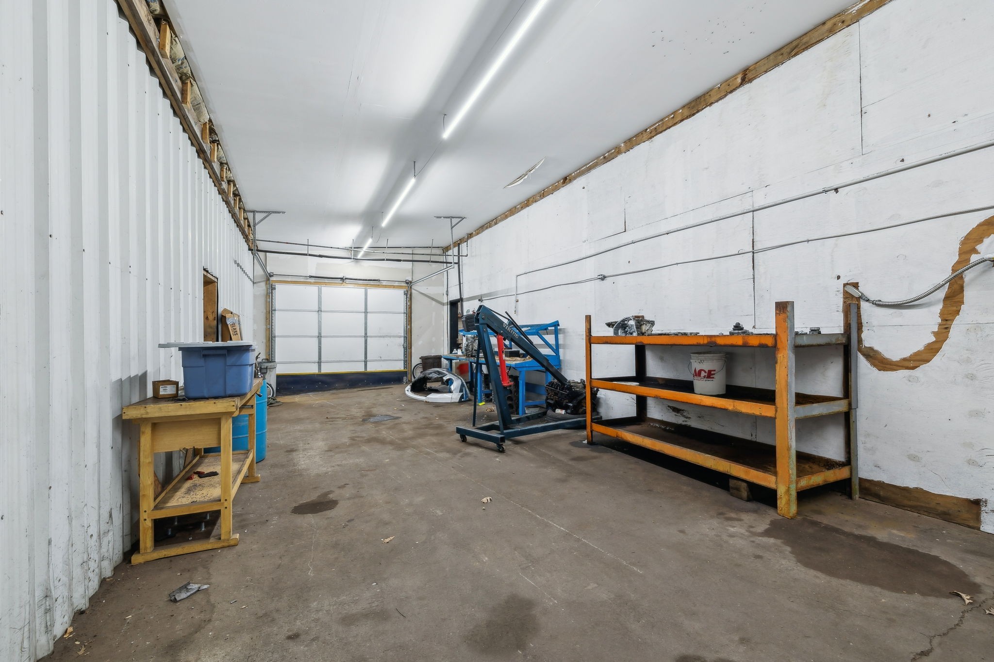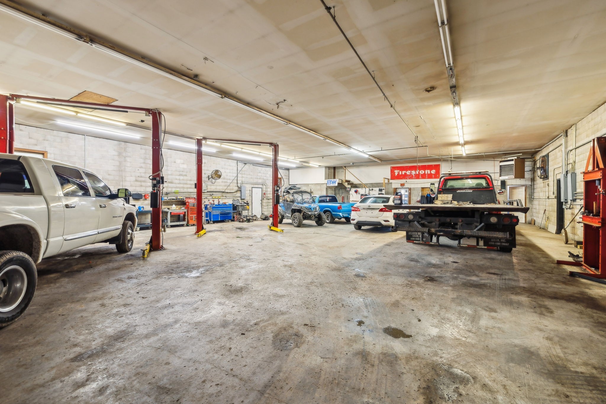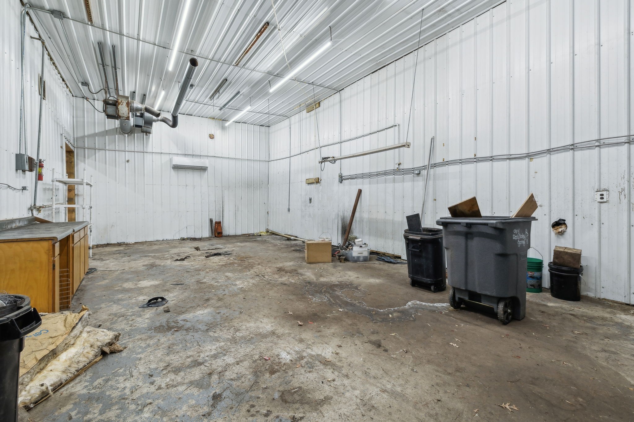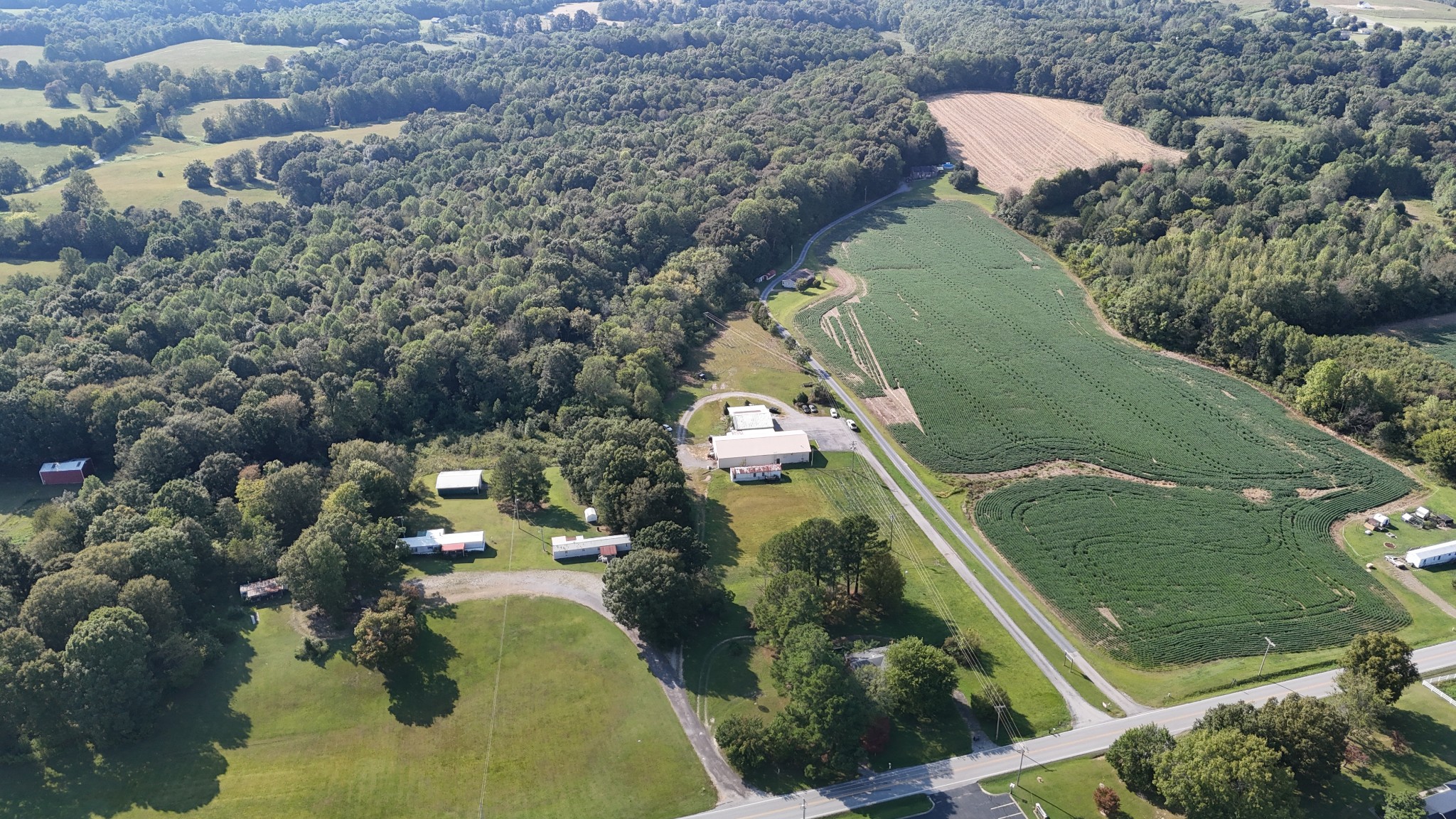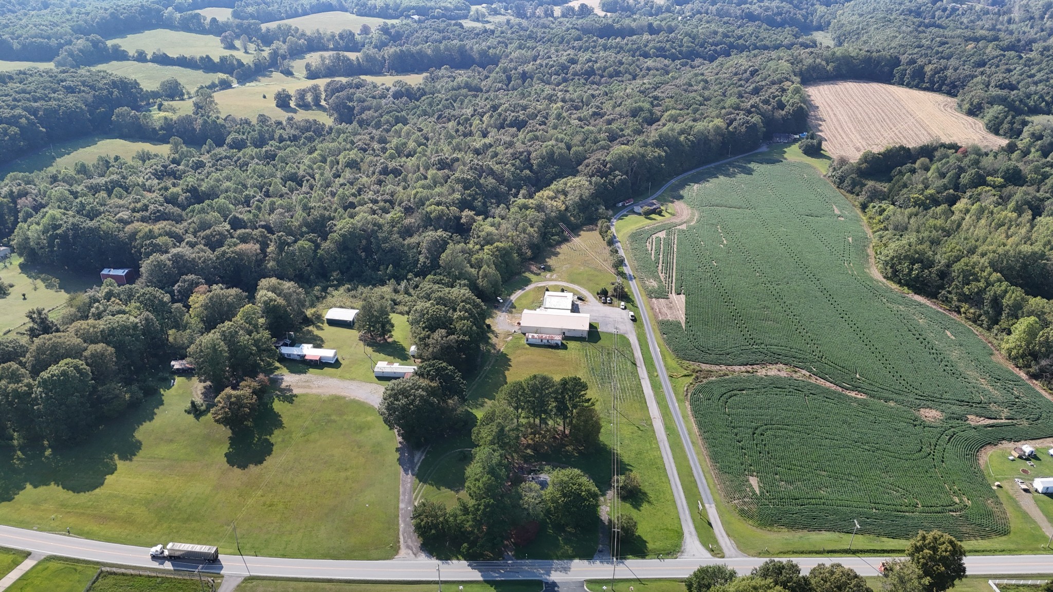 Amazing commercial building with 7,800 SF on a spacious 11 acres, offering incredible potential for a variety of uses. Currently operating as an auto mechanic/body shop, this insulated block building measures 110’ x 42’ with an additional 45’ x 72’ usable space. Two large 14-ft shop doors, one equipped with an exhaust fan, are perfect for semi-trucks and other large vehicles. Three-phase power provides strong electrical capacity for high-powered equipment, manufacturing, or extensive lighting and sound systems. Inside, you’ll find a private conference room, designated office spaces, three bathrooms (1 private, 2 public), and a tool room for organized storage and workspace. The office has a great HVAC unit, and the building is insulated with natural gas heat. The expansive open floor plan and high ceilings offer flexibility for numerous layouts—whether continuing as a body shop, transitioning to a workshop, warehouse, manufacturing facility, event space, or even splitting into two rental units. Also included is a 2-bedroom, 1-bath mobile home with a solid roof and wall A/C unit. This property is a rare opportunity with ample room for large-scale operations, outdoor storage, or expansion.