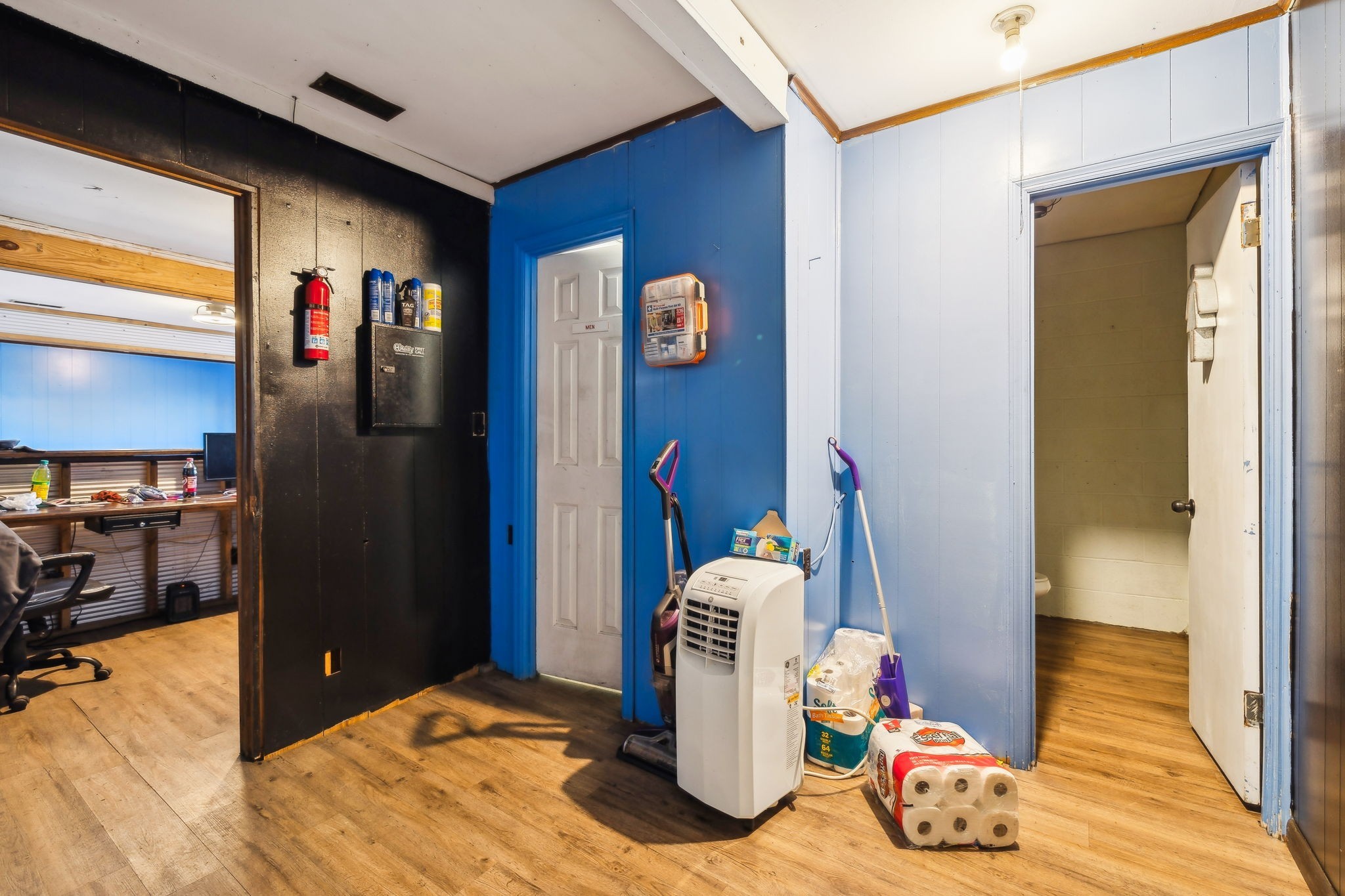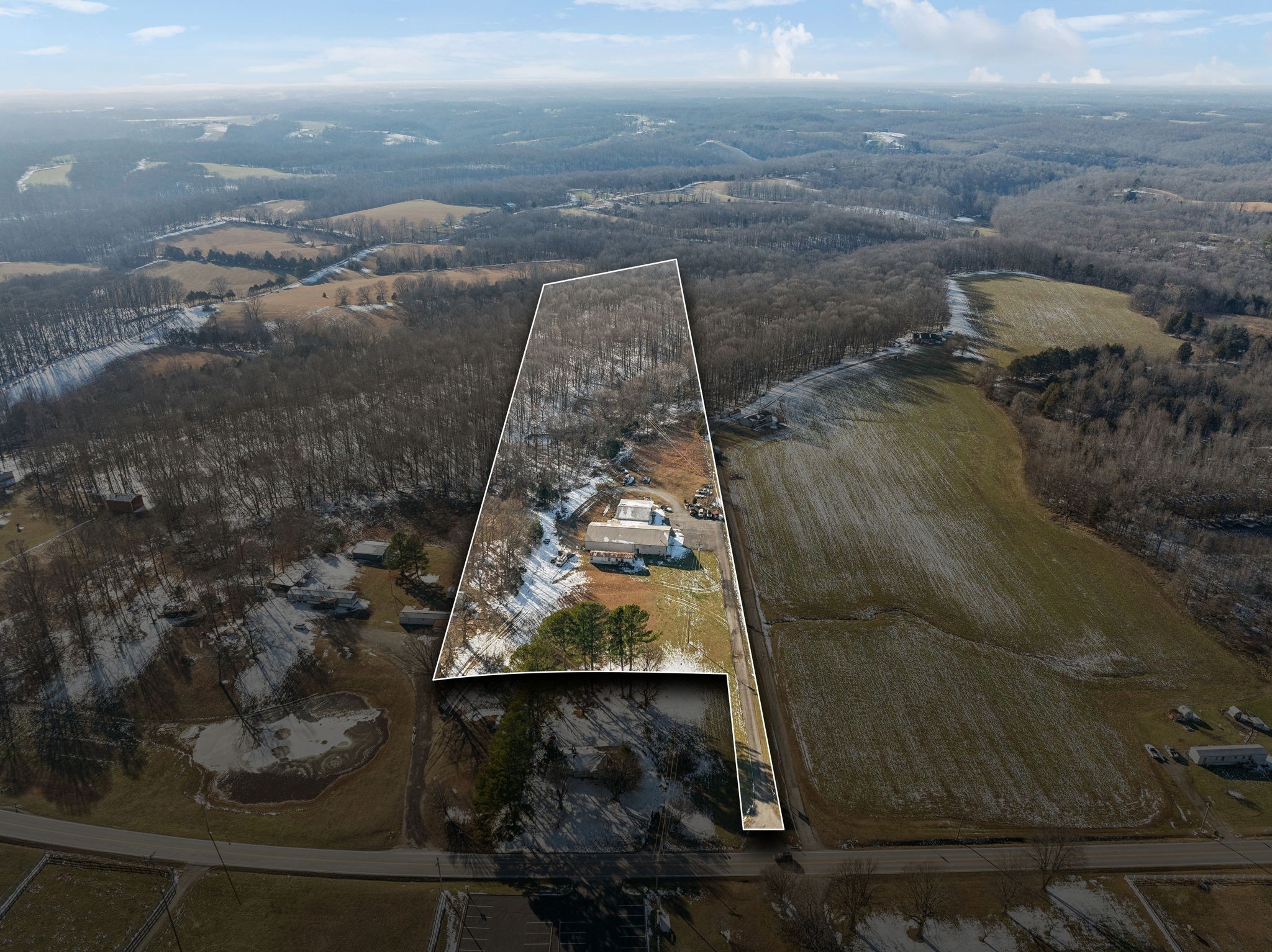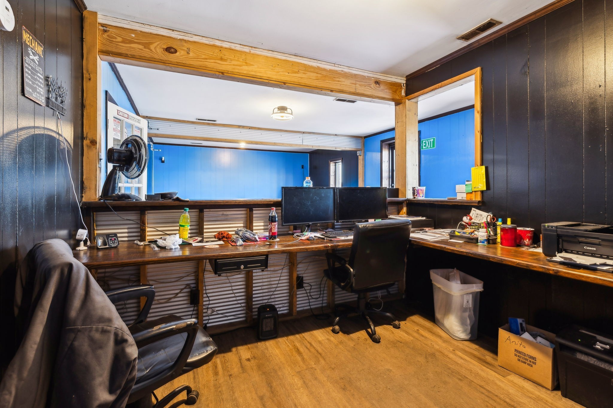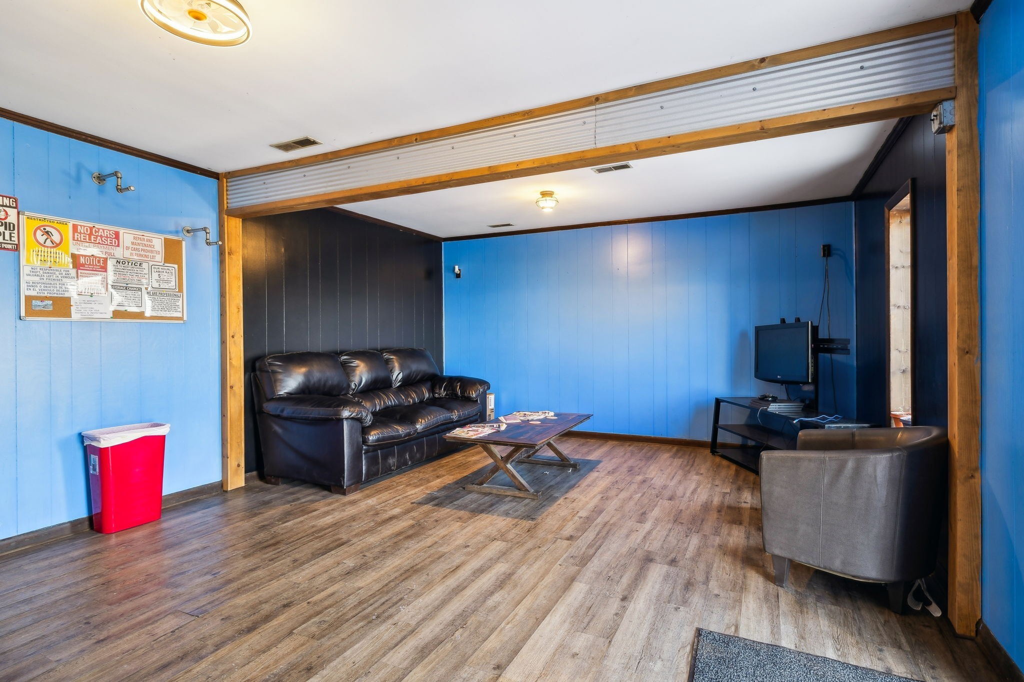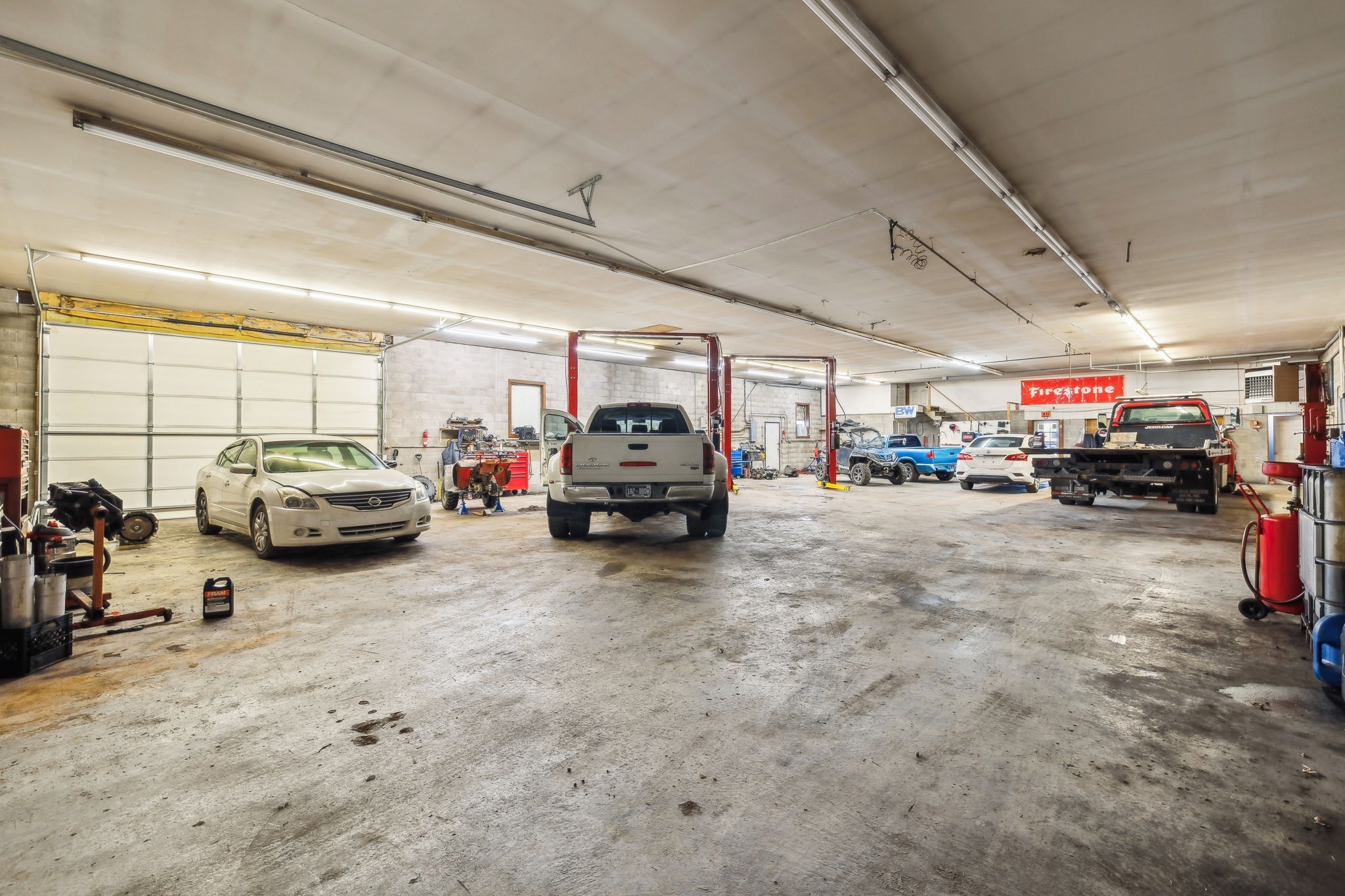Amazing commercial building with 7,800 SF on a spacious 11 acres, offering incredible potential for a variety of uses. Currently operating as an auto mechanic/body shop, this insulated block building measures 110’ x 42’ with an additional 45’ x 72’ usable space. Two large 14-ft shop doors, one equipped with an exhaust fan, are perfect for semi-trucks and other large vehicles. Three-phase power provides strong electrical capacity for high-powered equipment, manufacturing, or extensive lighting and sound systems. Inside, you’ll find a private conference room, designated office spaces, three bathrooms (1 private, 2 public), and a tool room for organized storage and workspace. The office has a great HVAC unit, and the building is insulated with natural gas heat. The expansive open floor plan and high ceilings offer flexibility for numerous layouts—whether continuing as a body shop, transitioning to a workshop, warehouse, manufacturing facility, event space, or even splitting into two rental units. Also included is a 2-bedroom, 1-bath mobile home with a solid roof and wall A/C unit. This property is a rare opportunity with ample room for large-scale operations, outdoor storage, or expansion.