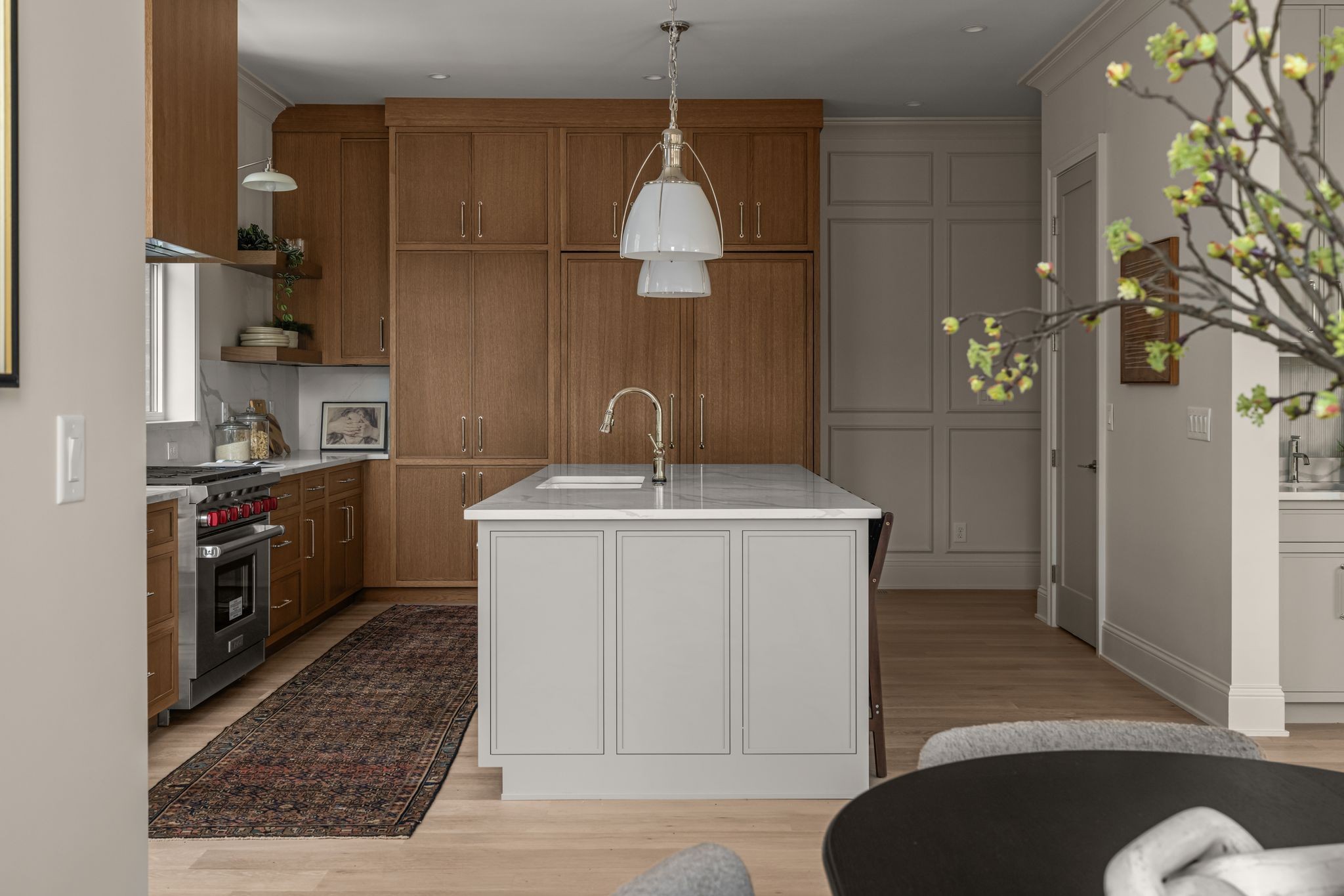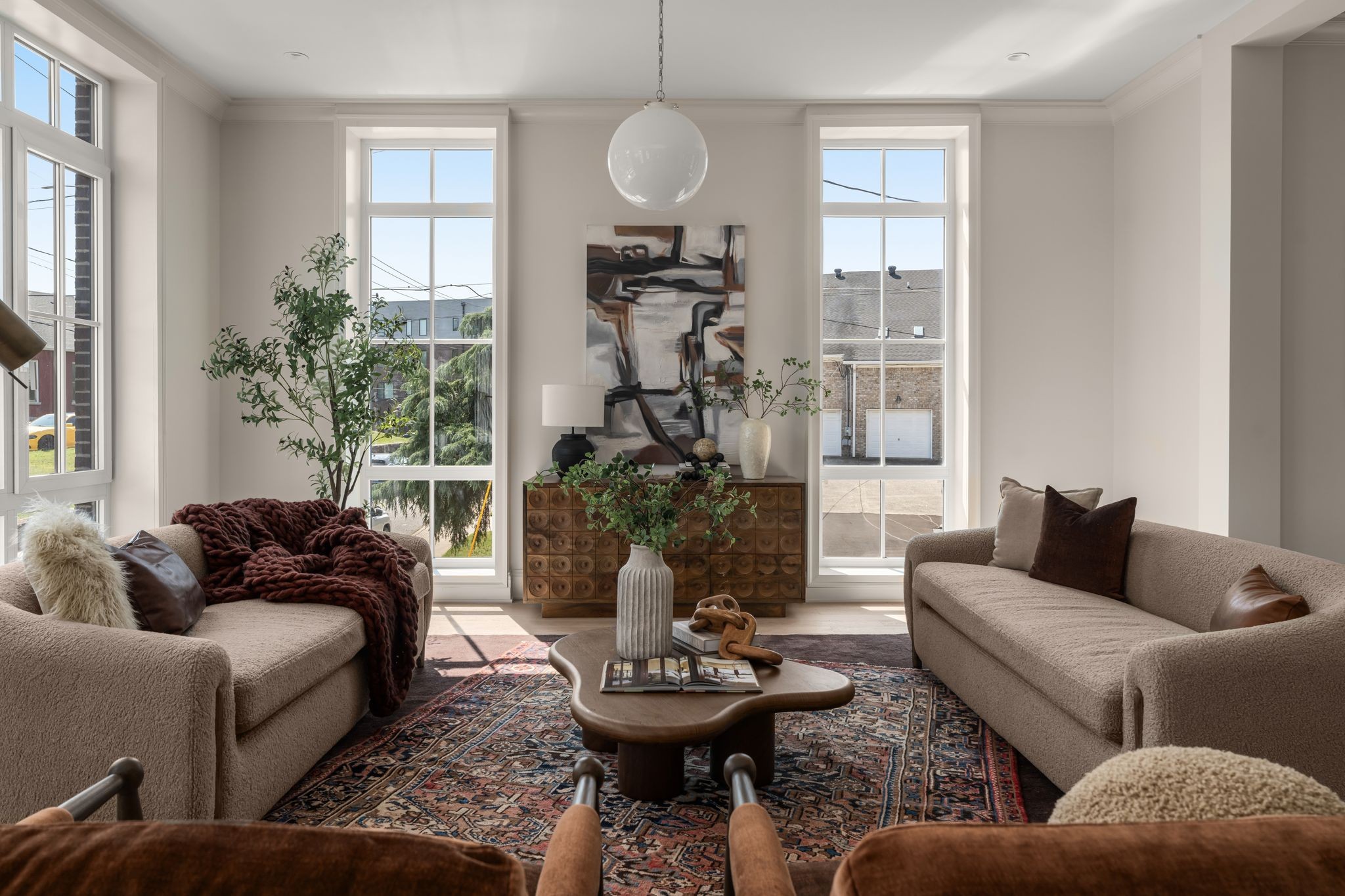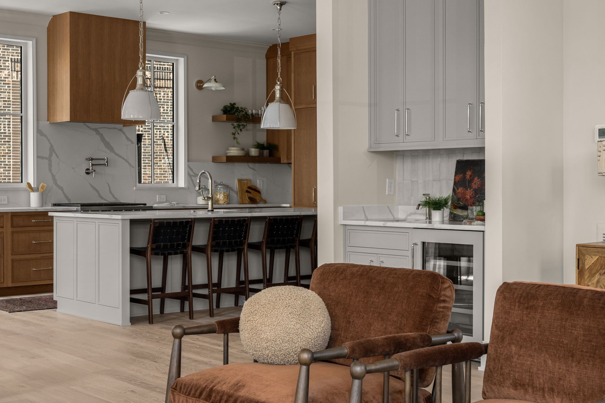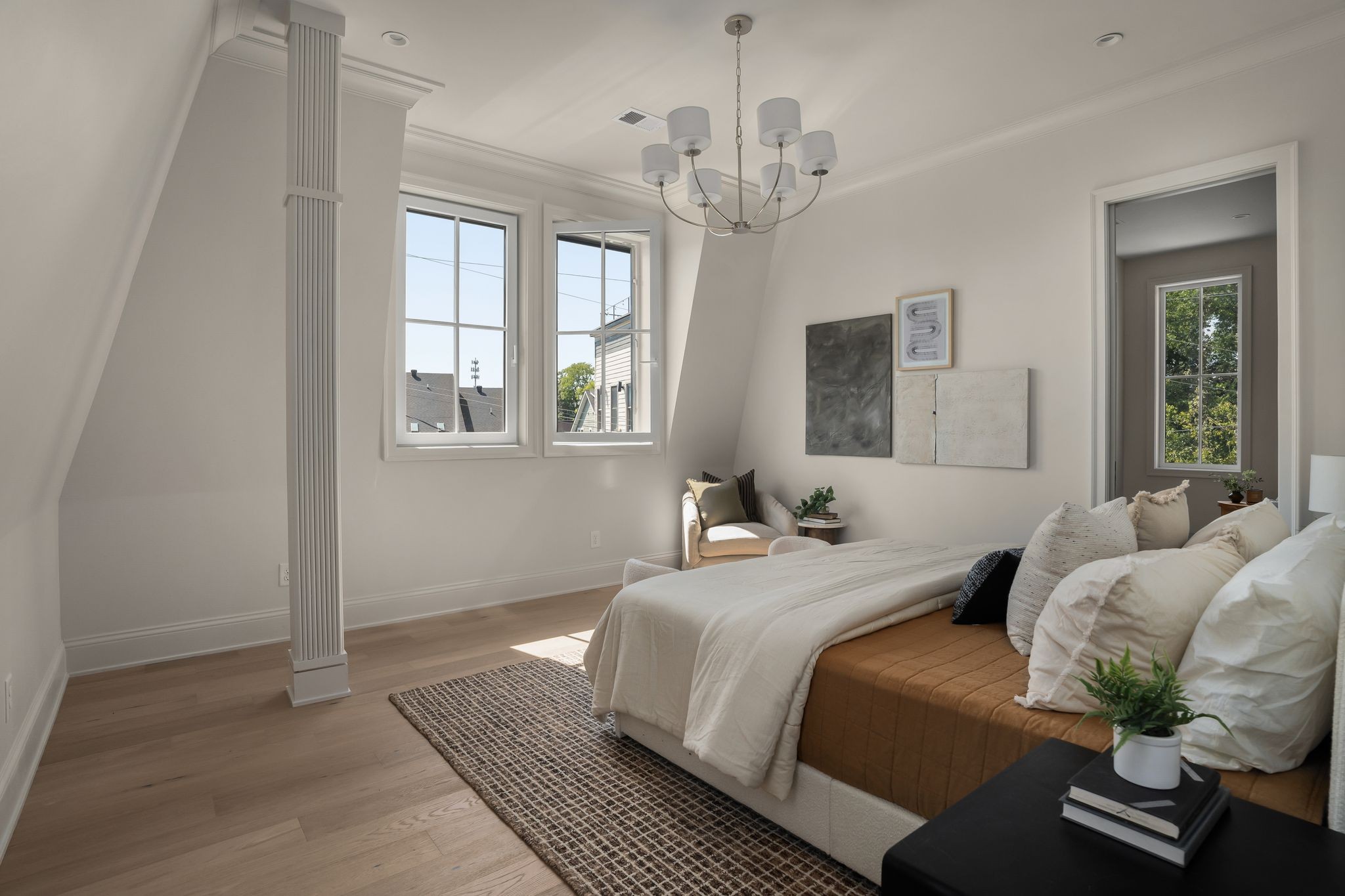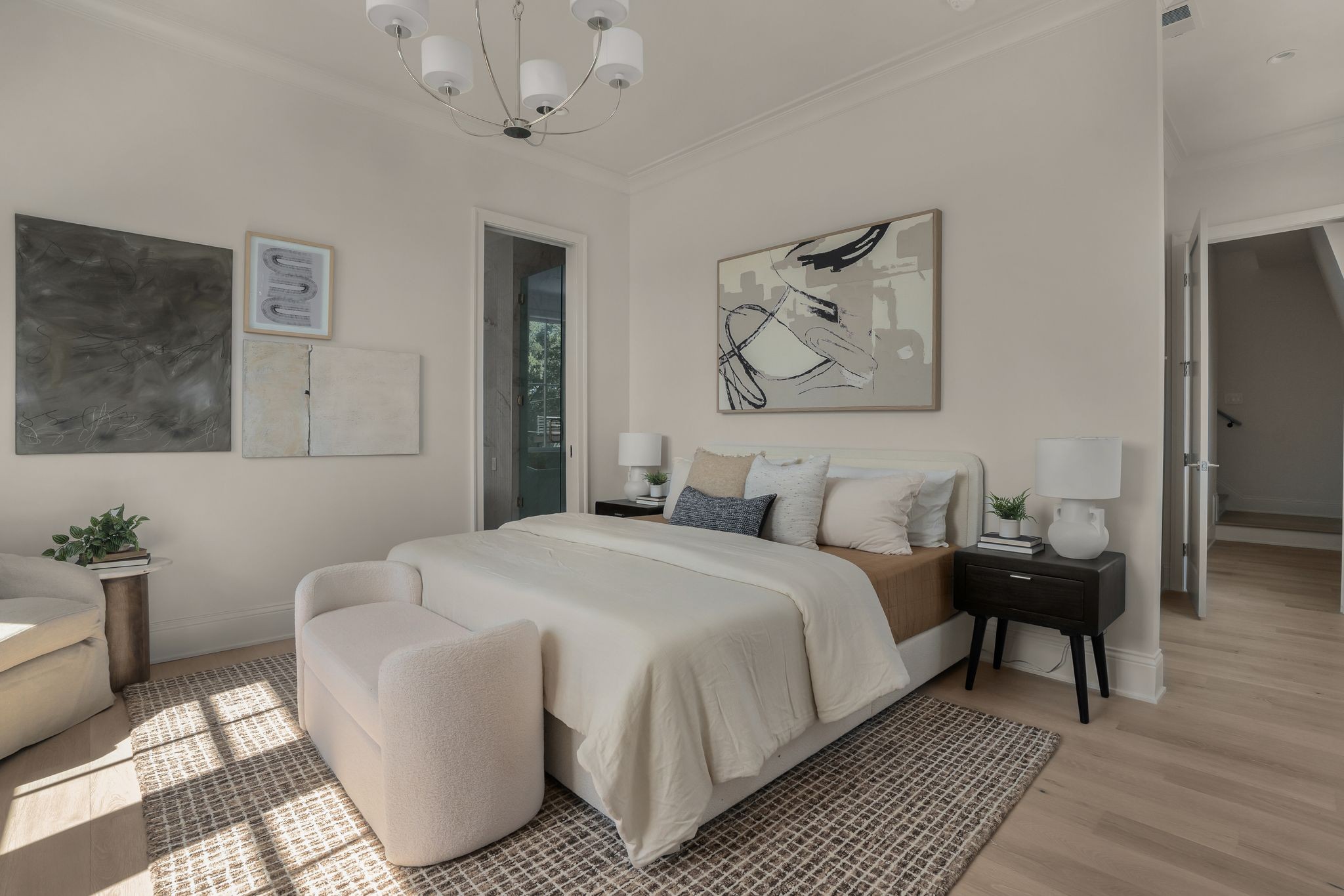 The kitchen features curated finishes and top-of-the-line Fisher & Paykel appliances paired with a Wolf range, creating the perfect space for cooking and entertaining. Neutral tones and soaring ceilings enhance the sense of openness, while generous rooms provide an ideal canvas for Nashville’s dynamic lifestyle.