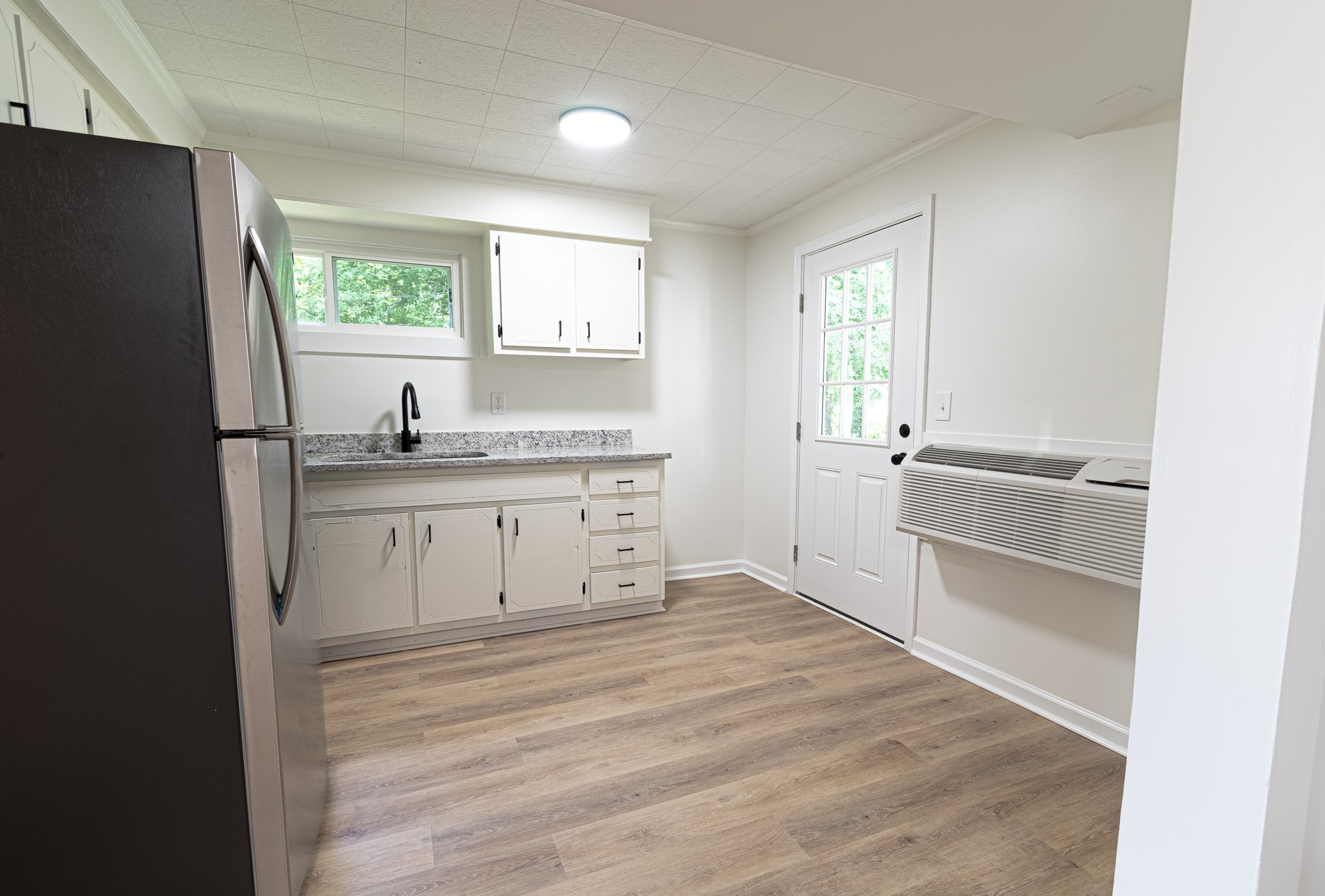 Newly renovated 1 bedroom, 1 bath apartment, just minutes from post. Stainless Appliances, laminate flooring, and new windows. Washer/Dryer Hookups. Lawn care included in rent. Sorry no pets. First months rent free.