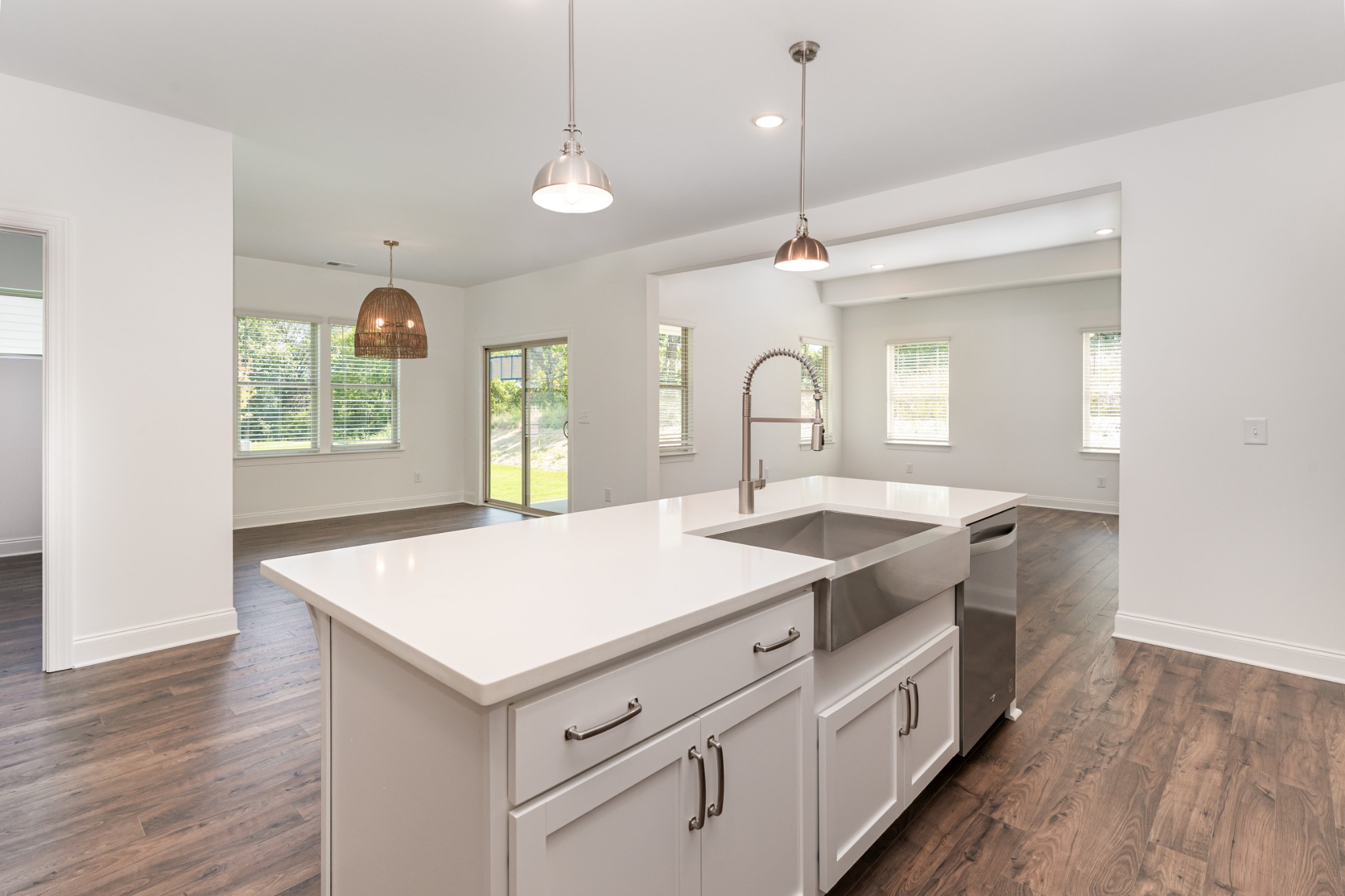 LIMITED TIME PRICING!! This home is move in ready! The Ocoee by Patterson Company is a thoughtfully designed one-level home featuring three bedrooms on the main floor and an open-concept layout with a 10 ft ceiling in the living room for a bright, spacious feel. Just off the kitchen, a flex space offers the perfect spot for a home office, craft room, or exercise room. Interior highlights include soft-close doors and drawers throughout, upgraded lighting, 2" blinds, and the upgraded Texas Combo kitchen appliance package—including a stainless steel refrigerator. Enjoy outdoor living on the covered patio. This home is a completed home and ready for it's new owners!