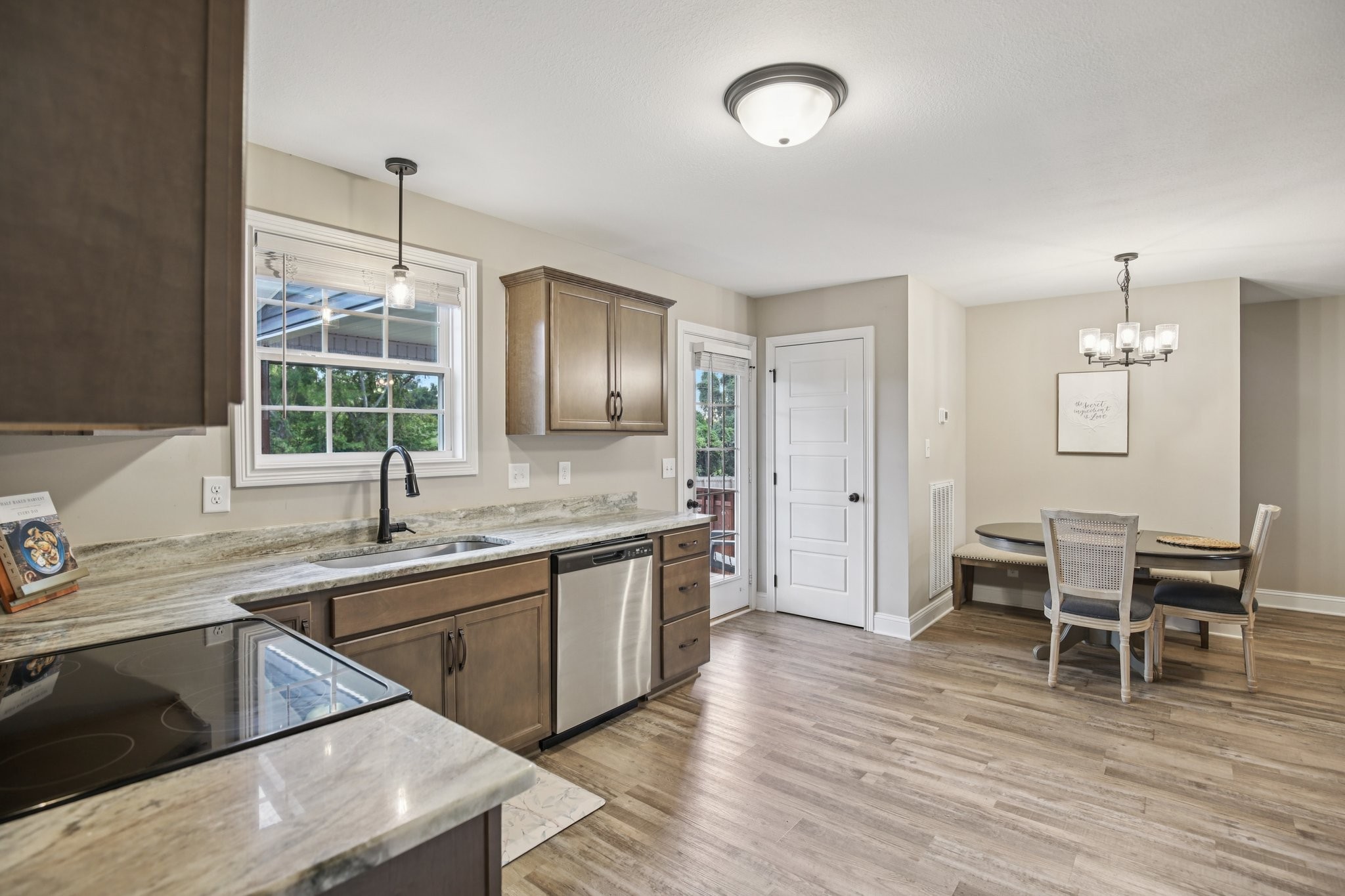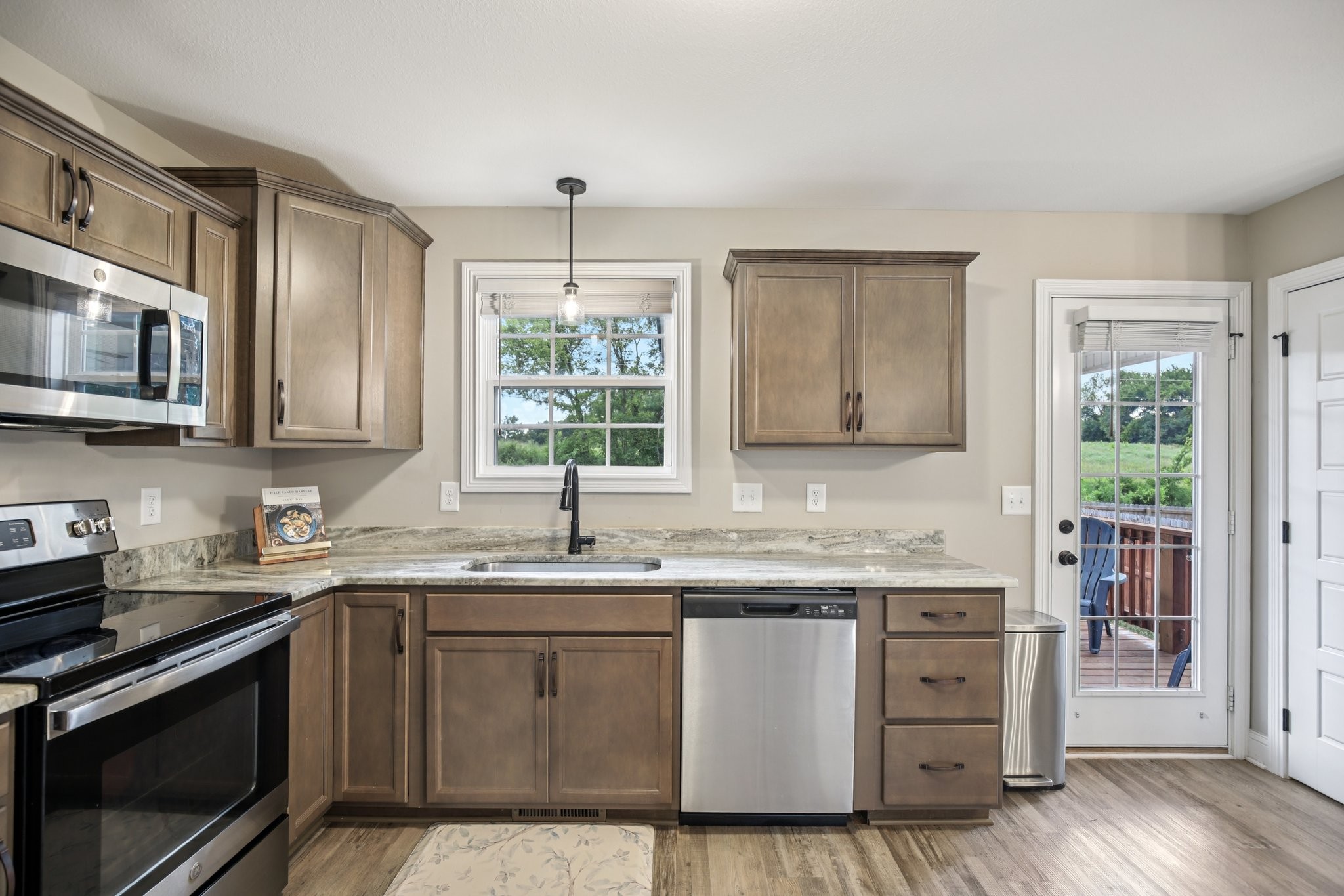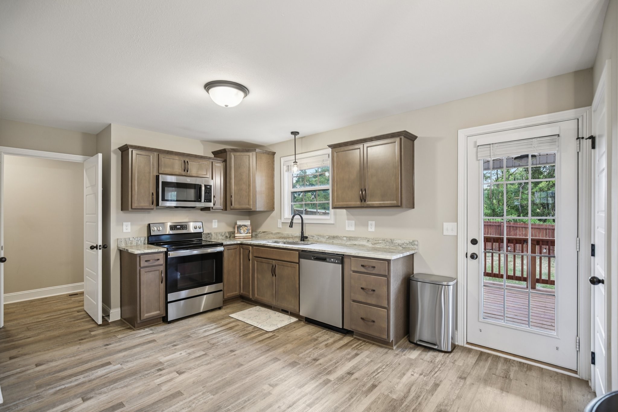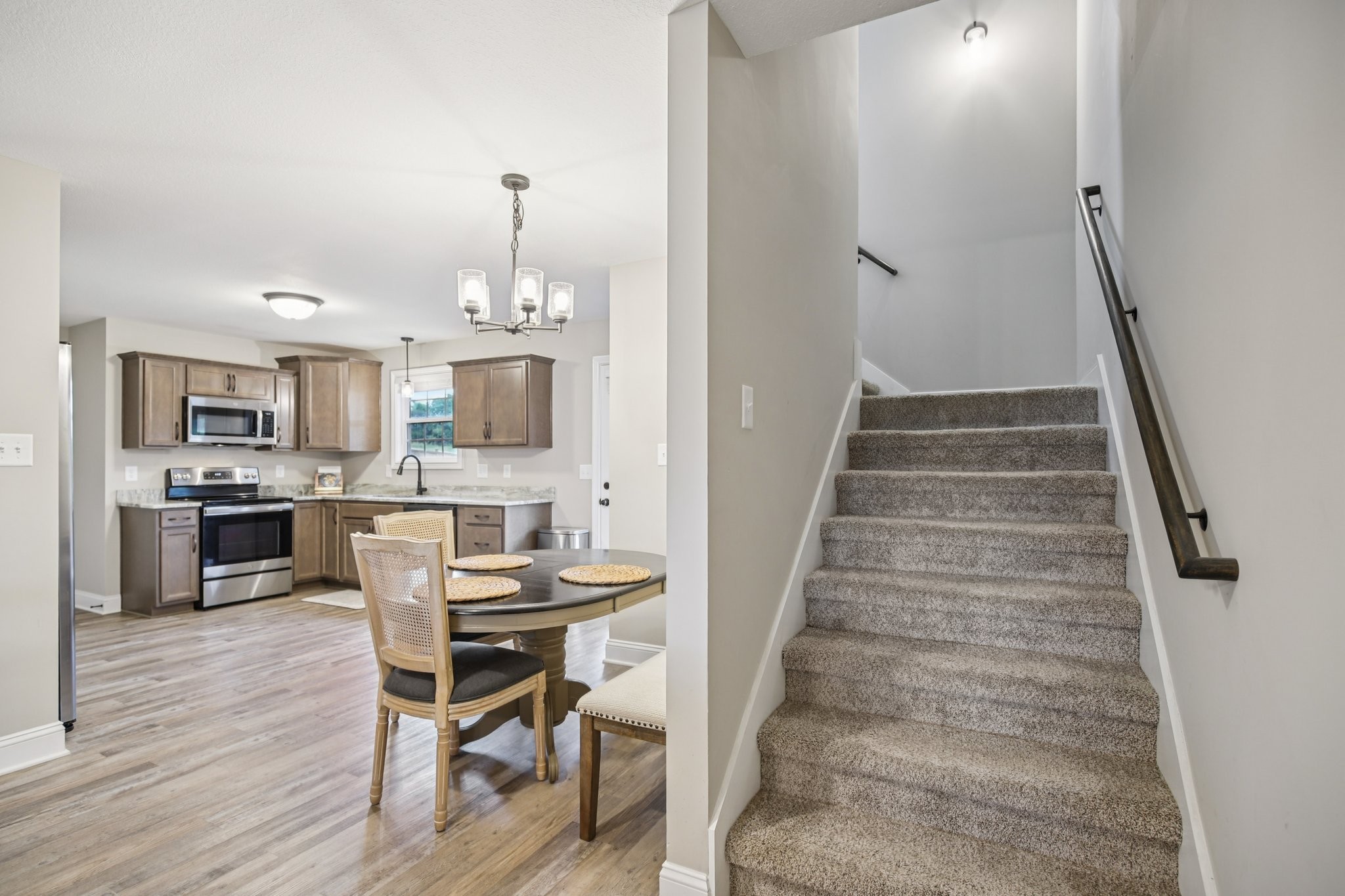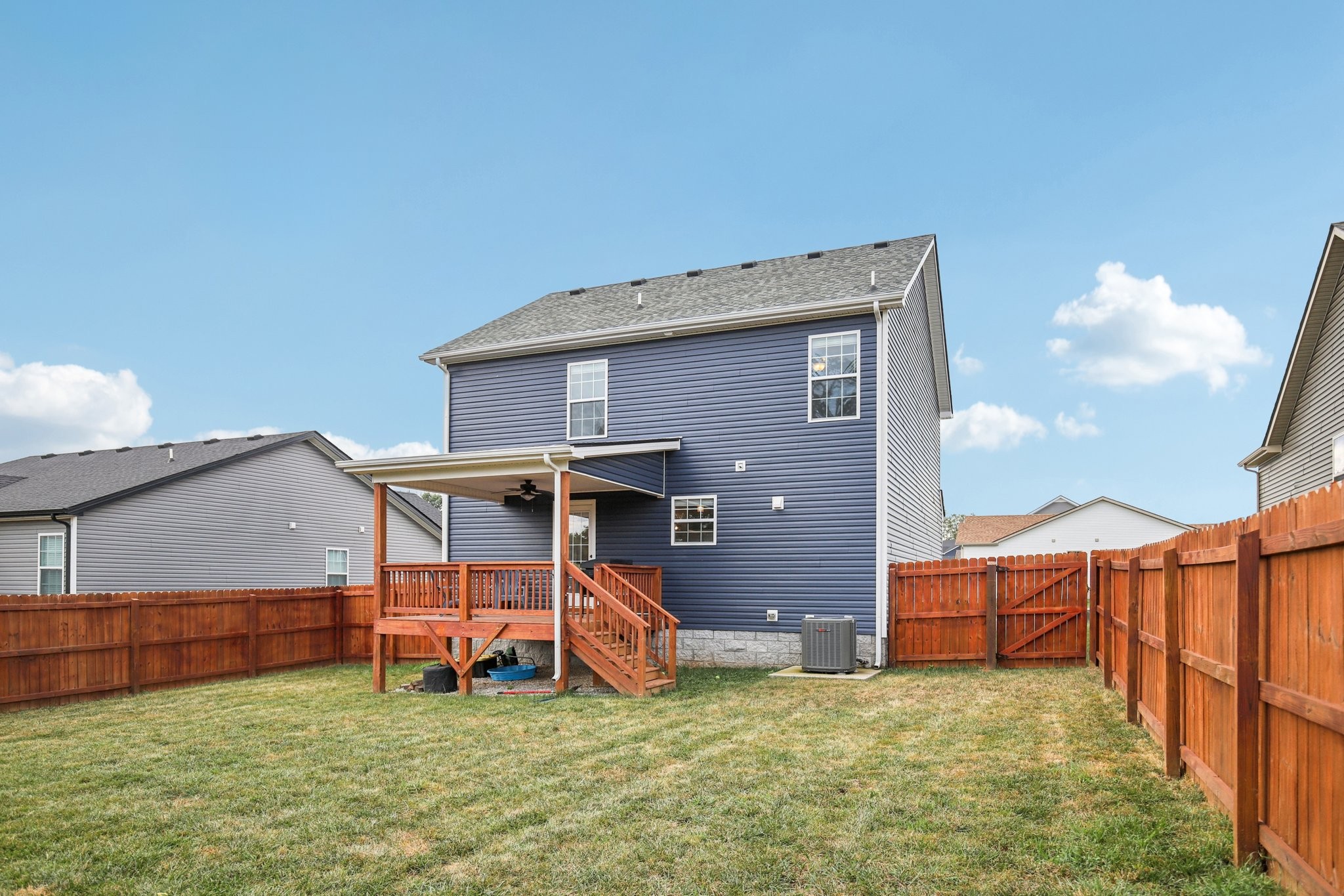 Welcome to this stunning like-new construction two level home located in the desirable Irish Hills Subdivision in Clarksville, TN. This 3 bedroom, 2.5 bathroom Baker floor plan boasts a spacious open floor plan that is a perfect blend of comfort and style. As you step inside you'll be greeted by the inviting interior featuring large bedrooms and modern finishes throughout. The kitchen is a chef's dream with sleek granite countertops, custom cabinetry, island, stainless steel appliances and large pantry. The living areas are adorned with soaring high ceilings and luxurious vinyl plank flooring creating a warm and welcoming ambiance. Primary ensuite features trey ceiling, walk in shower, vanity, tile flooring & extra large walk in closet. Outside offers a beautifully sodded yard, privacy fence, covered front porch and covered back deck, providing the ideal setting for outdoor gatherings and entertaining. The epoxied 2-car garage provides ample space for parking and storage. Conveniently situated in the Peachers Mill Rd area with easy access to schools, shopping, entertainment & outdoor recreation with Clarksville Greenway less than a mile from your doorstep. Ask about VA assumable loan!