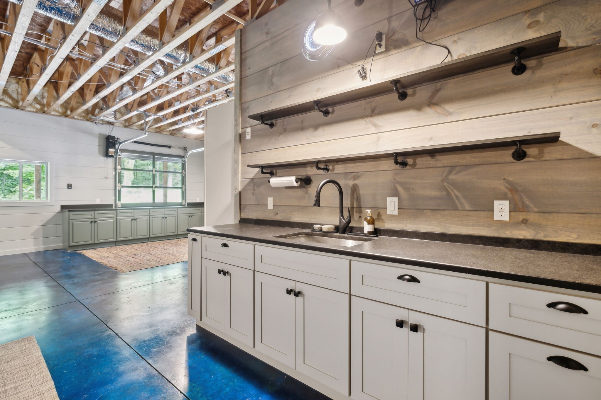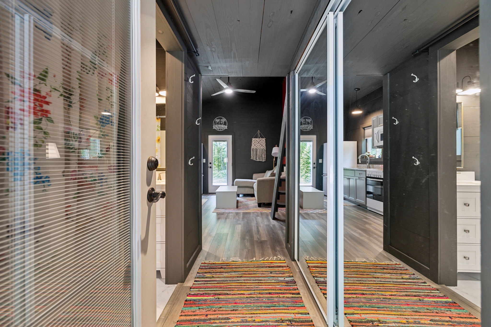 Never has big land, barndominiums and airbnbs been more popular and this is your chance to get all 3 in 1! Check out this 3000+ sf barndo on 45 acres with a separate tiny home style apartment with full living quarters. Whether you're looking for a place where 3 generations can live together comfortably, the perfect place for entertaining large groups or a great house hacking/income producing property this is your opportunity! This huge barndominium has a total of 3 kitchens, 3 living areas, 3 bathrooms, 3 bedrooms, 3 large porches and 2 decks. With full and oversized living quarters downstairs, upstairs and in the apartment this really is the place where parents, older kids and grandparents can live together while still having their separate space. Downstairs is an entertainers dream with stained concrete floors, a kitchen with lots of cabinets, wet bar, large gathering areas and a bar top with a glass garage door that opens to an outdoor bar top so everyone can stay connected inside and out. The main living area has a great open concept and a kitchen with stainless appliances, island, farmhouse sink, leathered granite countertops with lots of cabinetry. The large master bedroom features a hidden gun rack and bathroom with a tiled shower and a hidden room.