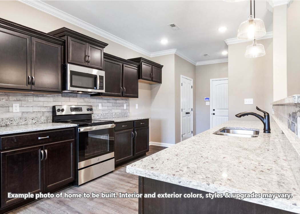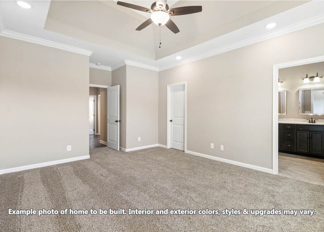 Seller offering $10,000 toward buyer expenses!! The Bentley is a well-designed, single-story home offering easy living. This 4 bedroom, 2 bathroom plan features an open-concept great room that flows into a stylish kitchen with a central island. The primary suite is a private retreat, complete with walk-in closet and en suite bathroom with double vanities and a tile shower. Additional touches include a mud bench for everyday convenience, and a large covered back patio. Interior finishes include crown molding, custom tile, full kitchen backsplash, granite or quartz countertops, upgraded lighting, and smart home features.